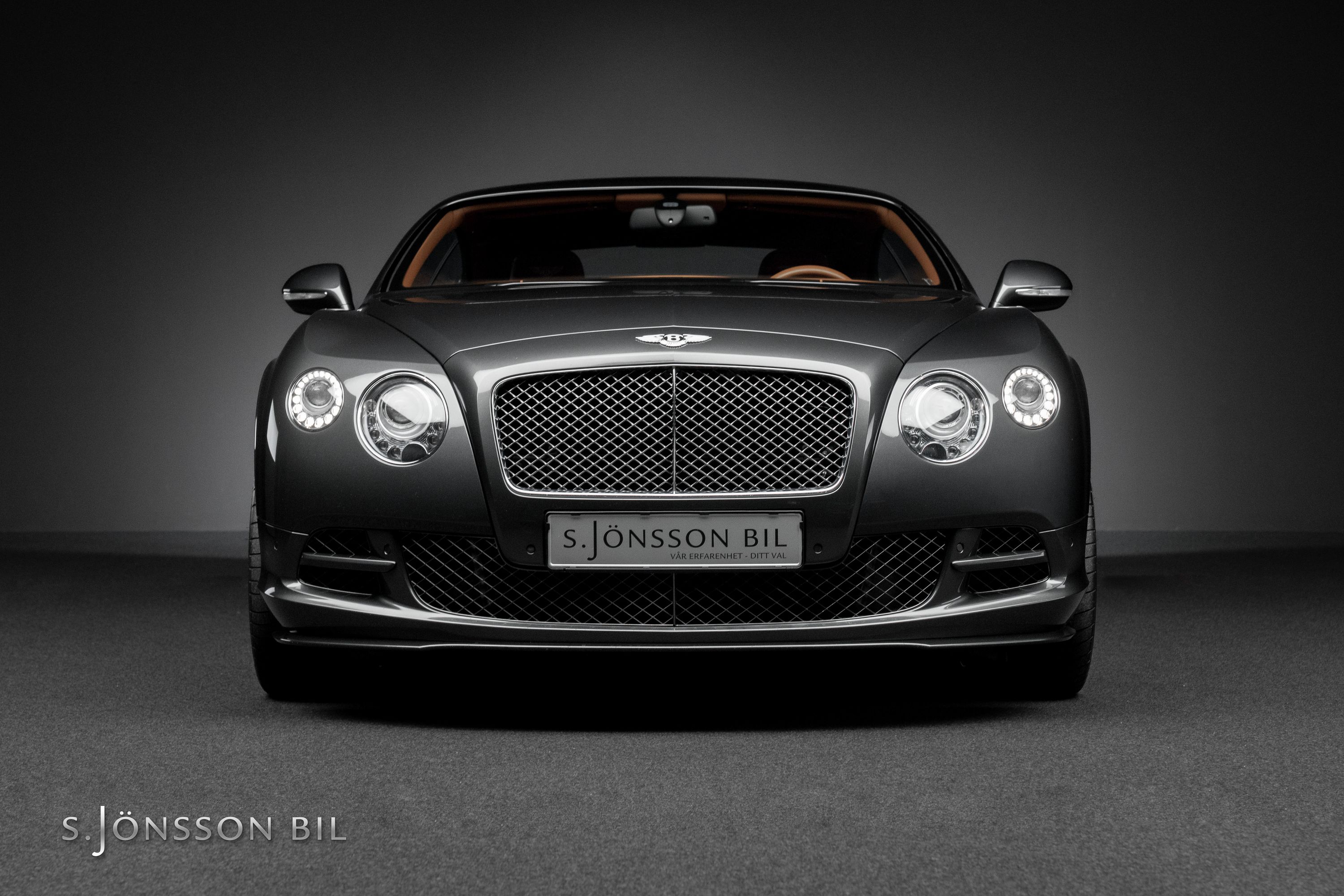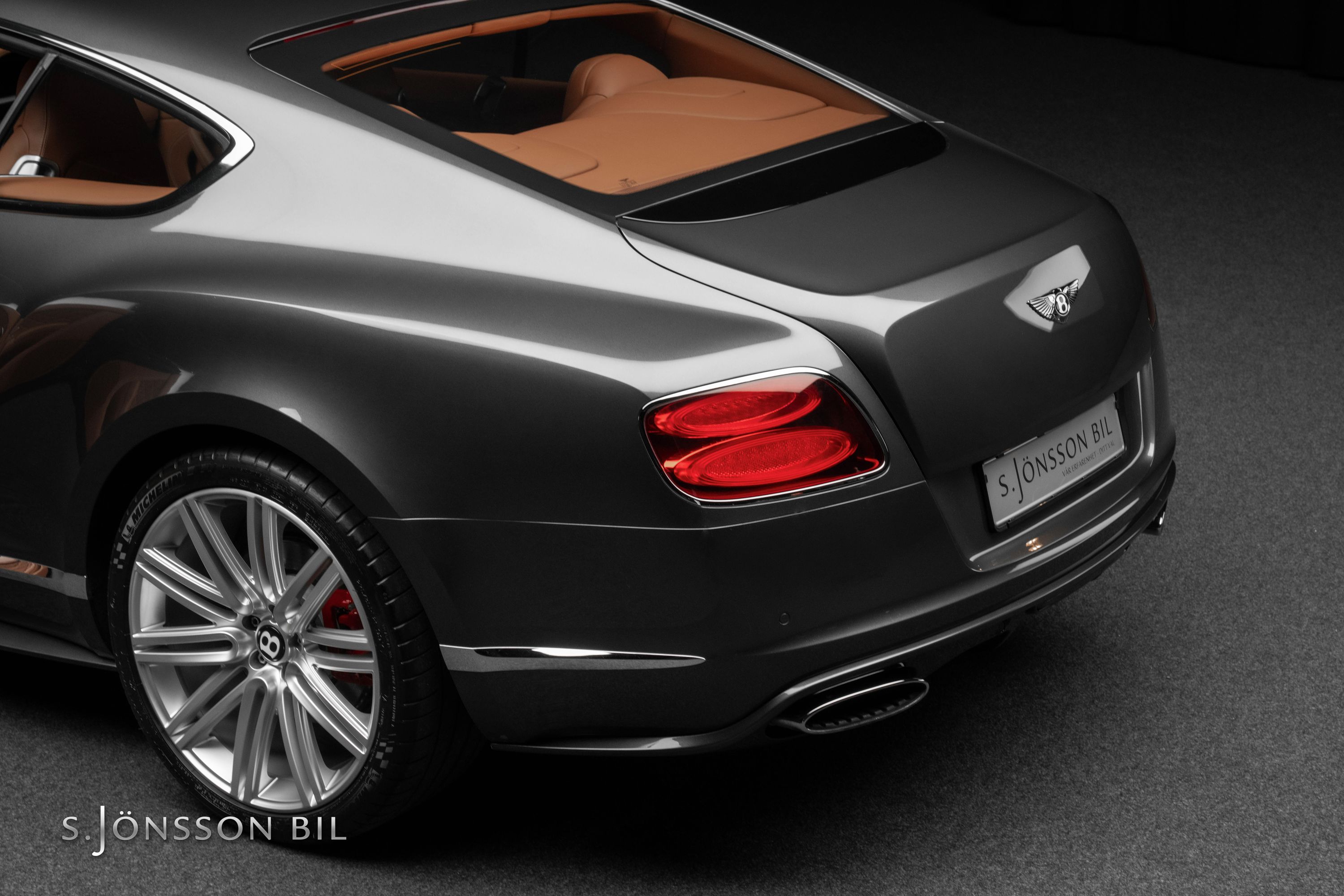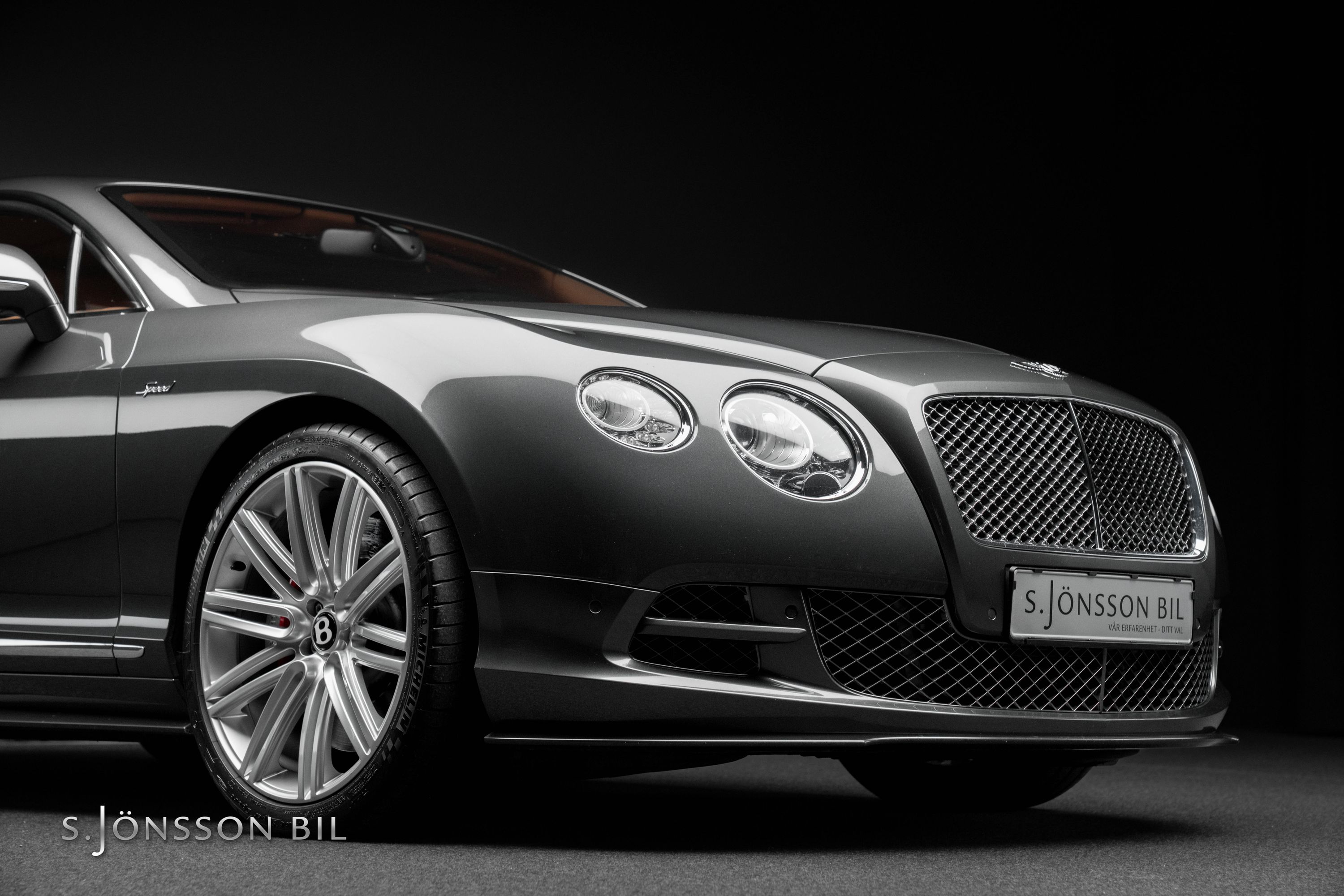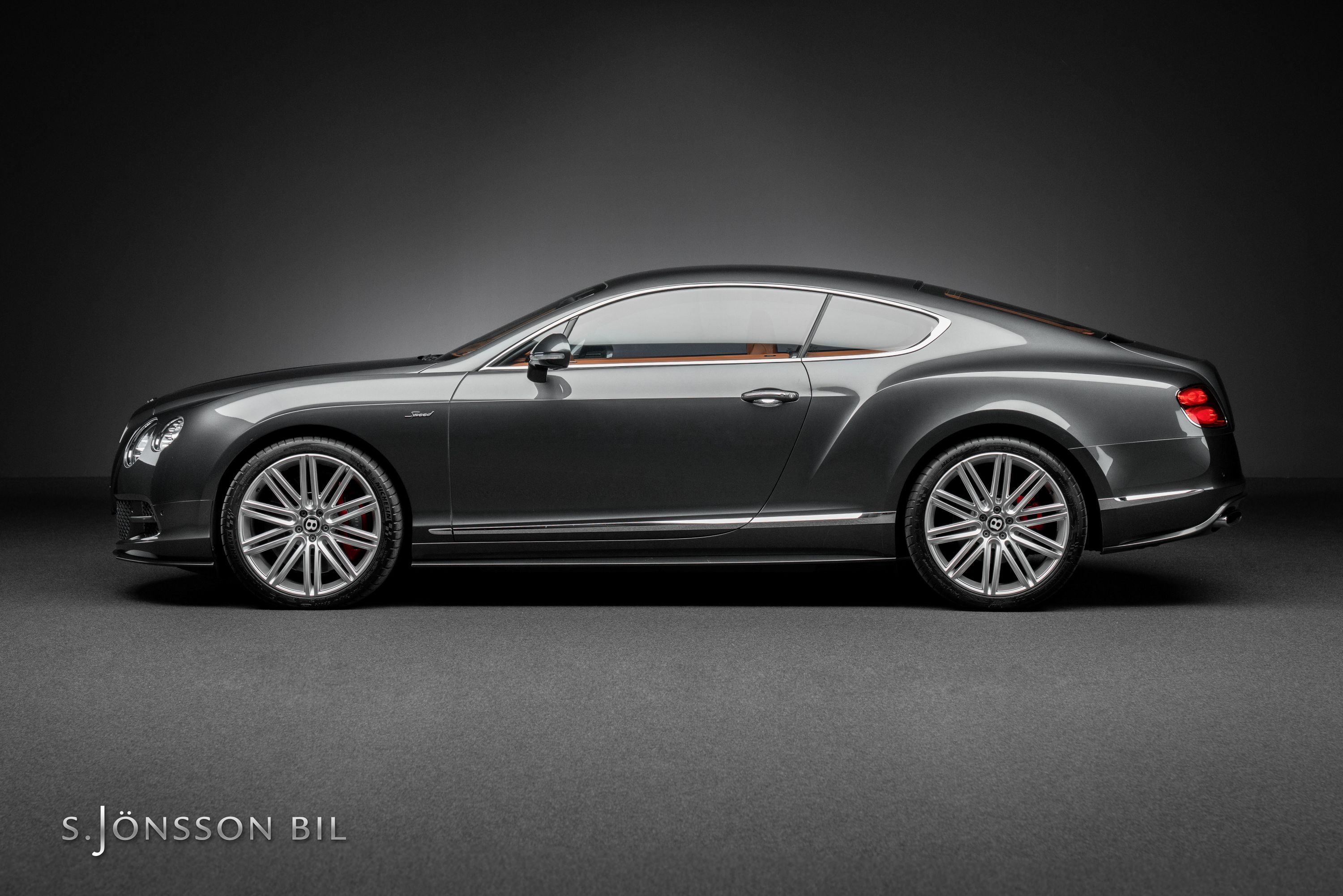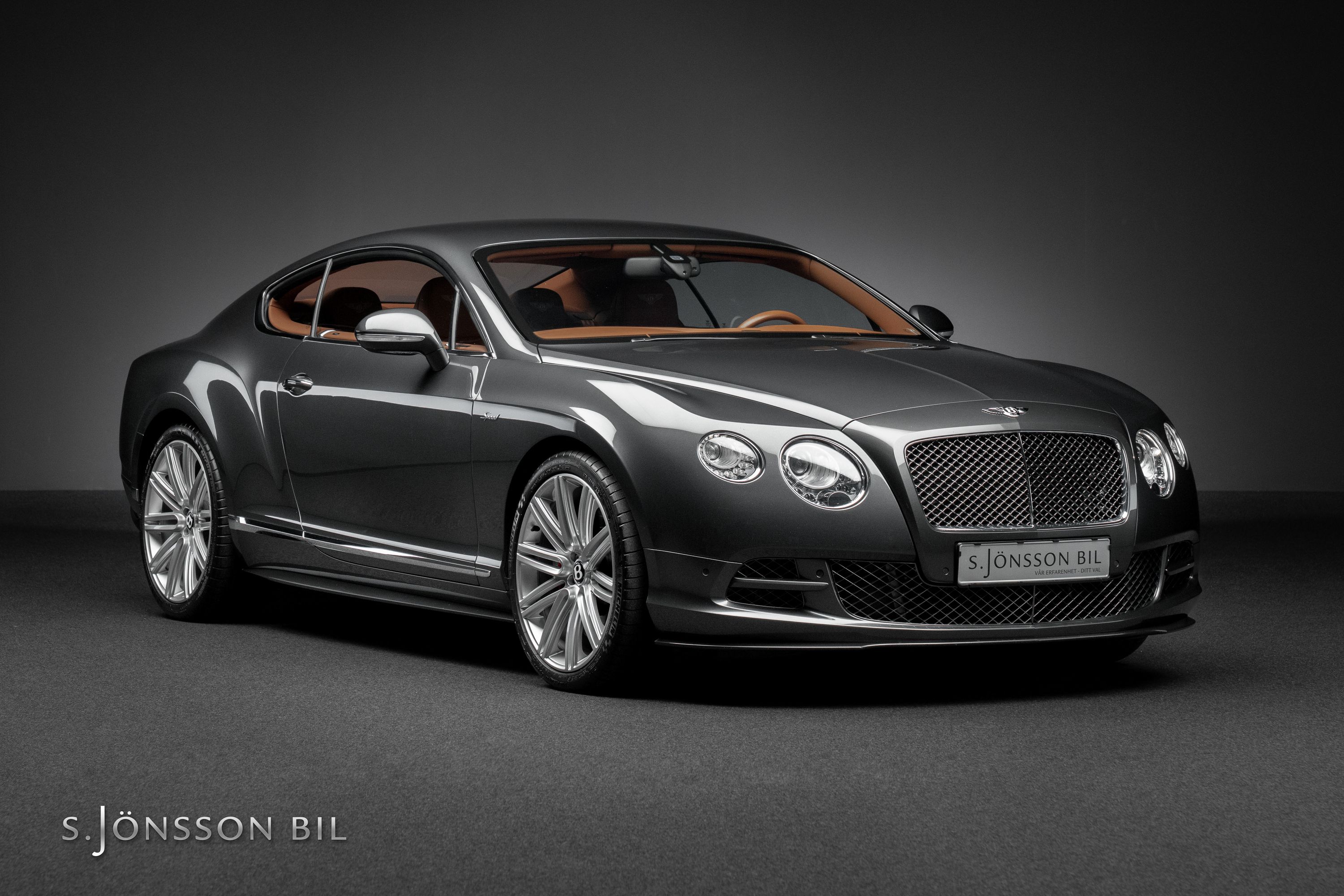 Bentley Continental GT Speed W12 i den exklusiva färgen Anthracite metallic med kastanj-brun läder inredning.