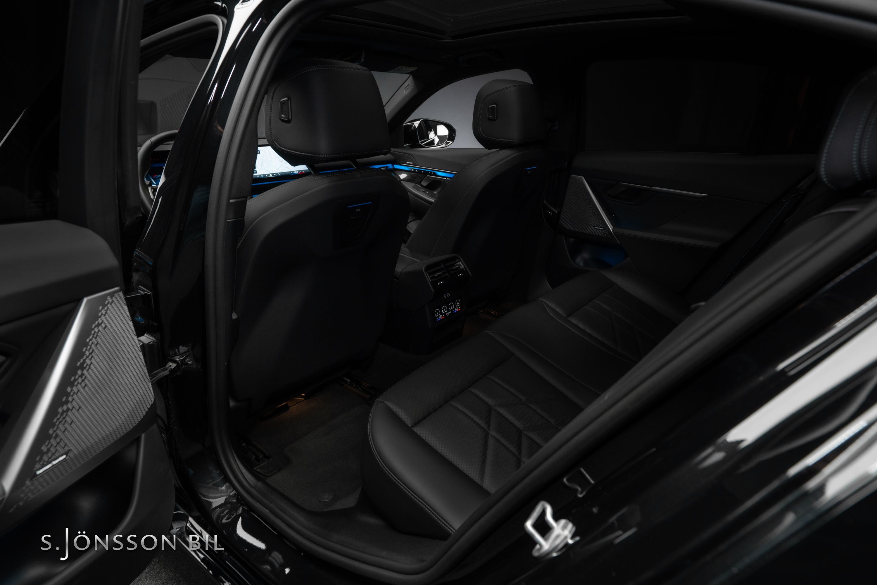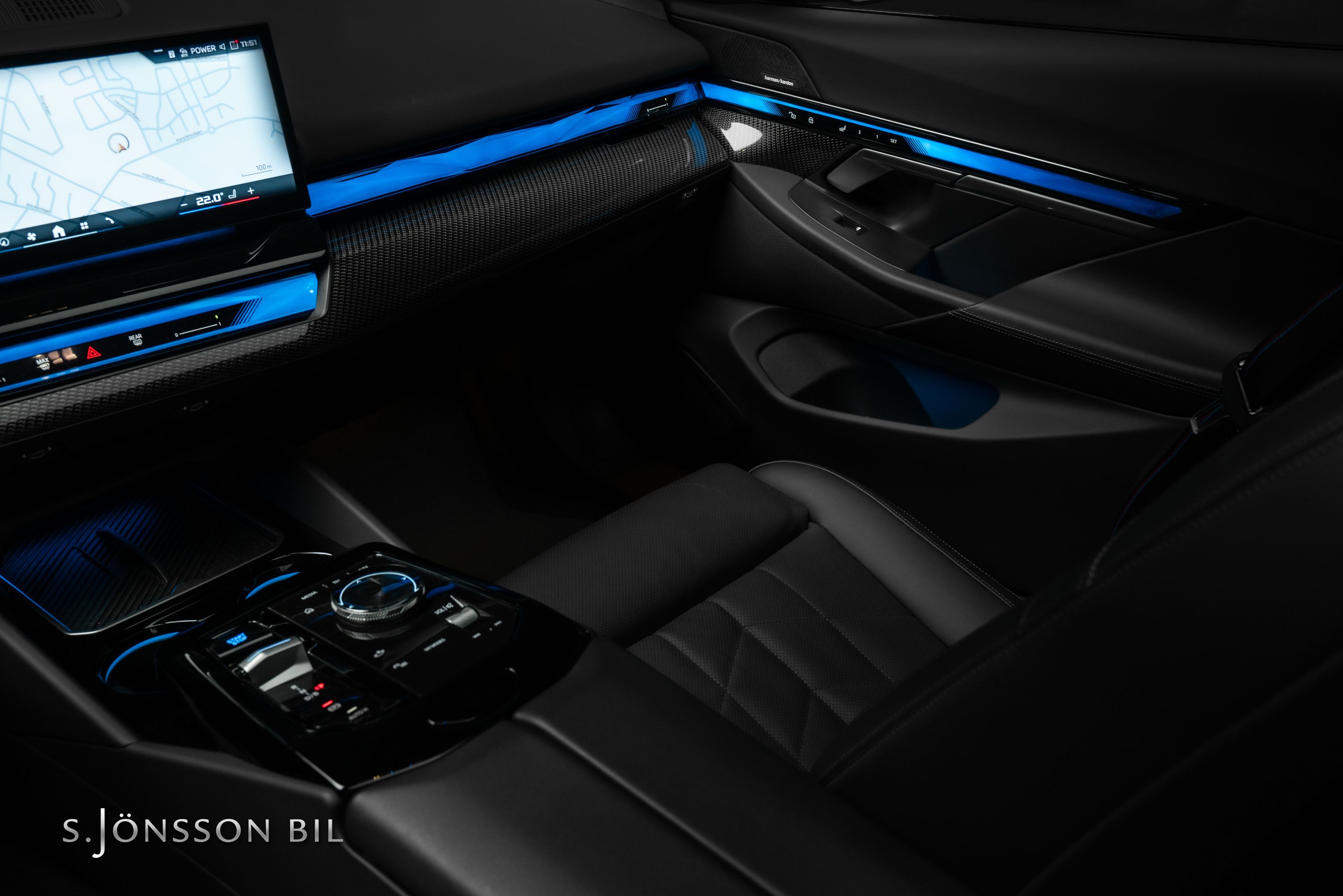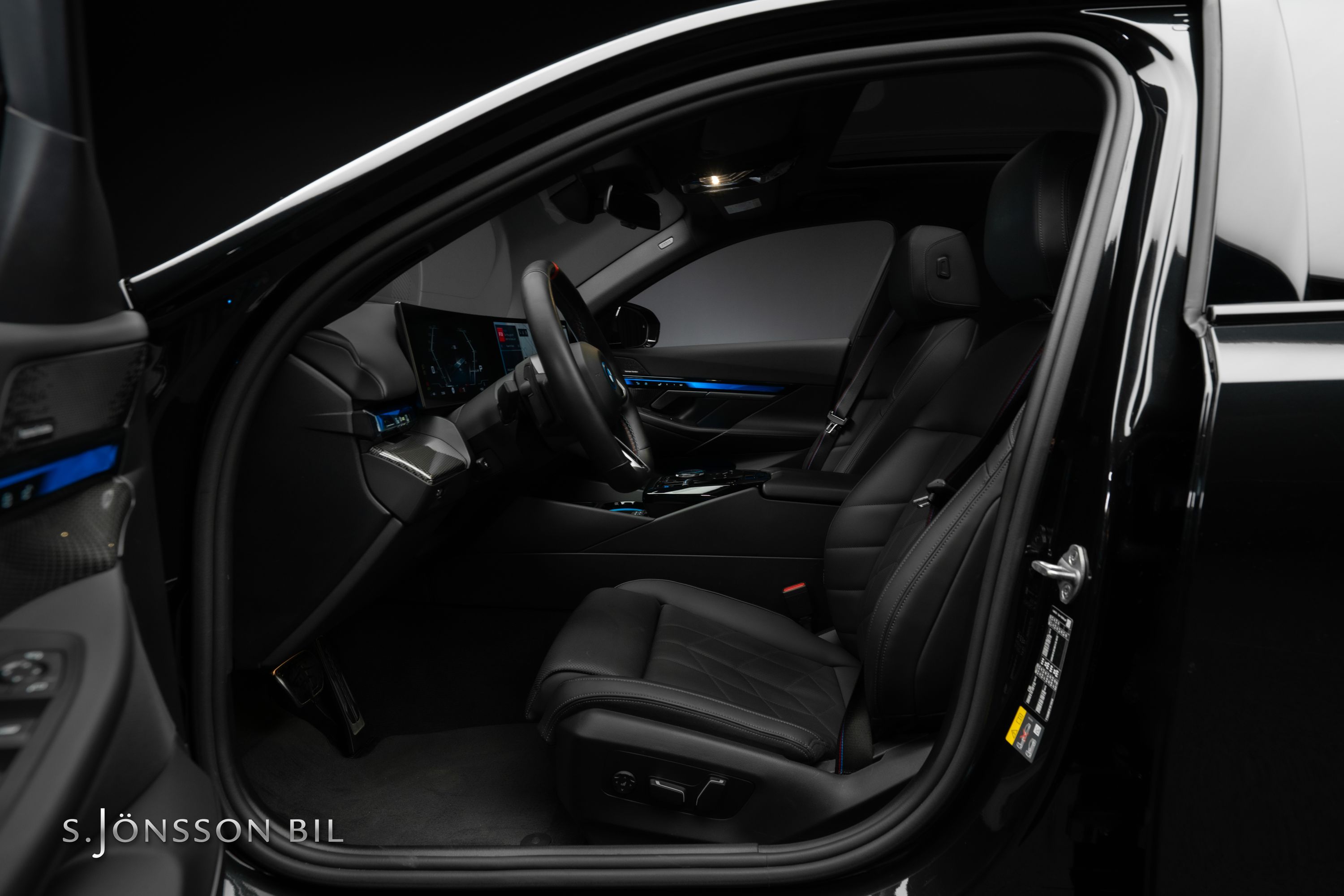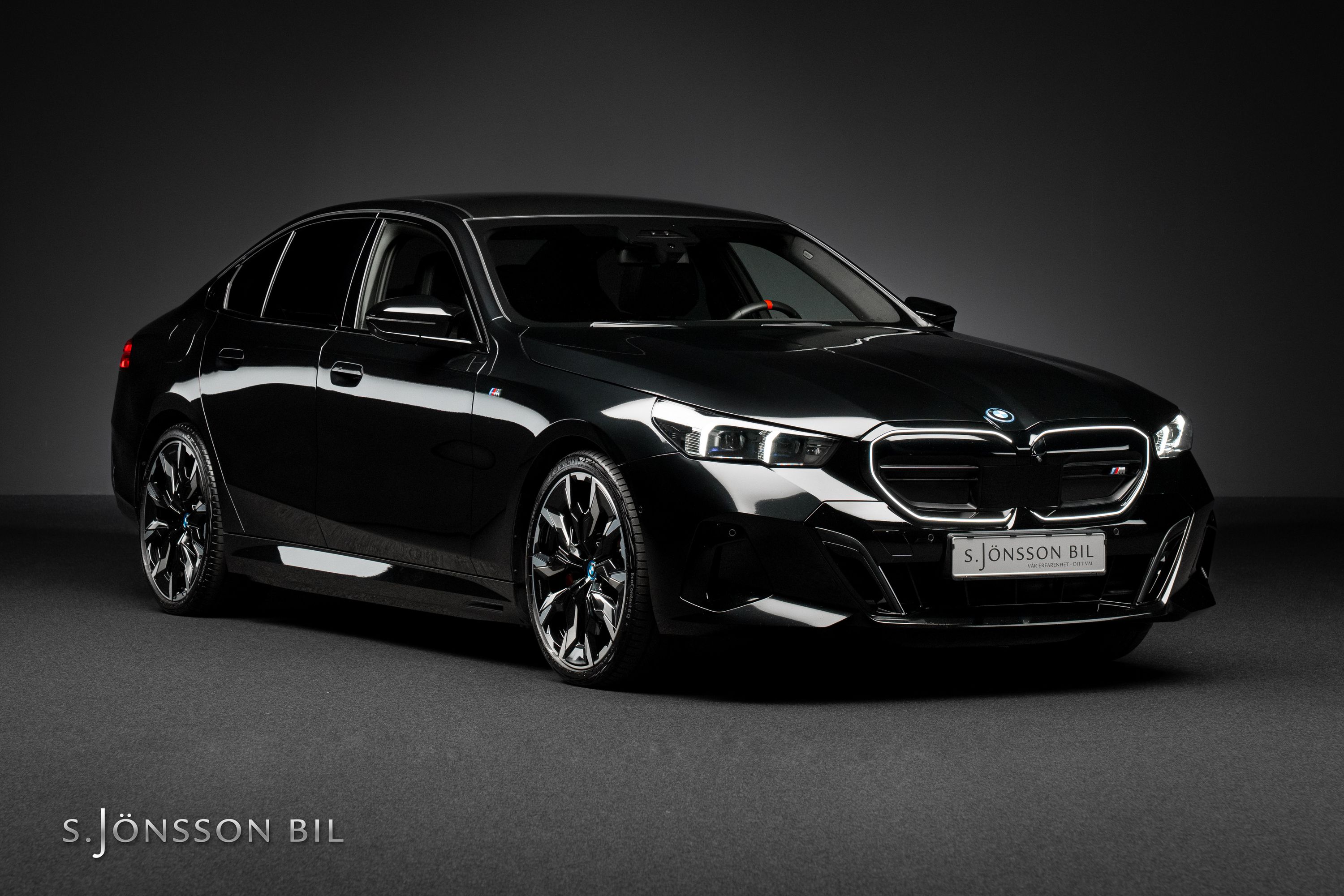 BMW i5 M60 xDrive, lackerad i Black Sapphire metallic kombinerat med läderinteriör i svart. Fint utrustad bil med bland annat panoramatak, Harman Kardon HiFi-System, komfortstolar och M Sportpaket Pro.