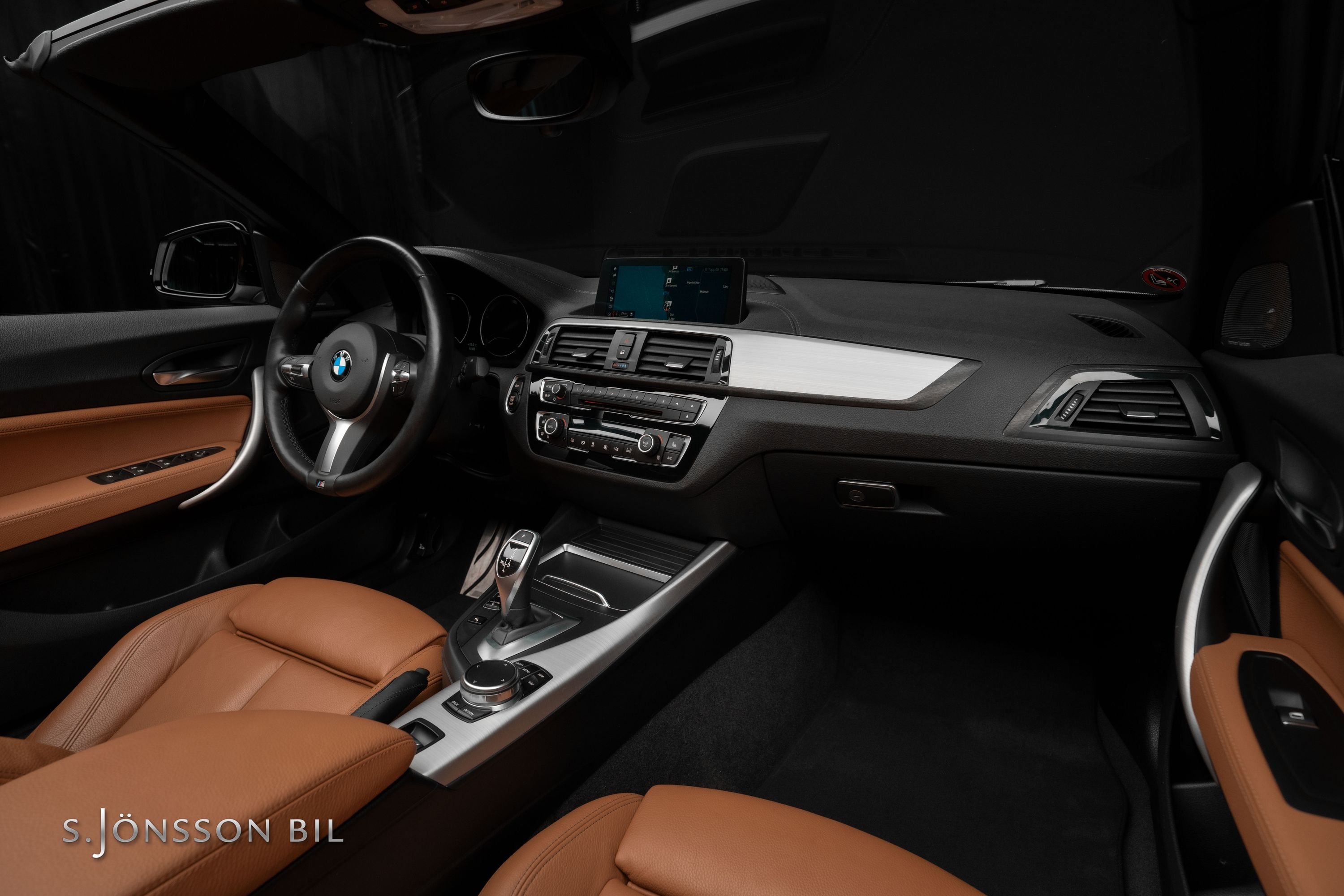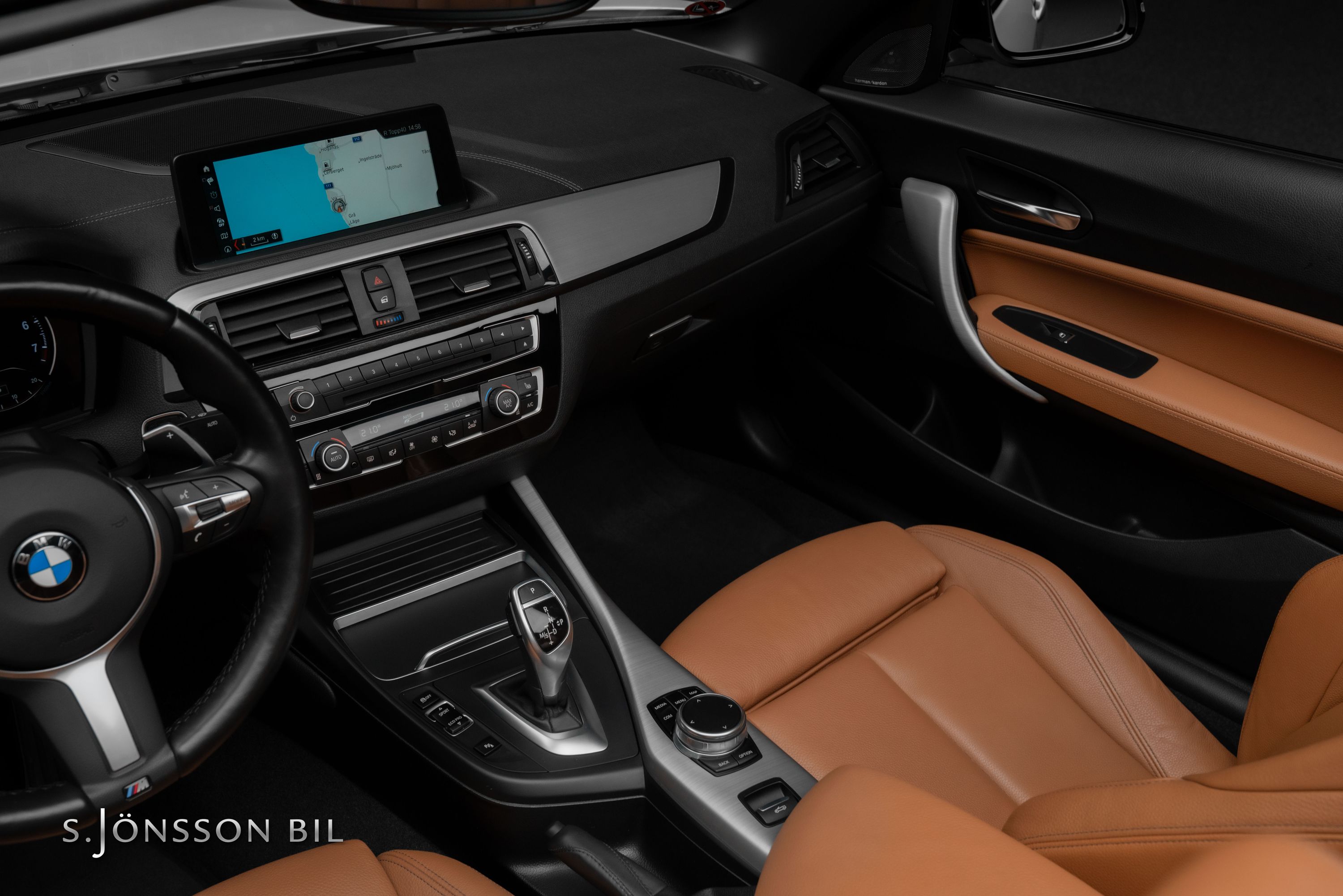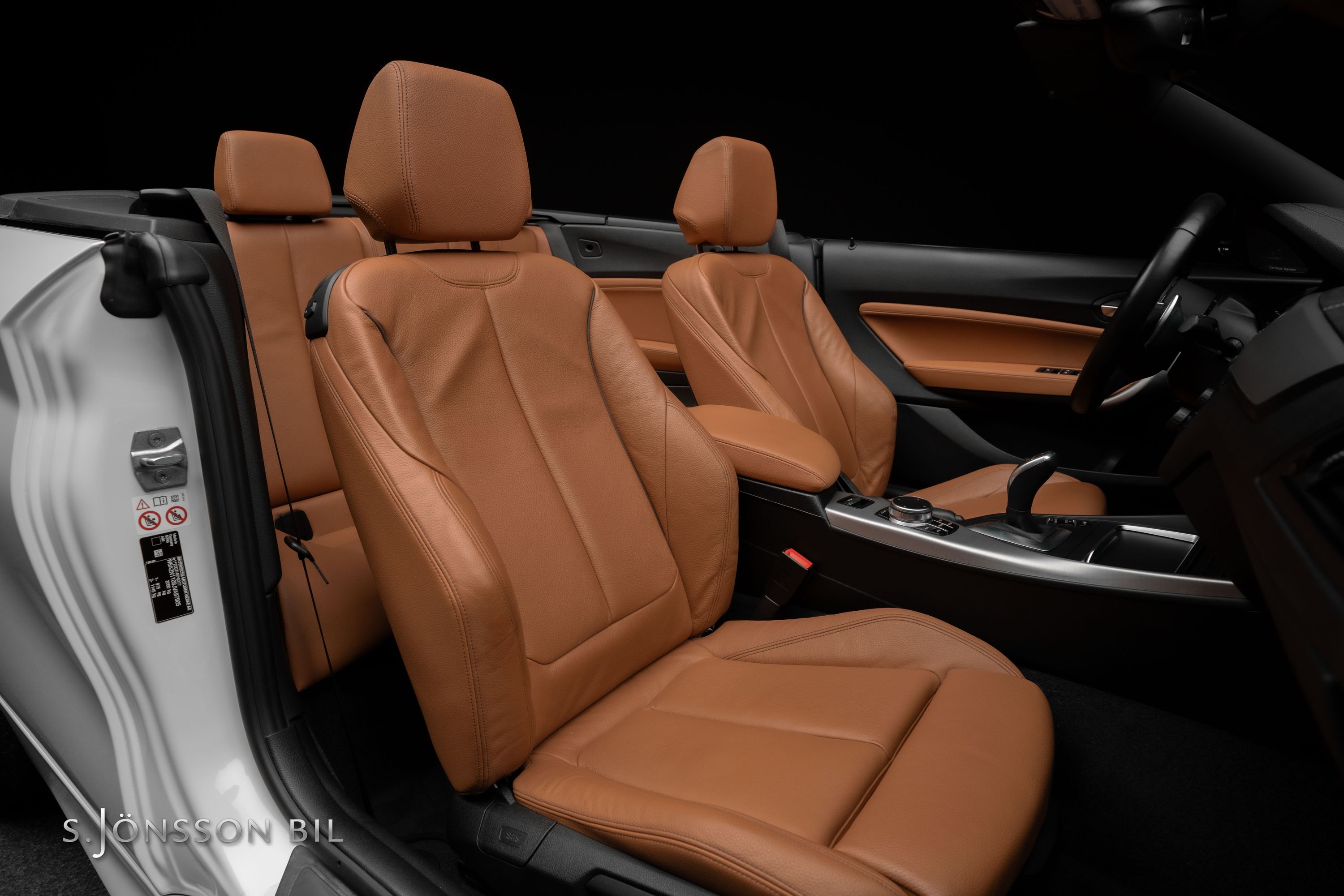 BMW M240i Cab lackerad i Mineralvit metallic med inredning i läder Dakota Cognac Highlight Brown.