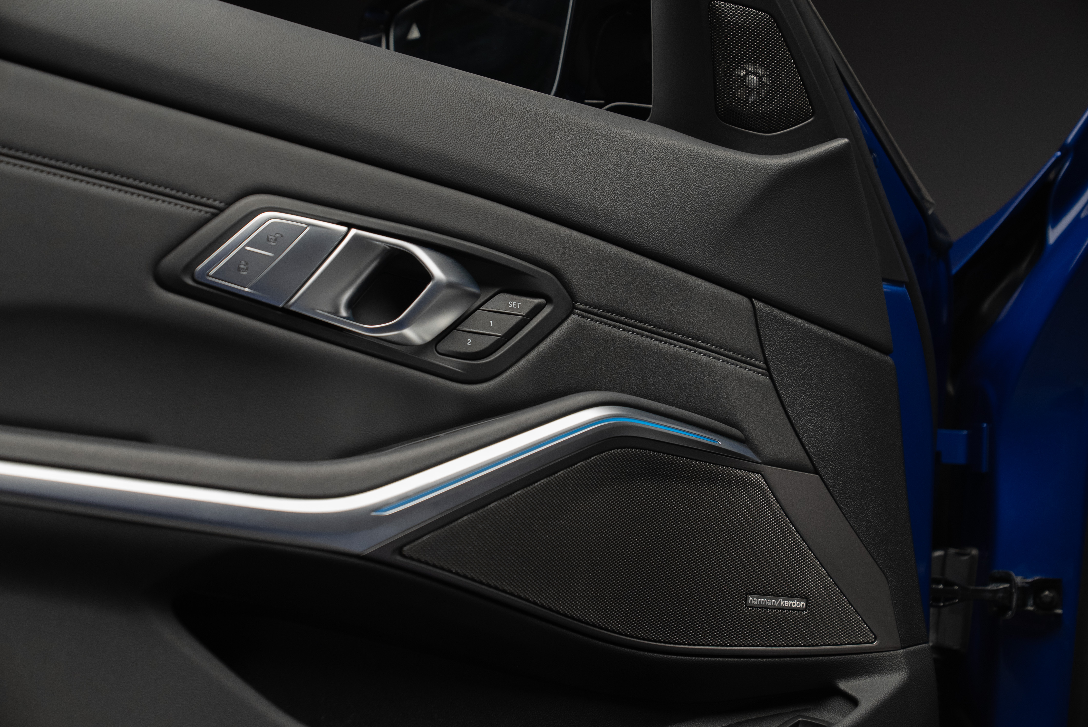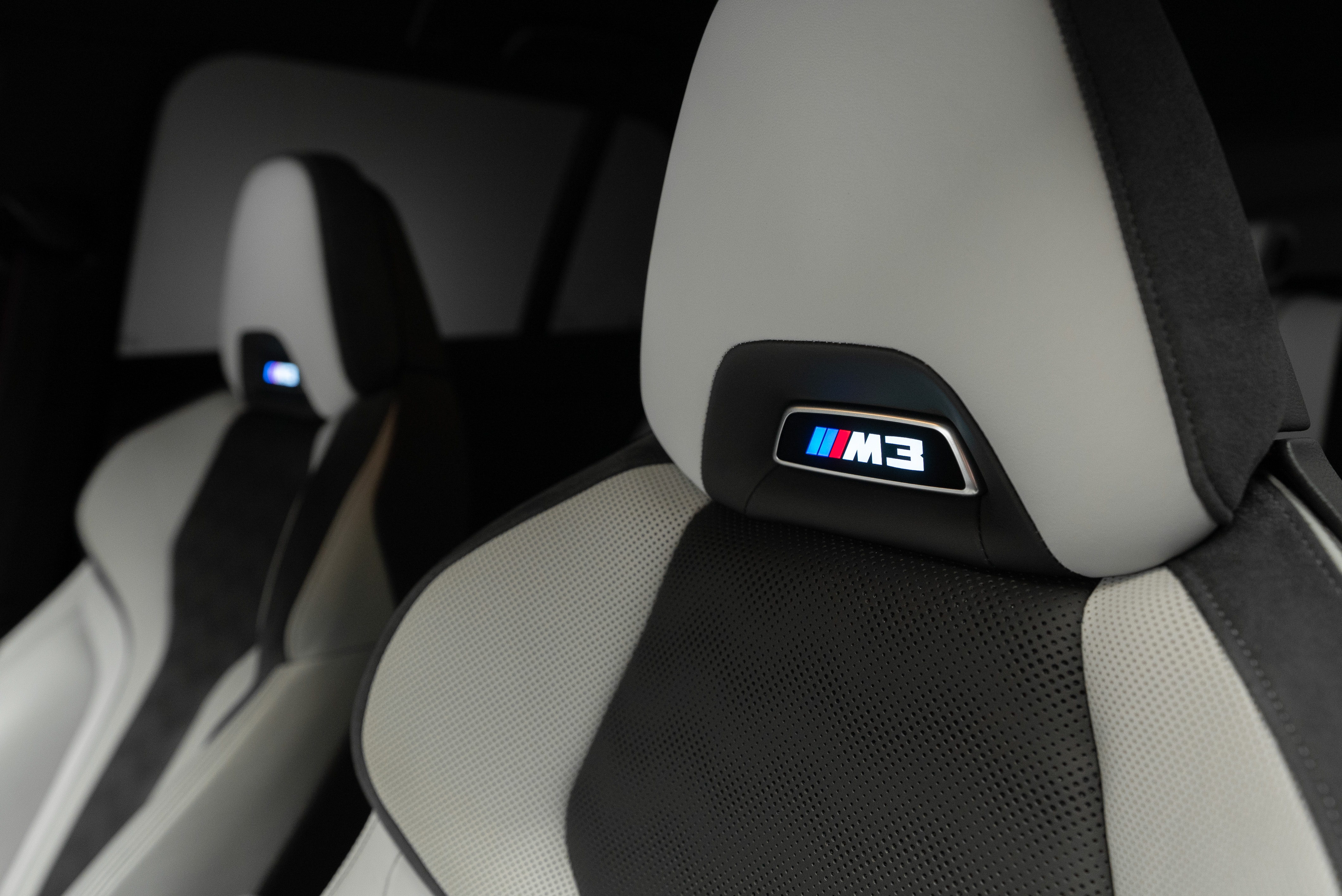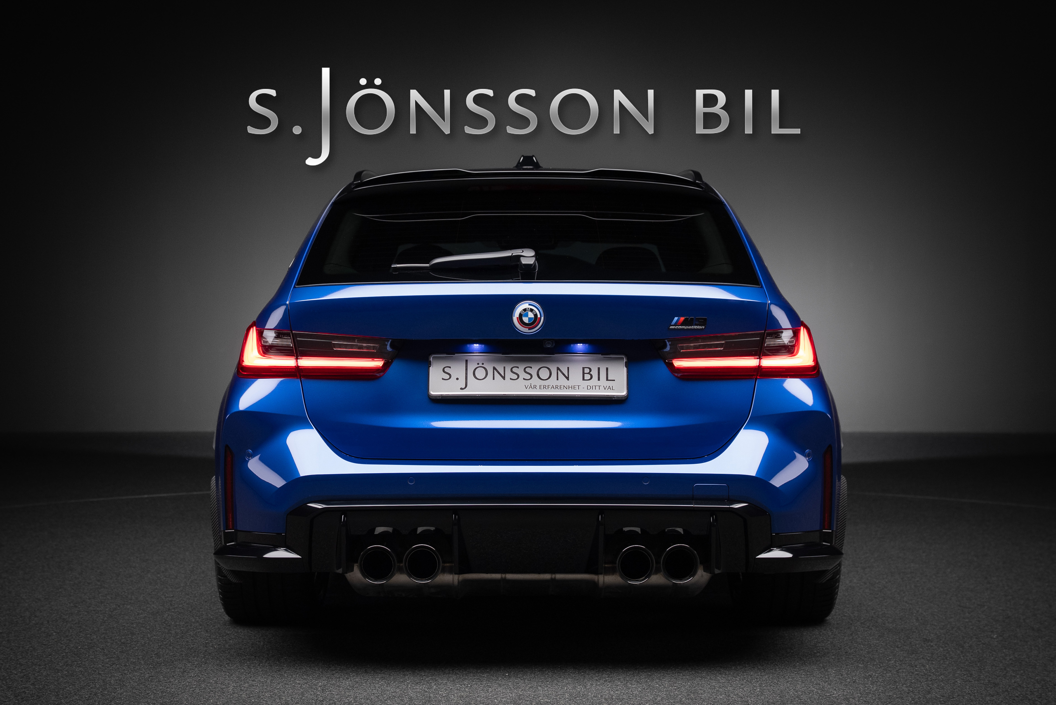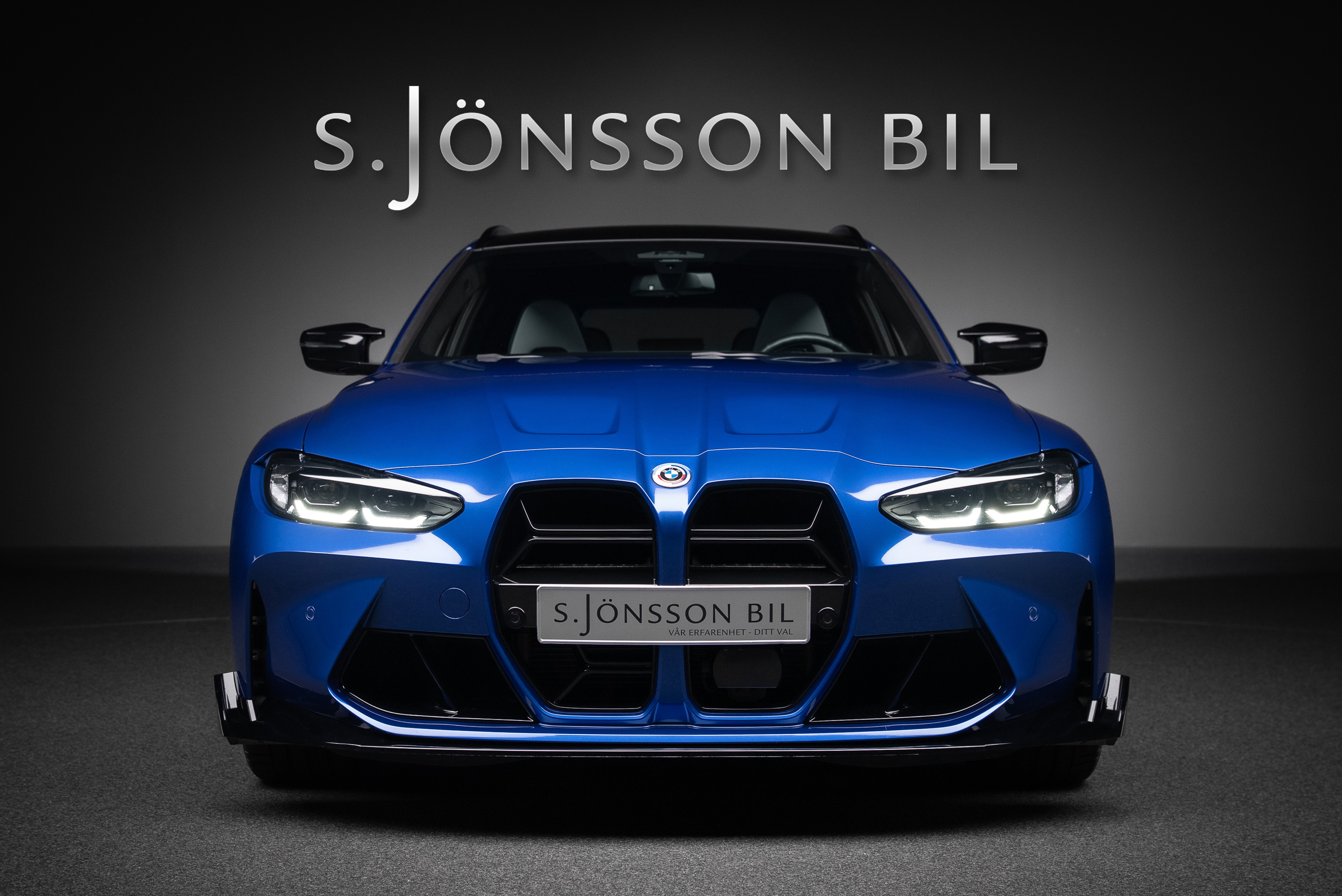 BMW M3 Competition Touring xDrive Steptronic i snygg färgkombination. Portimaoblå metallic med inredning i Silverstone/Svart Merinoläder.