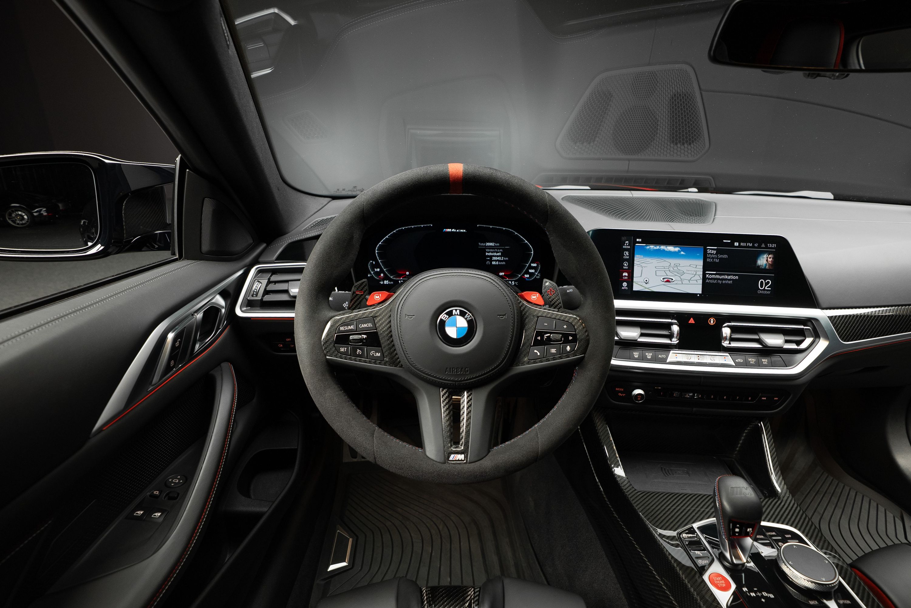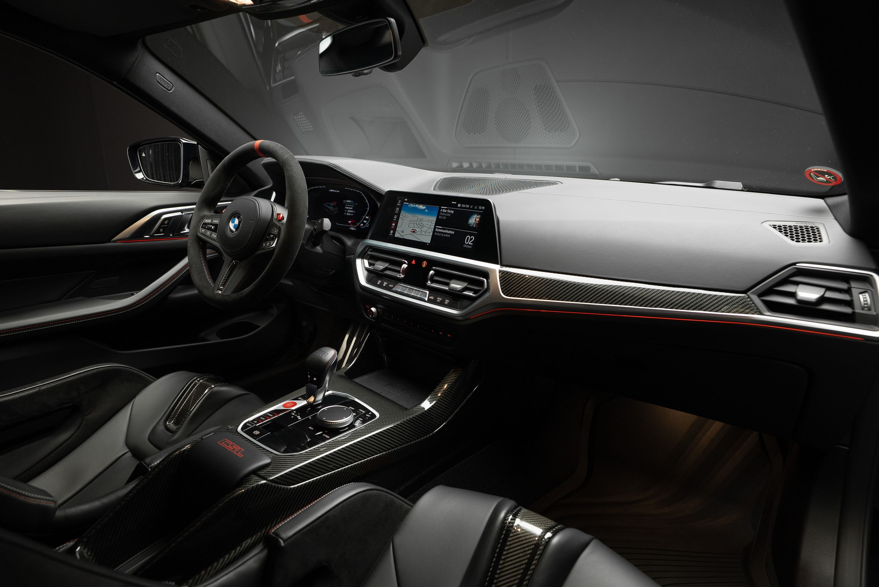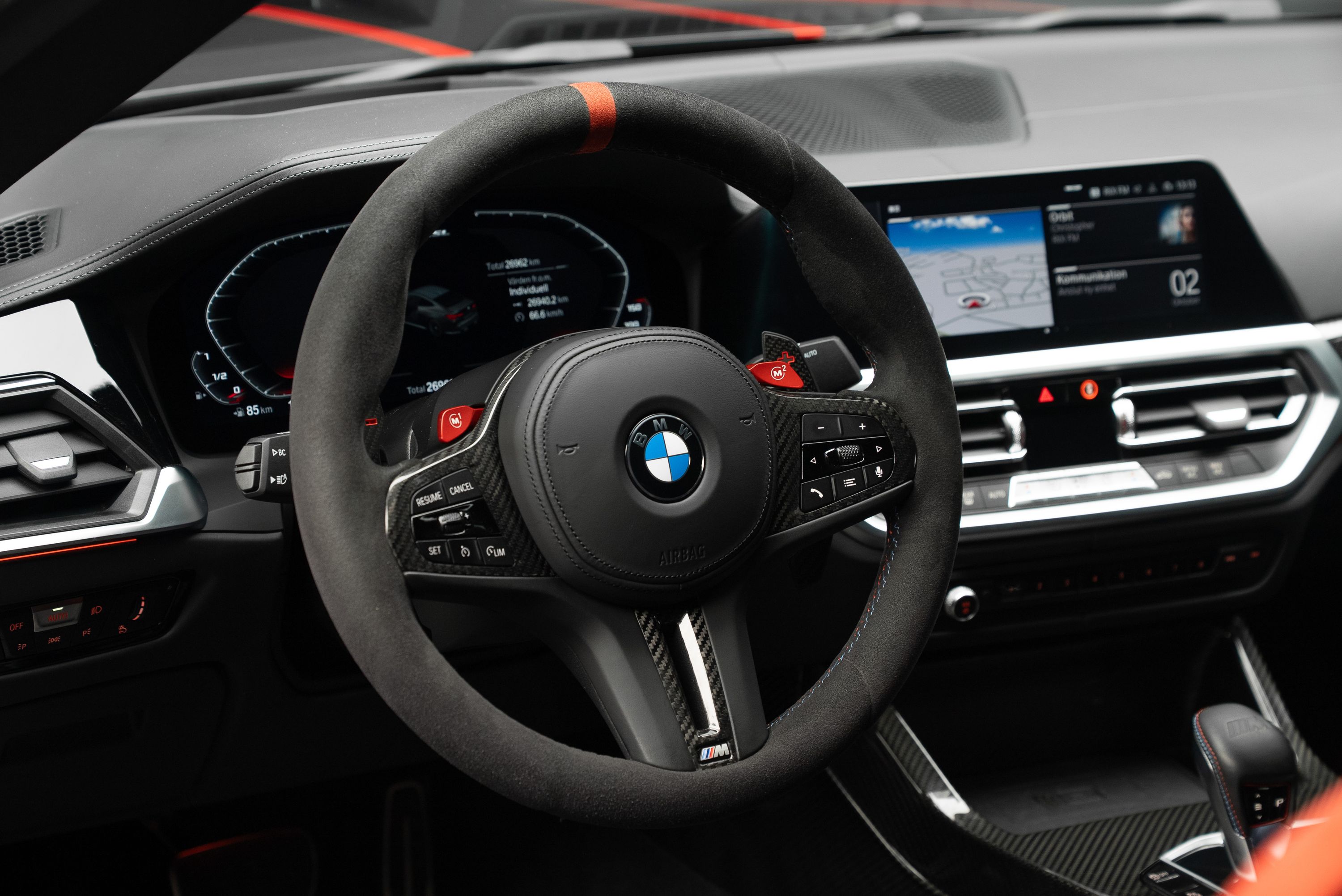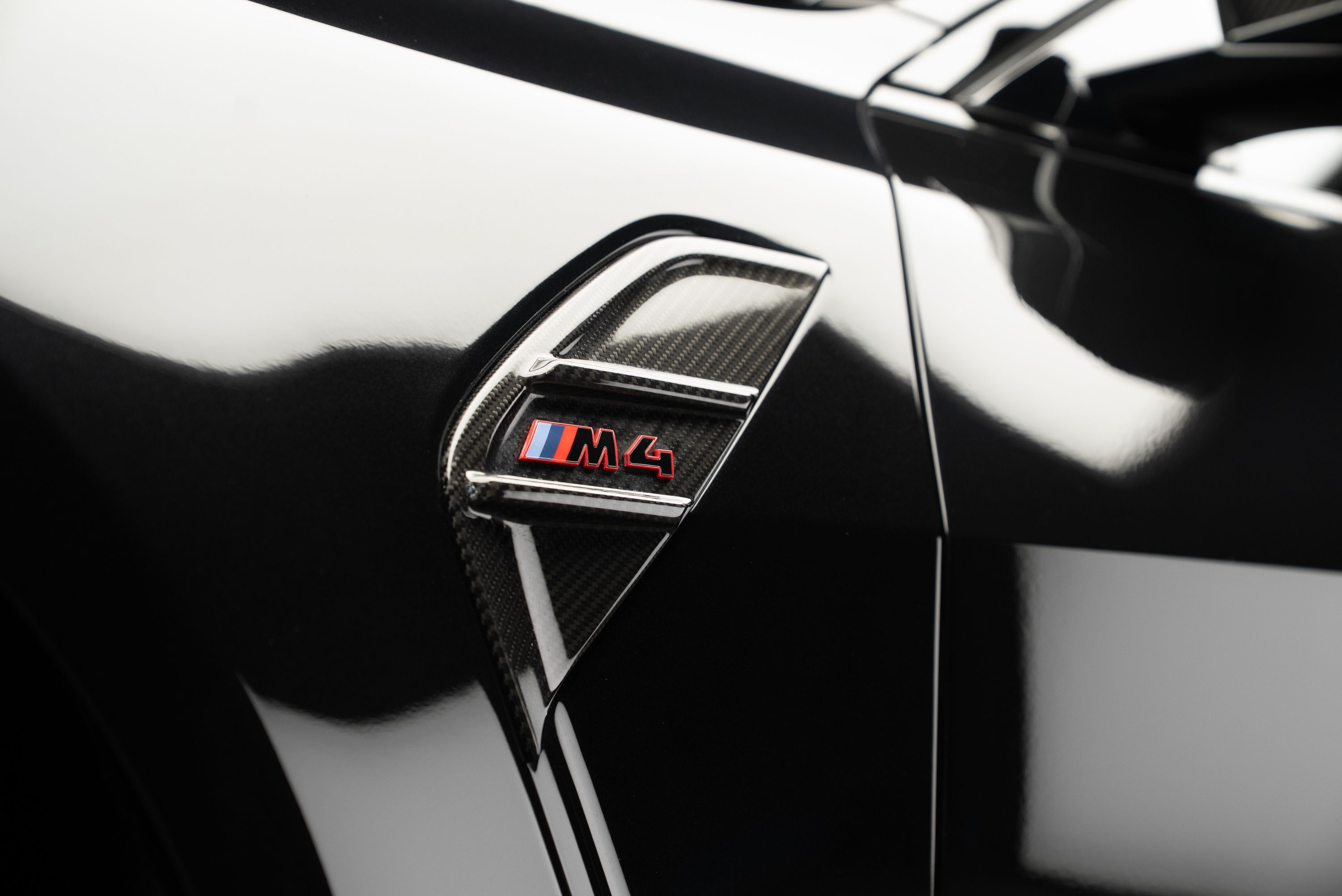 BMW M4 CSL (Competition Sport Leightweight) lackerad i safirsvart metallic med svart merino helläderklädsel. M4 CSL tillverkades i endast 1000 exemplar. Hela 100 kg har bantades bort från vanliga M4 Competition. Detta har gjordes med massor av lättviktsmaterial: kolfiberhuv, kolfiberbagagelucka, avgassystem i titan, keramiska bromsar, kolfiberstolar (minus 24 kilo), kolfibertak och även minskad ljudisolering (minus 15 kilo). Förutom höjd motoreffekt till 550 hk och 650 Nm uppgraderades även chassit och lånade en hel del detaljer från tävlingsbilen M4 GT3. Allt detta sammantaget gjorde BMW M4 CSL till BMW:s snabbaste gatbil någonsin på Nürburgring med tiden 7 minuter och 20 sekunder.