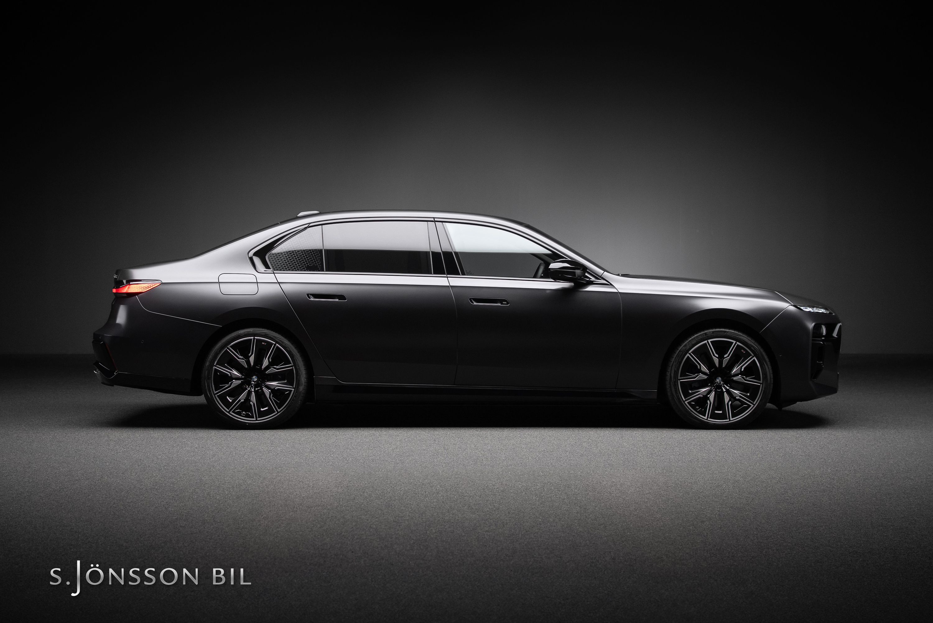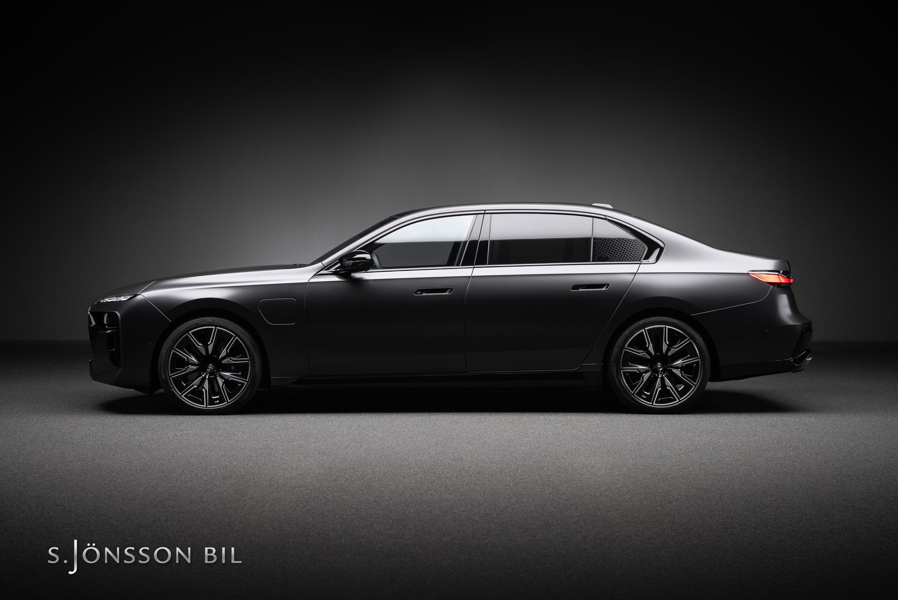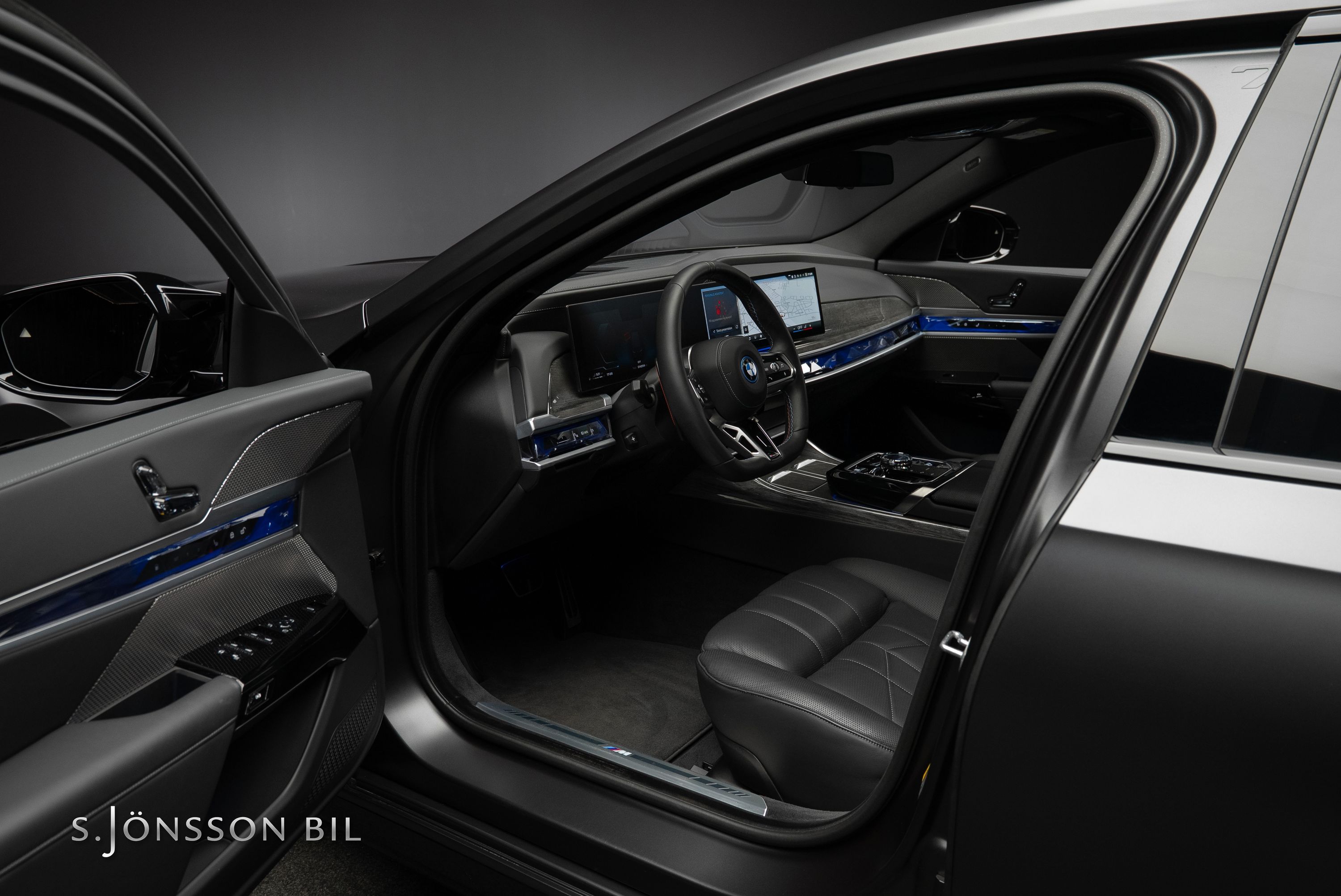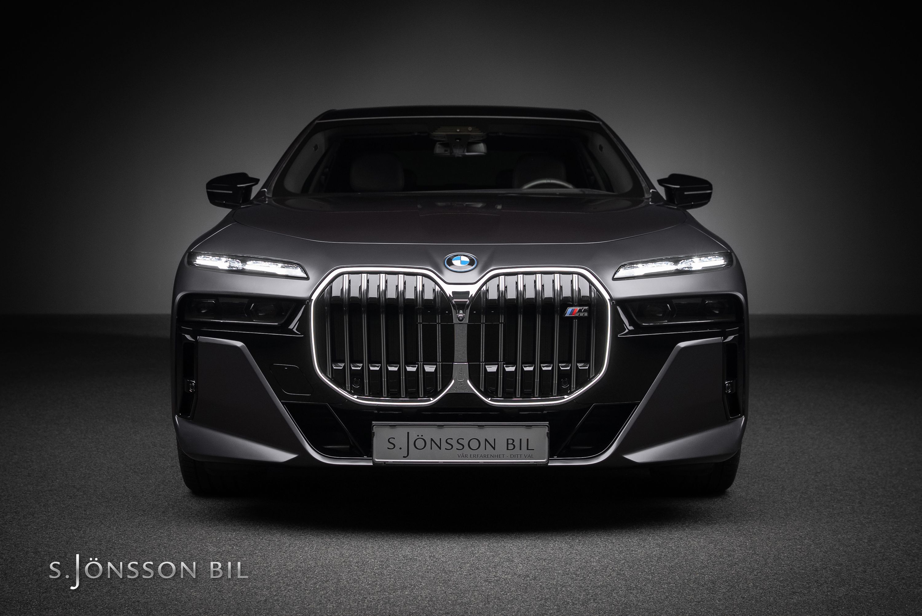 BMW M760e XDrive laddhybrid med fin spec. Lackerad i Individual Frozen Deep Grey metallic kombinerat med interiör i svart Individual läder.