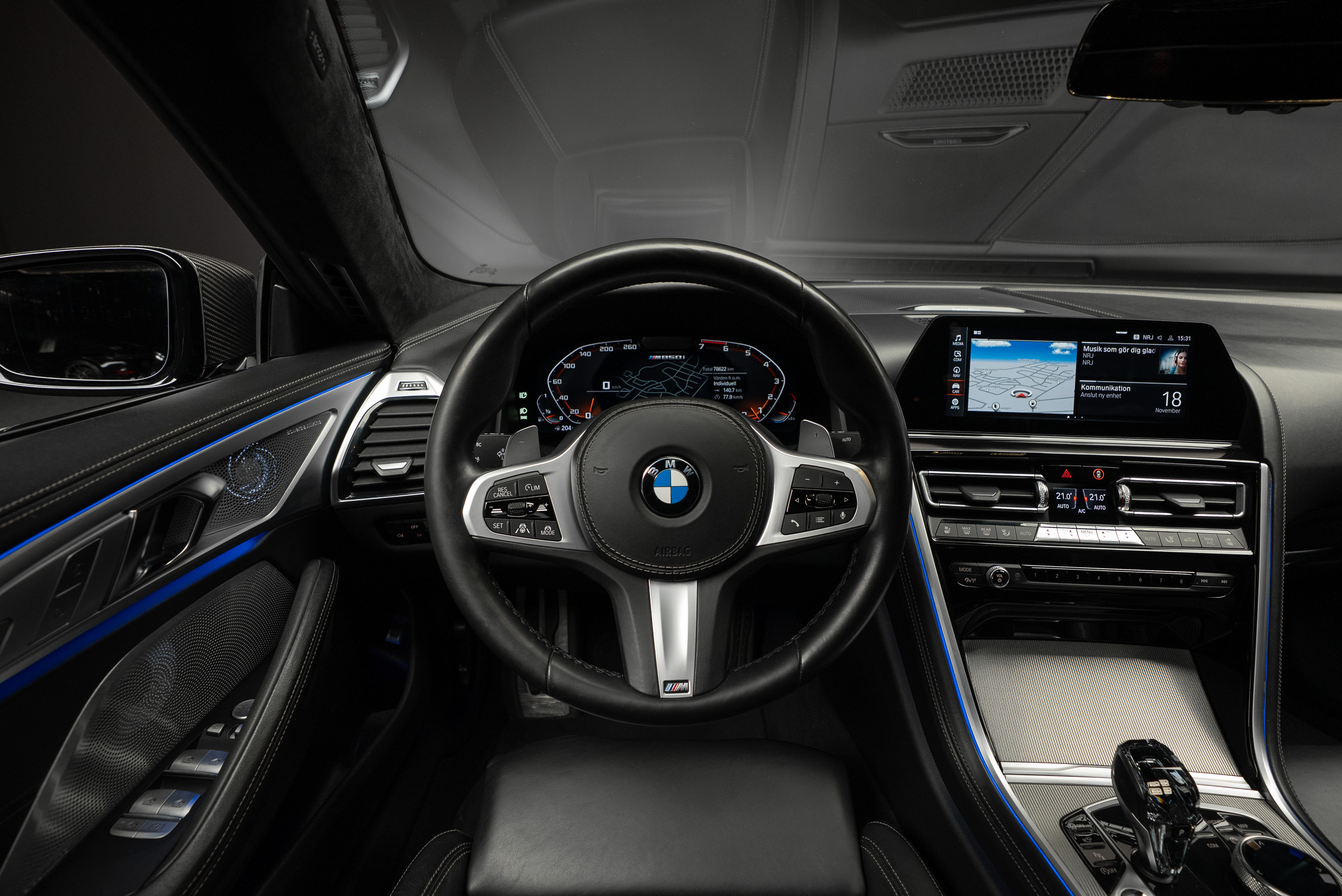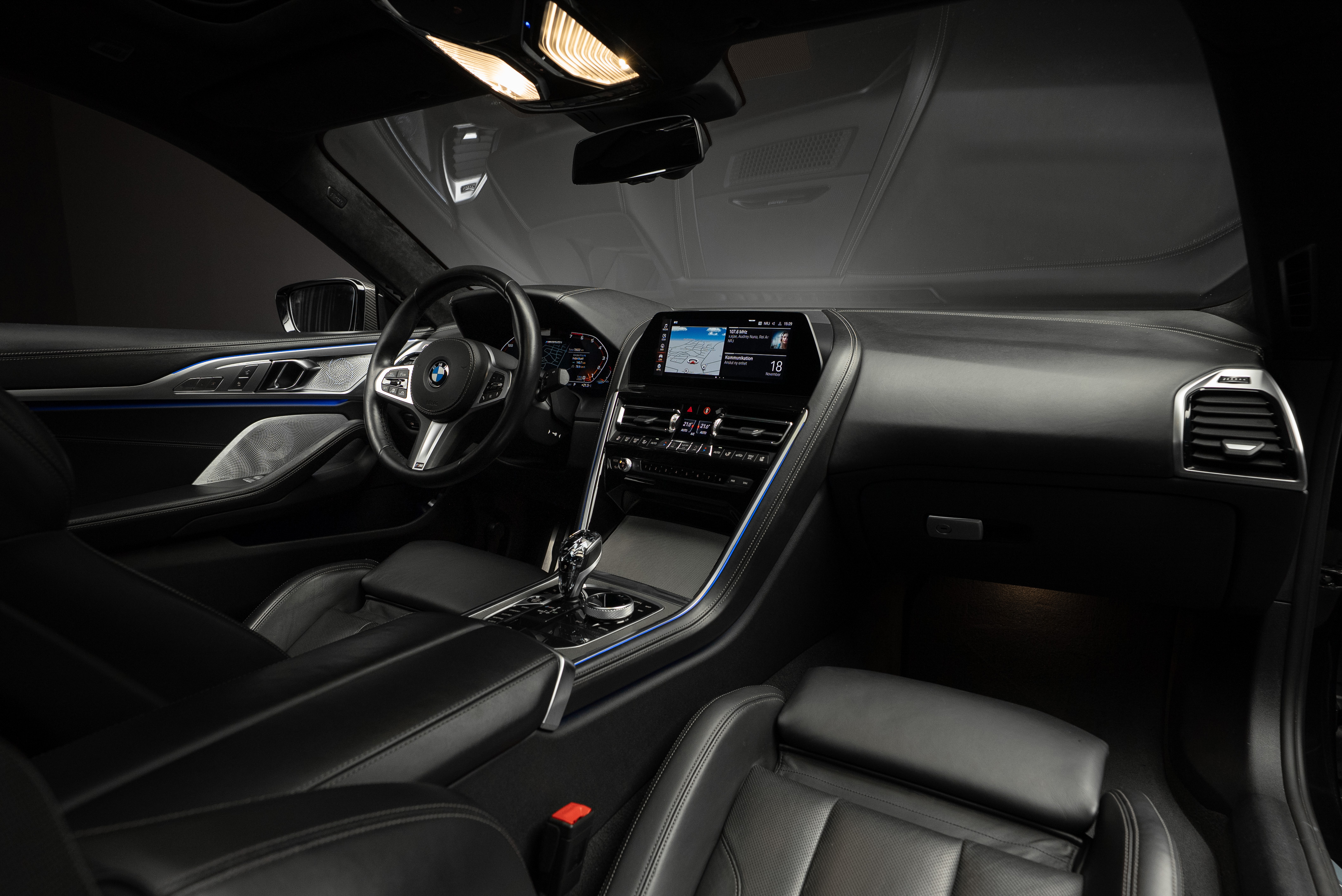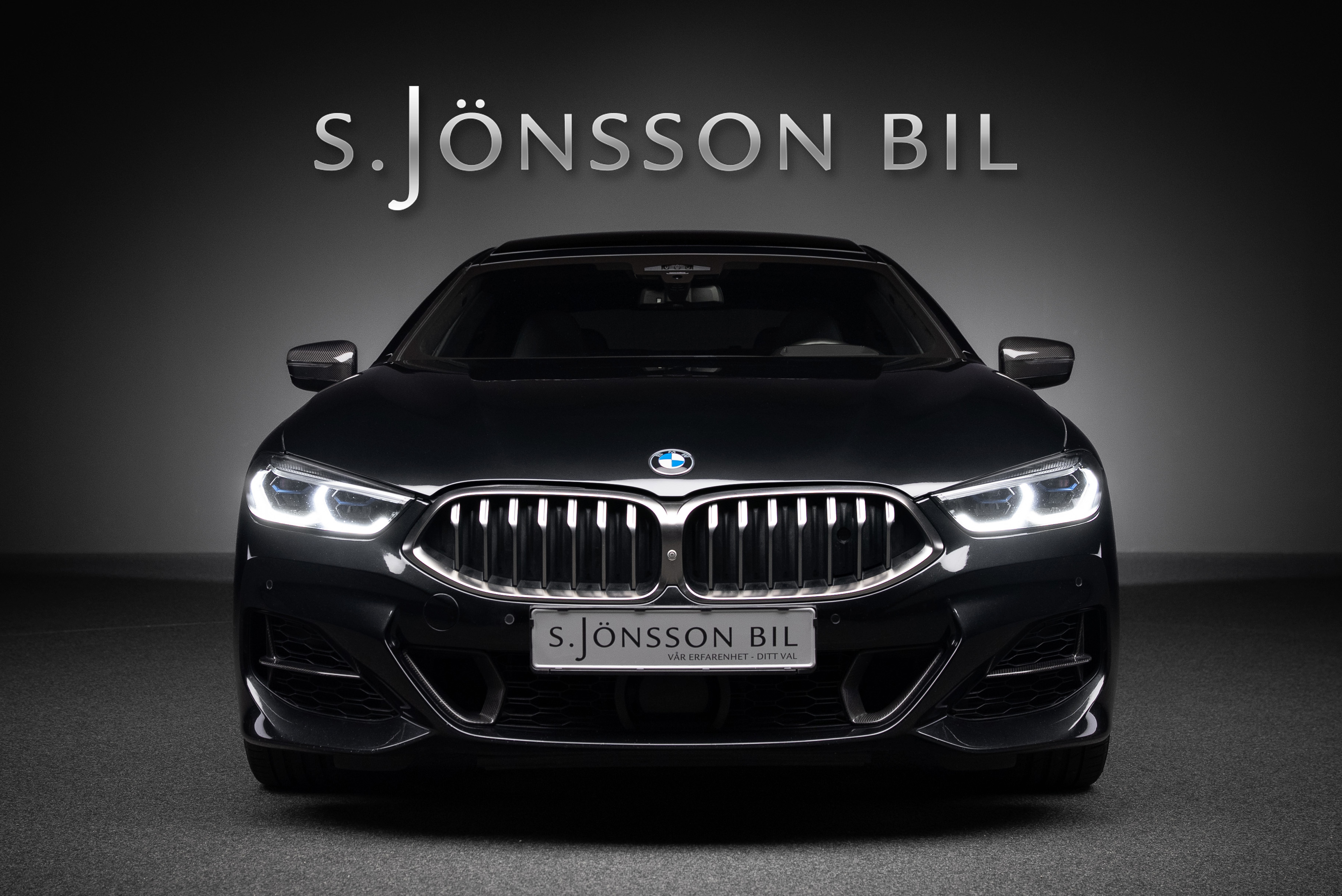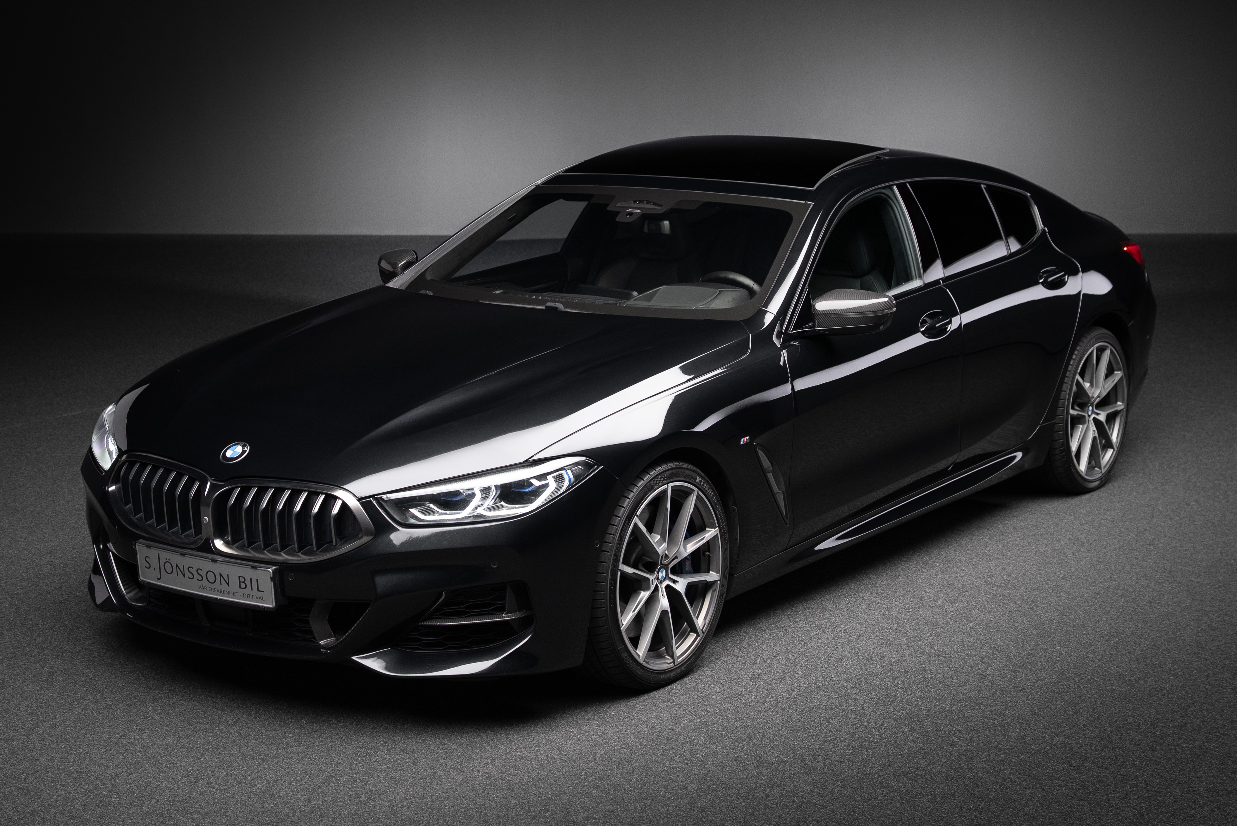 Andra generationen av 8-serien visades upp för första gången på Le Mans i juni 2018. Någon 8-serie hade då inte producerats på nästan 20 år. BMW M850i xDrive Gran Coupe kombinerar 8-seriens sportiga prestanda med alla tänkbara bekvämligheter för vardagligt bruk. Modellen är aerodynamiskt optimerad med låg tyngdpunkt, jämn viktfördelning och lägre vikt med en kaross i aluminium, magnesium och kolfiber. Gran Coupen har 201 mm längre hjulbas än BMW 8-serie Coupé vilket resulterar i ett rymligt baksäte med ett större benutrymme. Just detta exemplar är färdigställt i snygg Safirsvart metallic med elektriskt inställbara M-sportstolar i svart Merino helläder. Den 4,4-liters stora V8:an levererar hela 530hk / 750Nm. Steptronic 8-växlad automatlåda. 0-100 km/h avverkas på 3,9 sek.