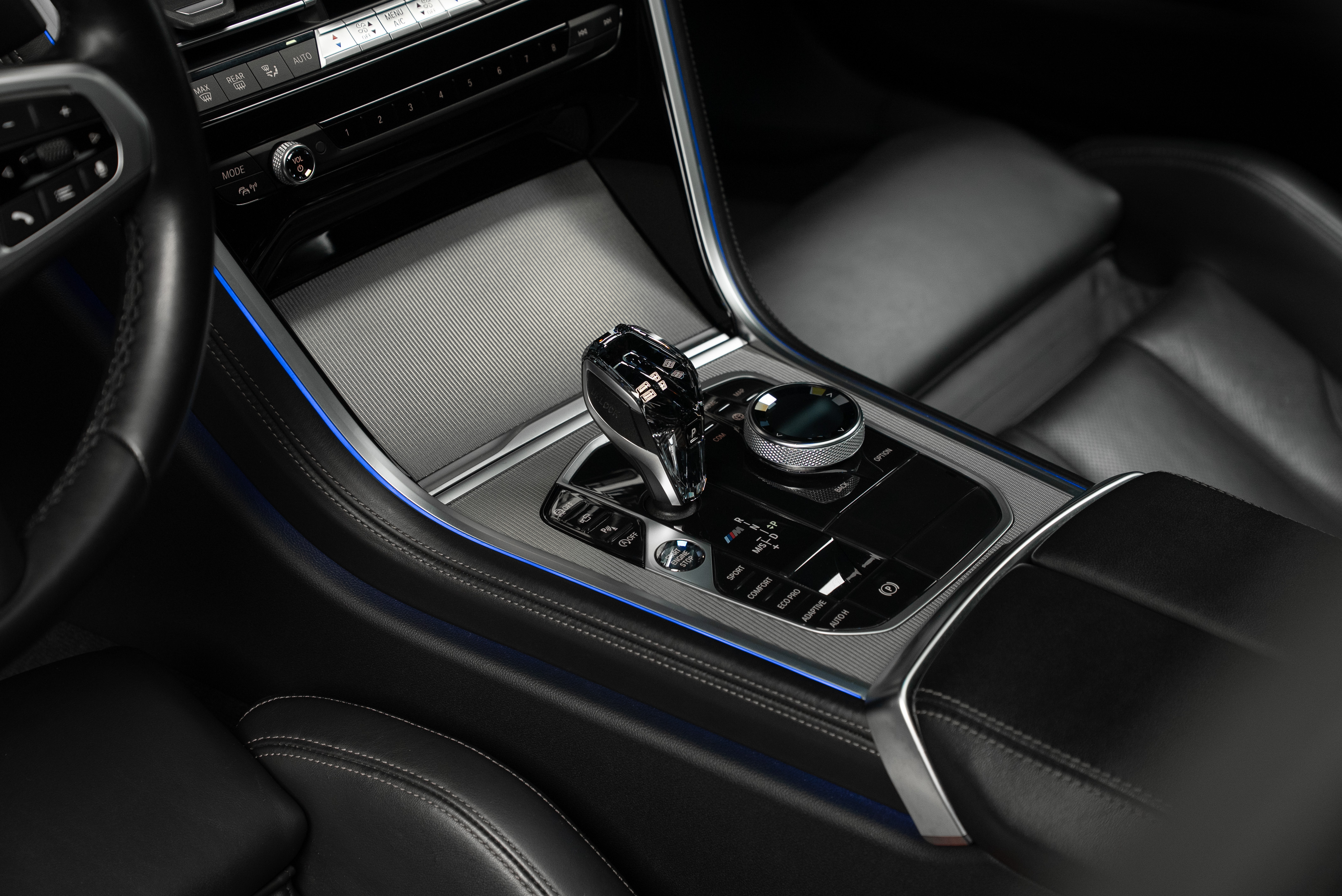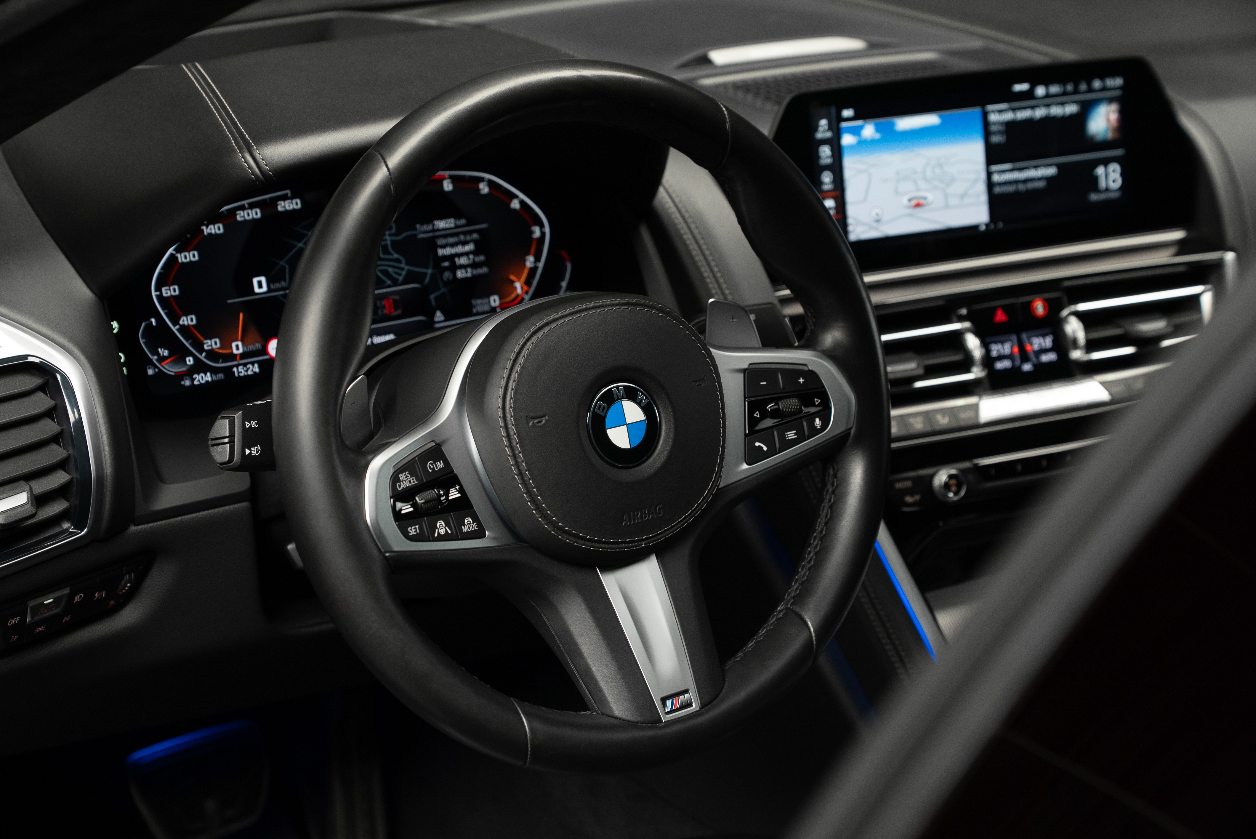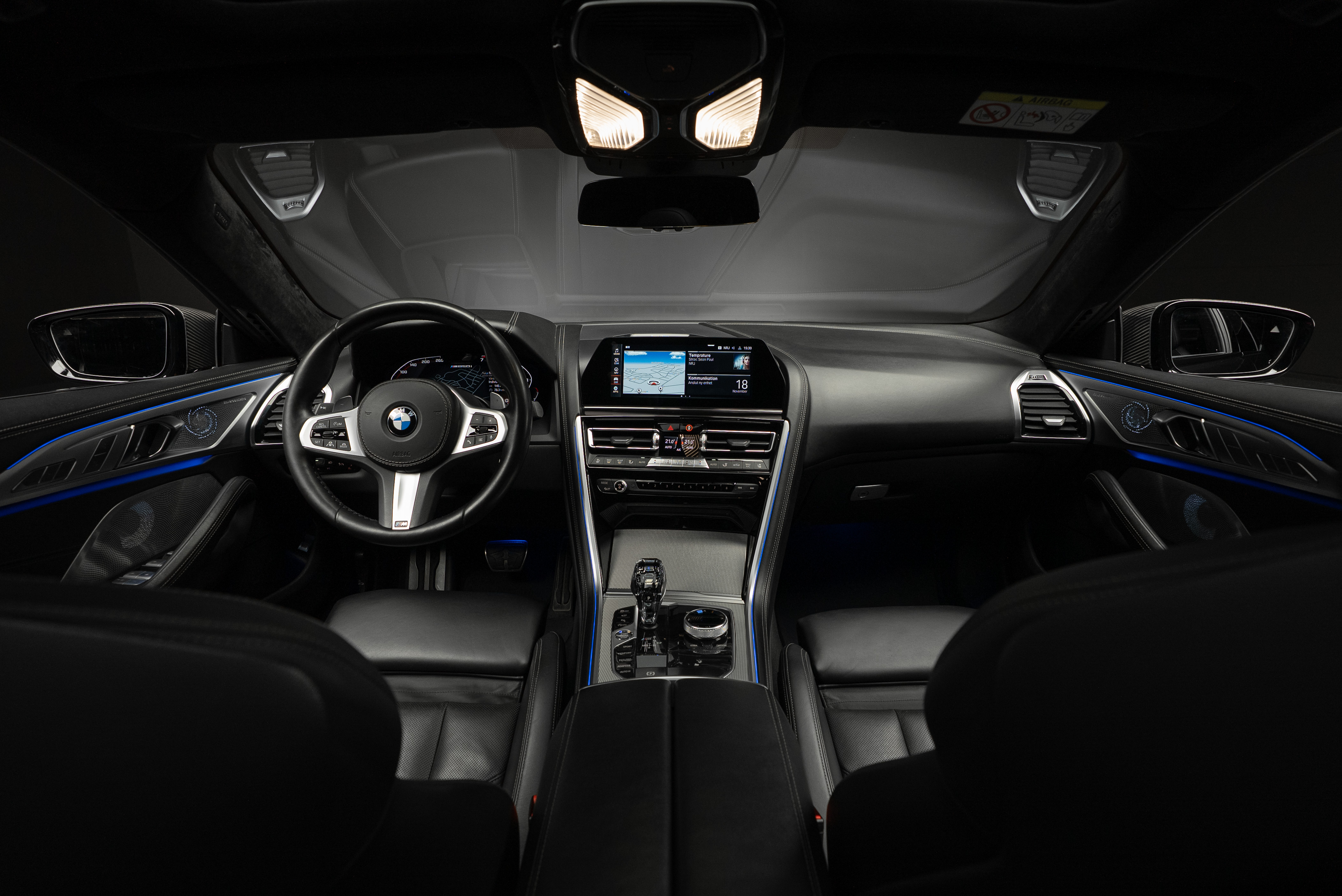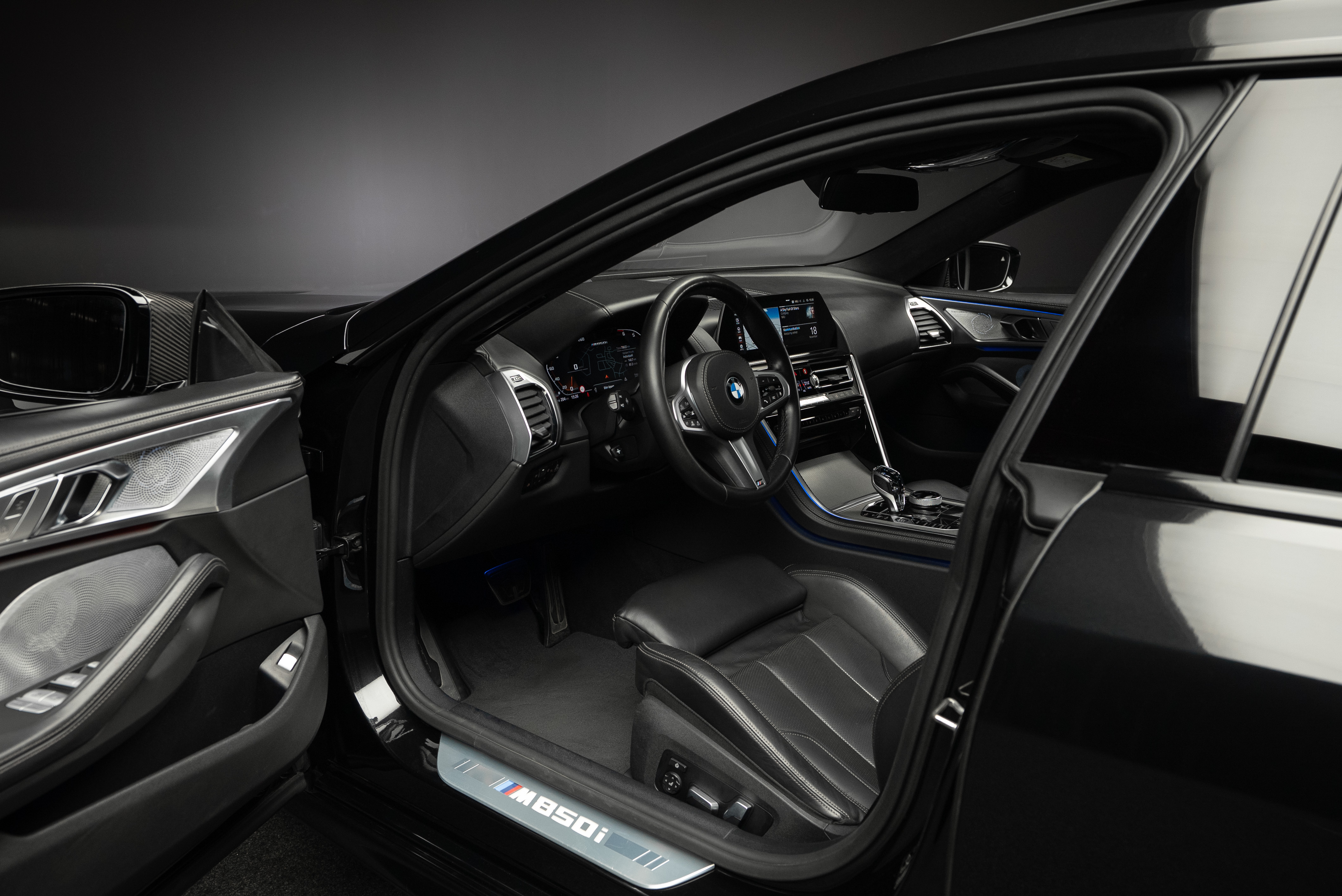 Andra generationen av 8-serien visades upp för första gången på Le Mans i juni 2018. Någon 8-serie hade då inte producerats på nästan 20 år. BMW M850i xDrive Gran Coupe kombinerar 8-seriens sportiga prestanda med alla tänkbara bekvämligheter för vardagligt bruk. Modellen är aerodynamiskt optimerad med låg tyngdpunkt, jämn viktfördelning och lägre vikt med en kaross i aluminium, magnesium och kolfiber. Gran Coupen har 201 mm längre hjulbas än BMW 8-serie Coupé vilket resulterar i ett rymligt baksäte med ett större benutrymme. Just detta exemplar är färdigställt i snygg Safirsvart metallic med elektriskt inställbara M-sportstolar i svart Merino helläder. Den 4,4-liters stora V8:an levererar hela 530hk / 750Nm. Steptronic 8-växlad automatlåda. 0-100 km/h avverkas på 3,9 sek.