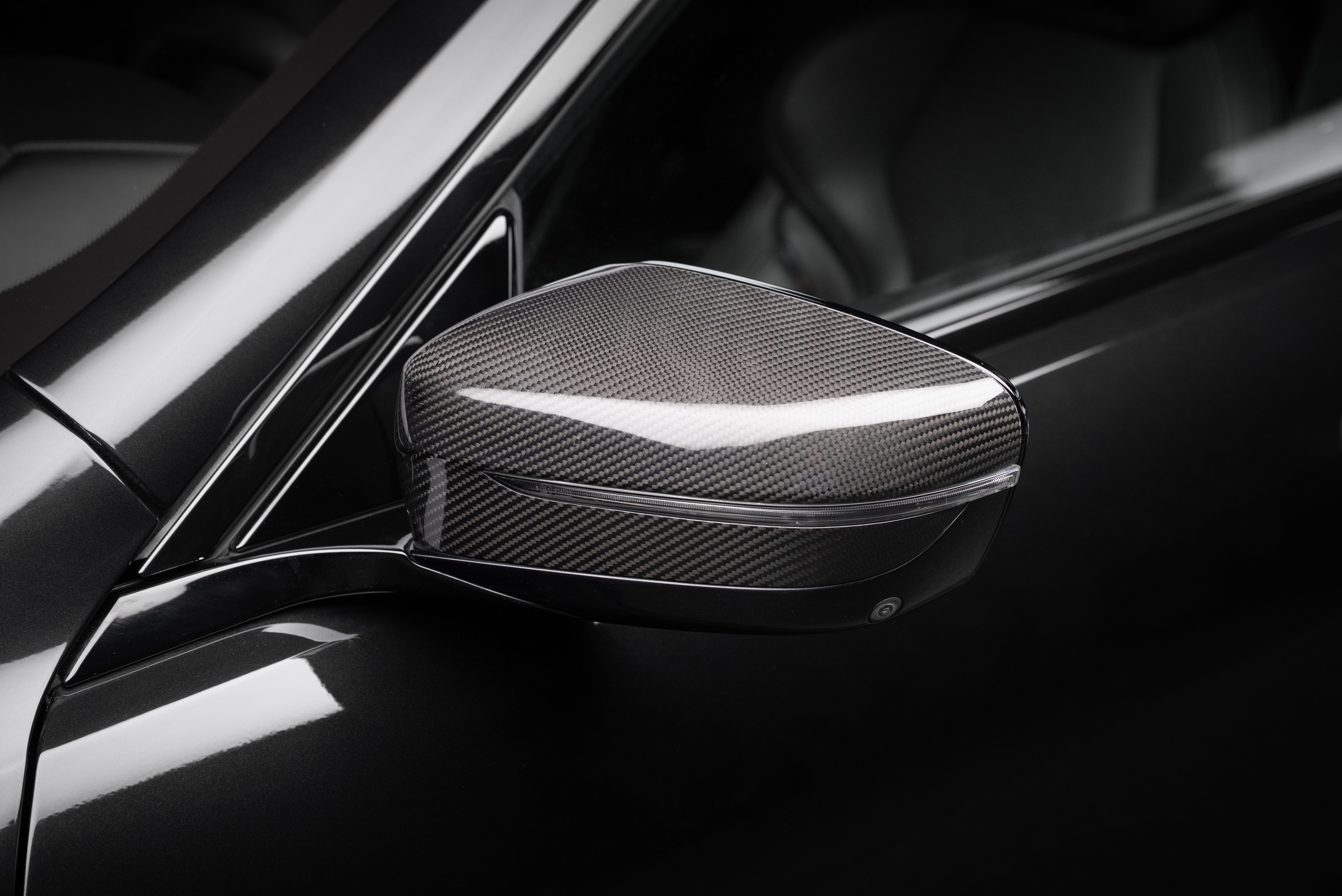 - M Exteriört Carbon Package med specialdesignad diffusorinsats för bakpartiet i kolfiber, ytterbackspegelkåpor i kolfiber samt luftströmningselementen i den främre stötfångaren i kolfiber