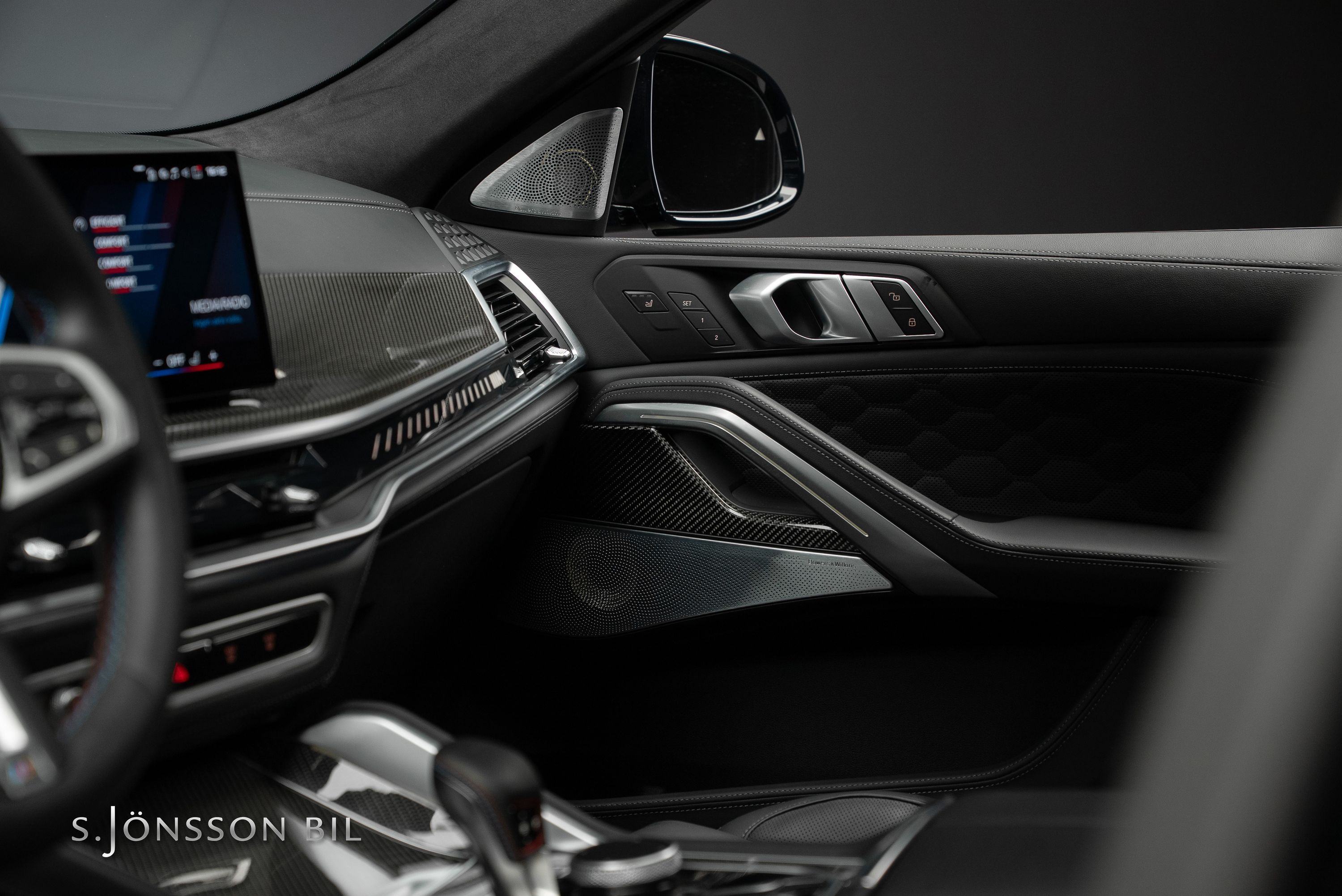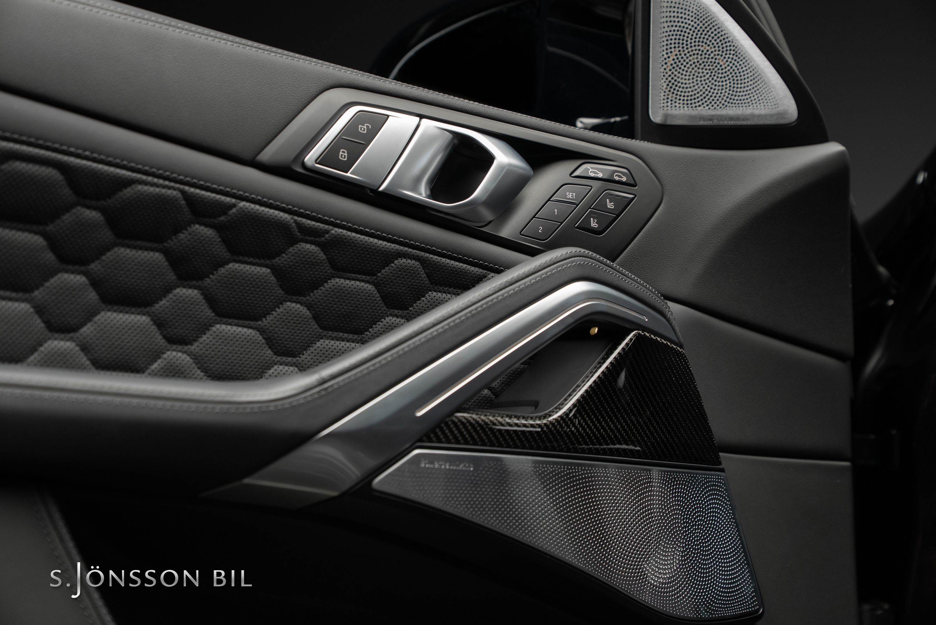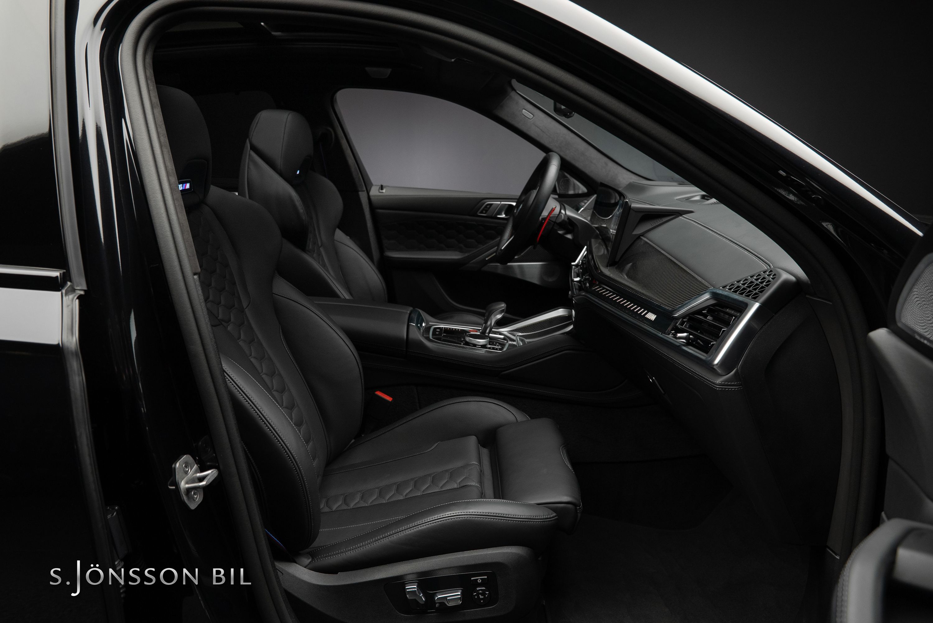 BMW X6 M Competition lackerad i Black Sapphire Metallic kombinerat med svart läderinteriör samt kolfiber utvändigt och invändigt. Under huven så hittar vi en 4.4 liters V8 som kombinerat med BMW:s XDrive producerar 625hk och 750nm vilket leder till 0-100km/h på 3.9 sekunder.