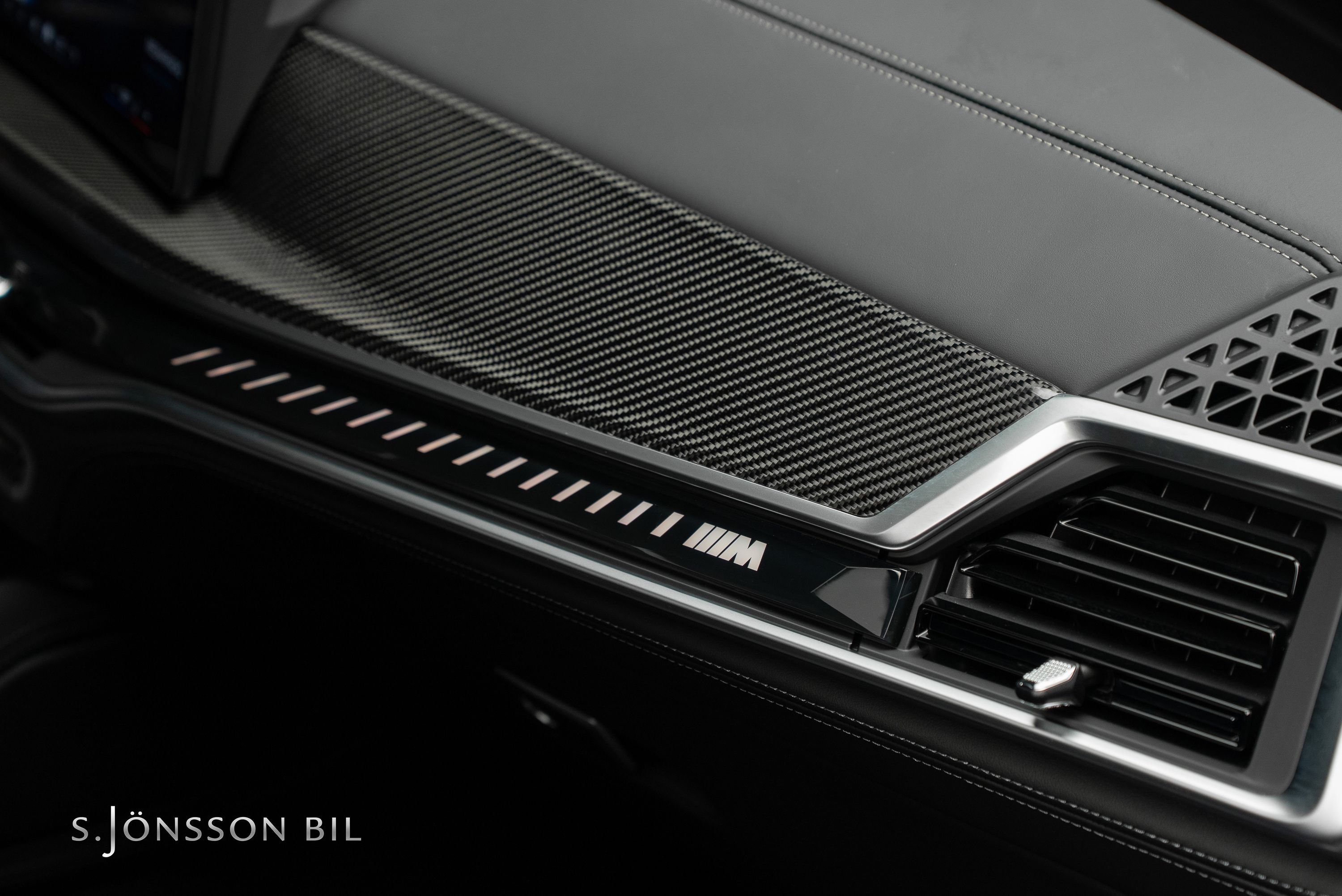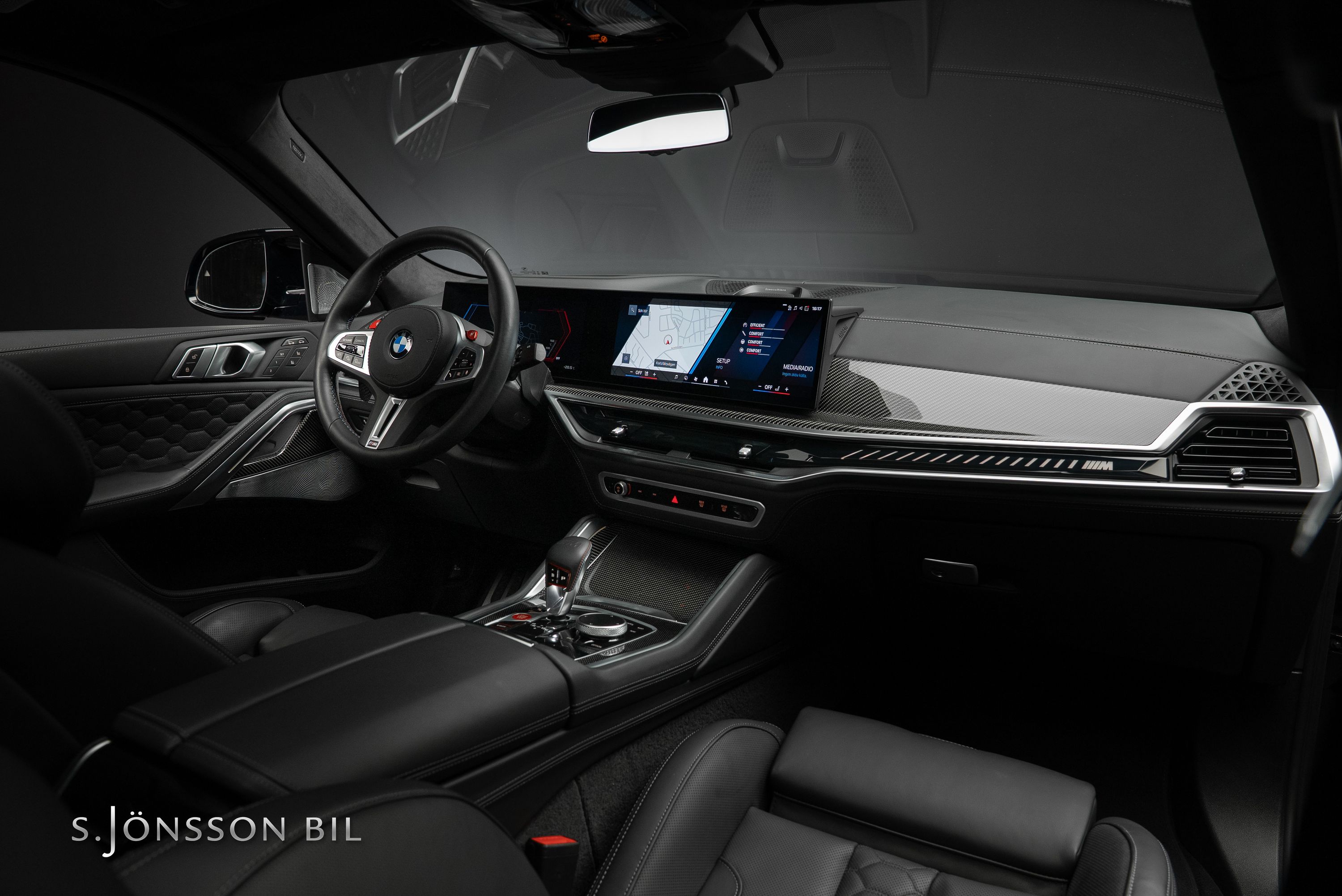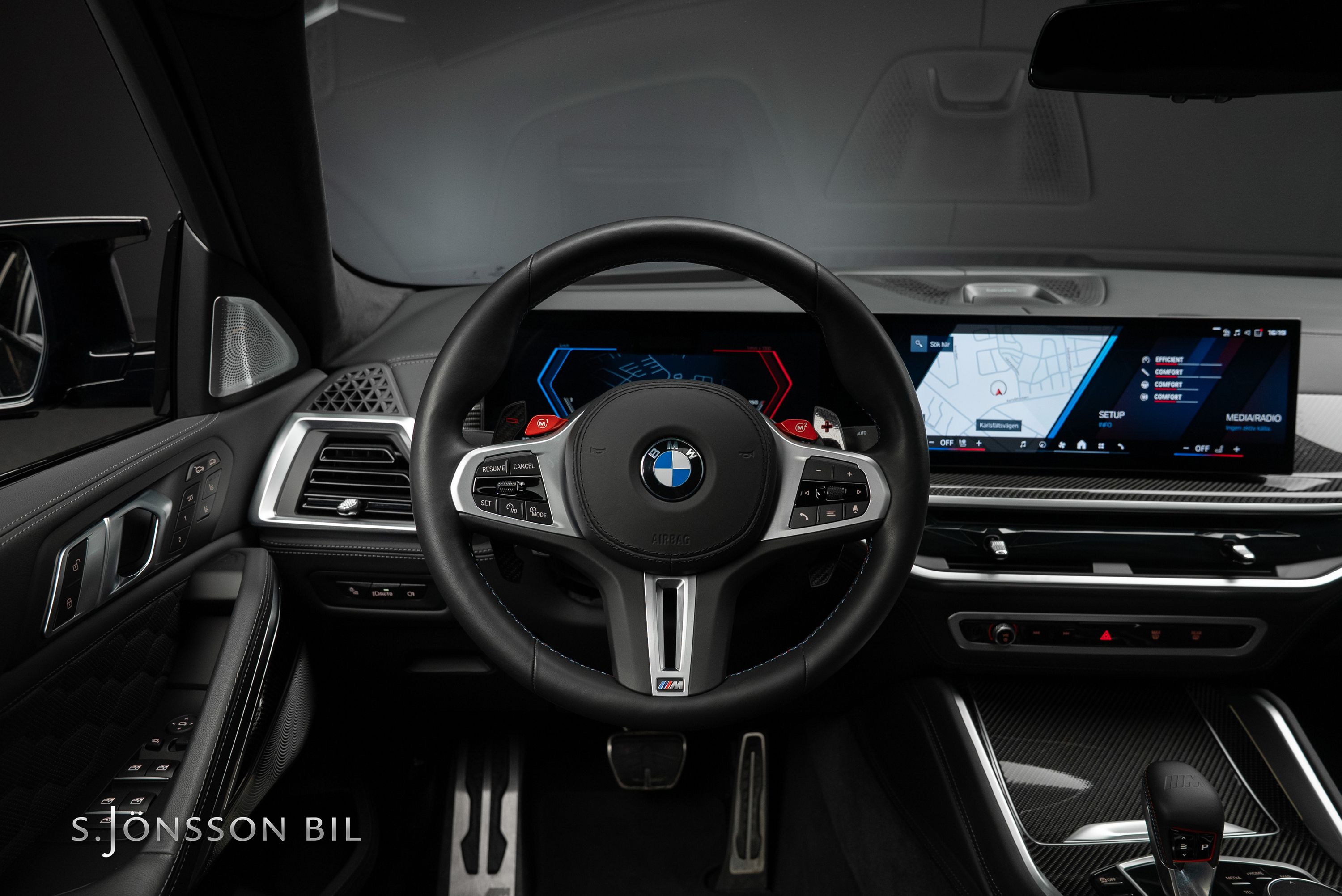 BMW X6 M Competition lackerad i Black Sapphire Metallic kombinerat med svart läderinteriör samt kolfiber utvändigt och invändigt. Under huven så hittar vi en 4.4 liters V8 som kombinerat med BMW:s XDrive producerar 625hk och 750nm vilket leder till 0-100km/h på 3.9 sekunder.