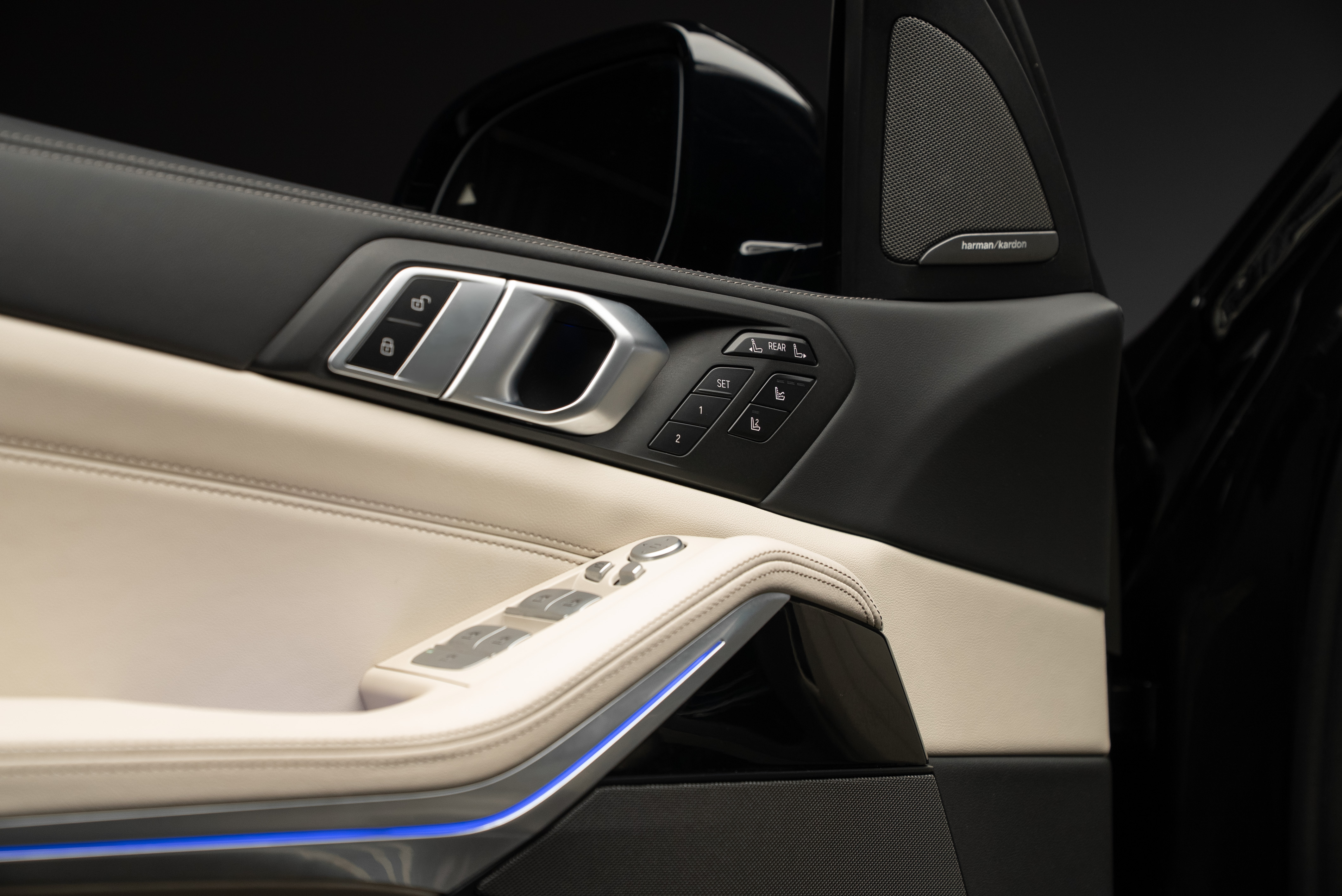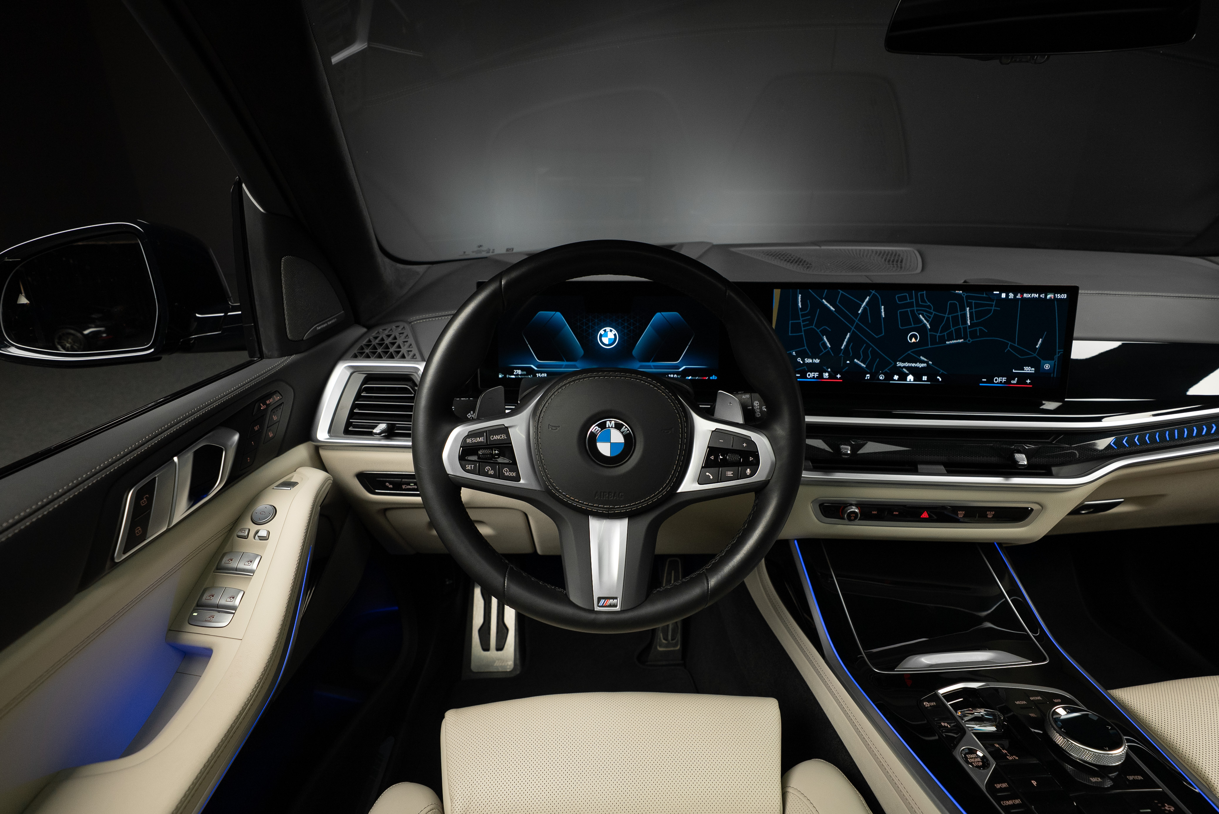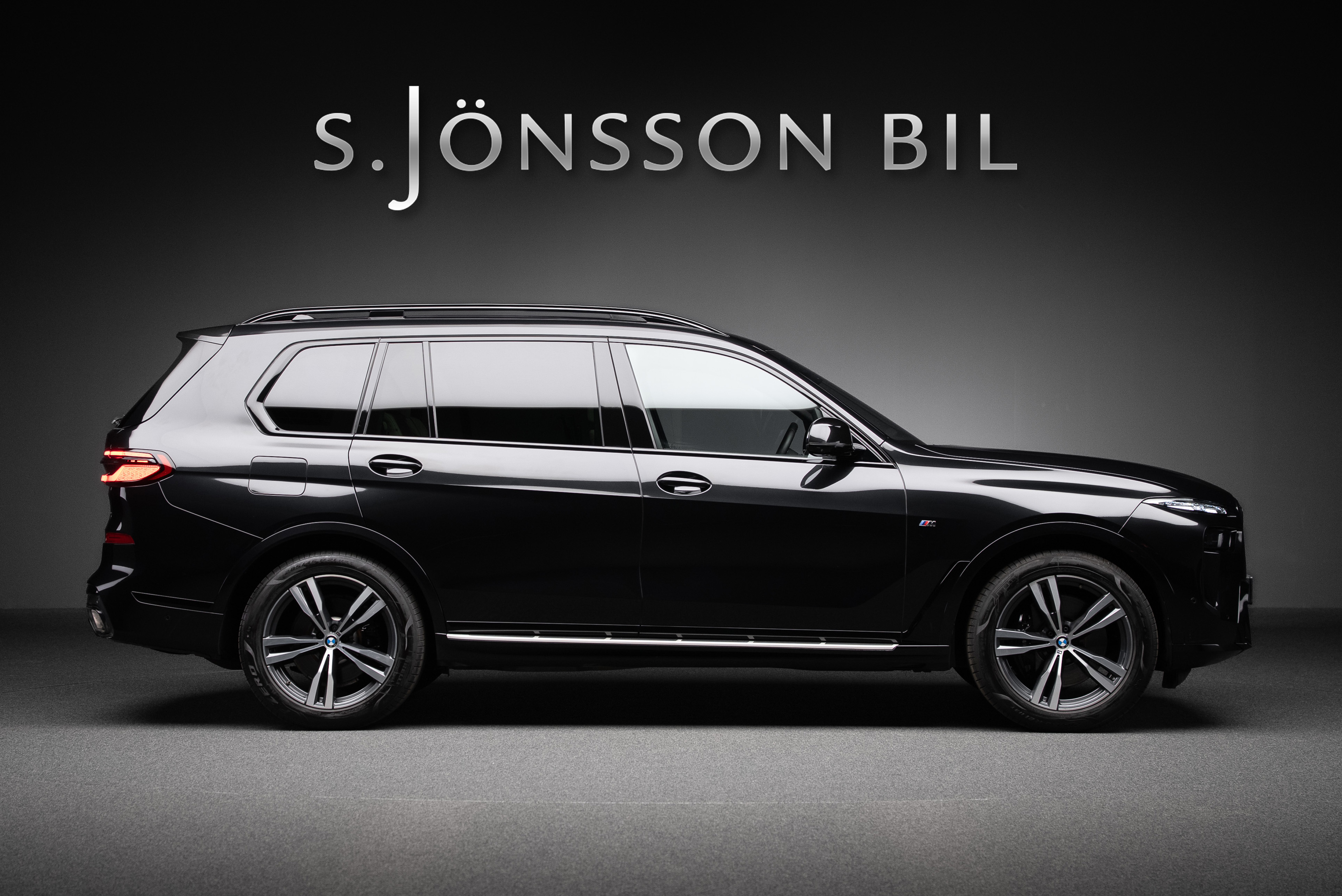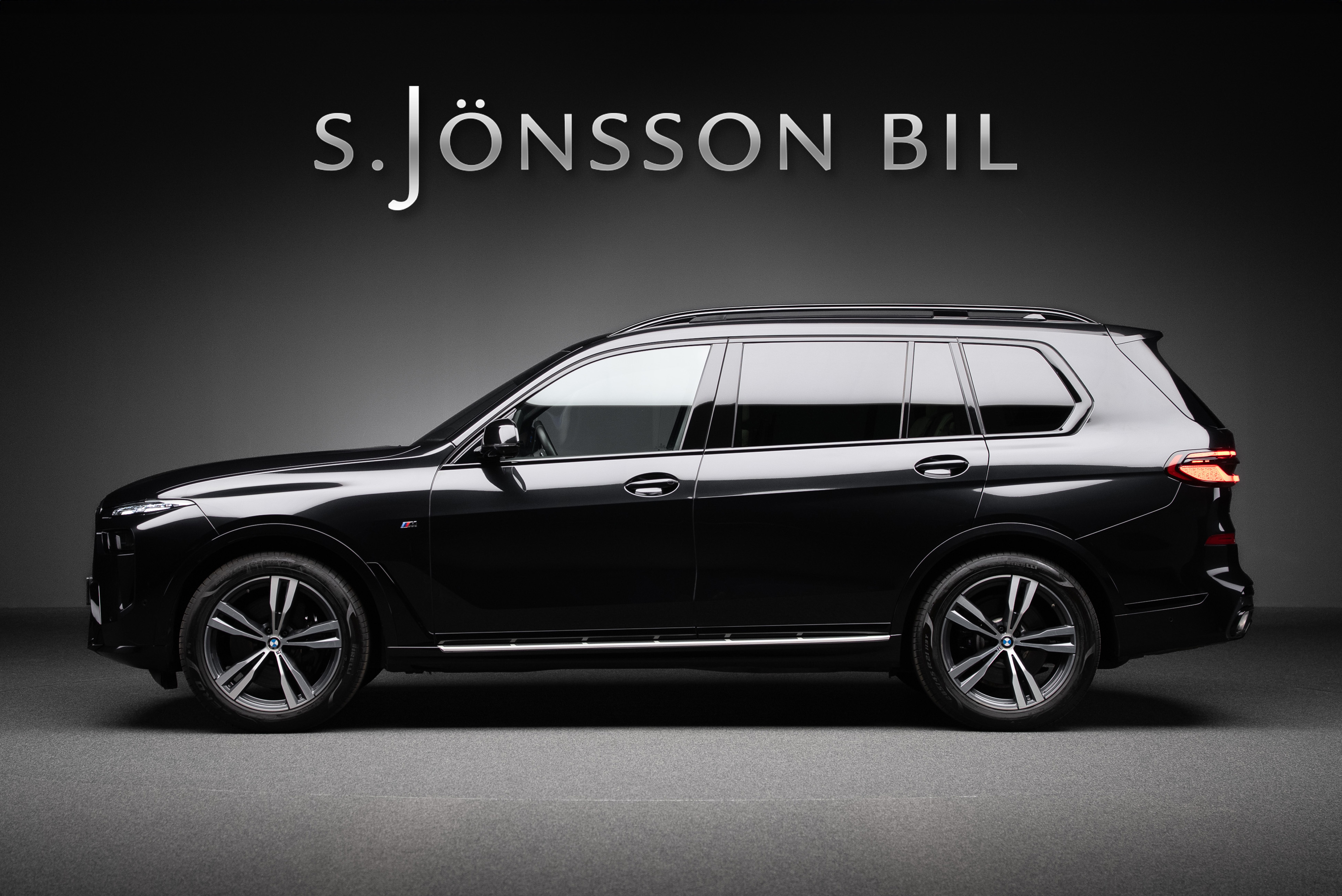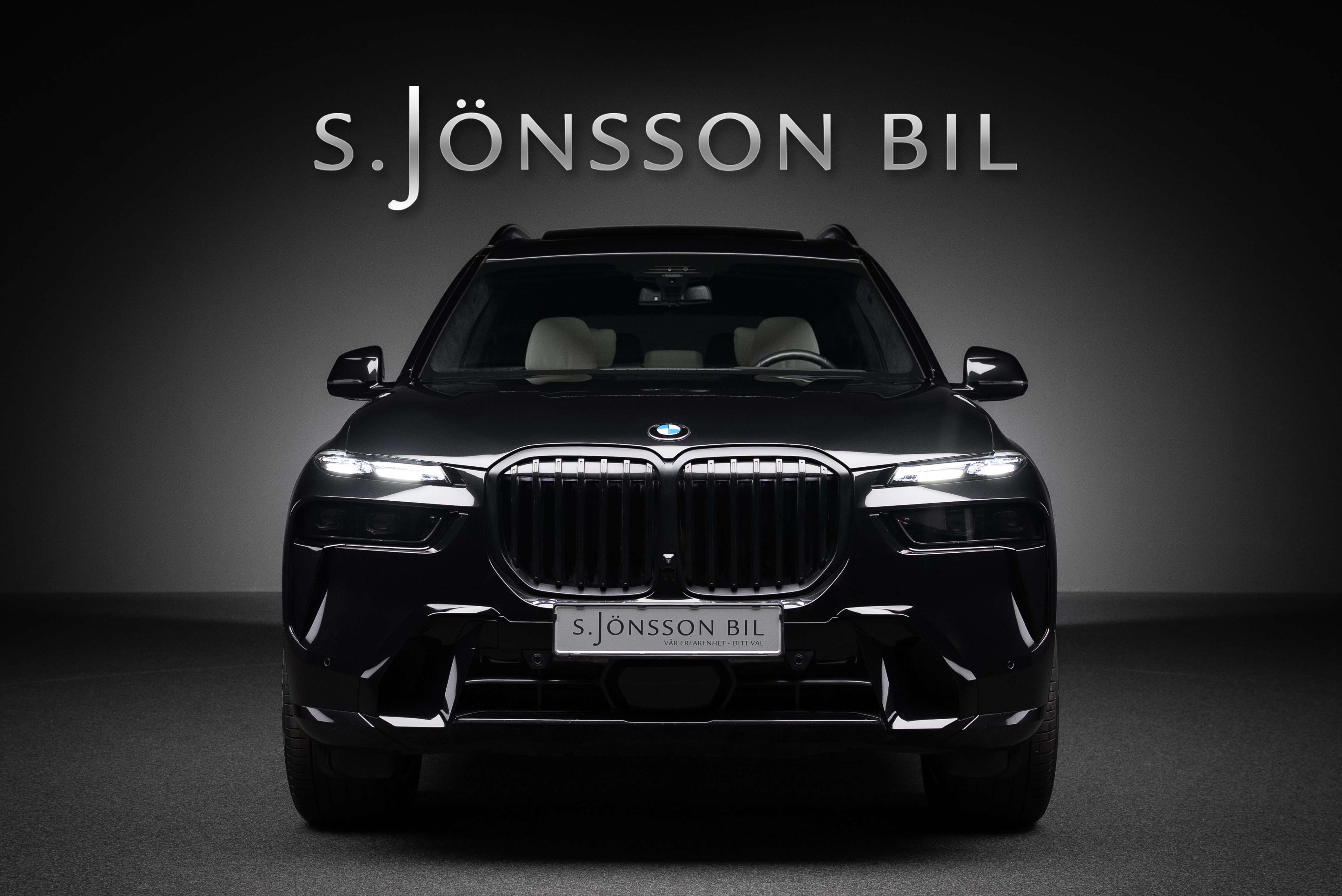 BMW X7 40d lackerad i Black Sapphire metallic kombinerat med utökat Individual merino läder i ivory.
