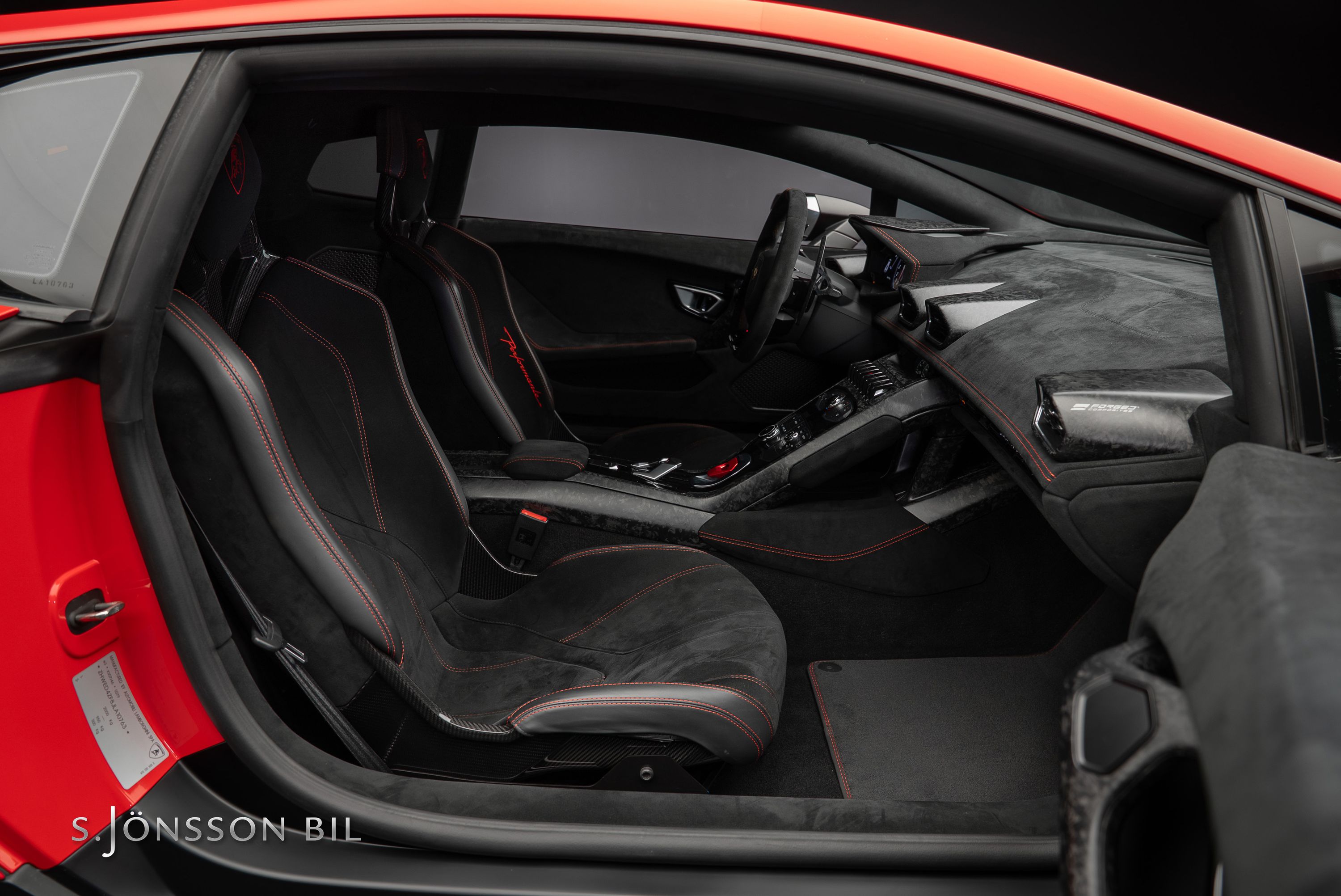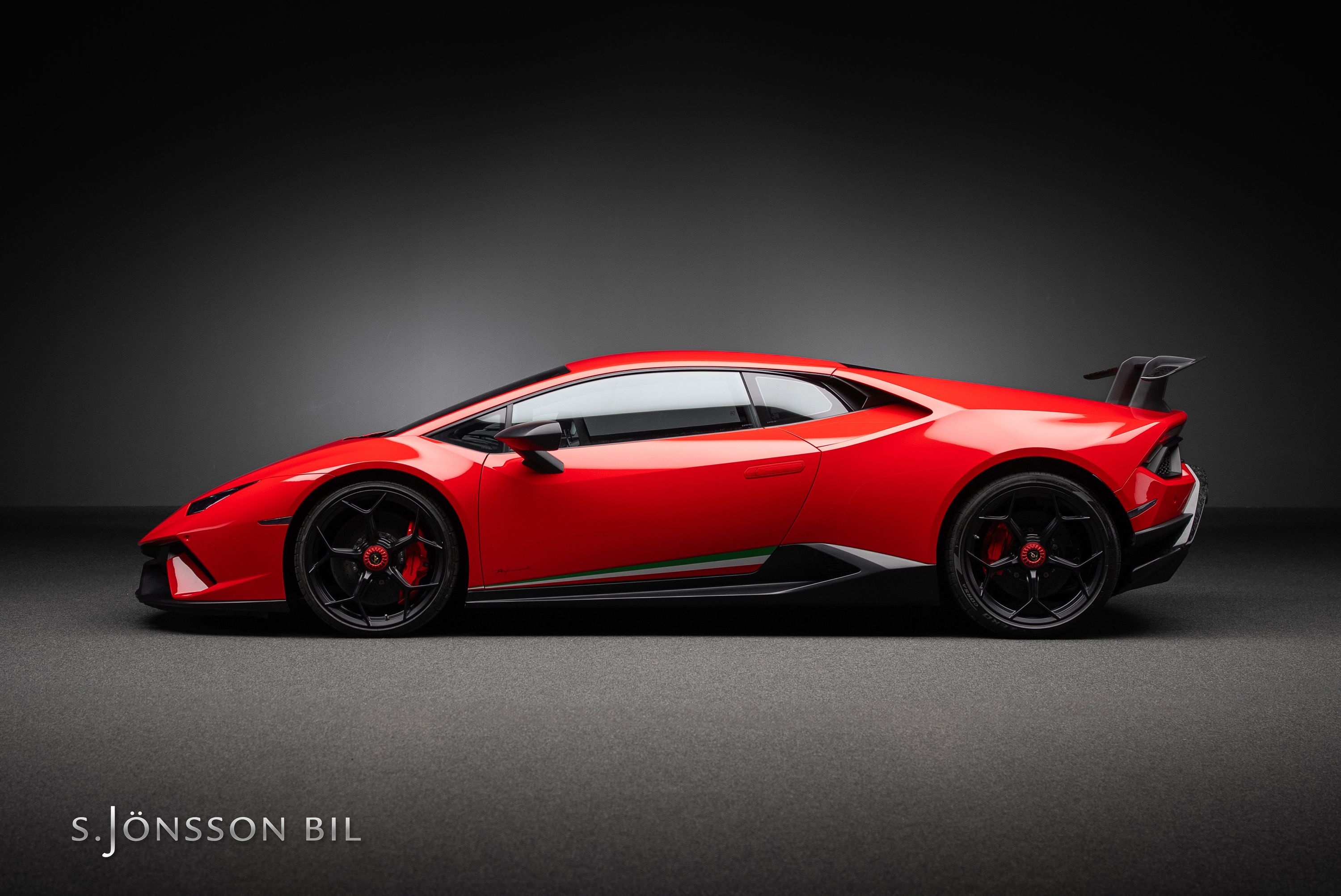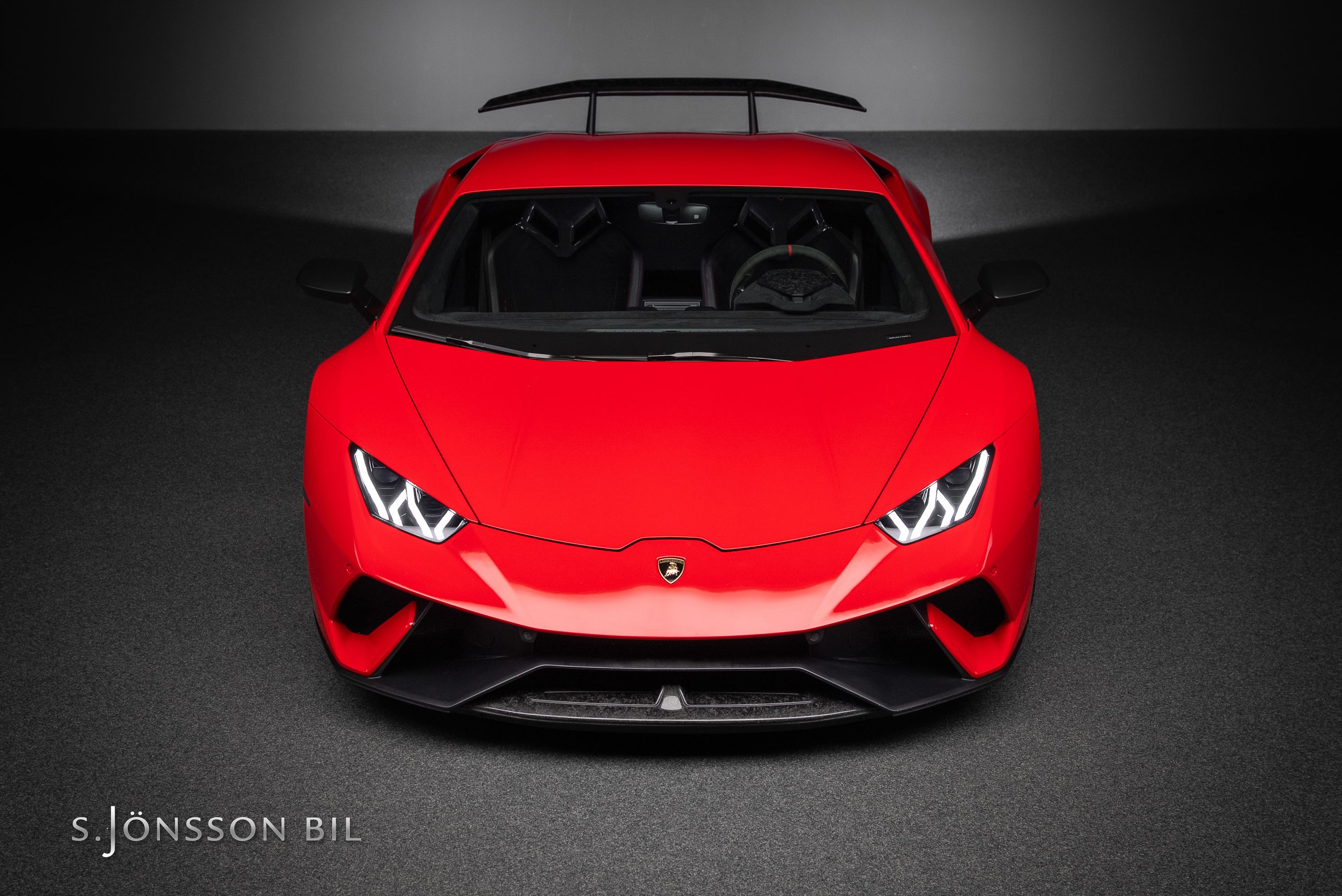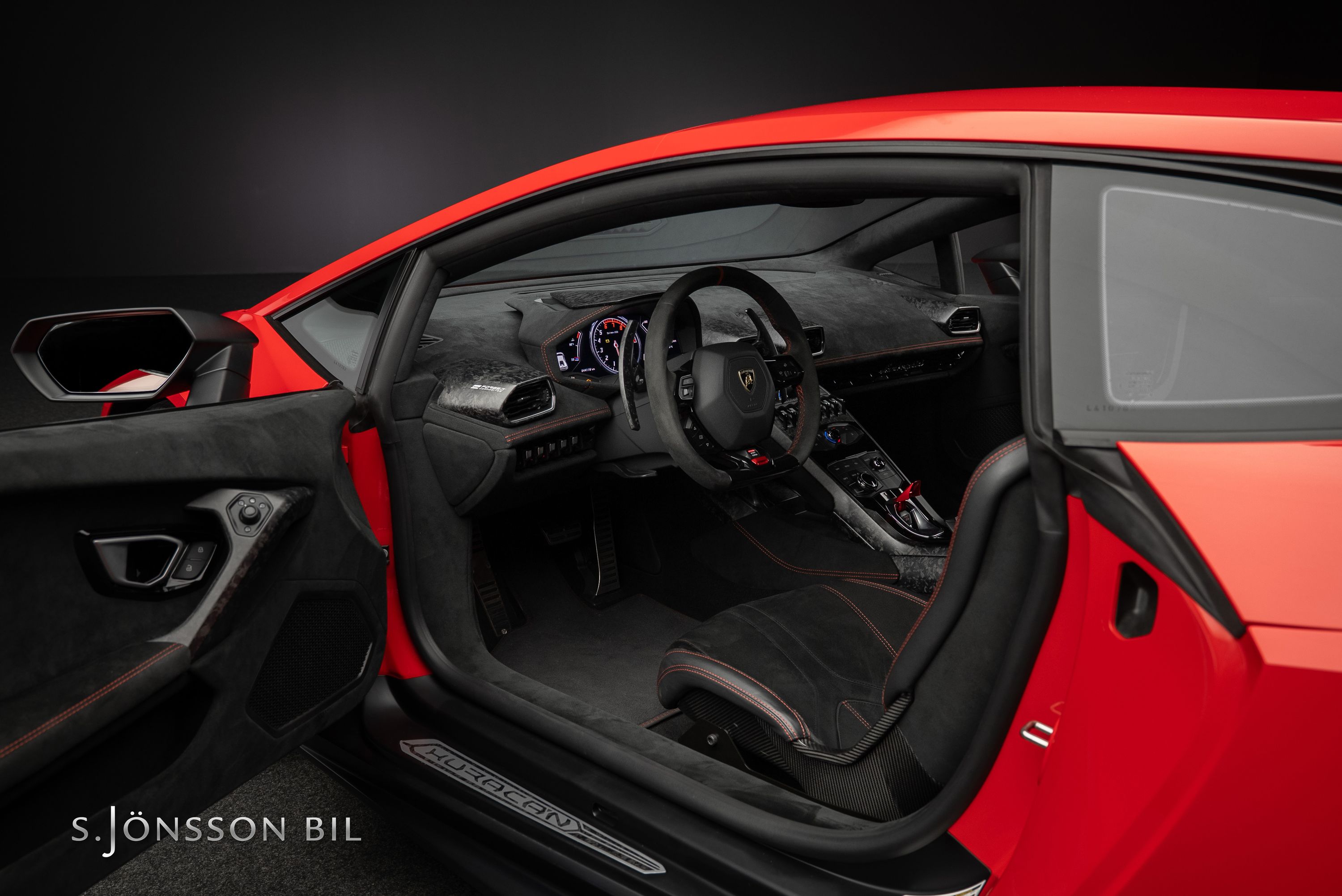 Lamborghini Huracán Performante 640hk lackerad i Rosso Mars Metallic tillsammans med sportivo interiören samt kolfiberstolar med Rosso Alala sömmar. Performante är en prestandaorienterad version av Huracán-serien. Modellen introducerades vid Genèvesalongen år 2017 och uppmärksammades särskilt för att ha satt ett varvrekord för serietillverkade bilar på Nürburgring Nordschleife.