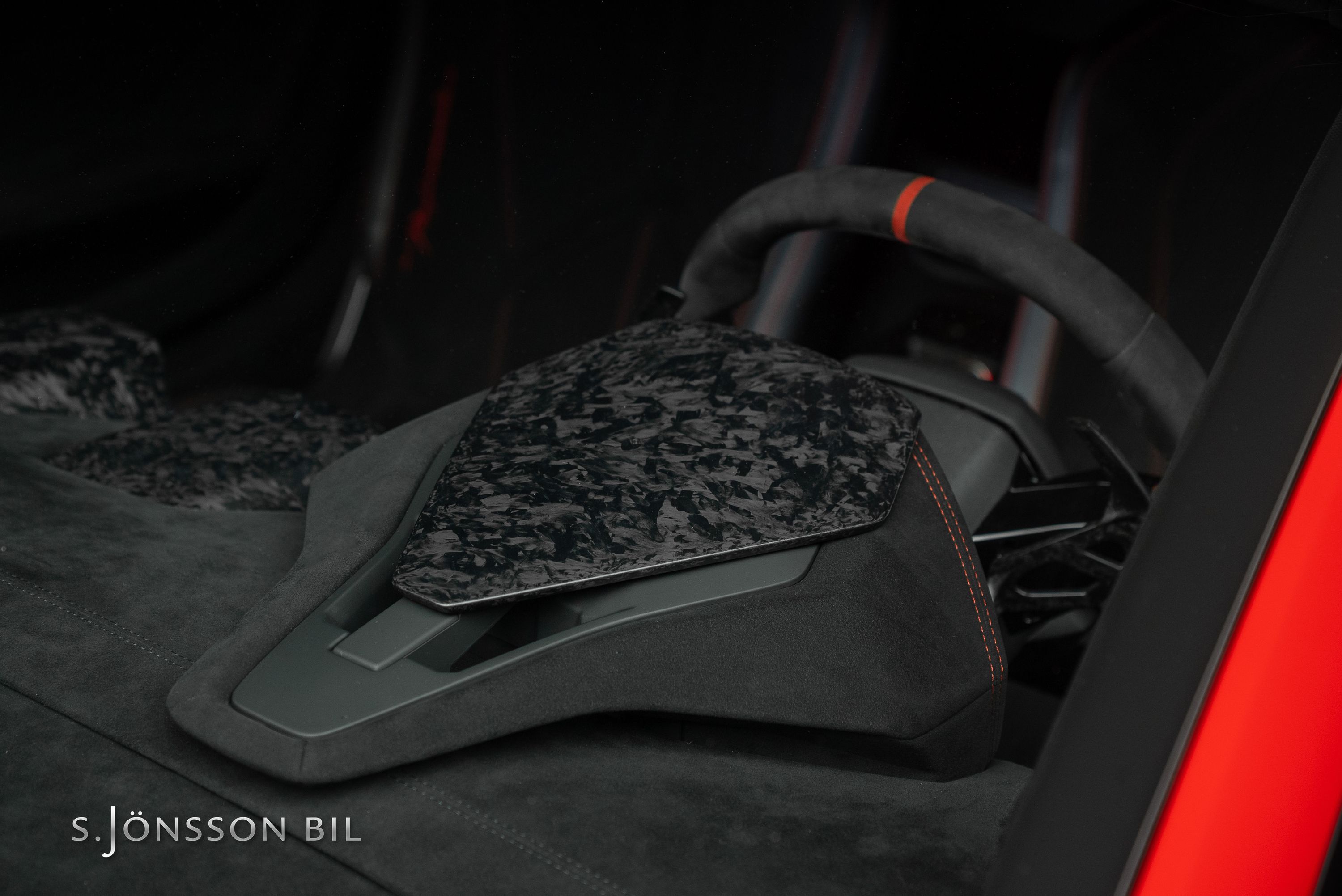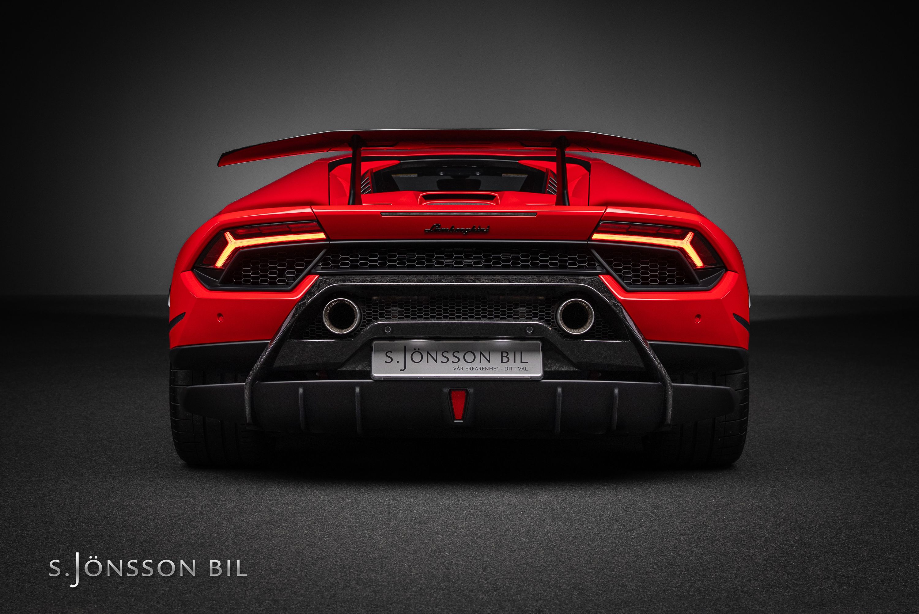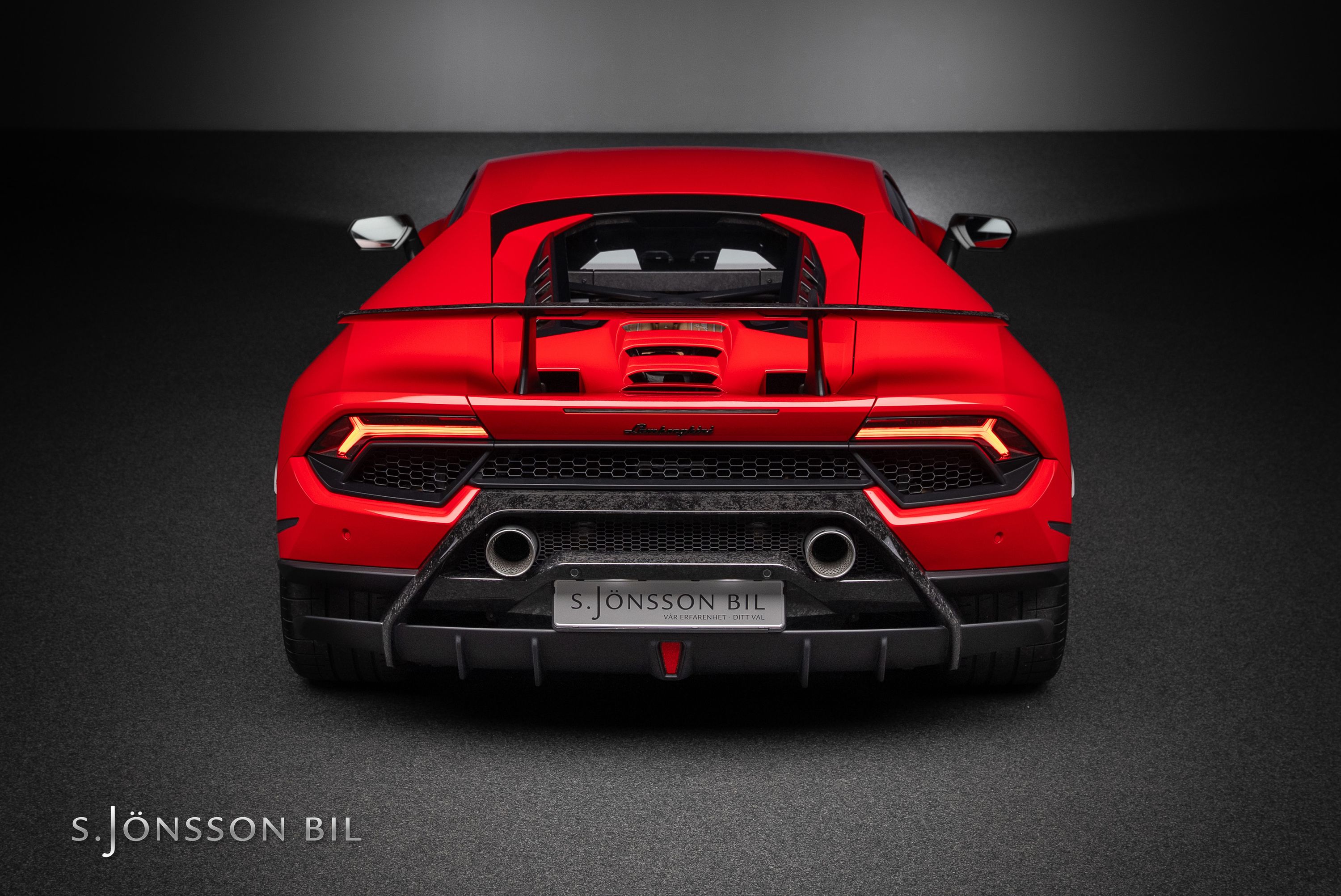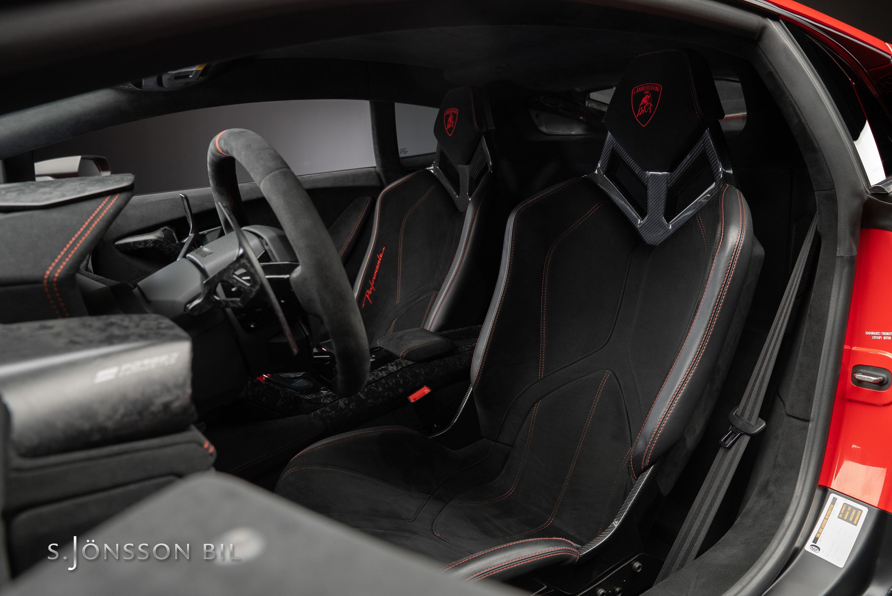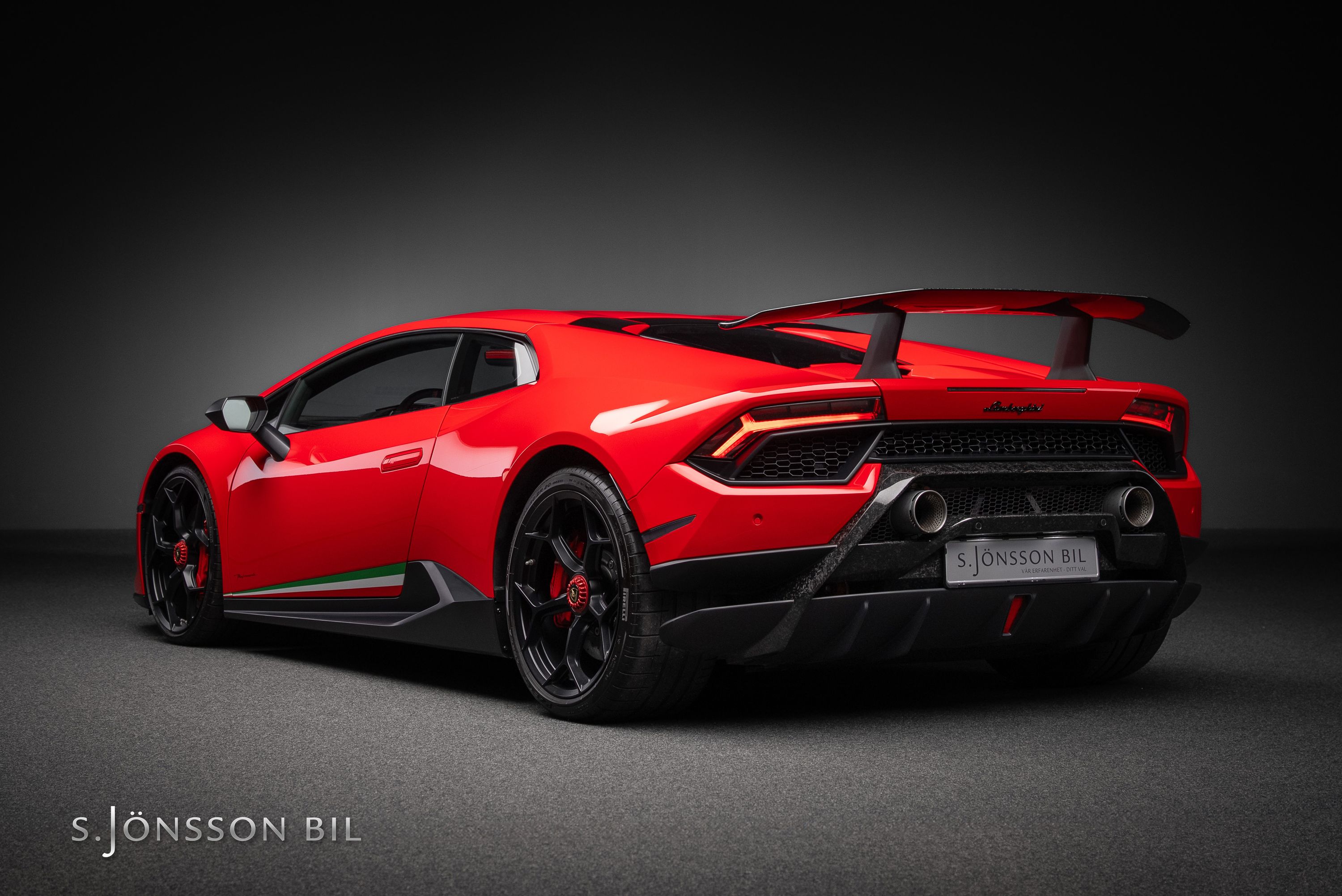 Lamborghini Huracán Performante 640hk lackerad i Rosso Mars Metallic tillsammans med sportivo interiören samt kolfiberstolar med Rosso Alala sömmar. Performante är en prestandaorienterad version av Huracán-serien. Modellen introducerades vid Genèvesalongen år 2017 och uppmärksammades särskilt för att ha satt ett varvrekord för serietillverkade bilar på Nürburgring Nordschleife.