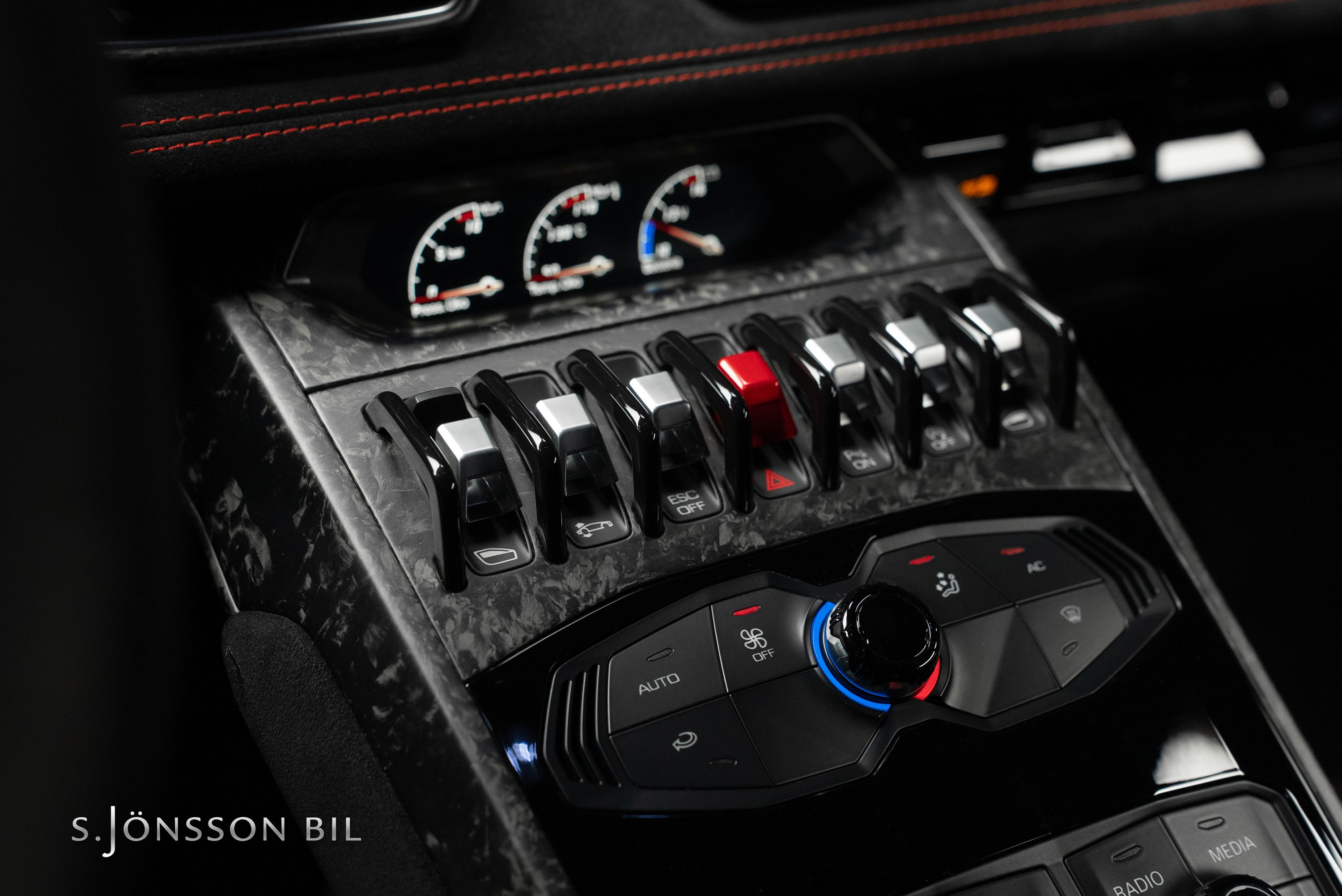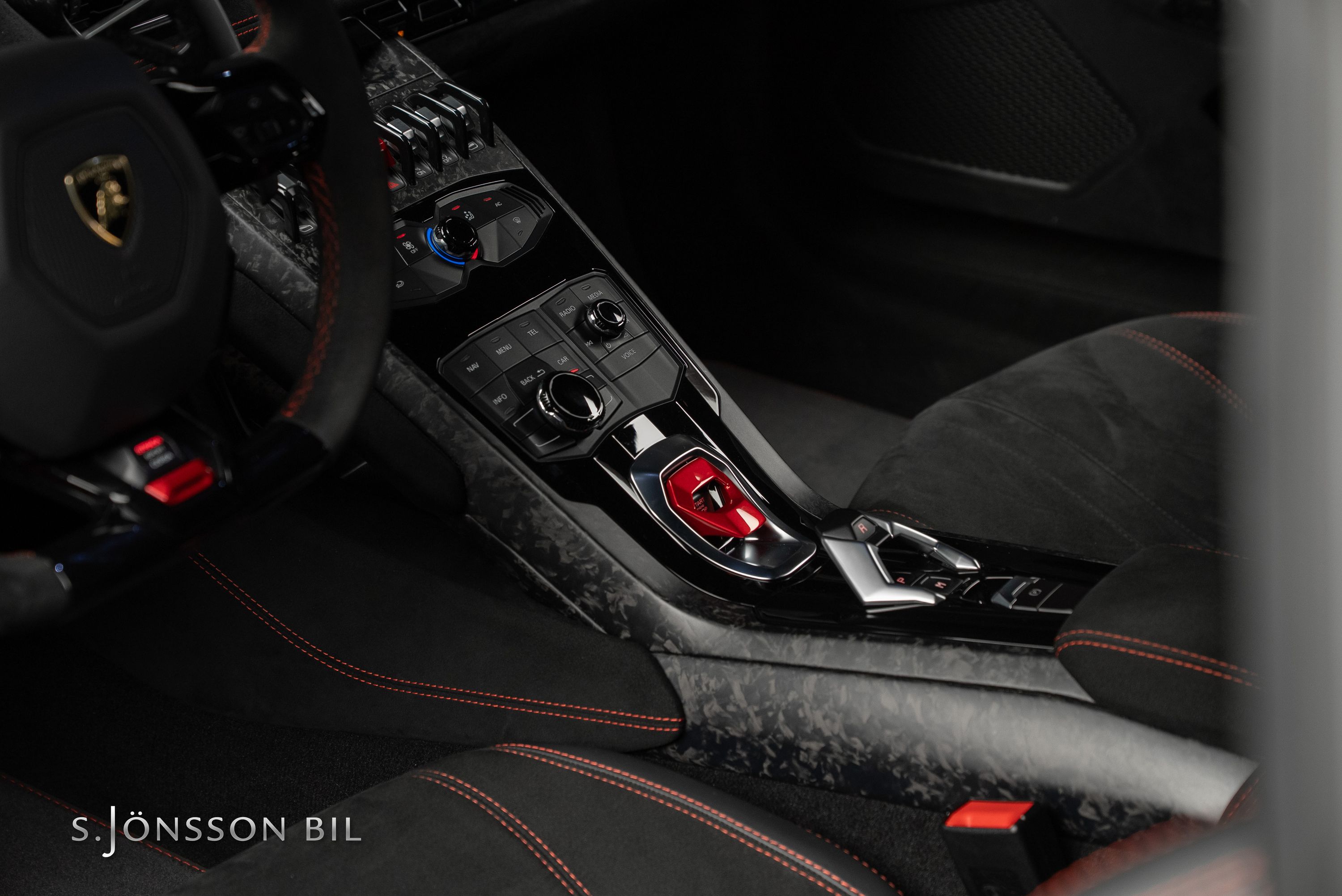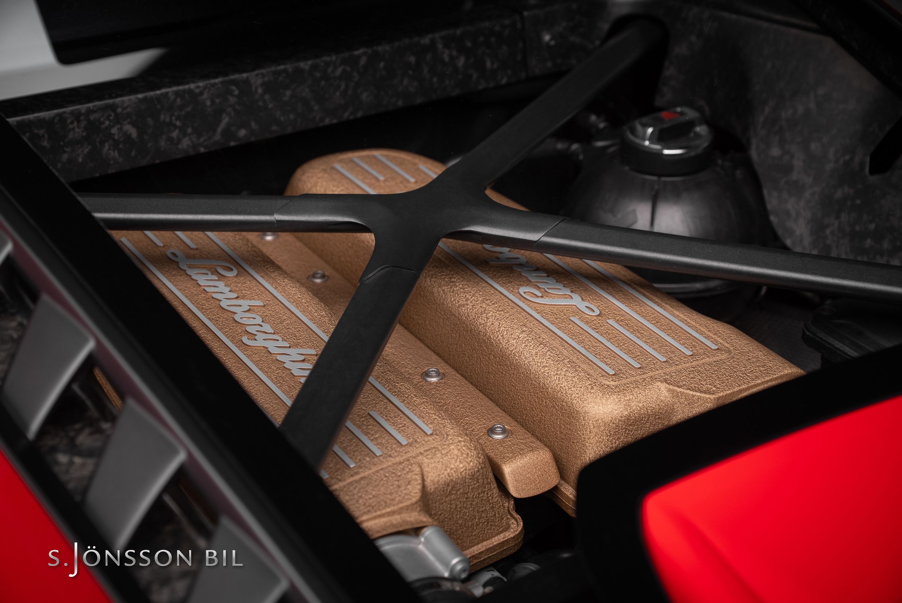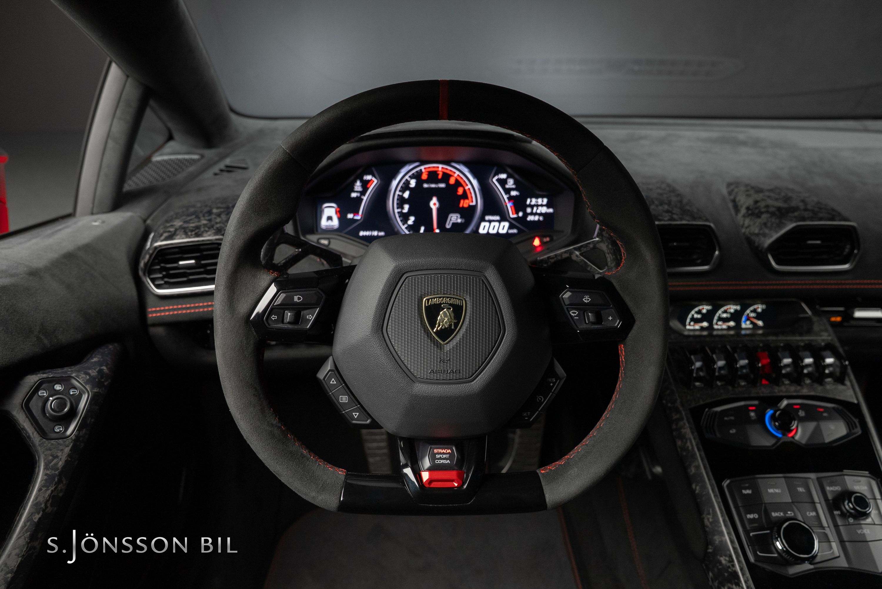 Lamborghini Huracán Performante 640hk lackerad i Rosso Mars Metallic tillsammans med sportivo interiören samt kolfiberstolar med Rosso Alala sömmar. Performante är en prestandaorienterad version av Huracán-serien. Modellen introducerades vid Genèvesalongen år 2017 och uppmärksammades särskilt för att ha satt ett varvrekord för serietillverkade bilar på Nürburgring Nordschleife.