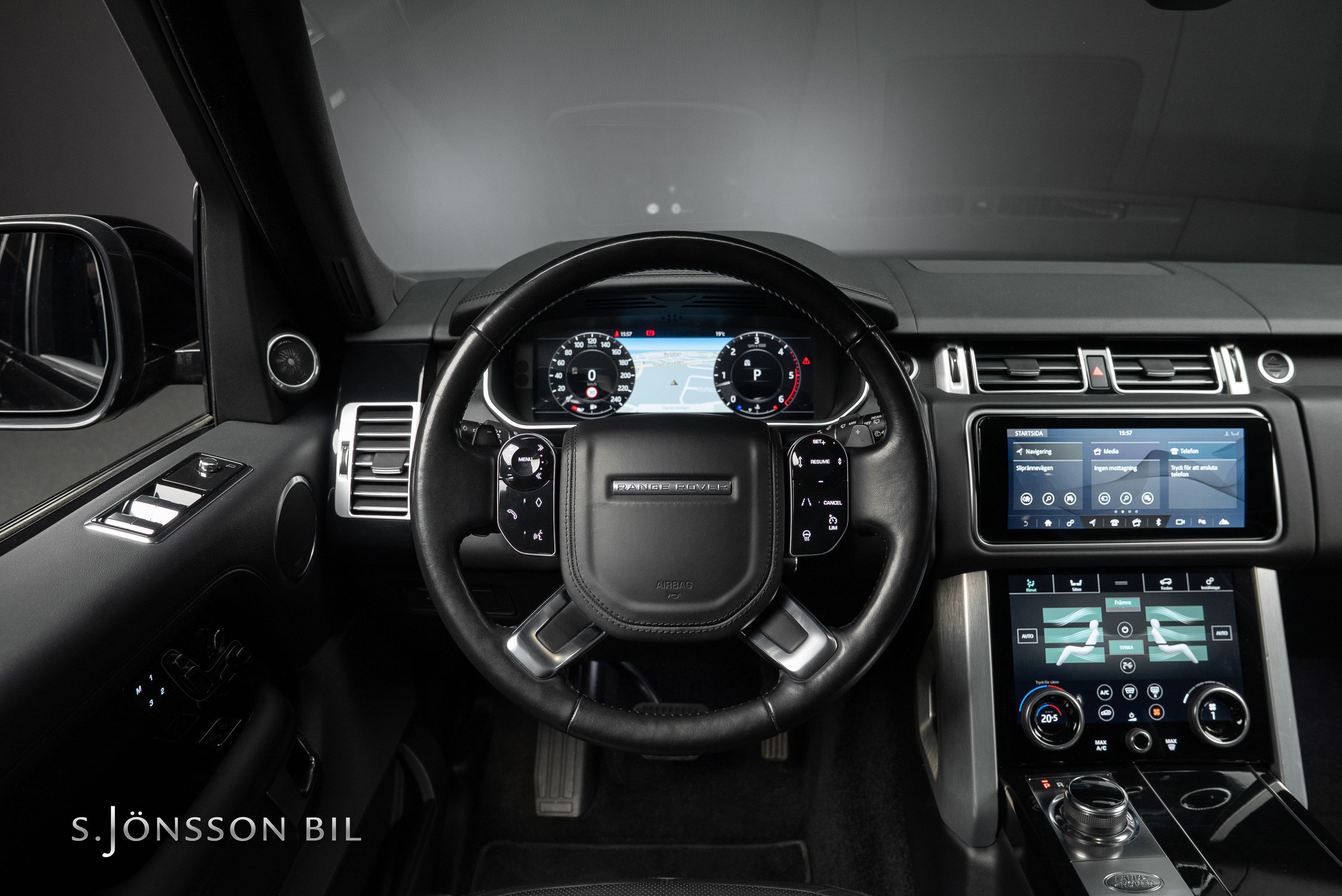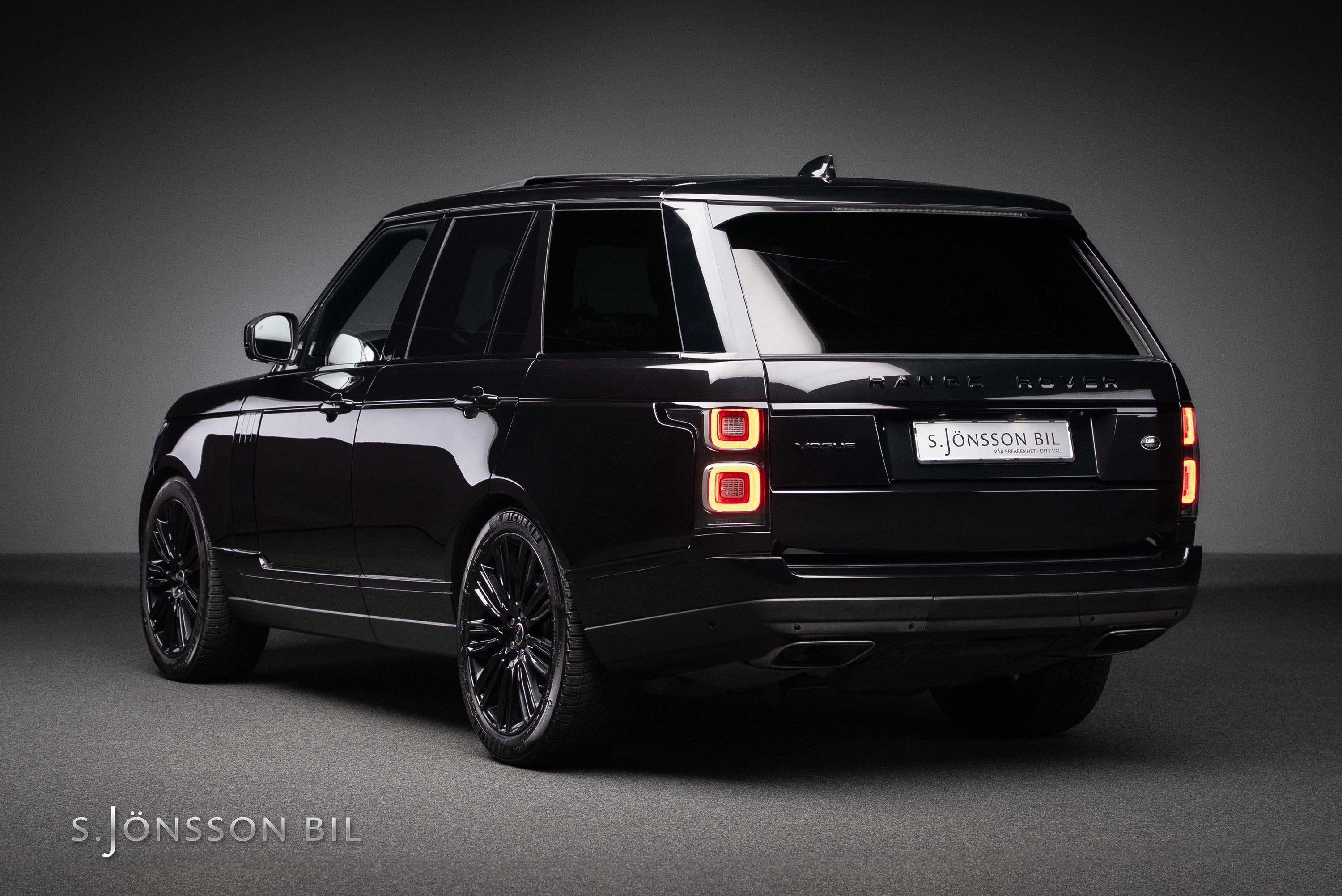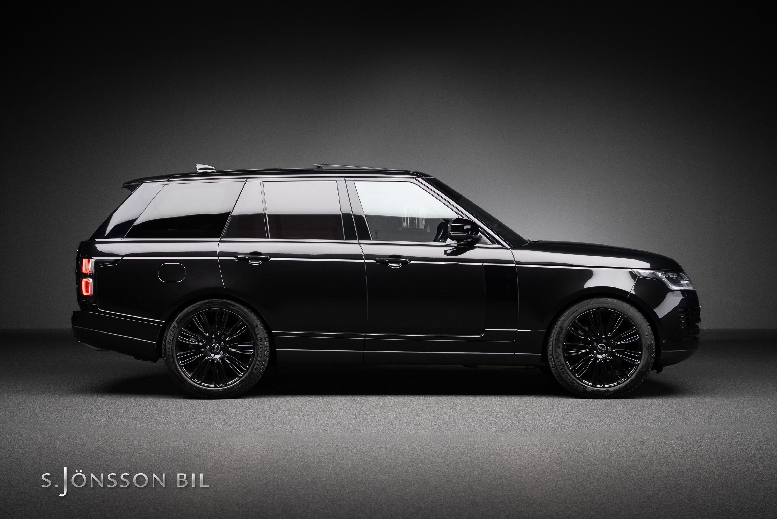 Range Rover har länge varit förknippad med engelsk elegans och detta exemplar är inget undantag. Lackerad i Santorini Black kombinerat med svart läderklädsel samt 22" fälgar lackerade i Gloss Black.