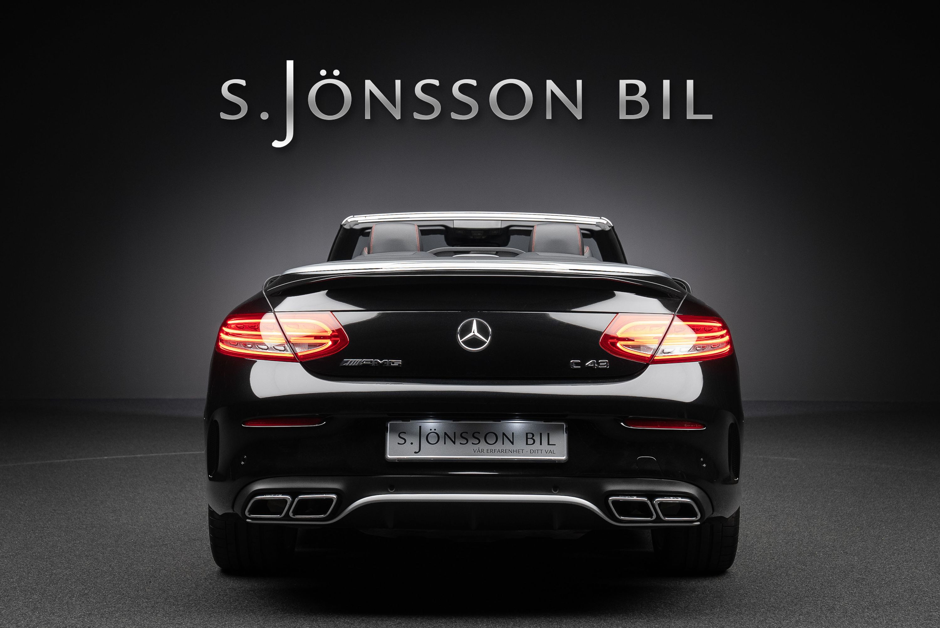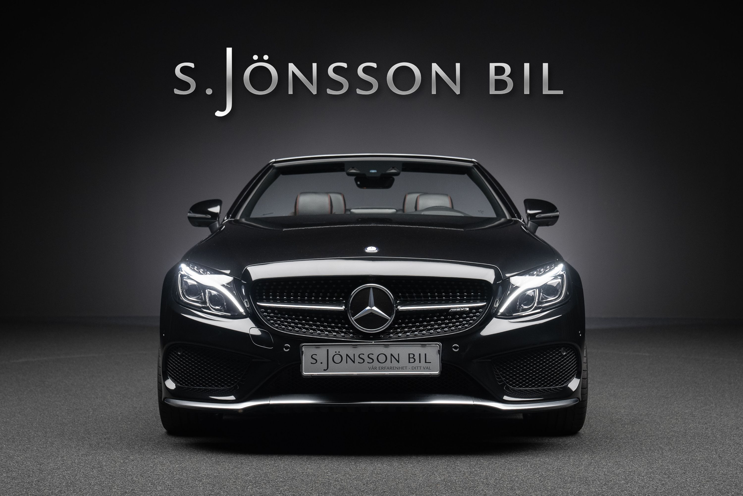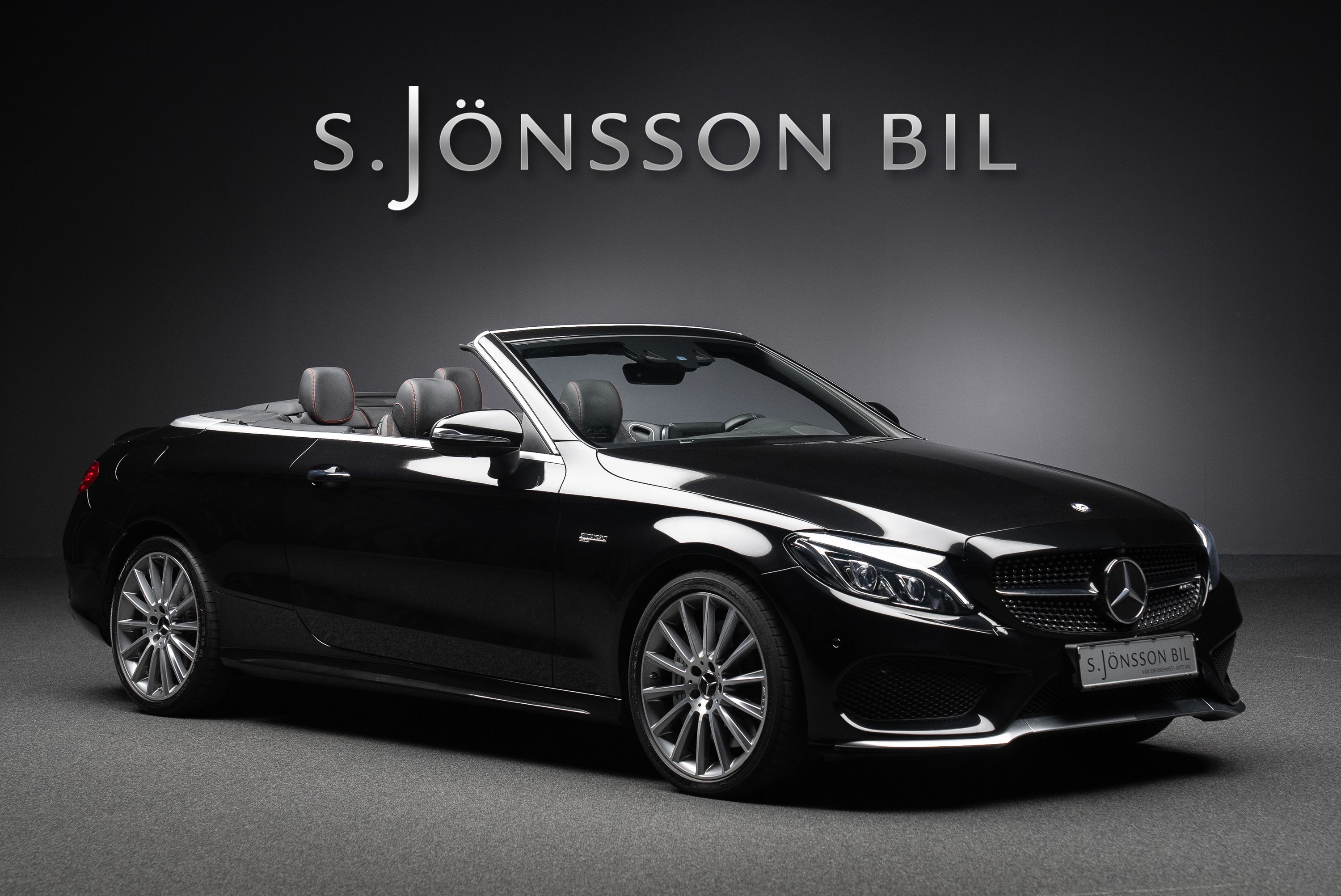 Fyrhjulsdriven Mercedes-AMG C 43 Cabriolet med mycket utrustning.