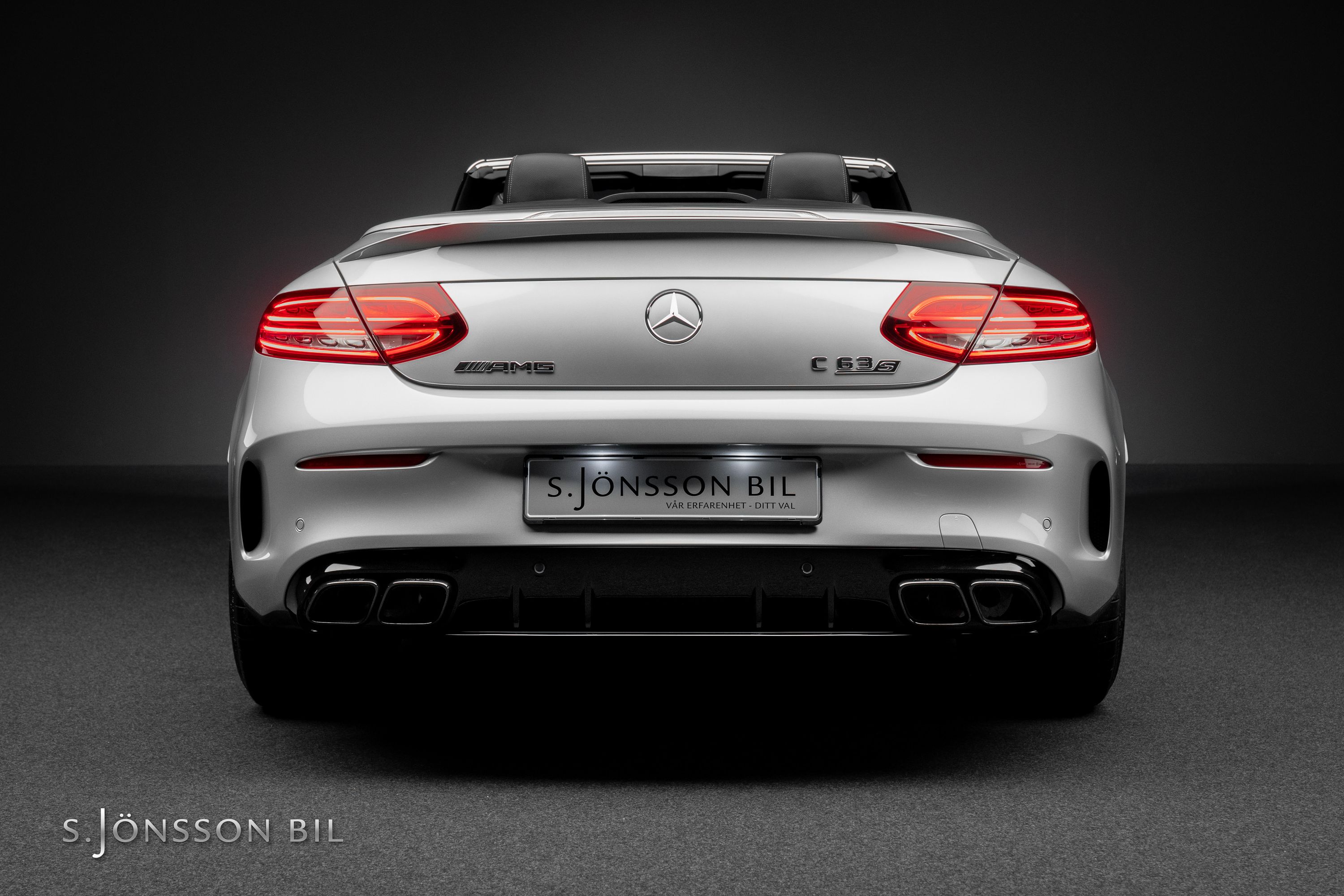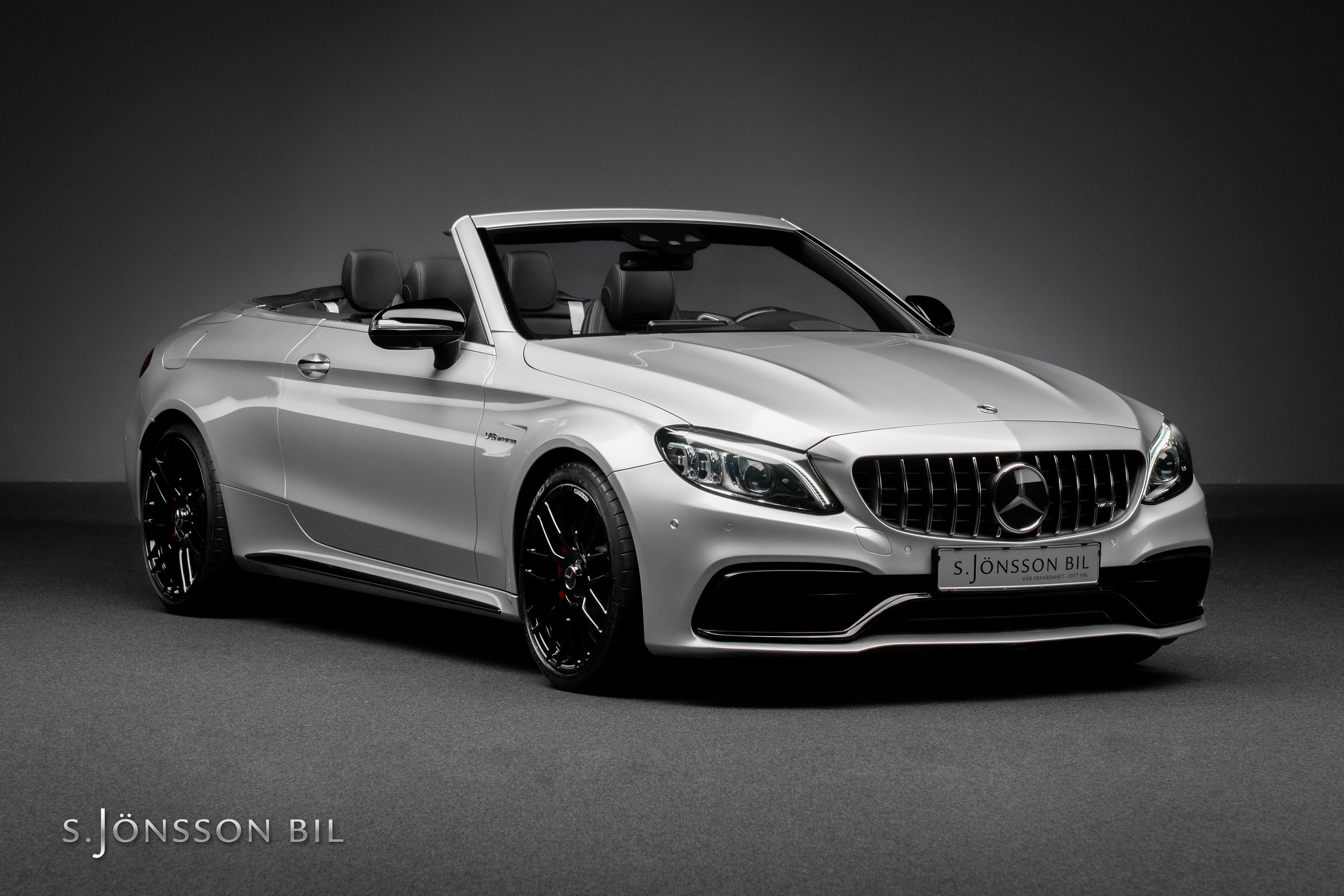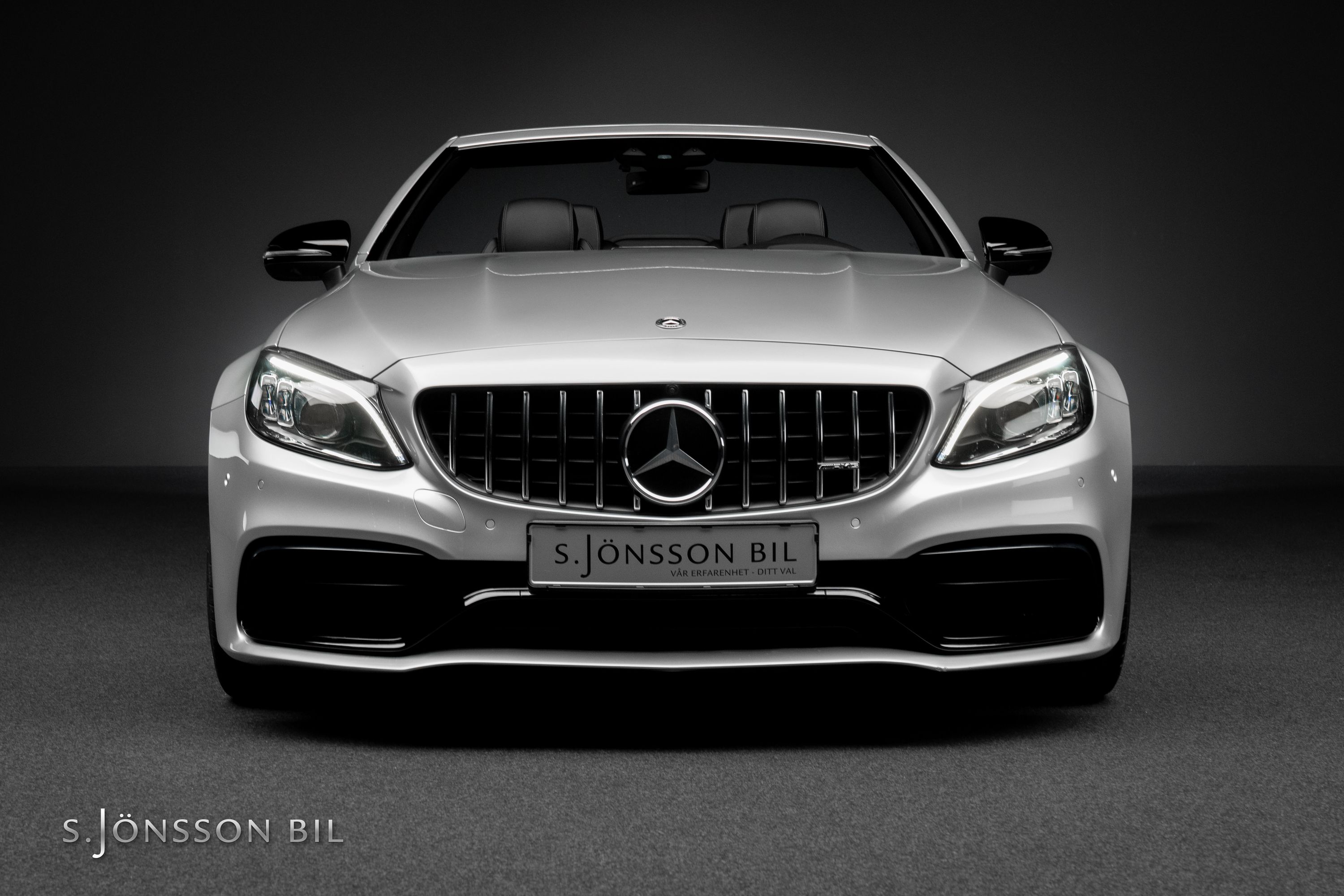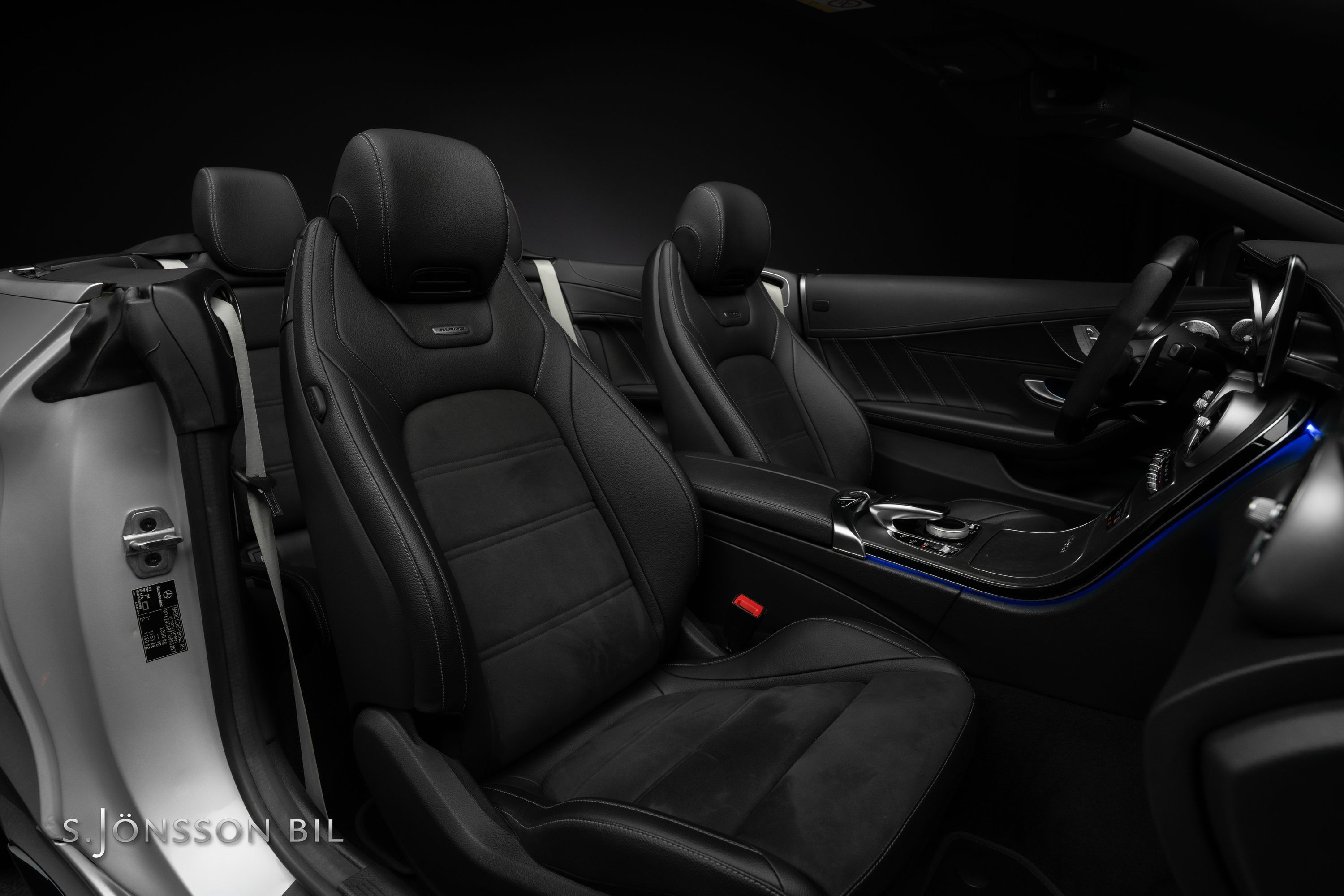 Mercedes-AMG C 63 S Cabriolet i Faceliftutförande. Lackerad i Iridium Silver metallic kombinerat med inredning i läder/alcantara och kontrastsömmar i grått.