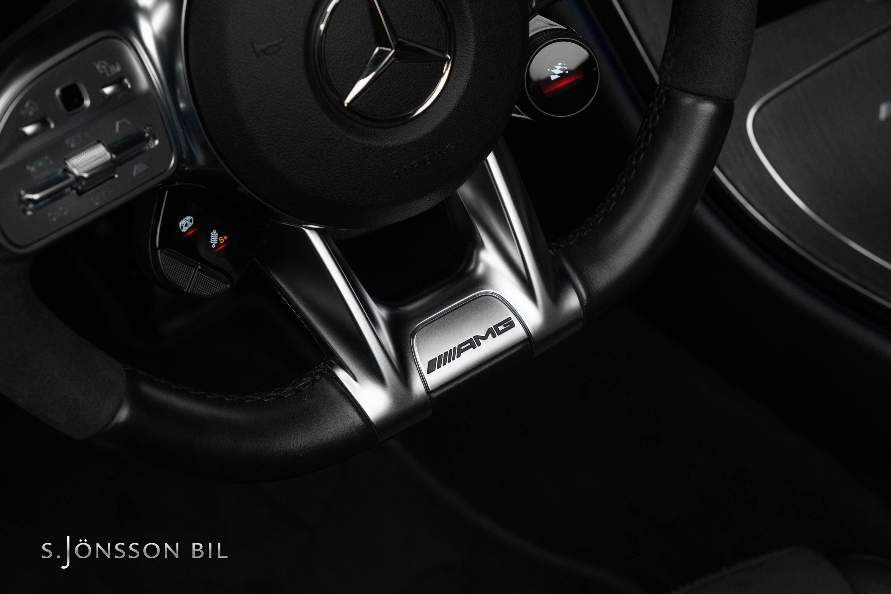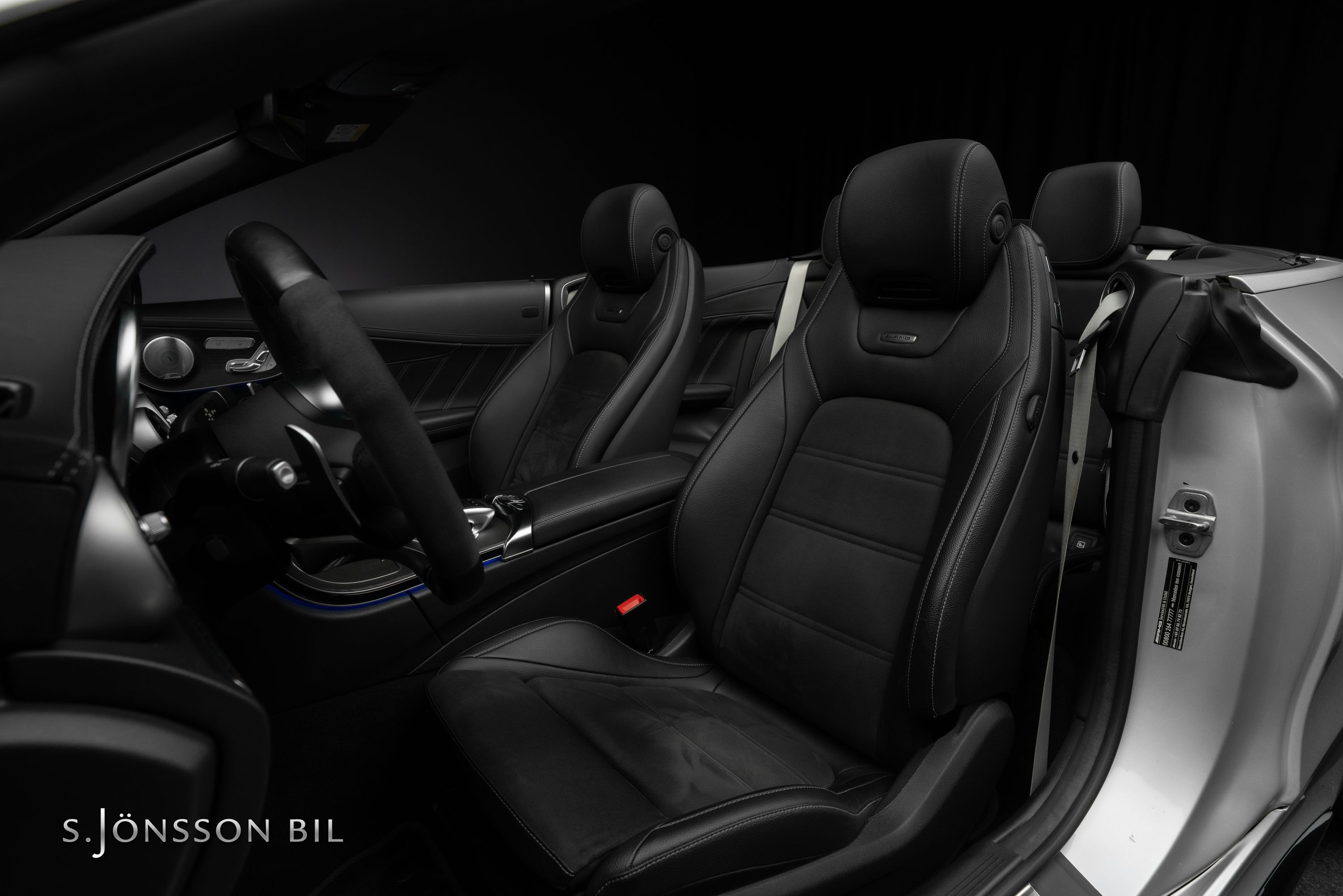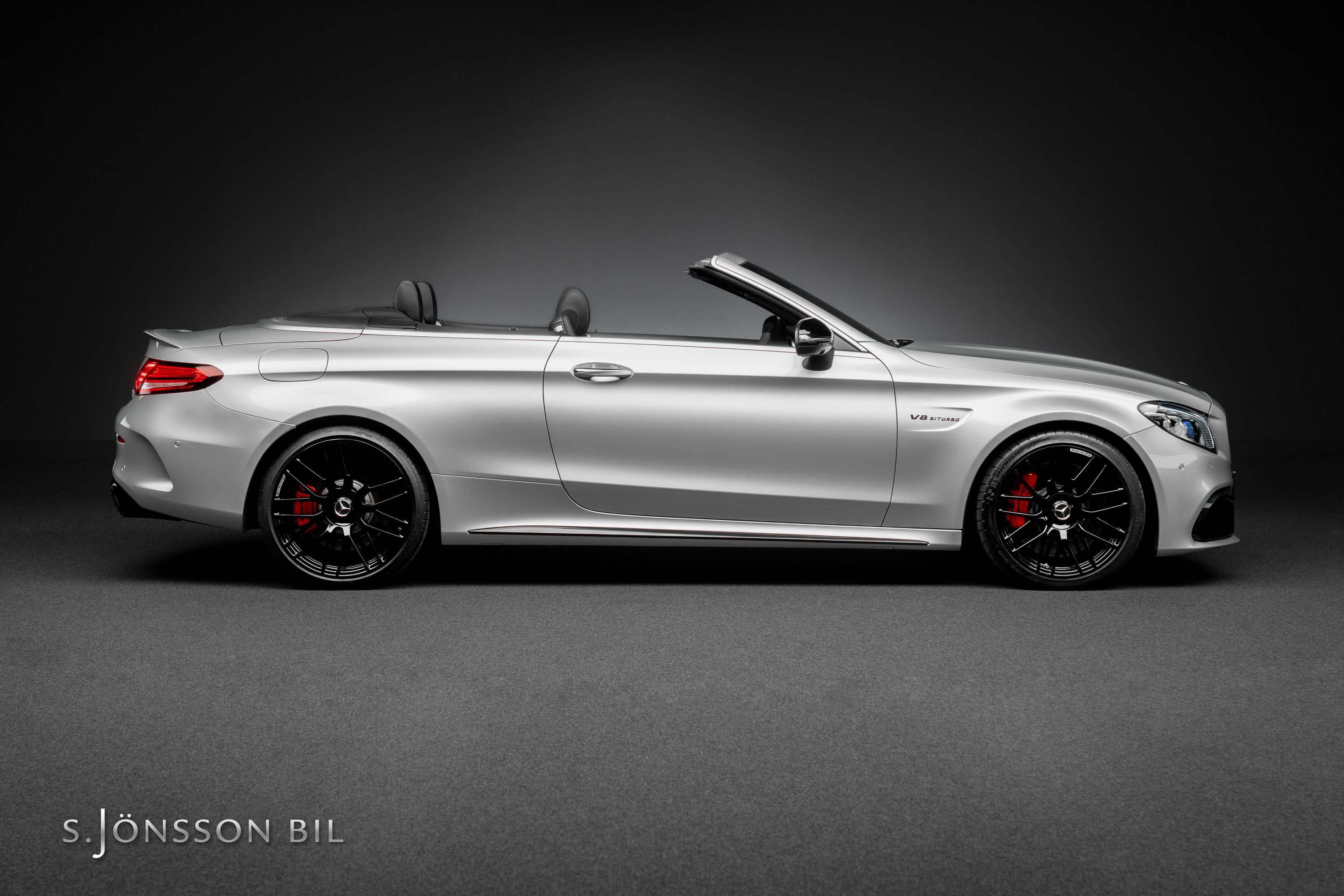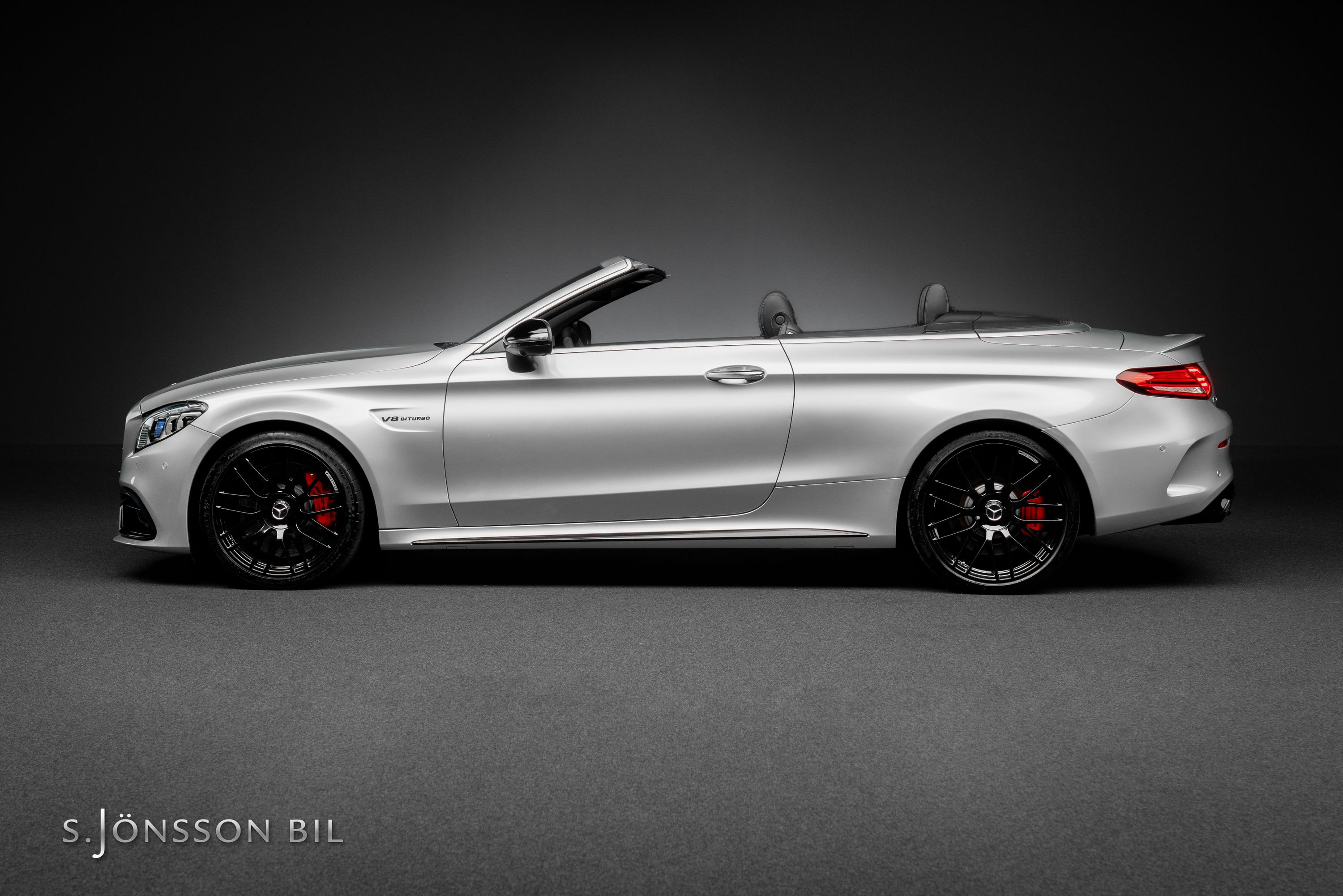 Mercedes-AMG C 63 S Cabriolet i Faceliftutförande. Lackerad i Iridium Silver metallic kombinerat med inredning i läder/alcantara och kontrastsömmar i grått.
