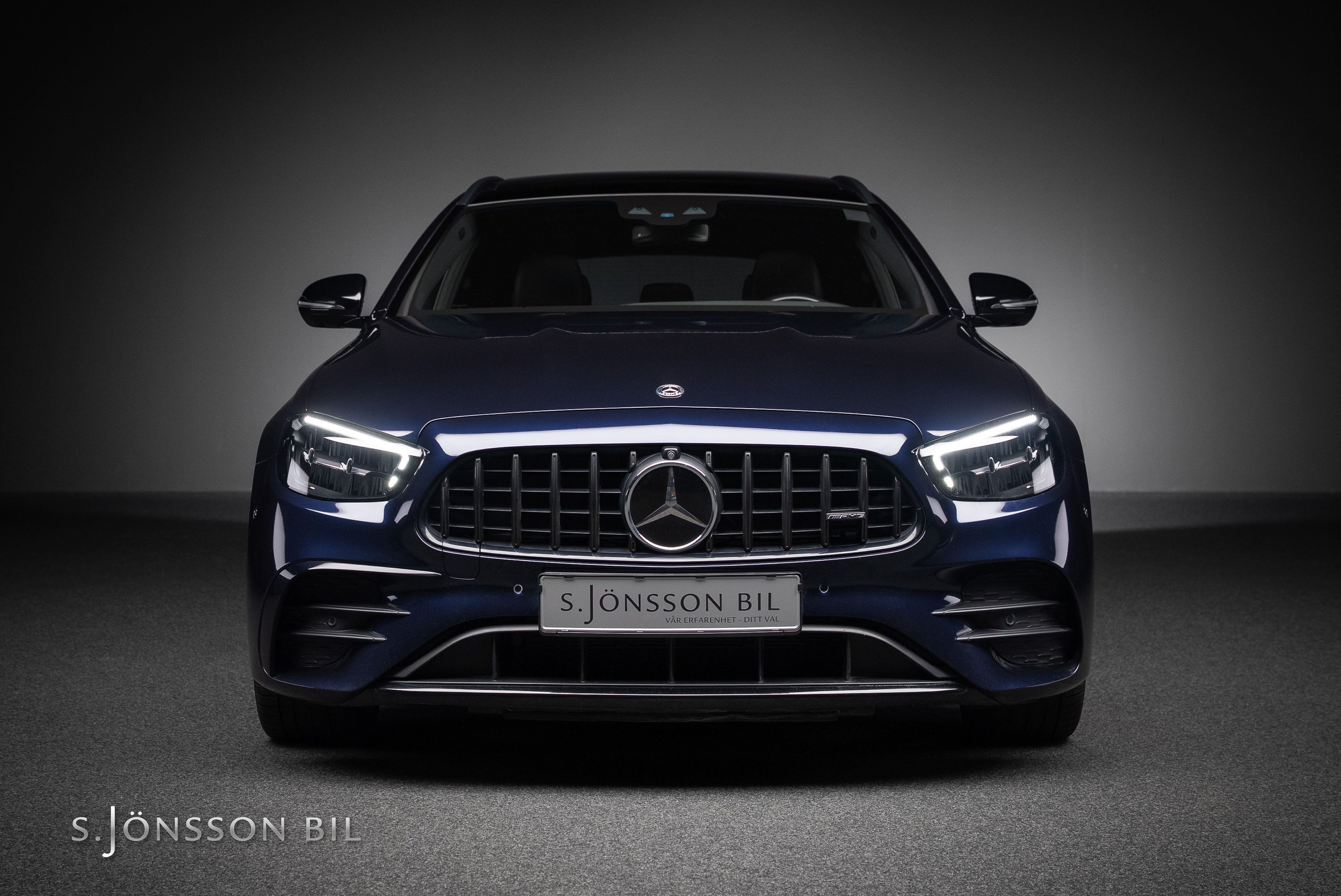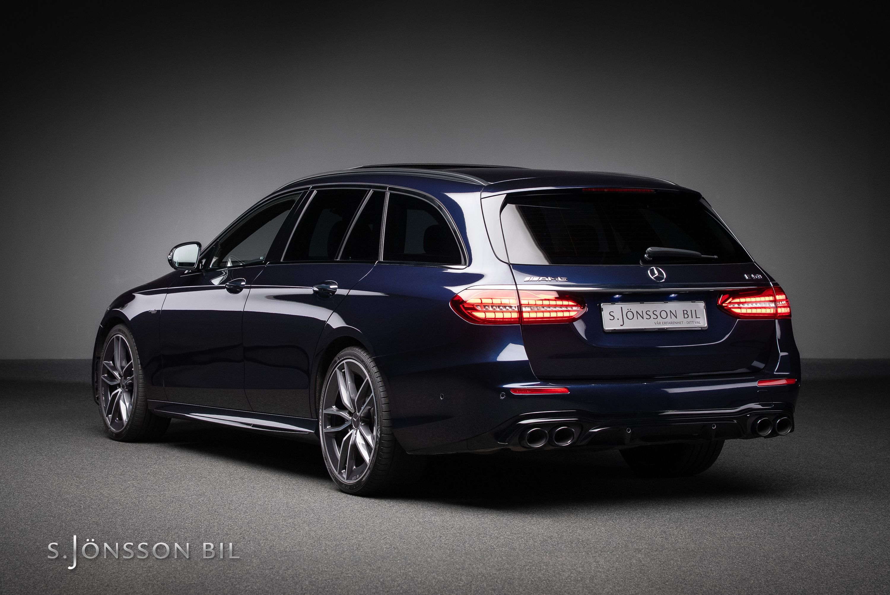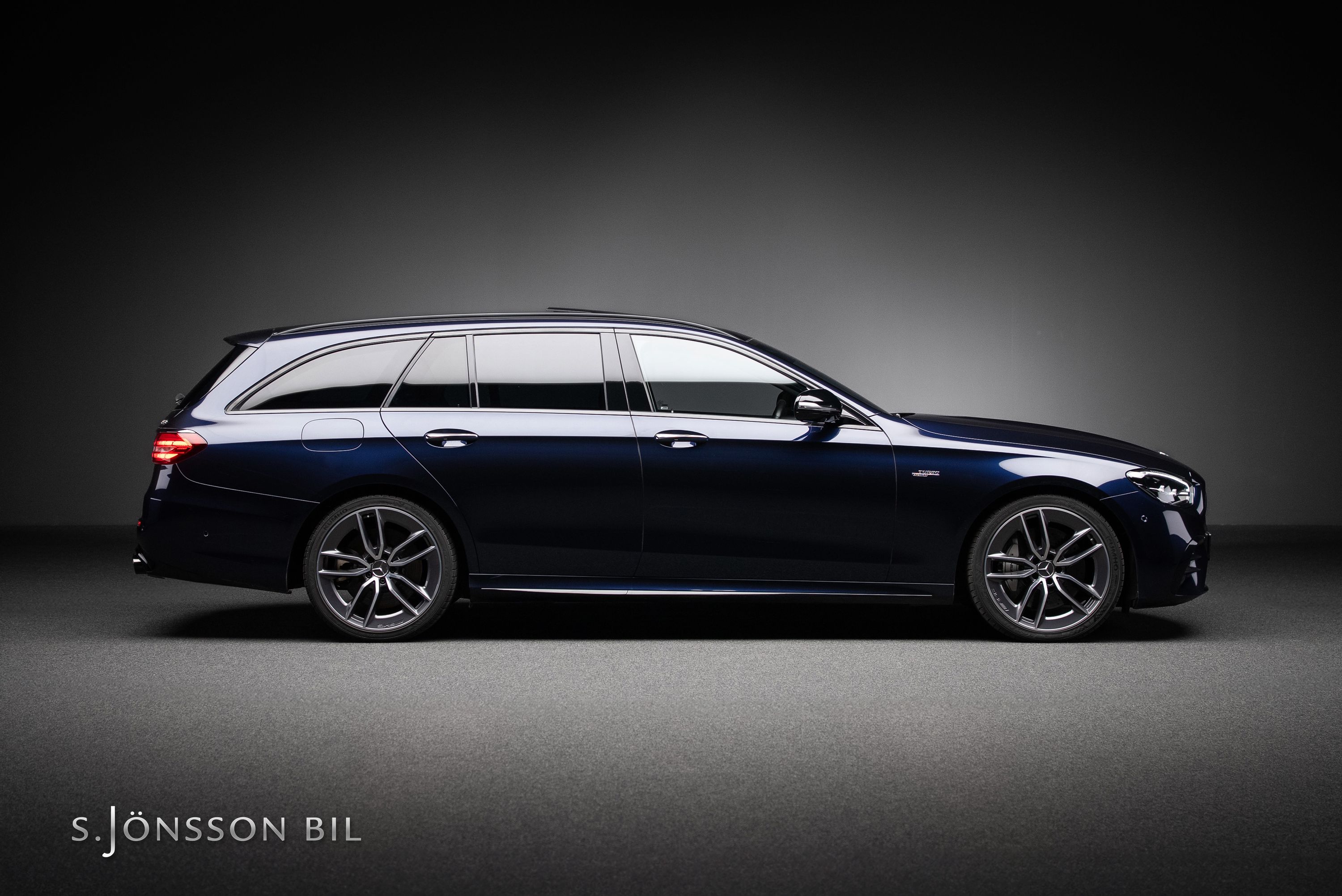 Mercedes-AMG E 53 Kombi 4MATIC+ lackerad i Nautic Blue metallic. Under huven sitter en modern 6 cylindrig bi-turbomotor med elektrisk kompressor på 435 hk och 520 Nm. Vid behov finns ytterligare 22 hk och 250 Nm att tillgå via Mercedes EQ-Boost elmotor.