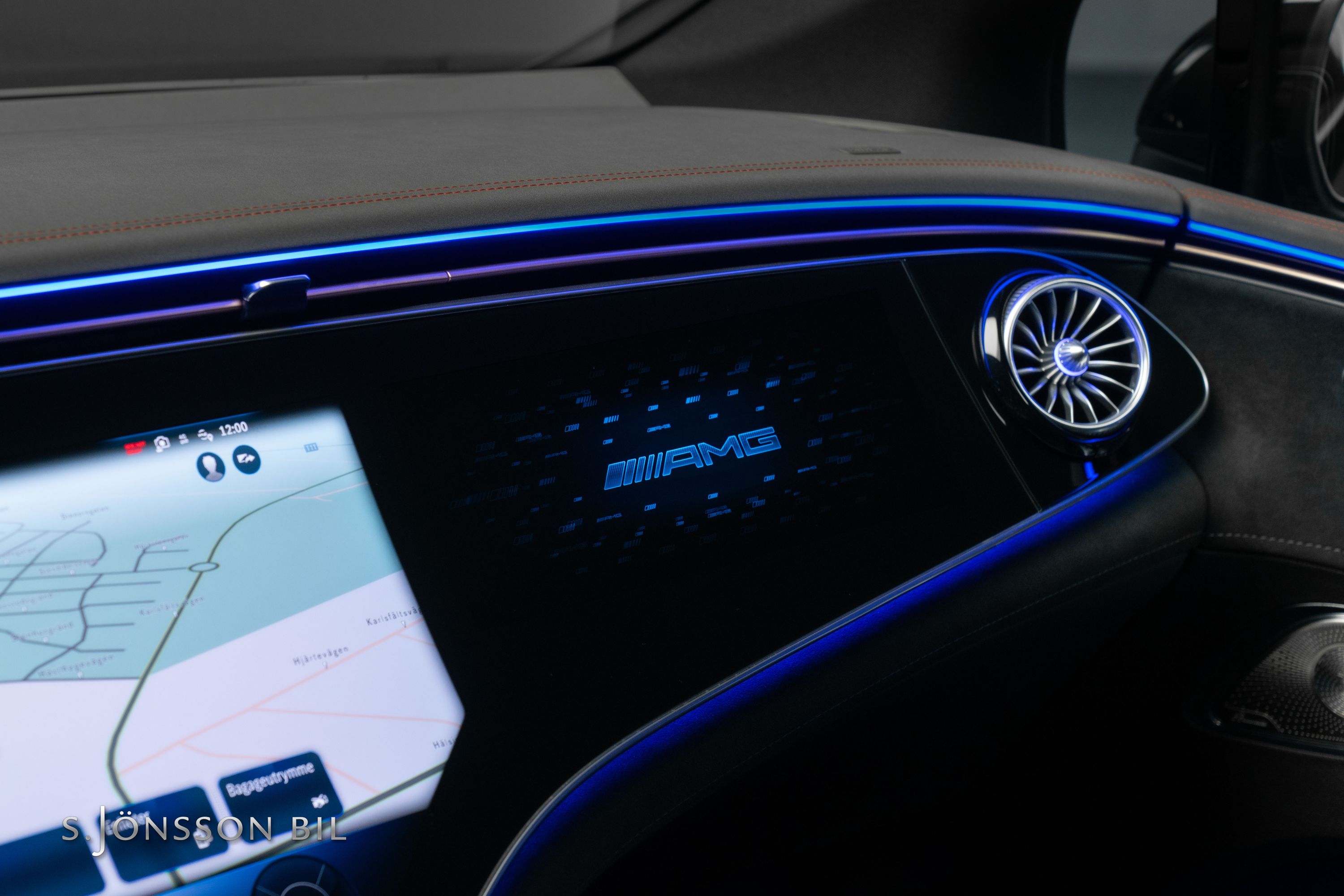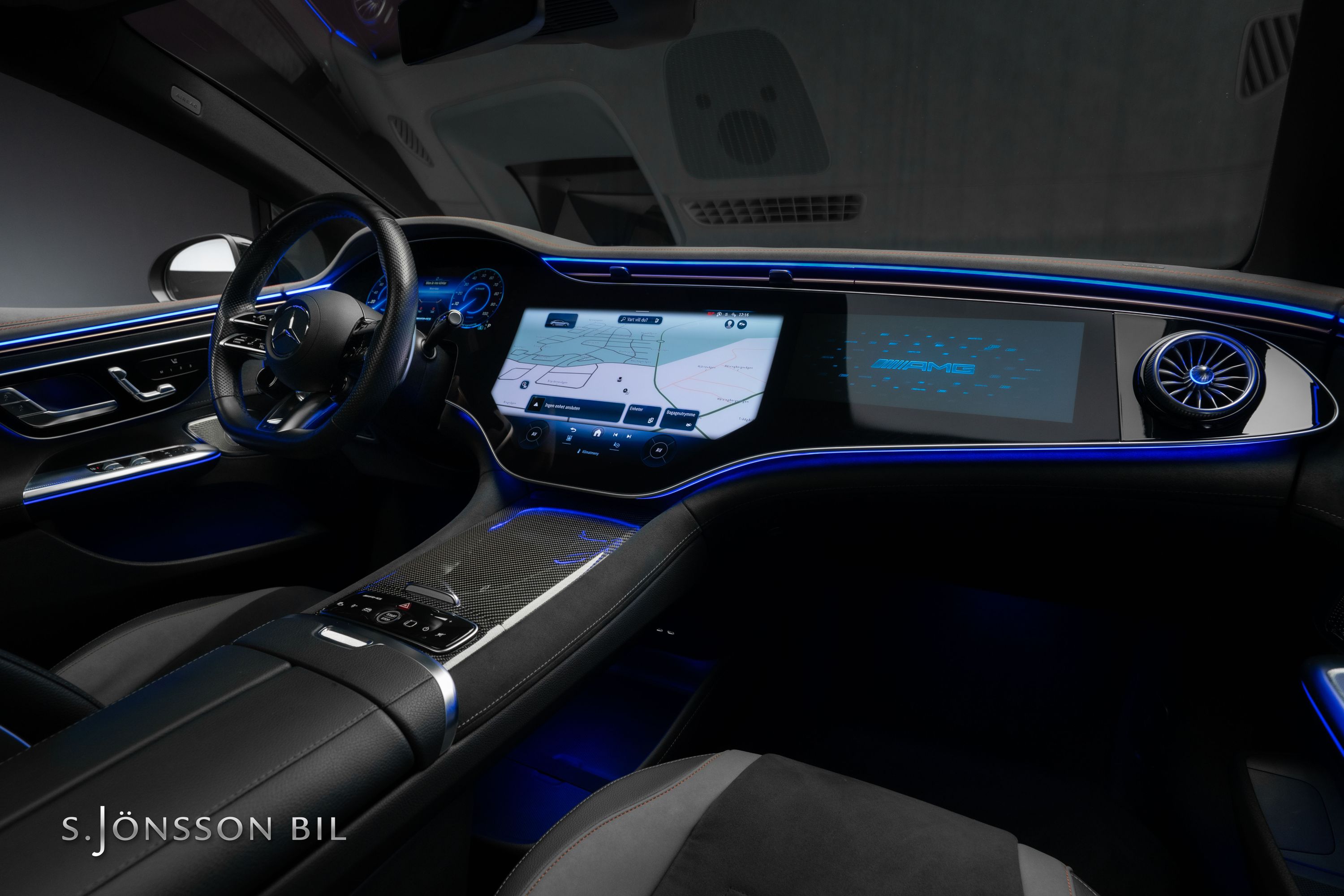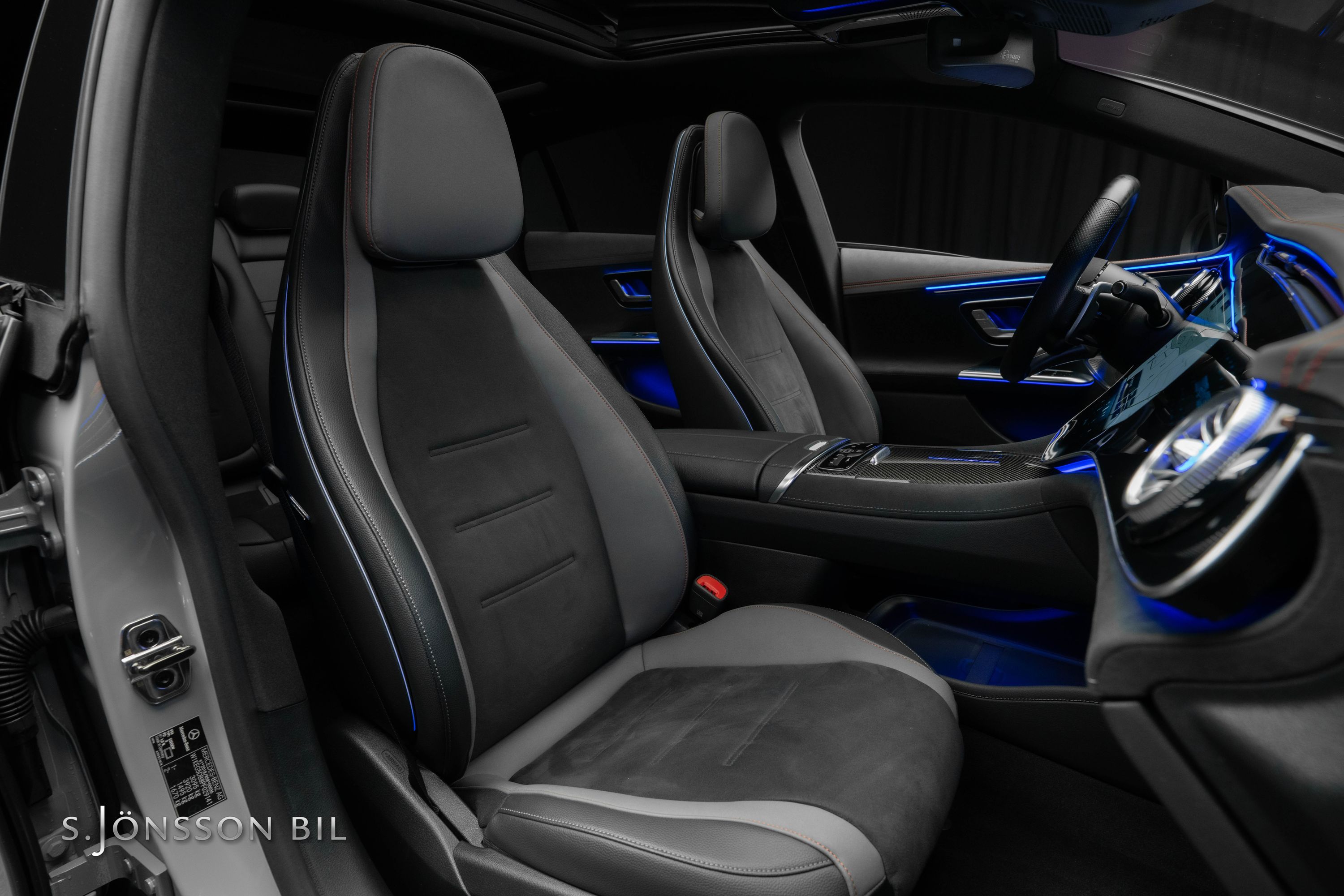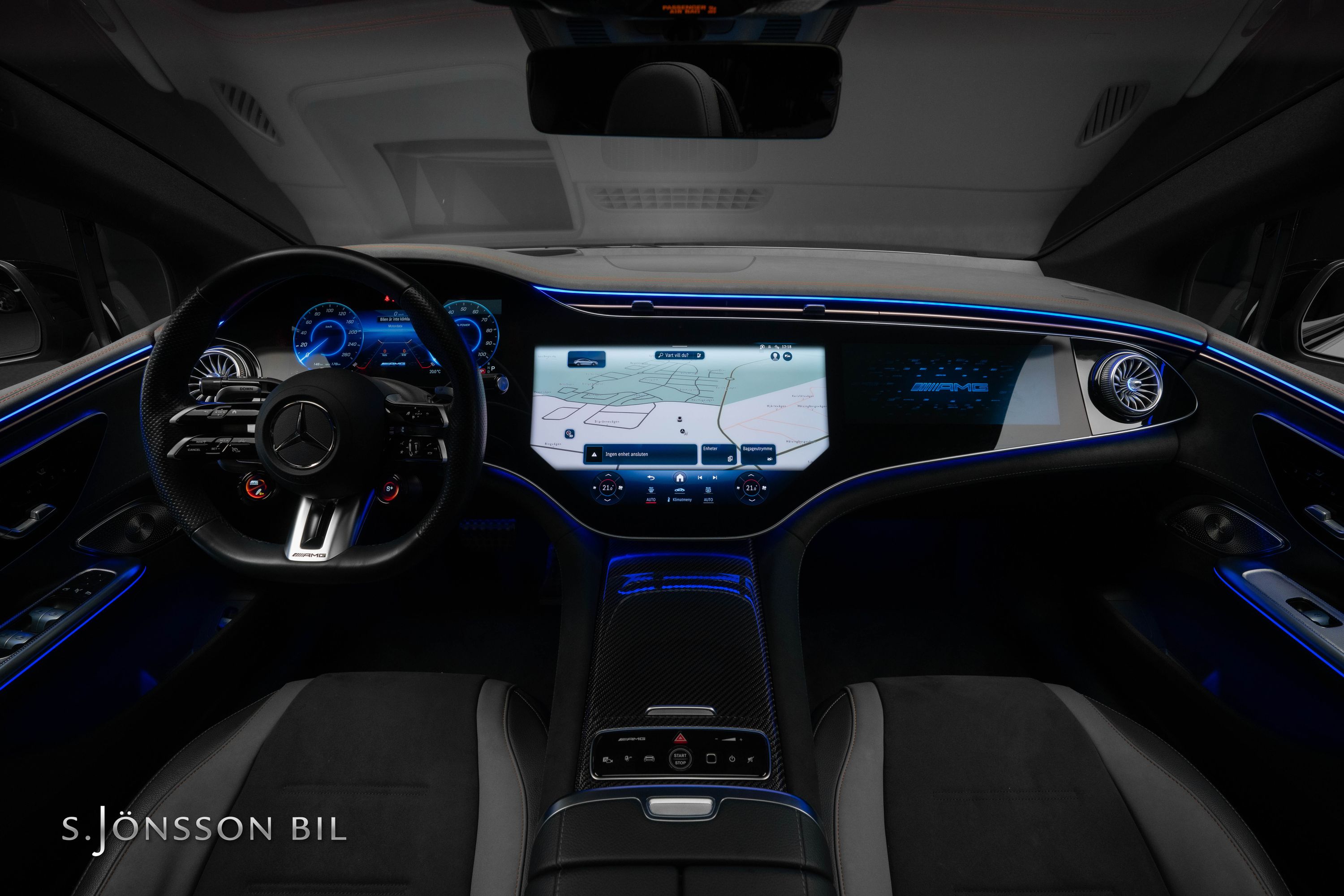 EQE 53 är ett riktigt kraftpaket som tydligt speglar AMG-divisionens fokus på prestanda. Bilen kan även visa en mjukare sida med sin ställbara adaptiva luftfjädring kapabel att ge en komfortabel körupplevelse.