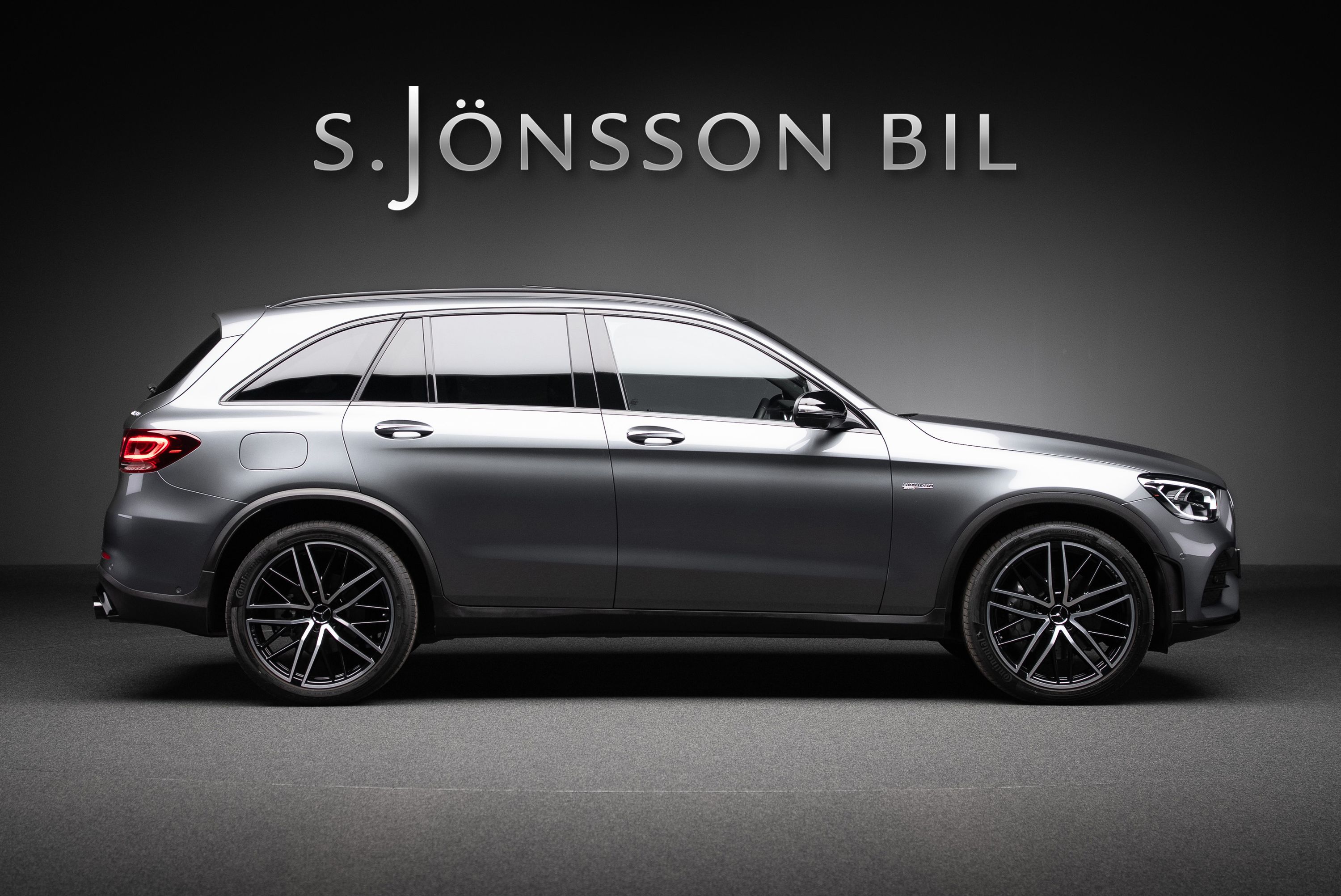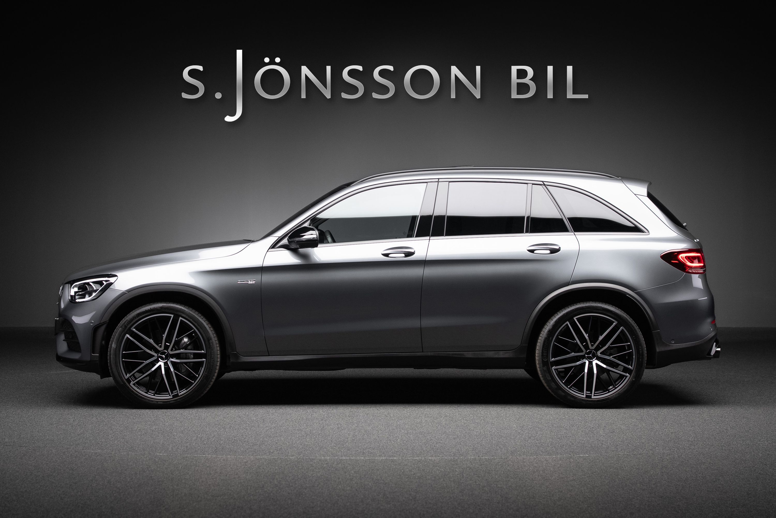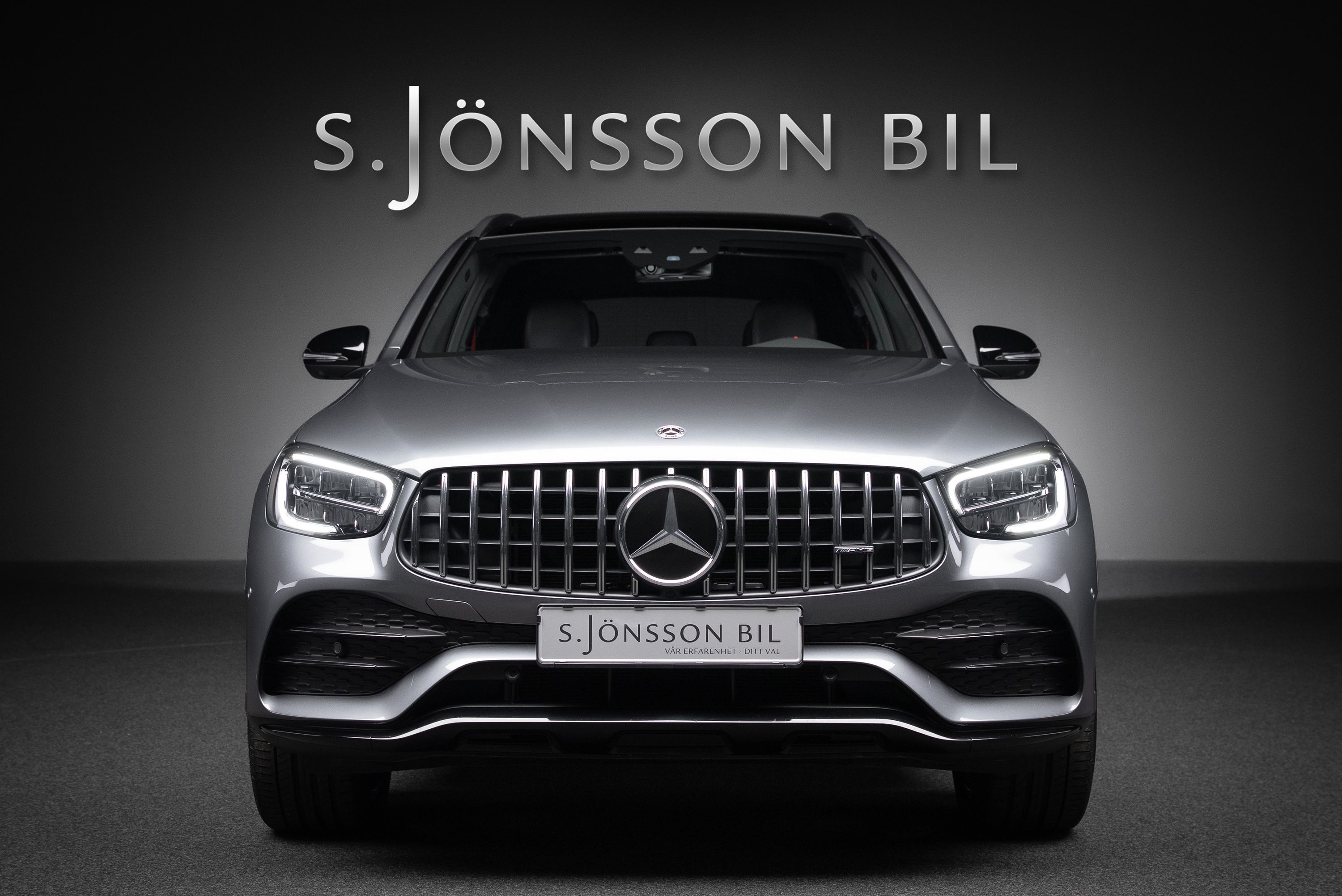 Mercedes-AMG GLC 43 4MATIC i faceliftutförande med den 6-cylindriga 390-hästars maskinen. Detta exemplar är lackerat i Selenitgrå metallic kombinerat med interiör i svart med röda kontrastsömmar.