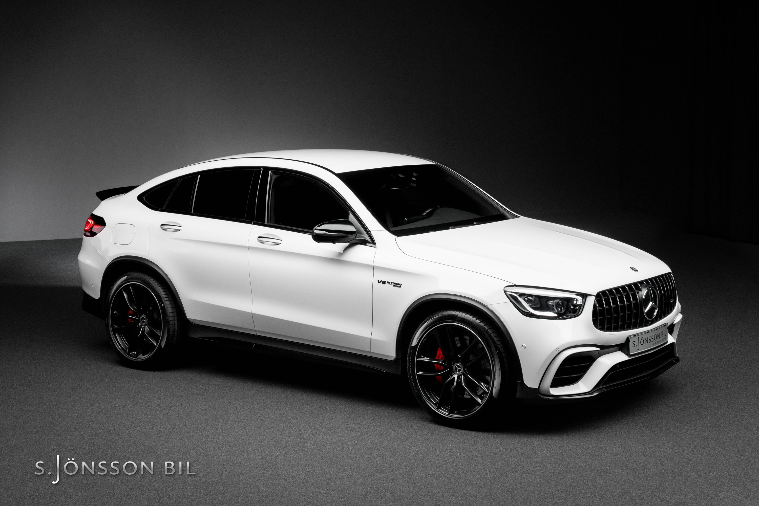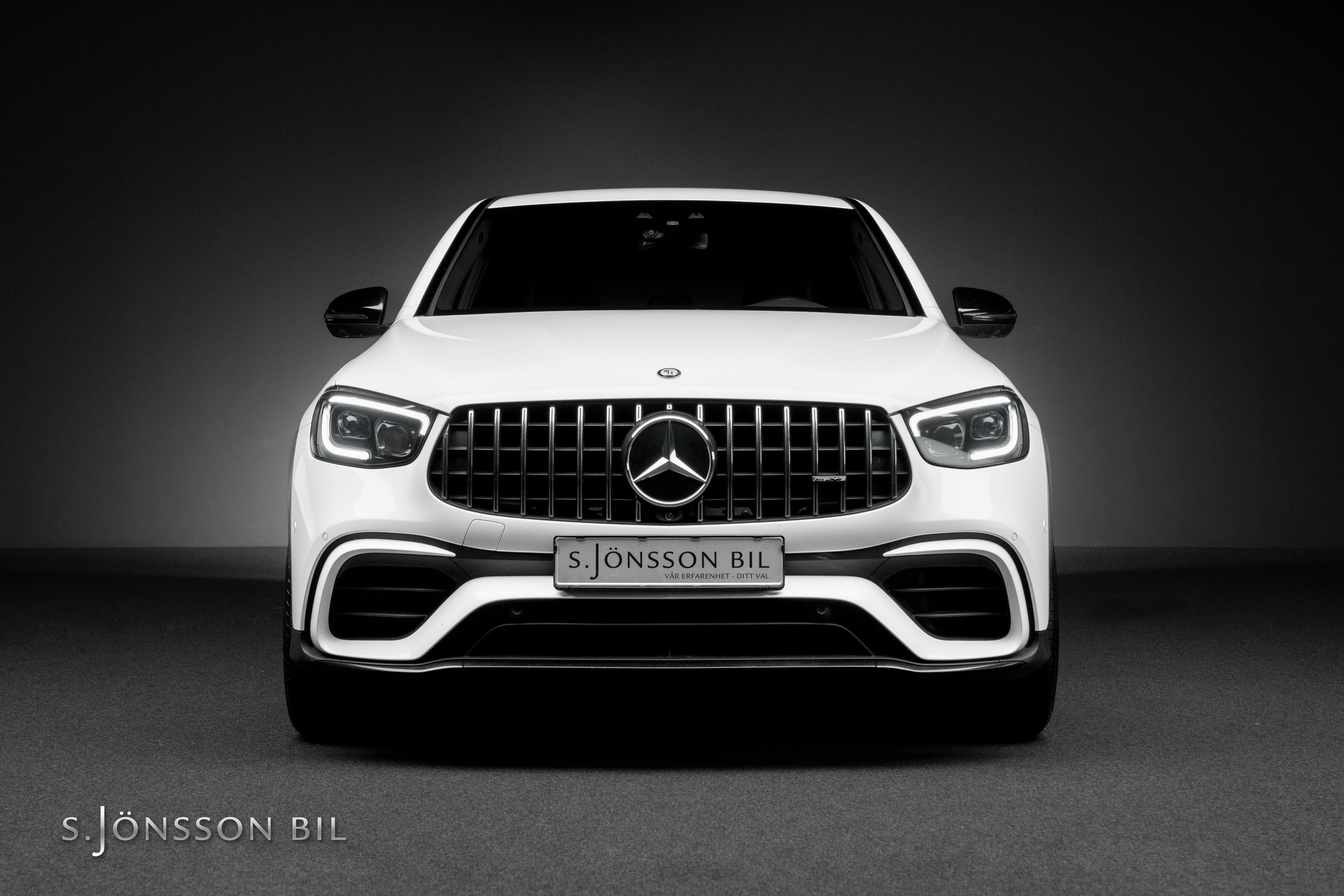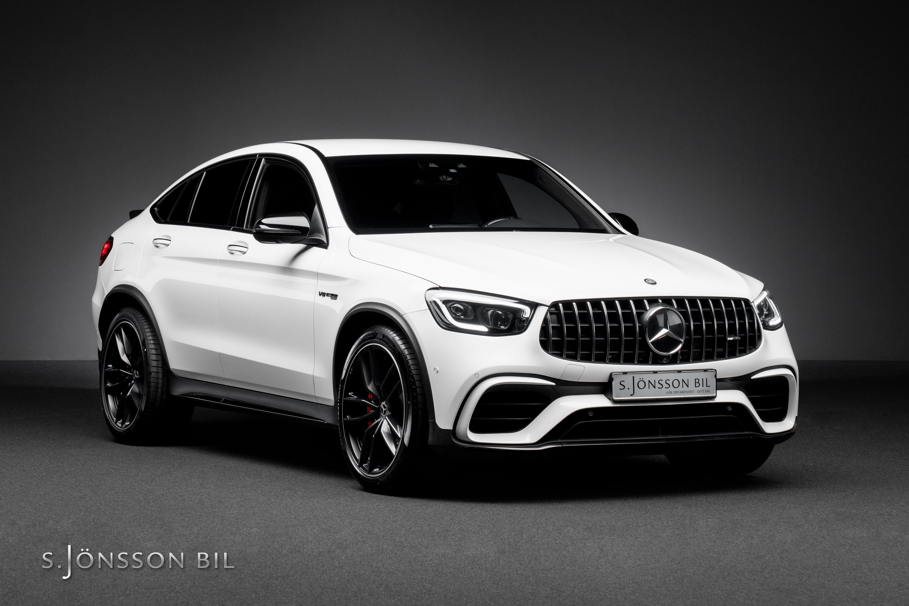 Mercedes-AMG GLC 63 S Coupé i sällsynt Faceliftutförande. Detta exemplar är lackerat i Polar White kombinerat med interiör i svart läder/alcantara.