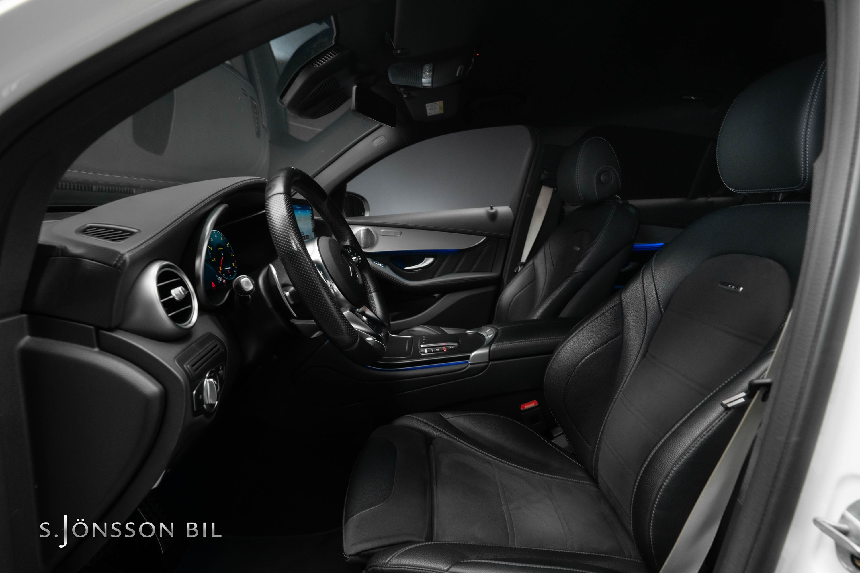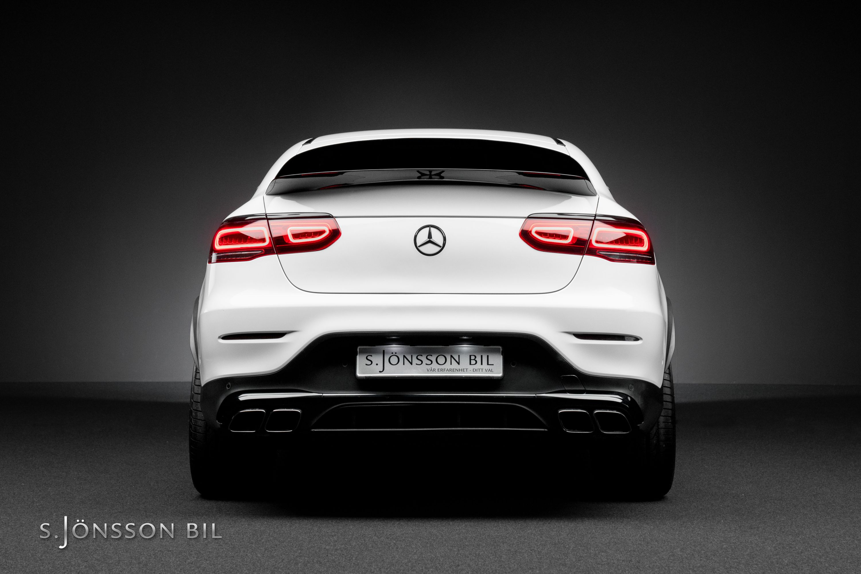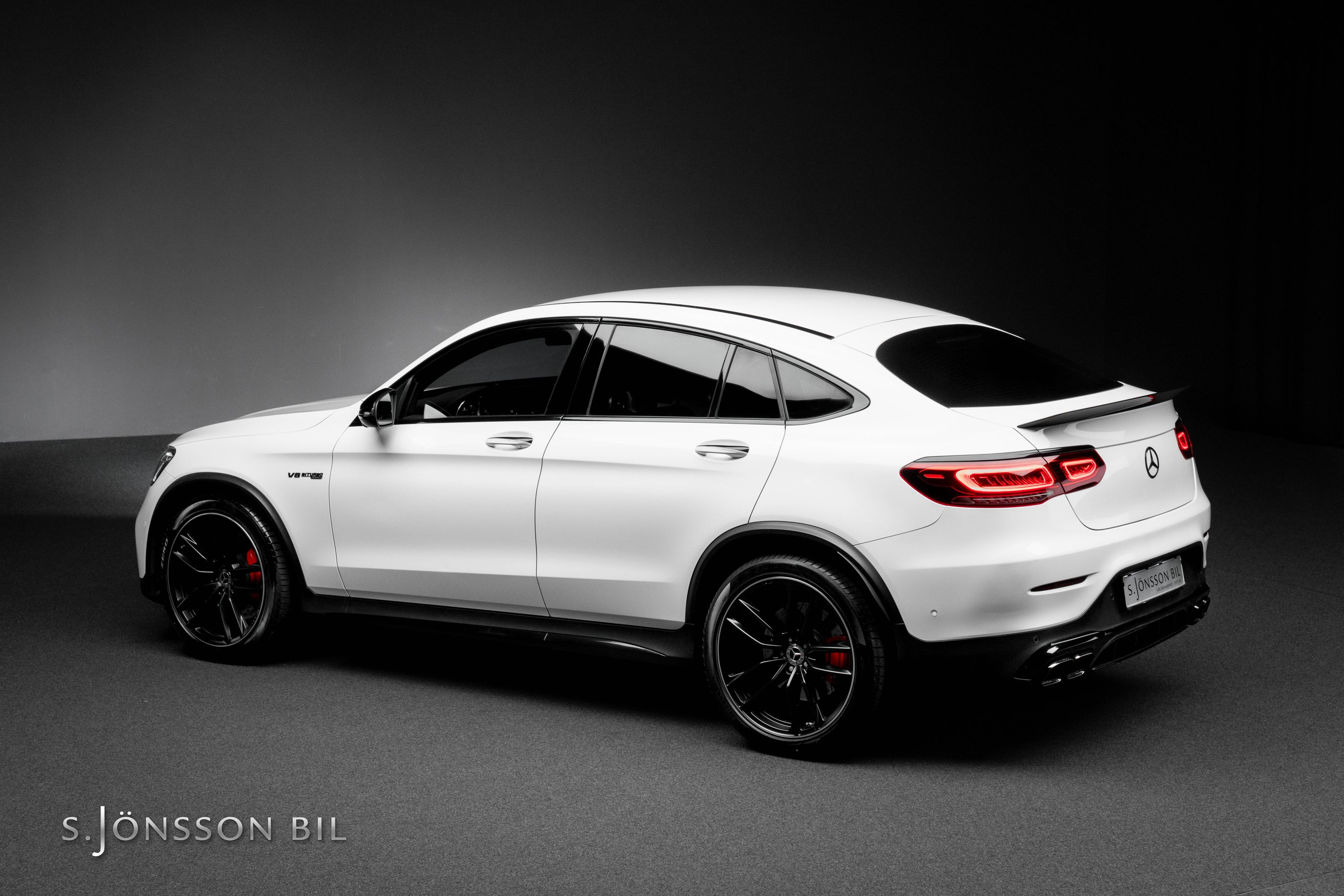 Mercedes-AMG GLC 63 S Coupé i sällsynt Faceliftutförande. Detta exemplar är lackerat i Polar White kombinerat med interiör i svart läder/alcantara.