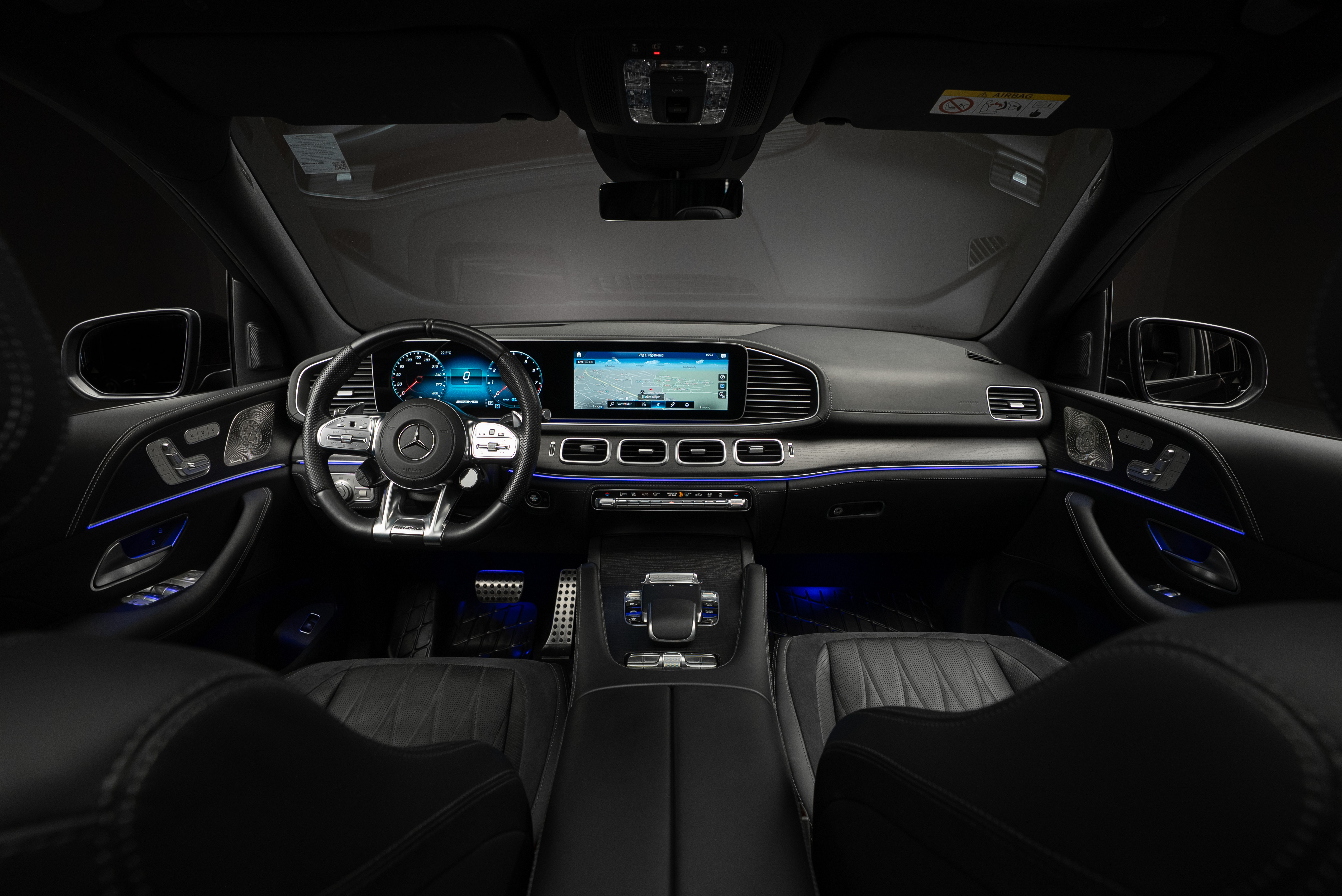 Mercedes-AMG GLS 63 4MATIC+ med BRABUS 700 lackerad i Obsidian Black Metallic kombinerat med exklusiv nappaklädsel i svart.