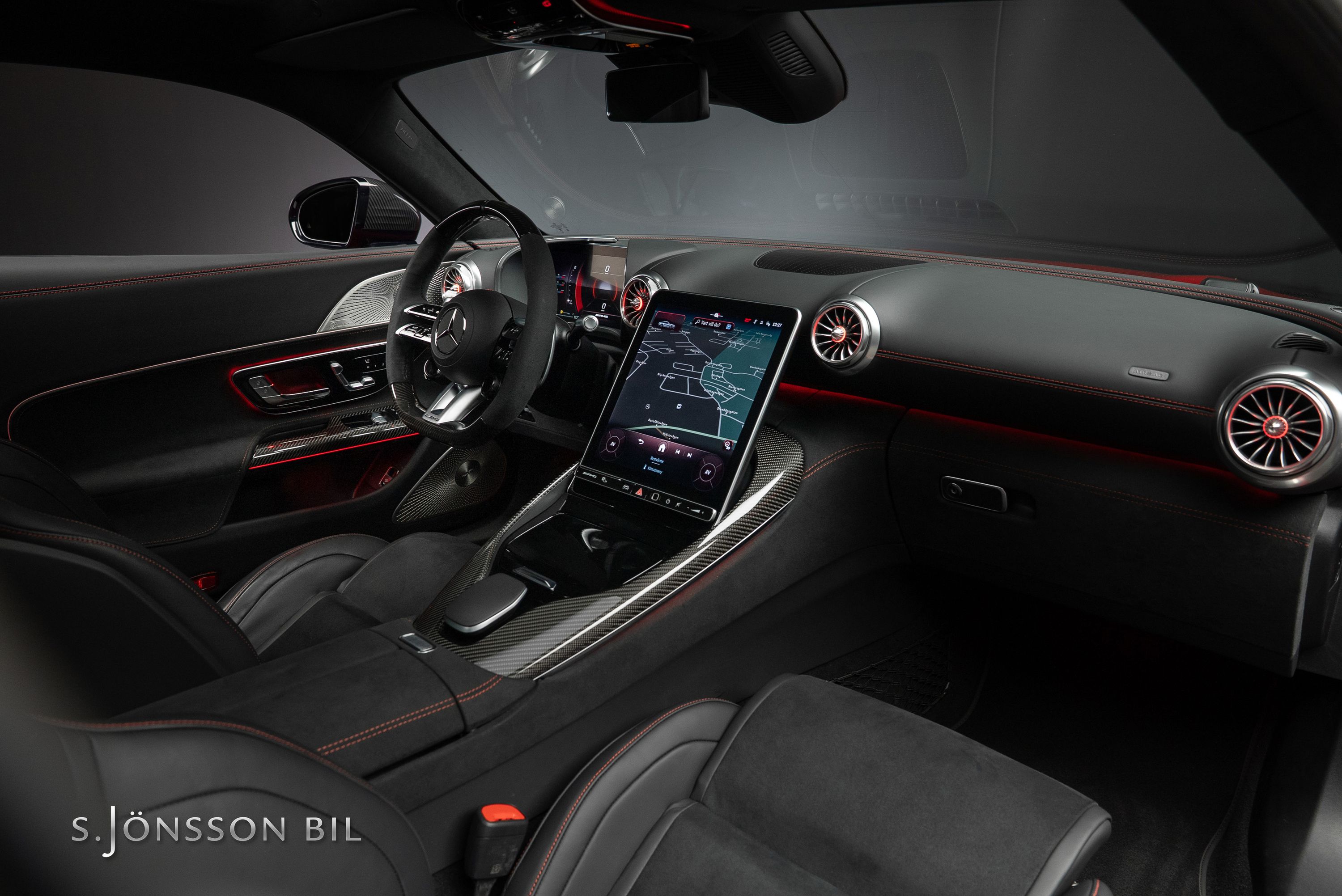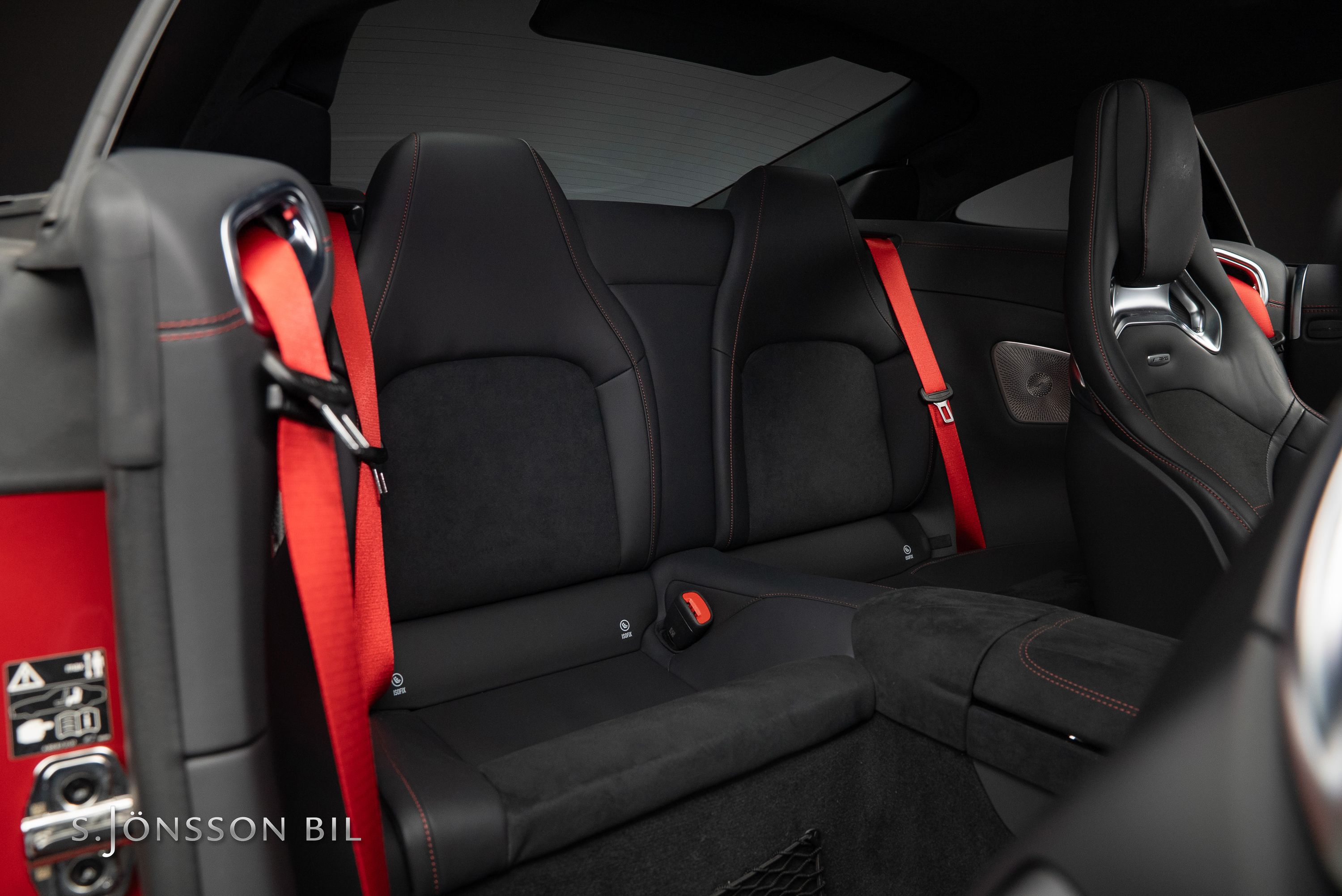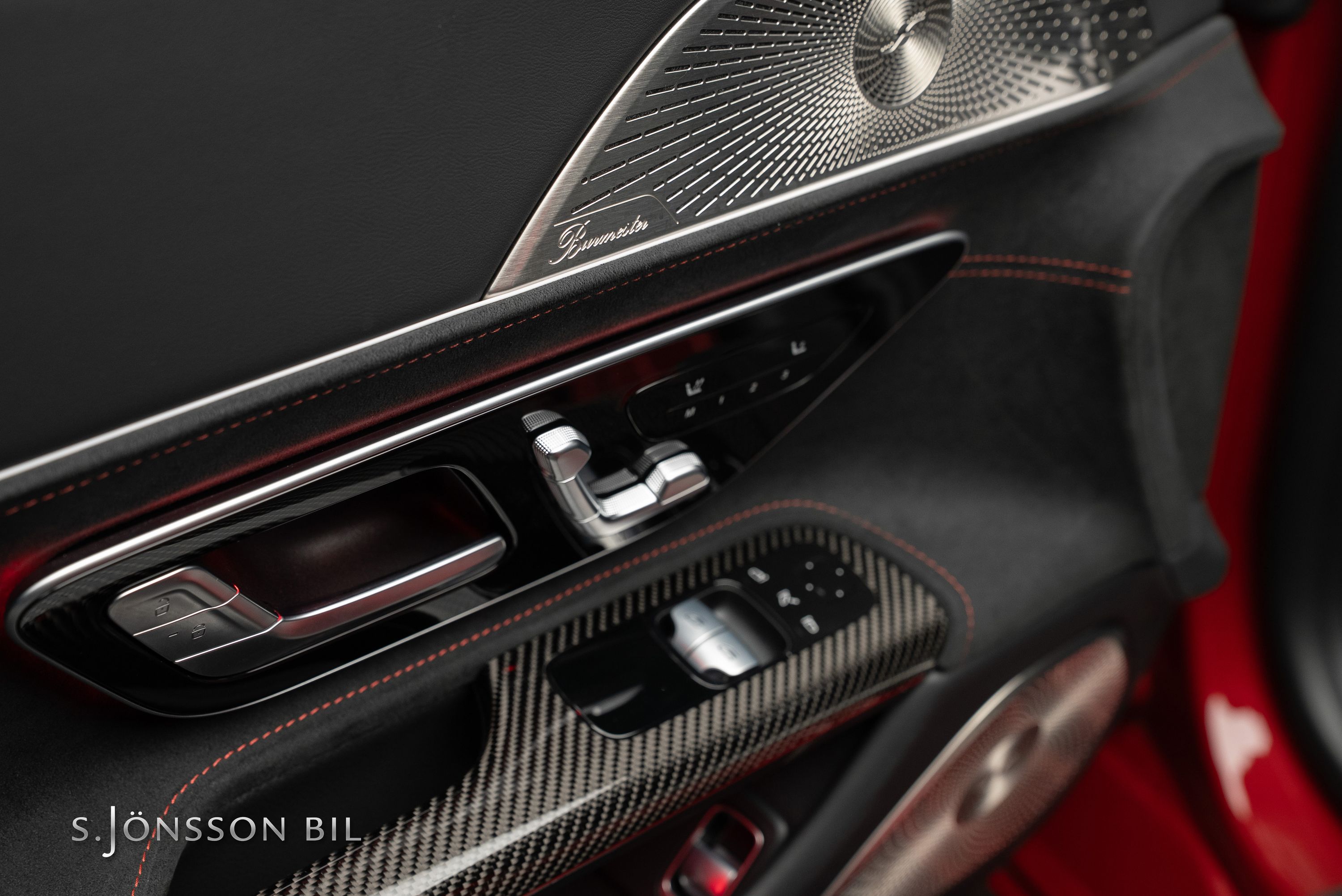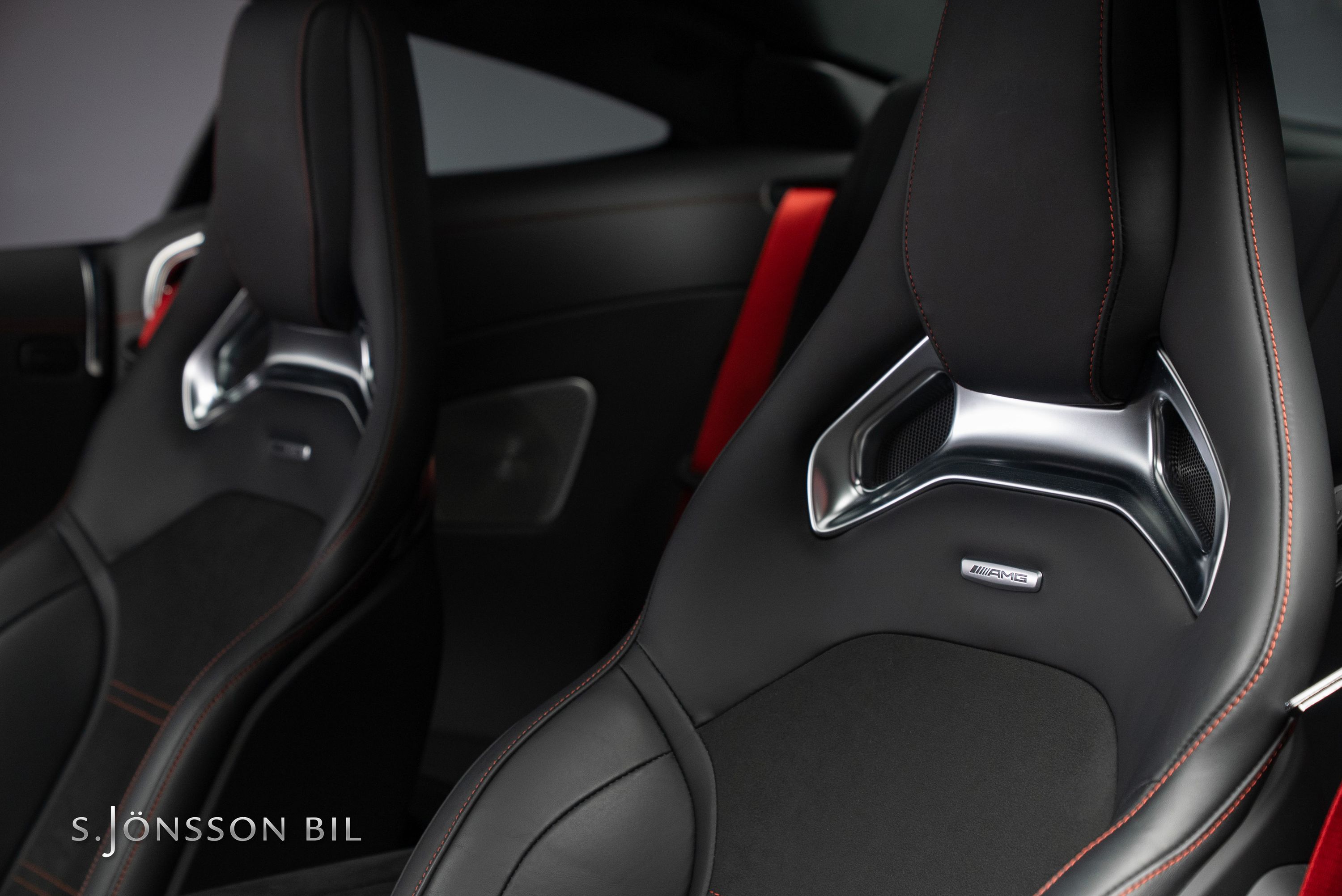 Inredning: Svart Dynamica och läder med röda kontrastsömmar