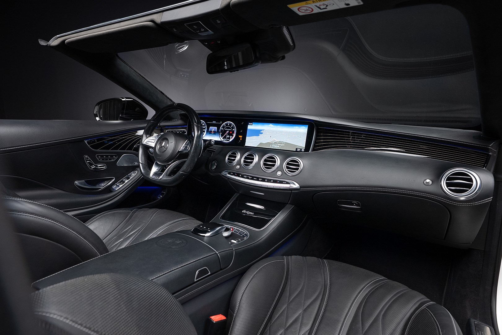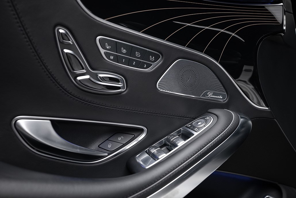 Distronic plus avståndshållande farthållare med aktiv nödbroms. Head-up display. Burmester Surround Sound System. Servostängning av dörrar. Komplett Keyless GO paket. Inredningspaneler Designo pianolack med flowing lines. Aktiv dödvinkelassistent. Aktiv kurshållningsassistent. 360 graders kamera. Adaptivt LED-strålkastarpaket ILS med helljusassistent. Aircap vindavisare. Airscarf (Nackvärme). Kollisionsvarnare bak inkl skyddssystem. Bagagelucka med elektrisk öppning och stängning. Smidda AMG fälgar i 10-eker design matt svarta med polerad kant. Handsfreesystem integrerat med Command. 4MATIC fyrhjulsdrift. AMG Speedshift MCT 7-stegs automat. Command Online - stora navigationssystemet med internetuppkoppling och 31.2 cm bildskärm. AMG sportchassi baserat på Airmatic luftfjädring. Thermotronic Klimatanläggning med aktivt kolfliter samt luftkvalitet- och fuktsensor. Handsfree öppning av bagagelucka. Komfortstolar med aktiv ventilation. Sätesvärme fram plus. Panelbelysning med 7 färger. Multikonturstolar fram med dynamiska sidostöd och massagefunktion. Elektriskt inställbara stolar med minnespaket fram. Eluppvärmt baksäte. Instrumentpanel i nappaklädsel med dekorationssömmar. Dörrklädsel i nappaklädsel med dekorationssömmar. Elinställbar ratt. Hastighetspåminnare. AMG belysta instegslister, Avbländbara backspeglar. Infällbara backspeglar. Dubbla larm. RDK-däcktryckskontroll. Garageportsöppnare. Aktiv parkeringshjälp. PTS-parkeringssensorer fram och bak. Skydd under motorn. Regnsensor samt övrig seriemässig utrustning.