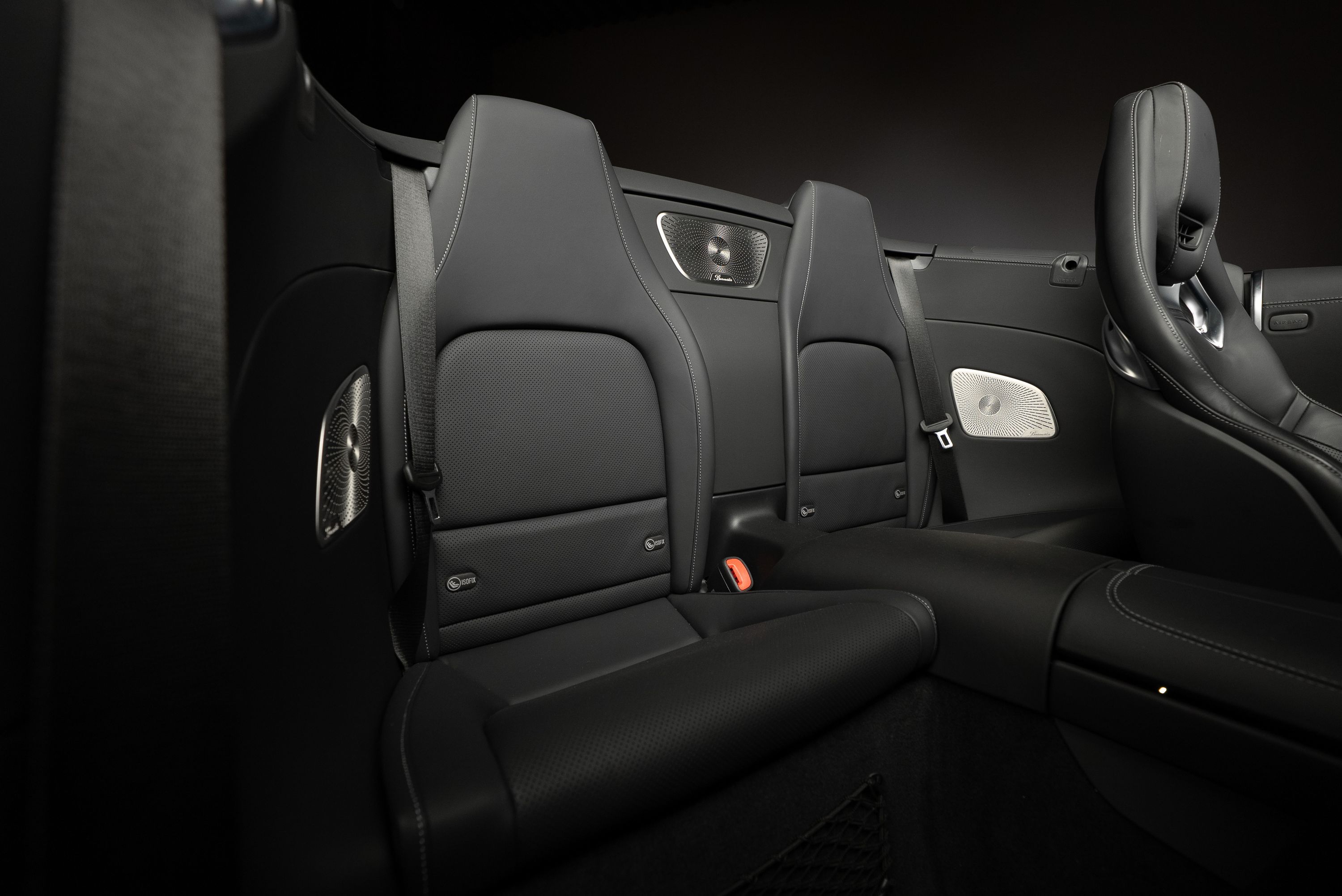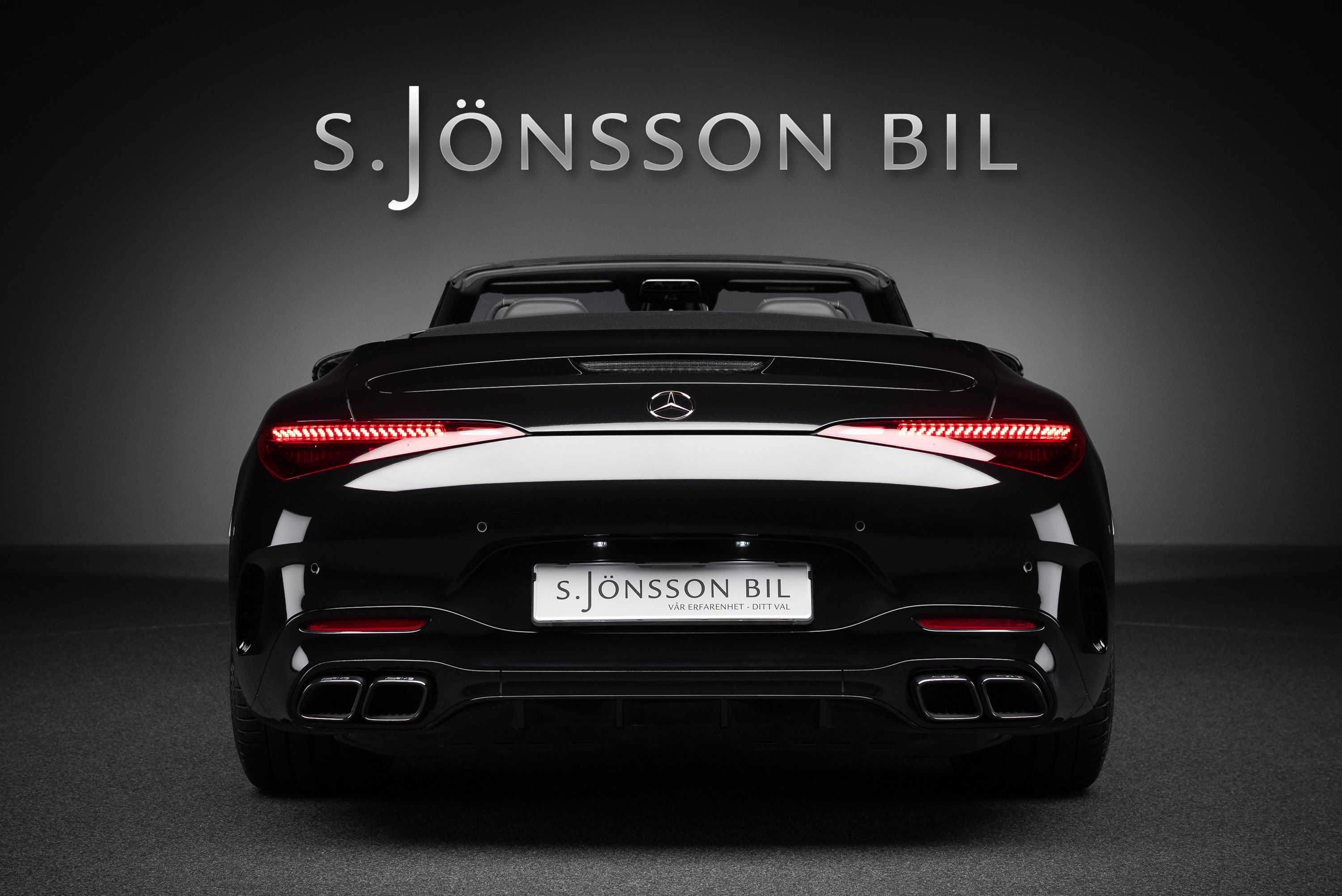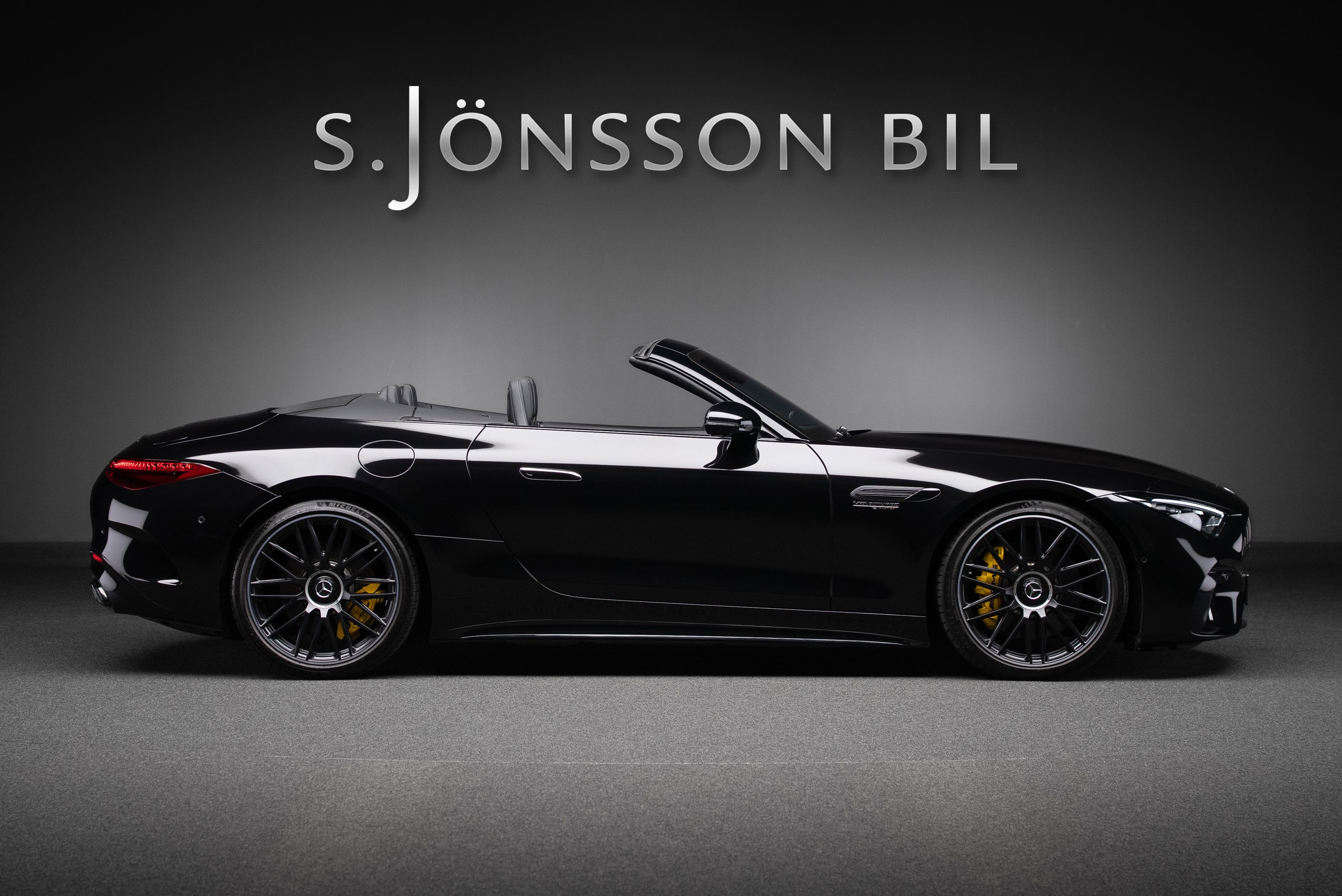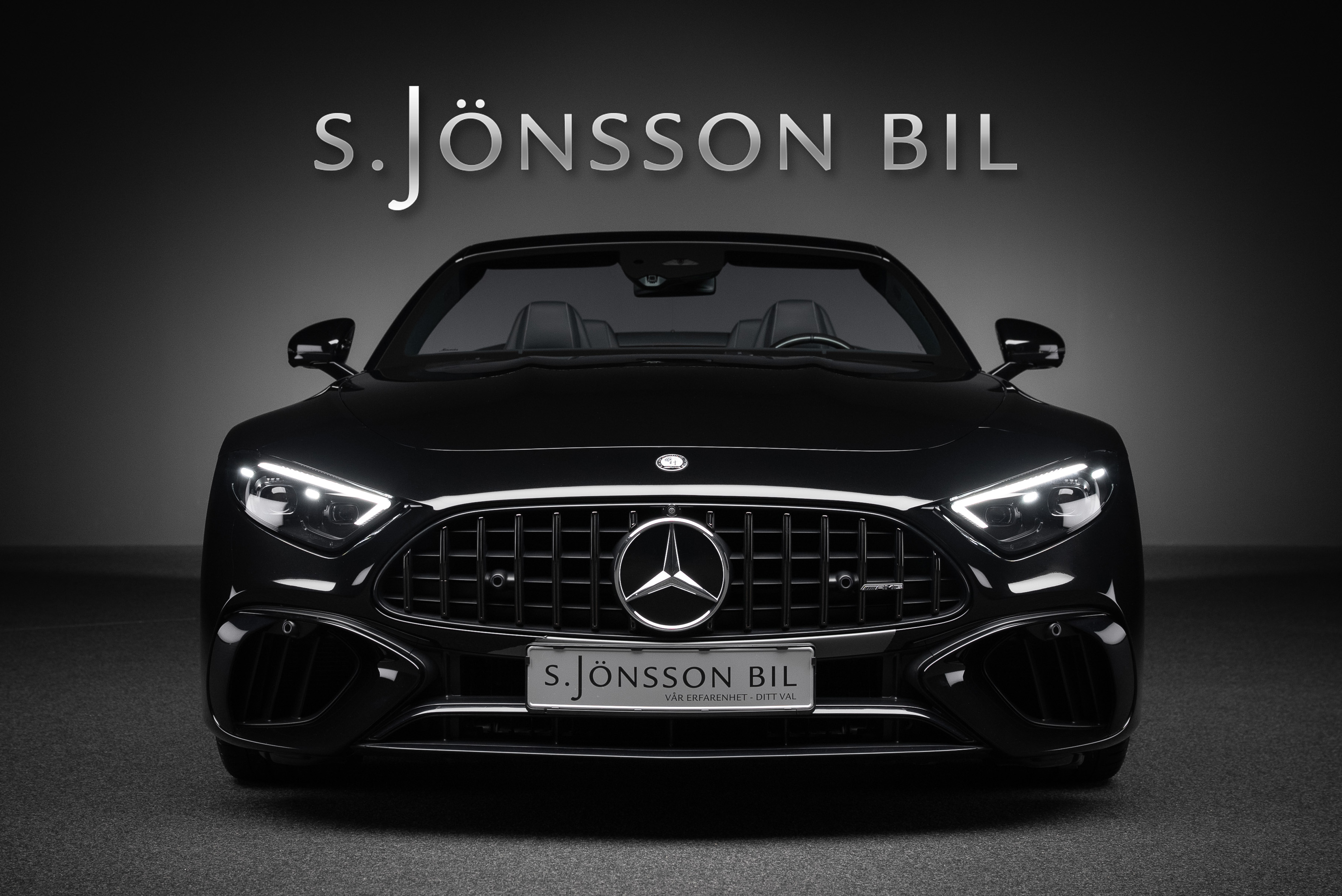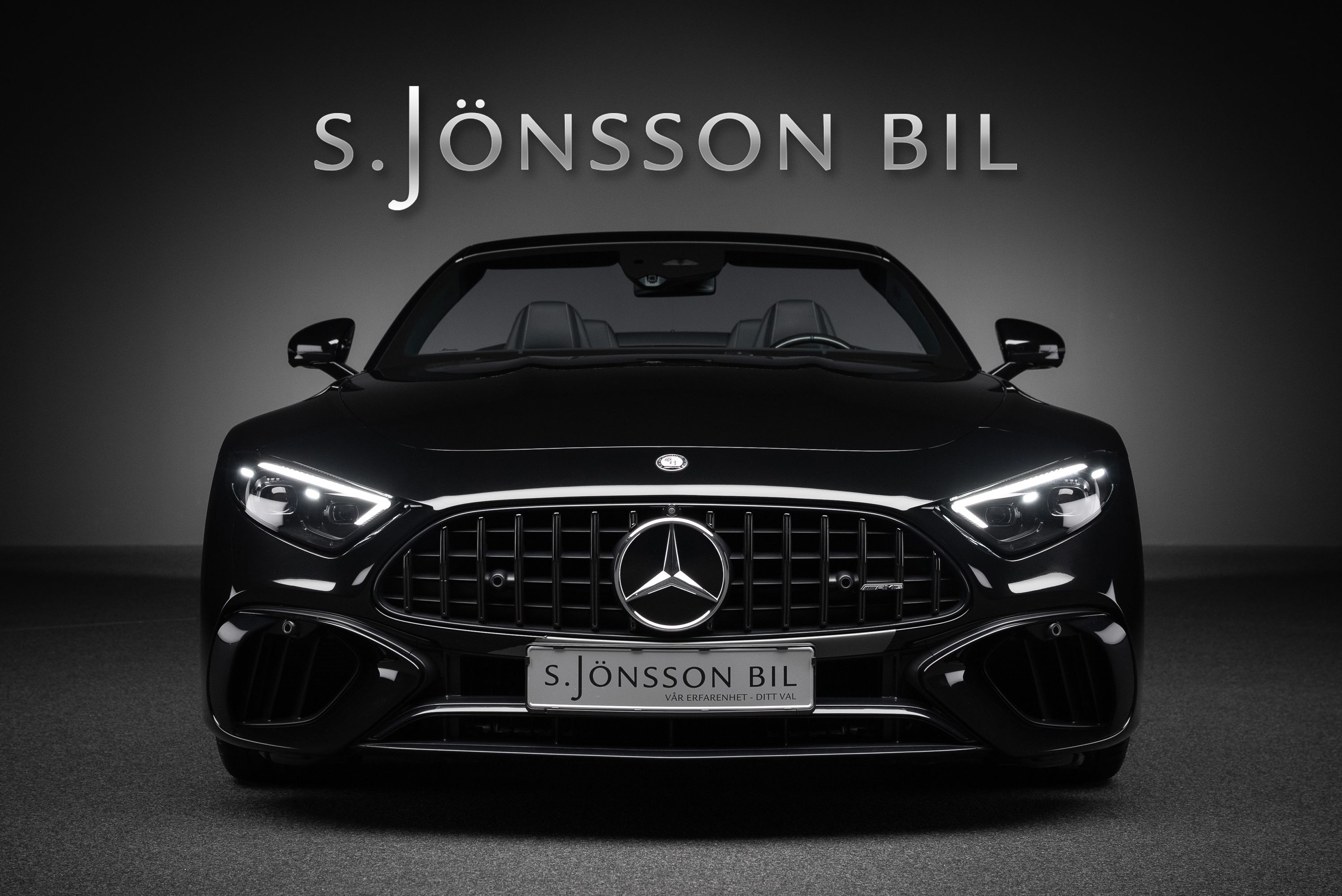 Mercedes-AMG SL 63 4MATIC+ med påkostad utrustning. Bland annat har bilen det ovanliga Burmester High End ljudsystemet som är 47.300 kr dyrare än vanliga "Burmester Surround Sound System". High End systemet har 17 st högtalare och 1220W förstärkareffekt. Ett annat eftertraktat men sällsynt tillval är AMG Performance säte. Inredningsdetaljer i kolfiber tillhör inte heller vanligheterna då prislappen för dessa är hög. I detta exemplar hittar vi dock både ratt och paneler i kolfiber.