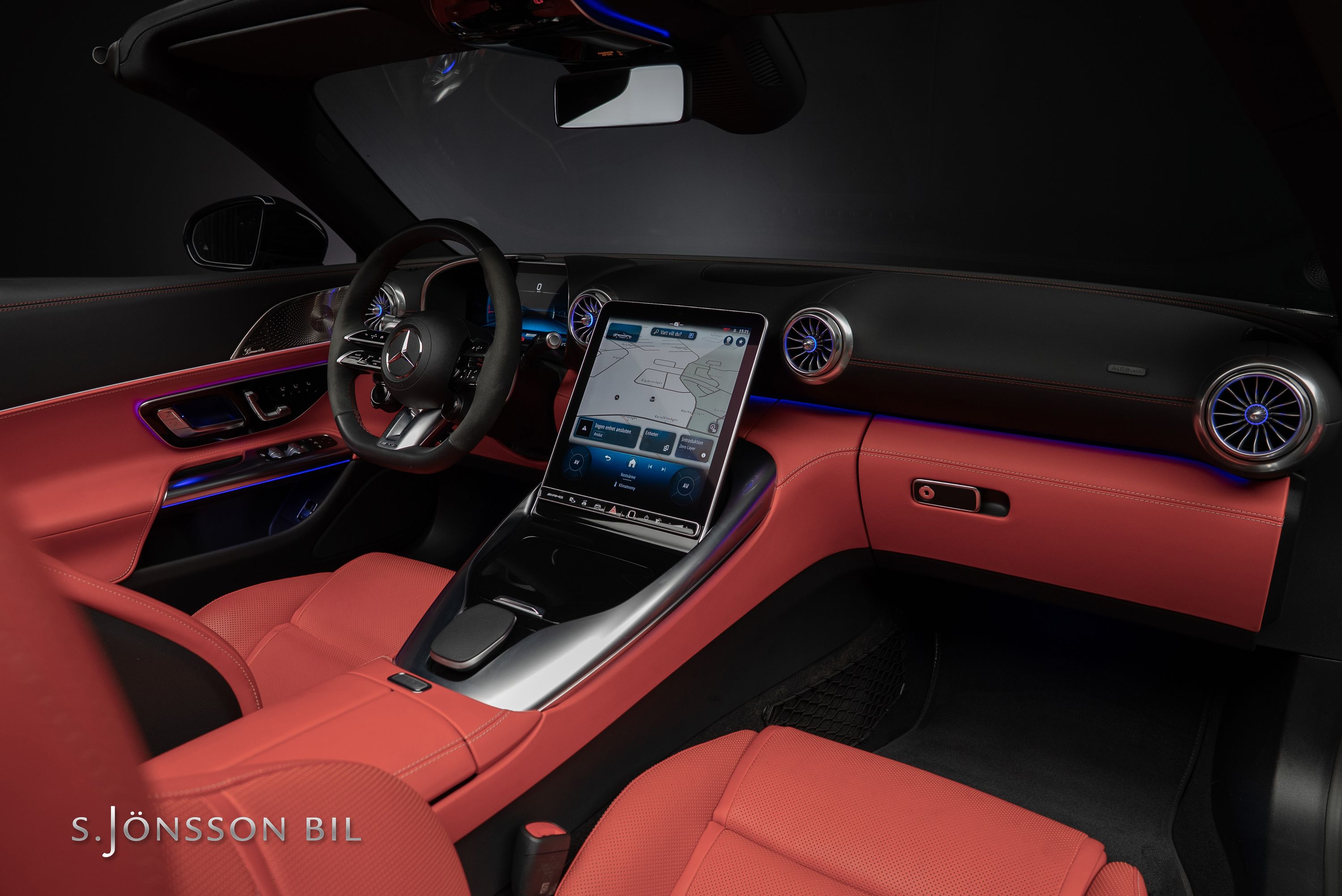 - Eluppvärmd ratt i alcantara och nappaläder med kontrastsömmar i Red Pepper