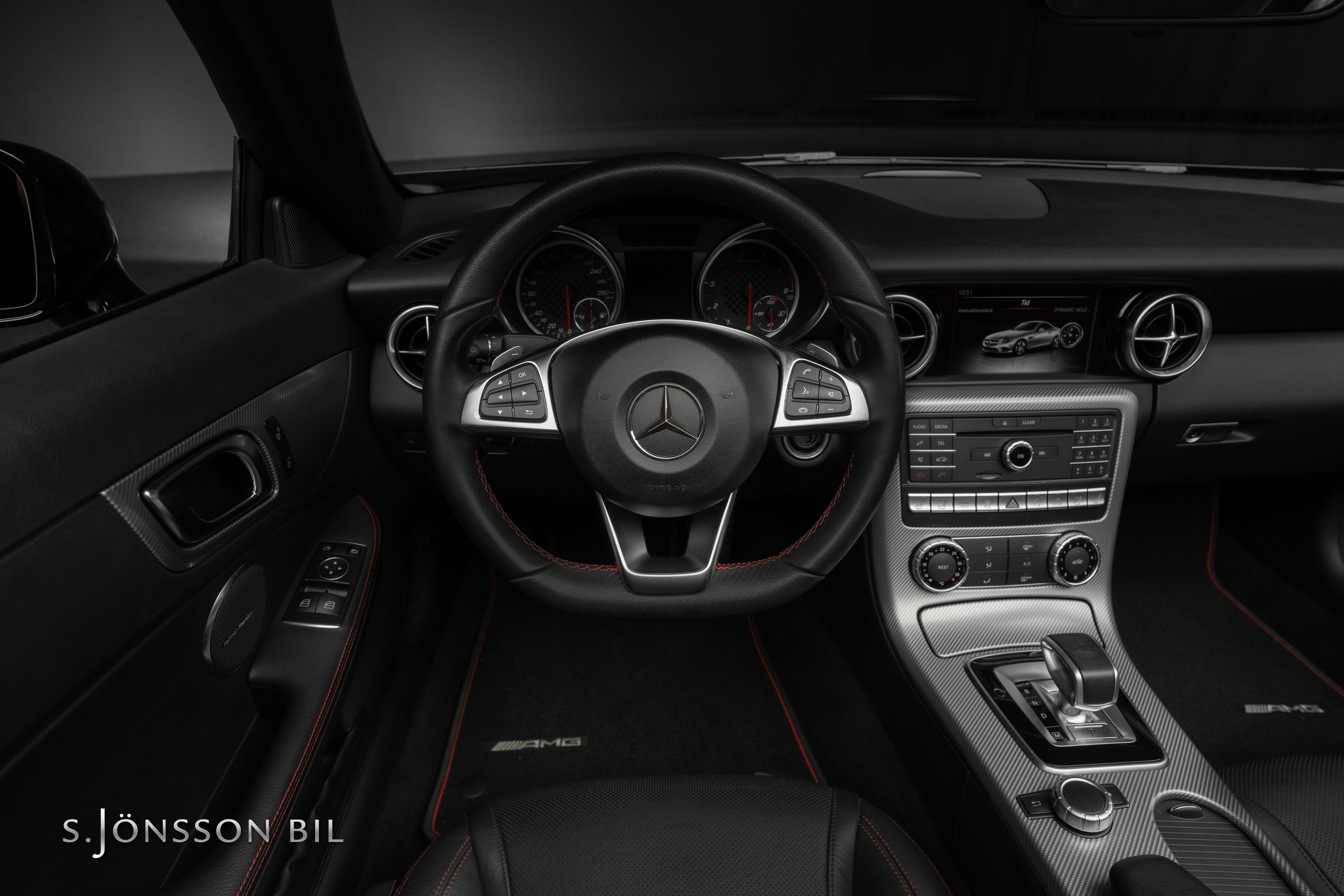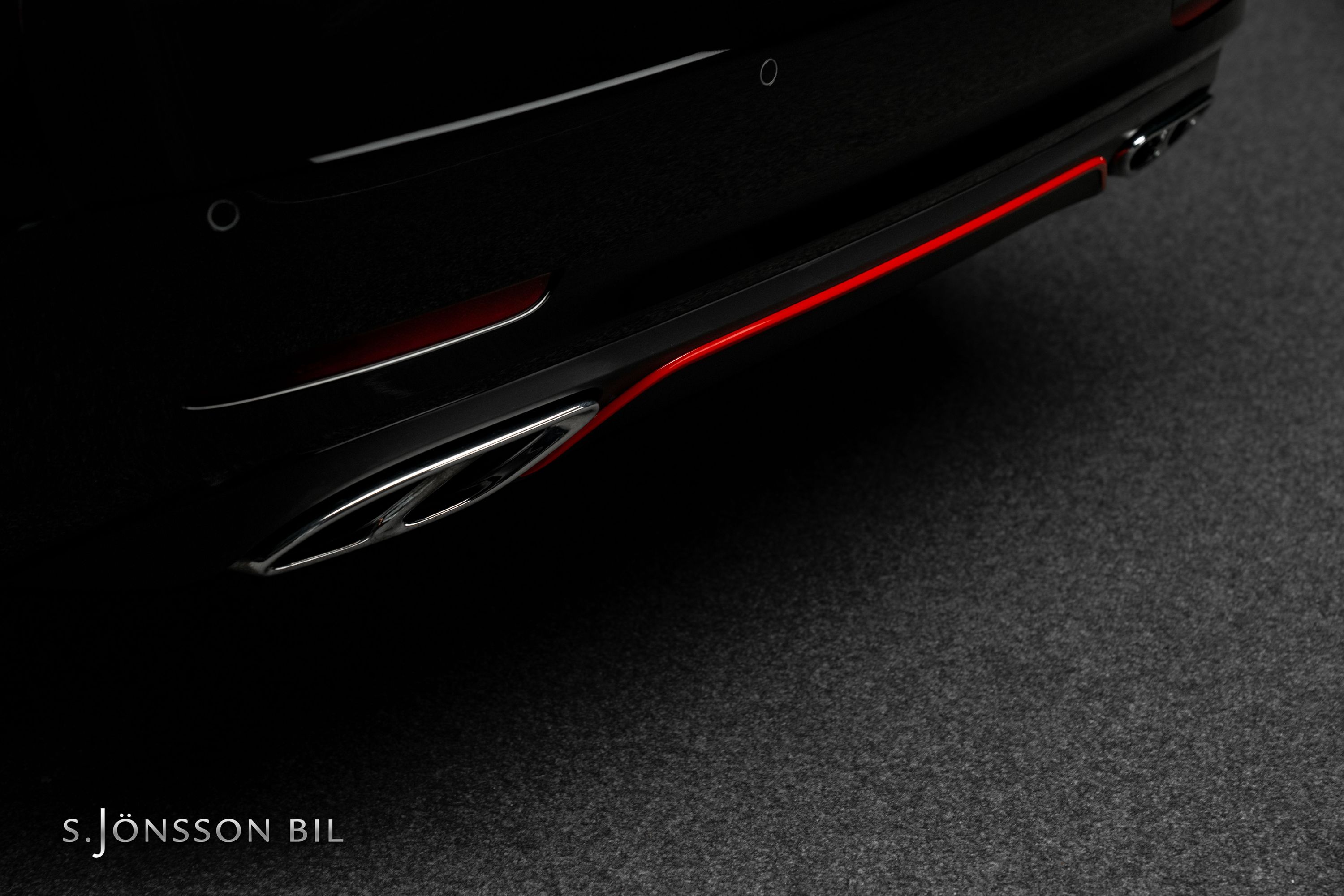 Utvändigt har Performance Studio RedArt detaljer i Gloss Red på tex front spoiler, intake arches, rear diffuser och side fins. Fälgarna är 10-ekrade och lackerade i High-gloss Black med röd fälgkant och bromsoken är röda med svart AMG-logga.