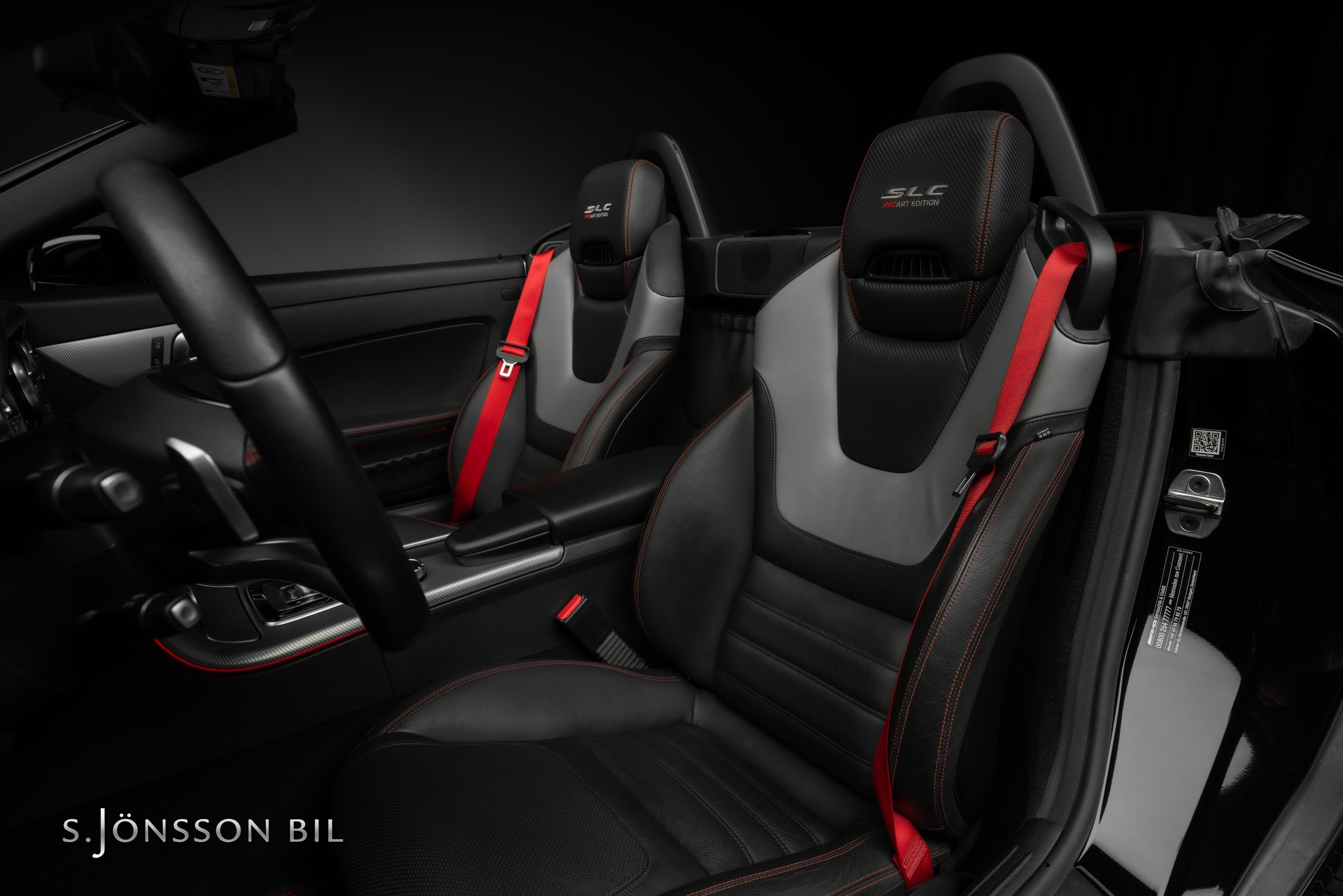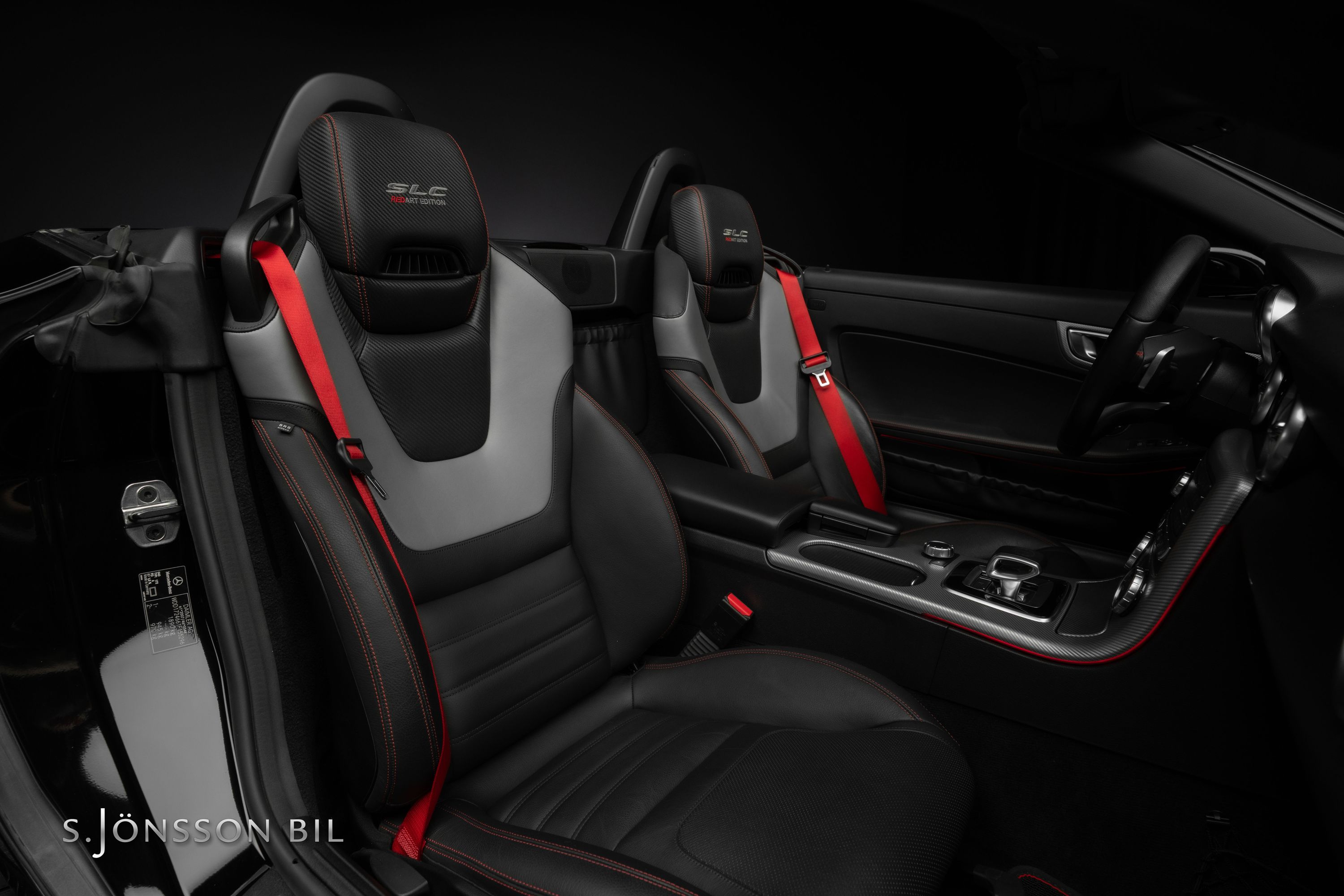 Denna ovanliga modell har bland annat sportstolar klädda i två-tons Black and Silver Pearl nappaläder med kontrastsömmar och säkerhetsbälte i rött. Sportstolarna har kolfibermönstrade läderinlägg och RedArt Edition loggan broderade i nackstöden.