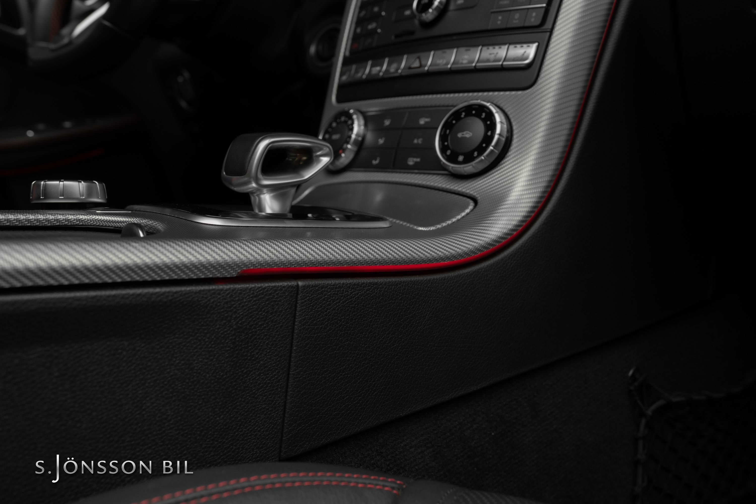 - Interiörpaneler i mörk aluminium med kolfiberstruktur