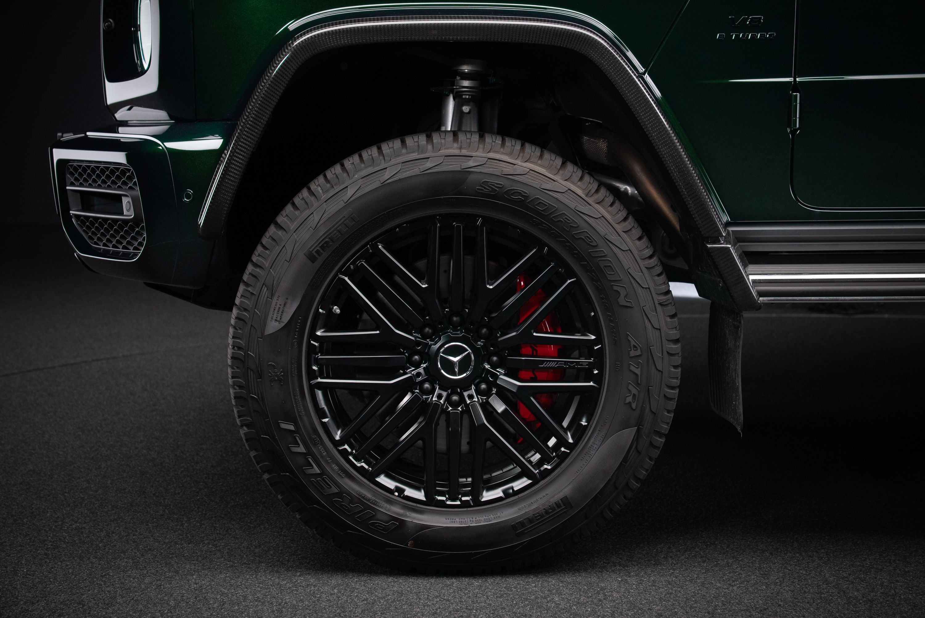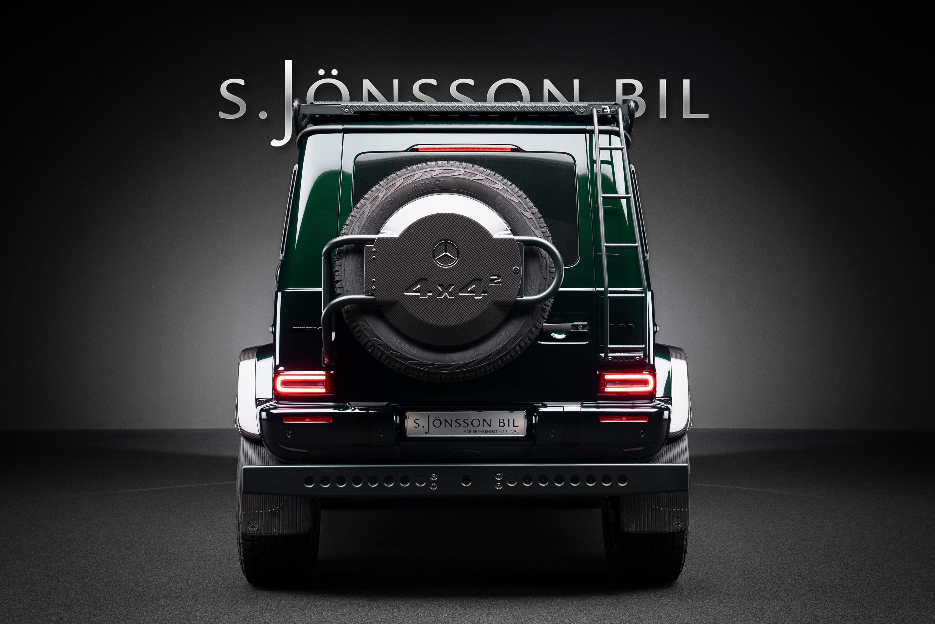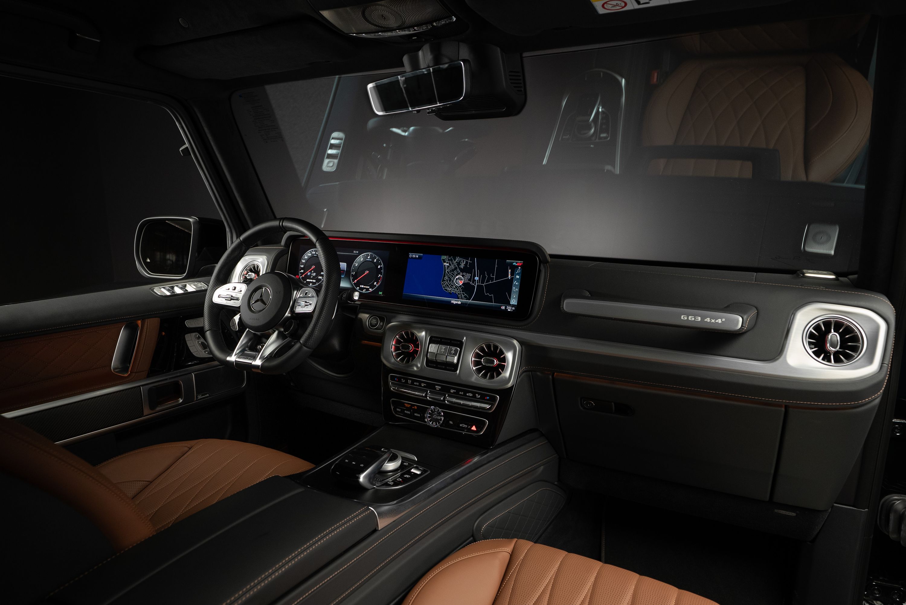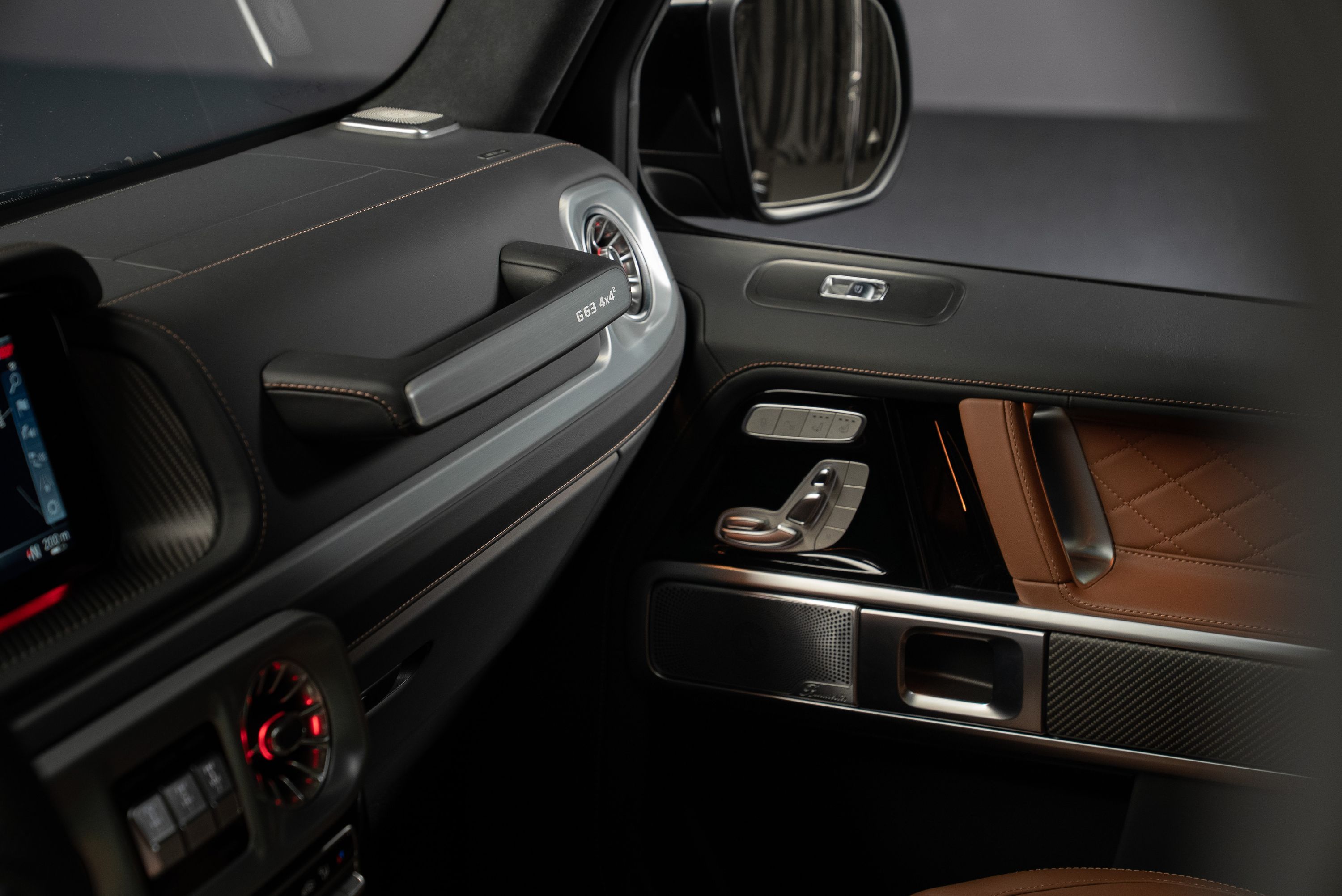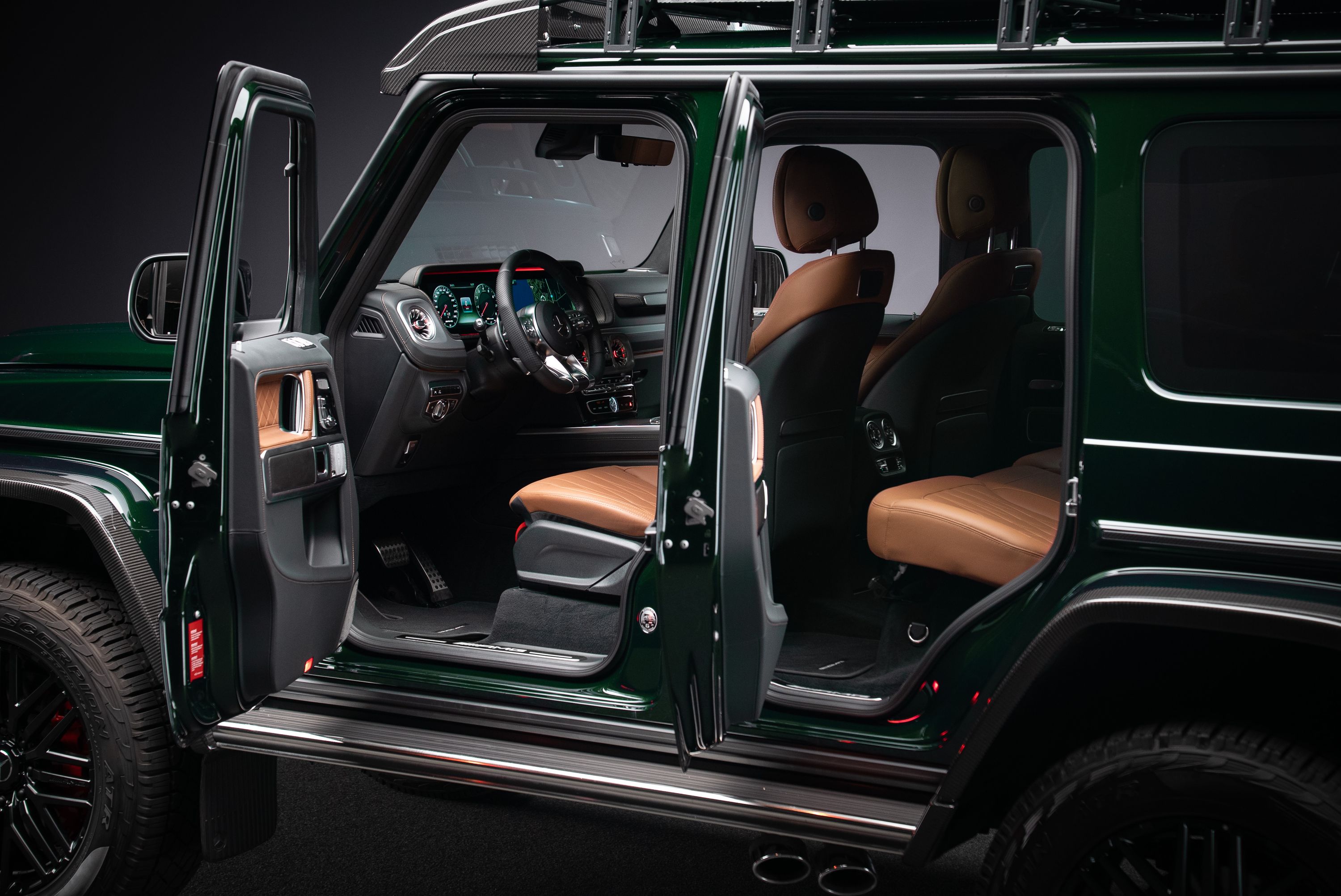 Leasebar Mercedes-AMG G 63 4x4², Lackerad i smaragdgrön metallic med interiör i Sadelbrunt nappaläder.