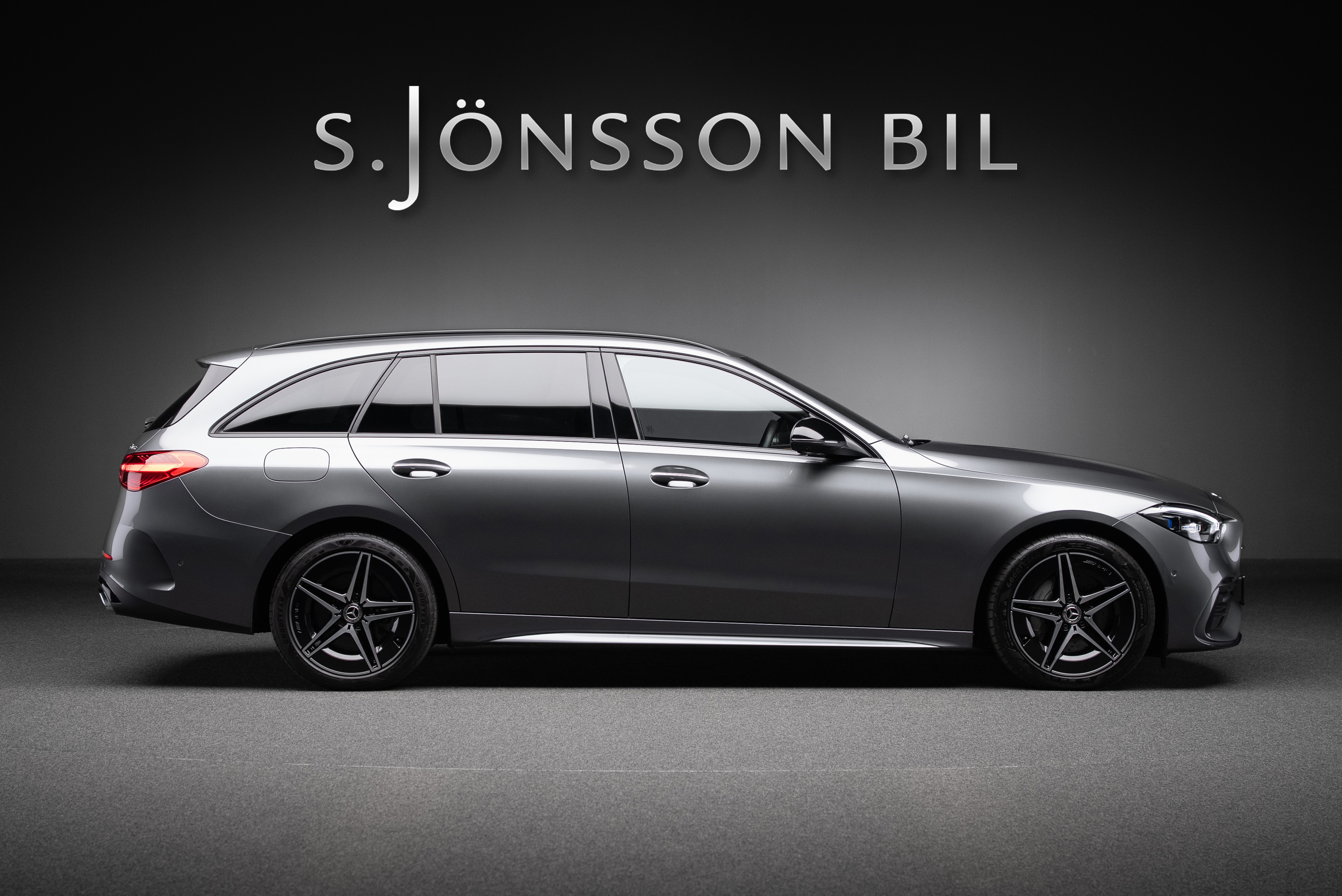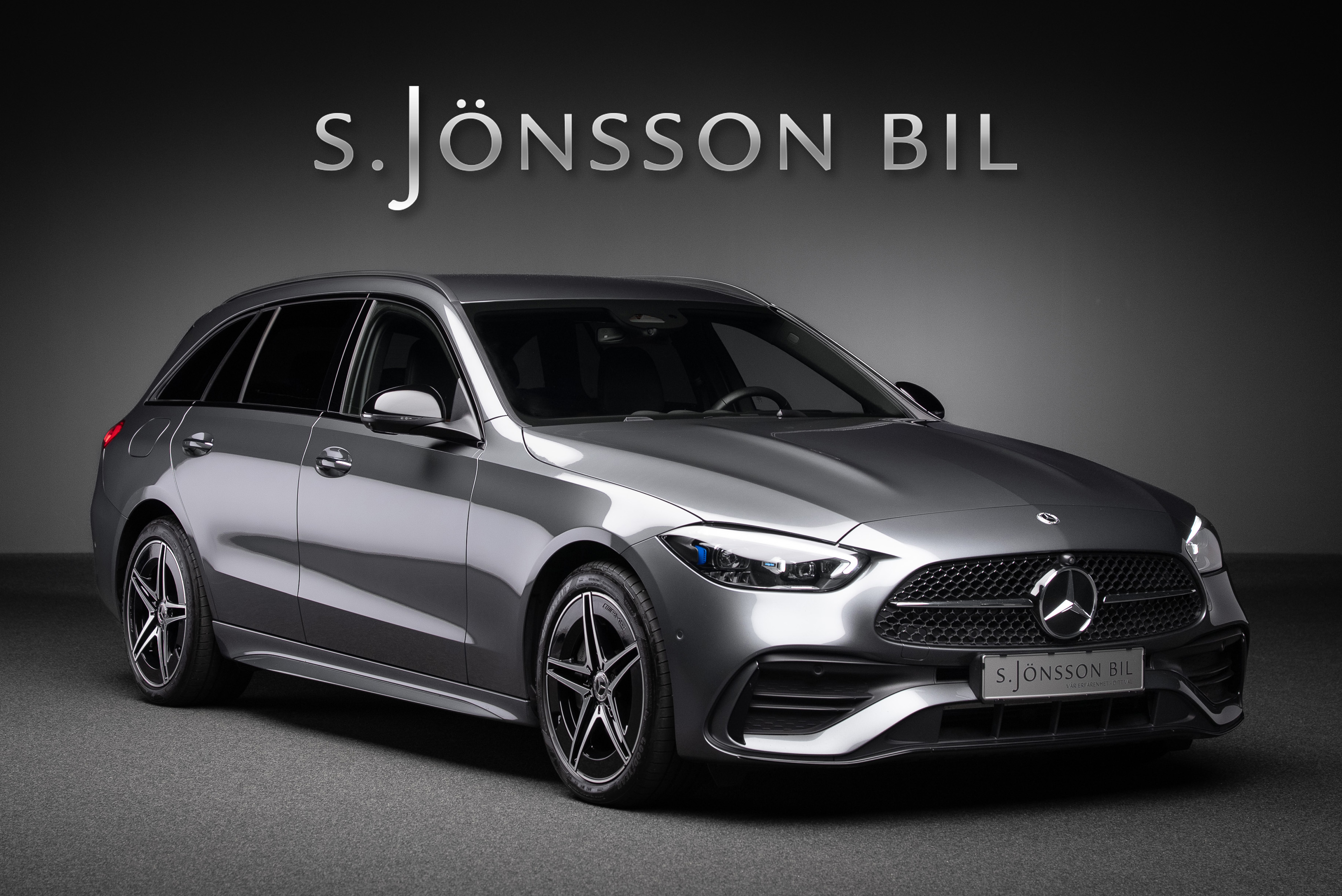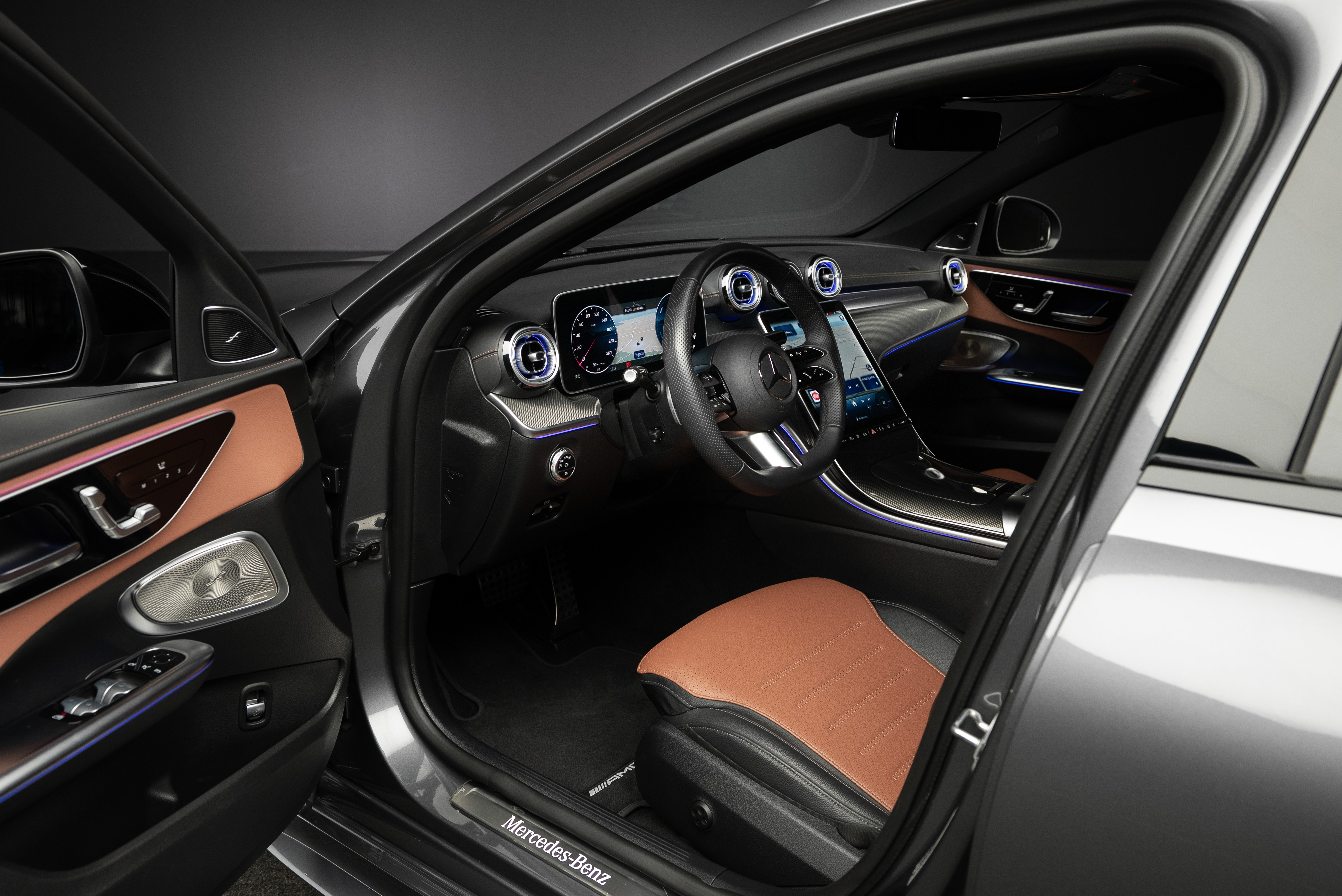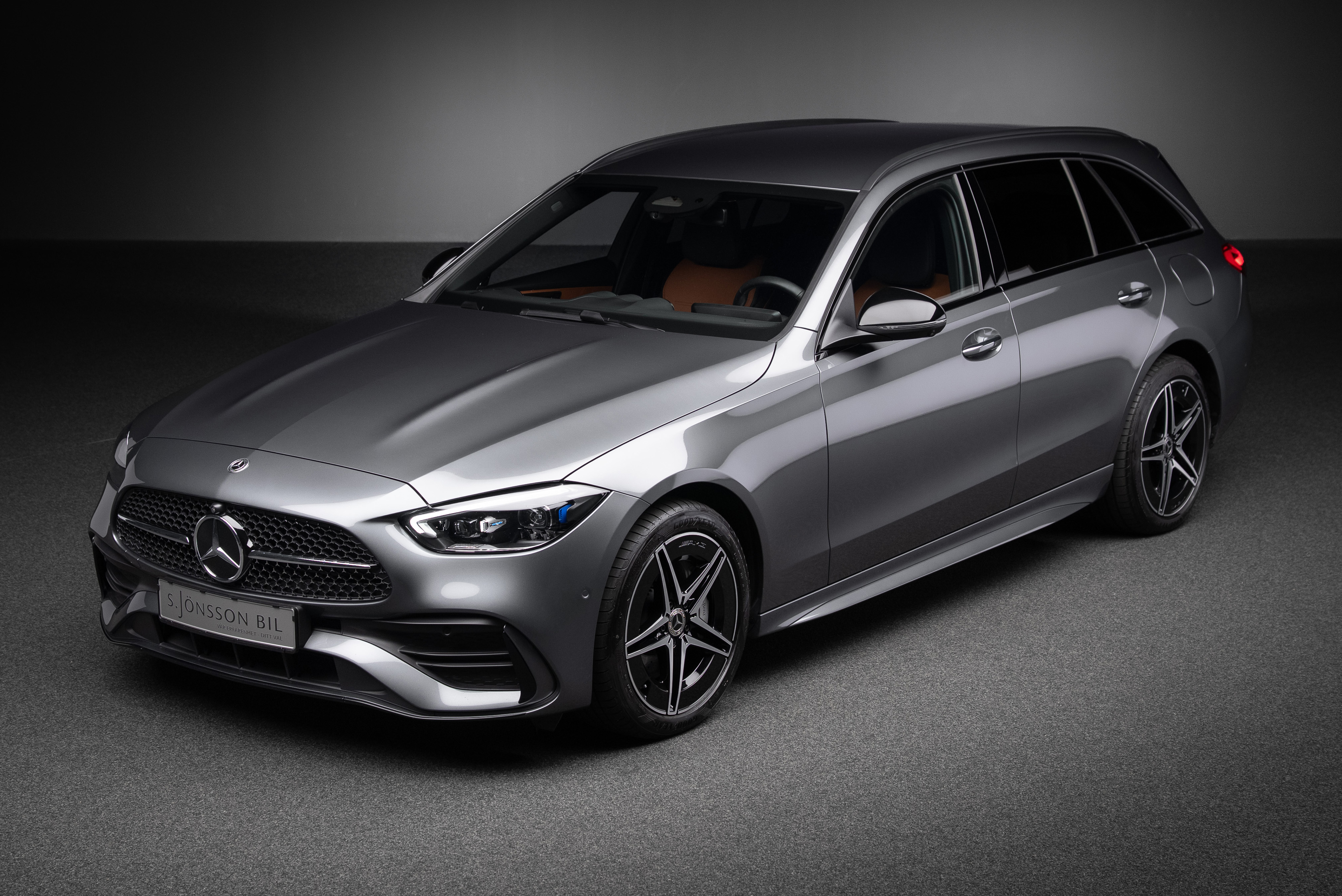 Leasebar Mercedes-Benz C 300 de Kombi ladd hybrid. Lackerad i Selenitgrå kombinerad med Sienabrun/svart.