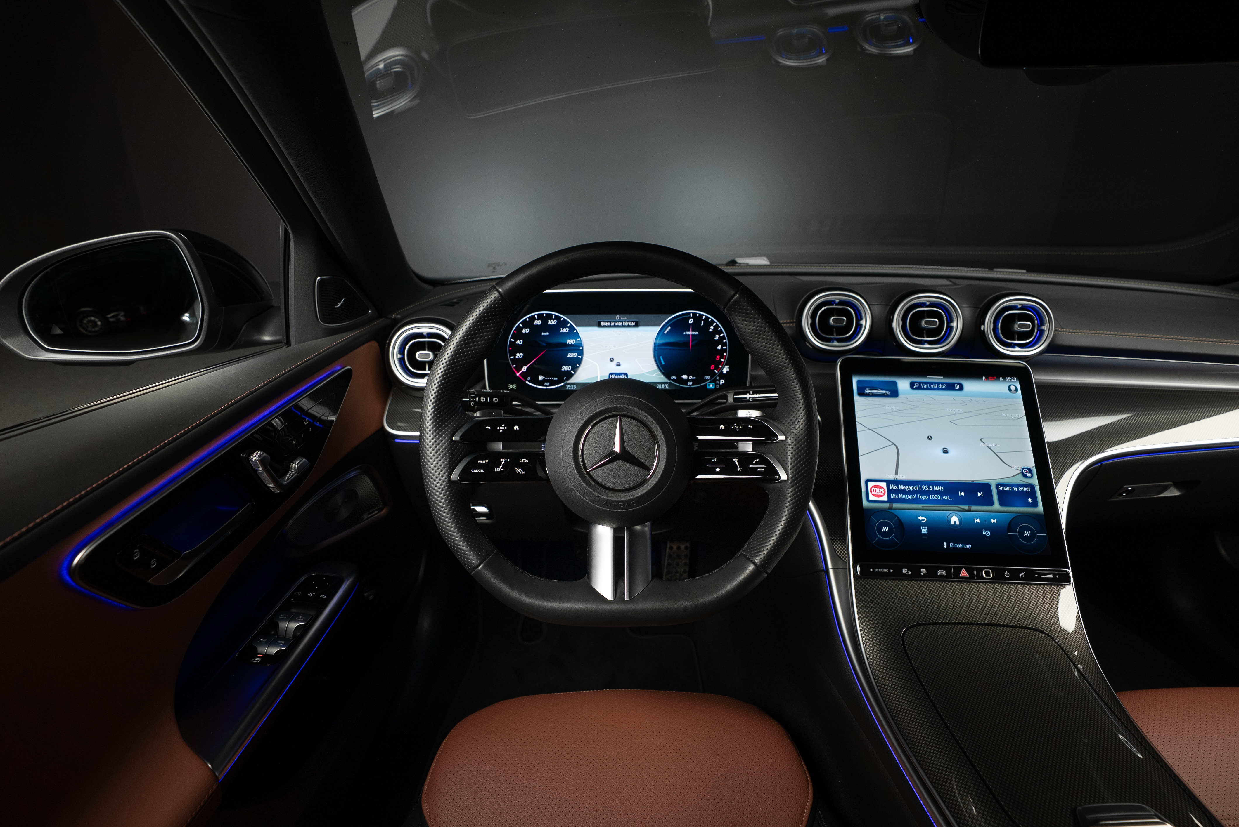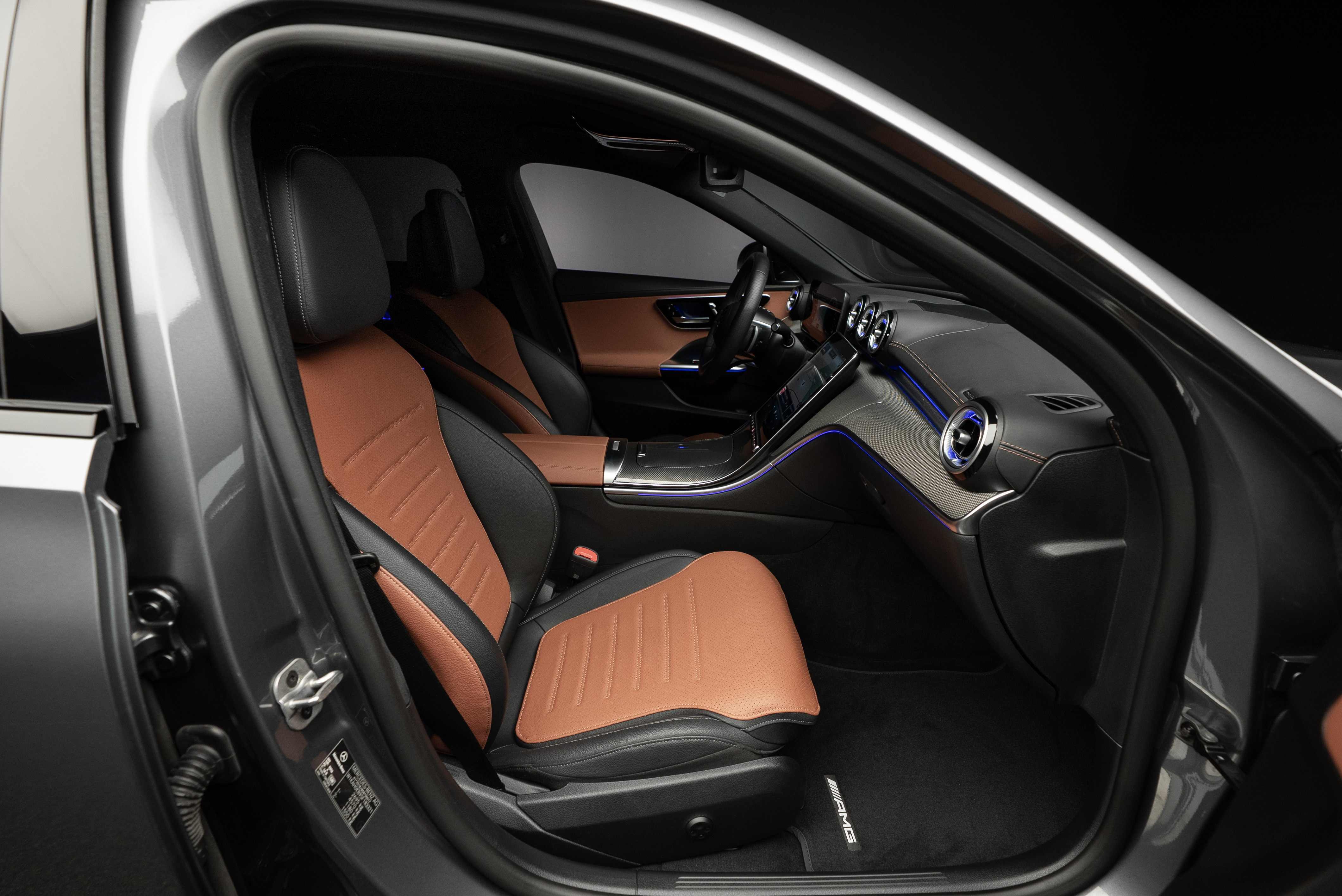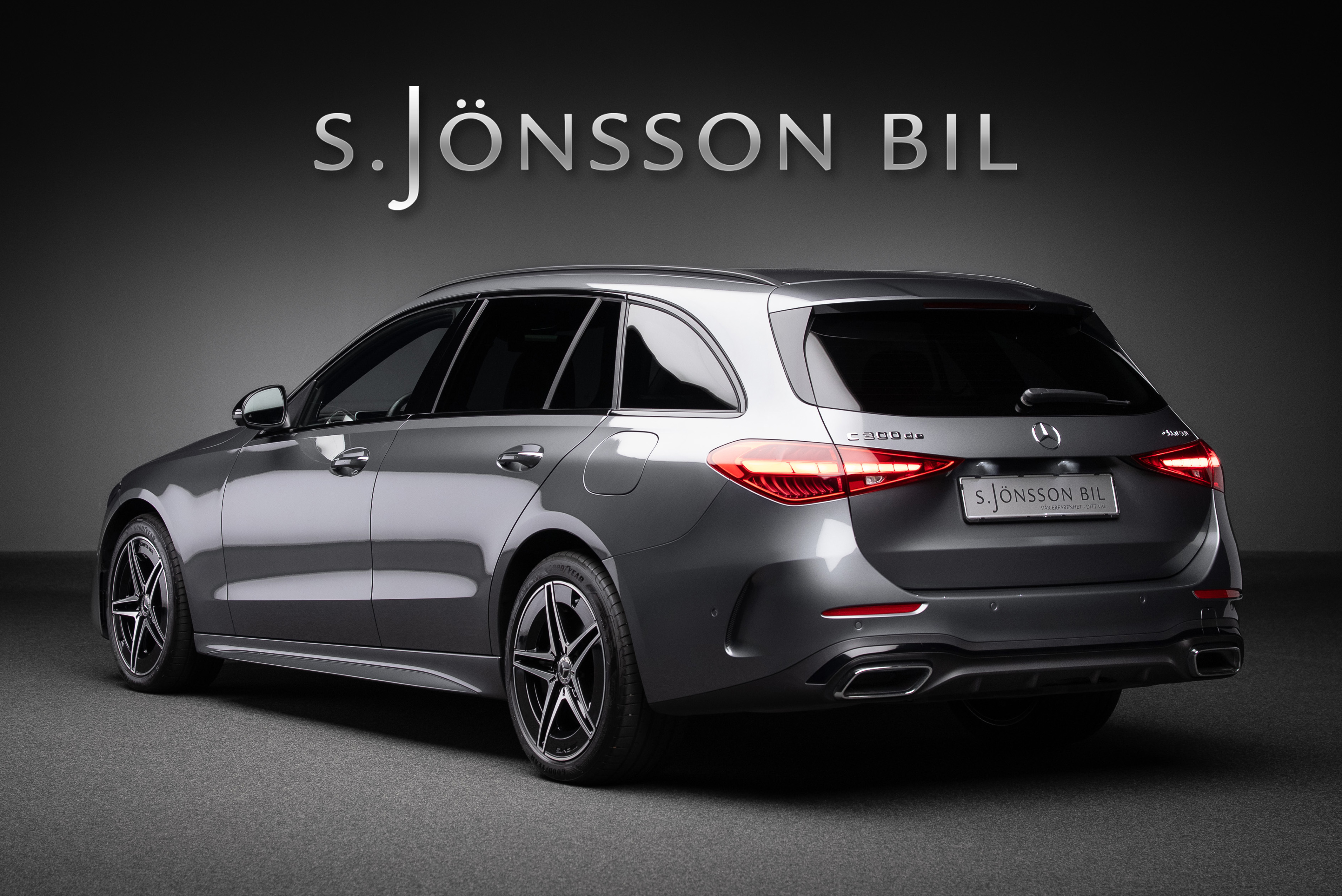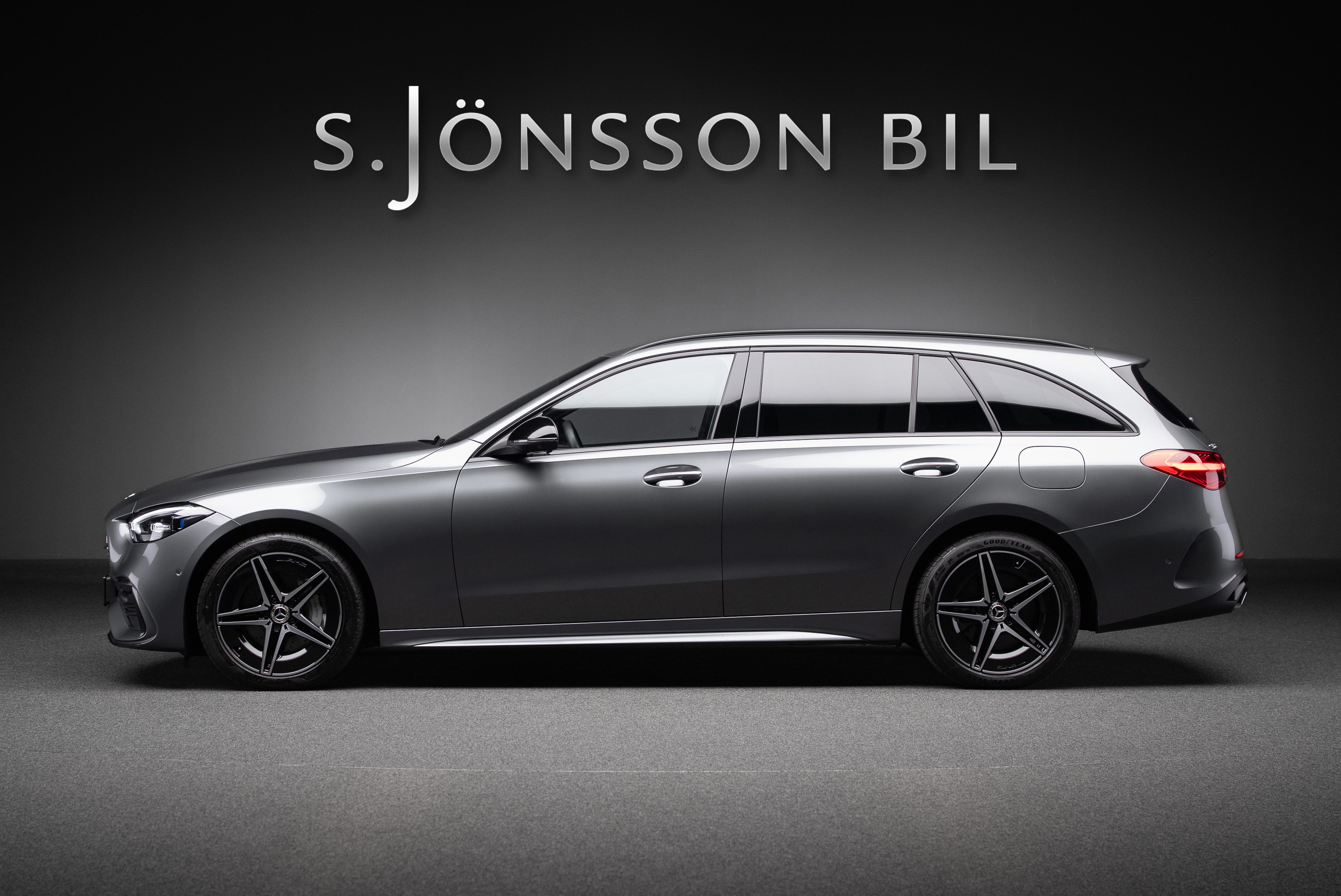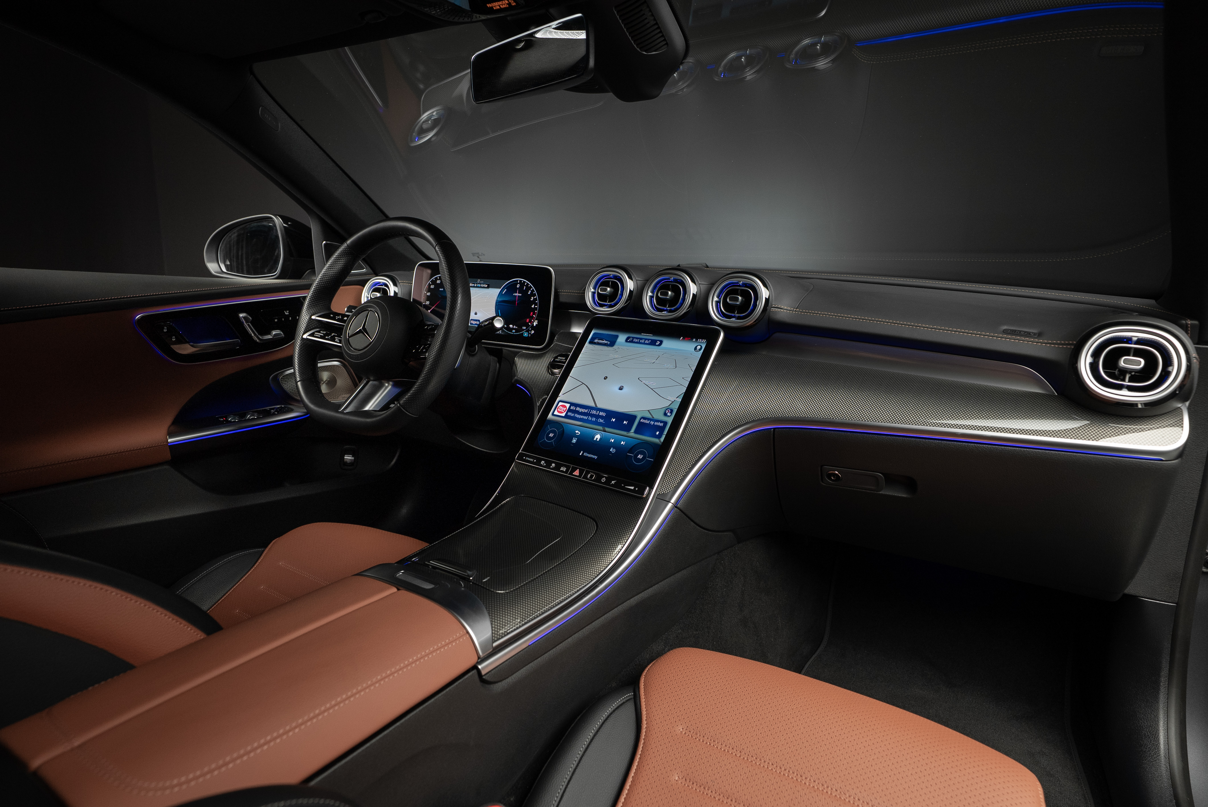 Leasebar Mercedes-Benz C 300 de Kombi ladd hybrid. Lackerad i Selenitgrå kombinerad med Sienabrun/svart.