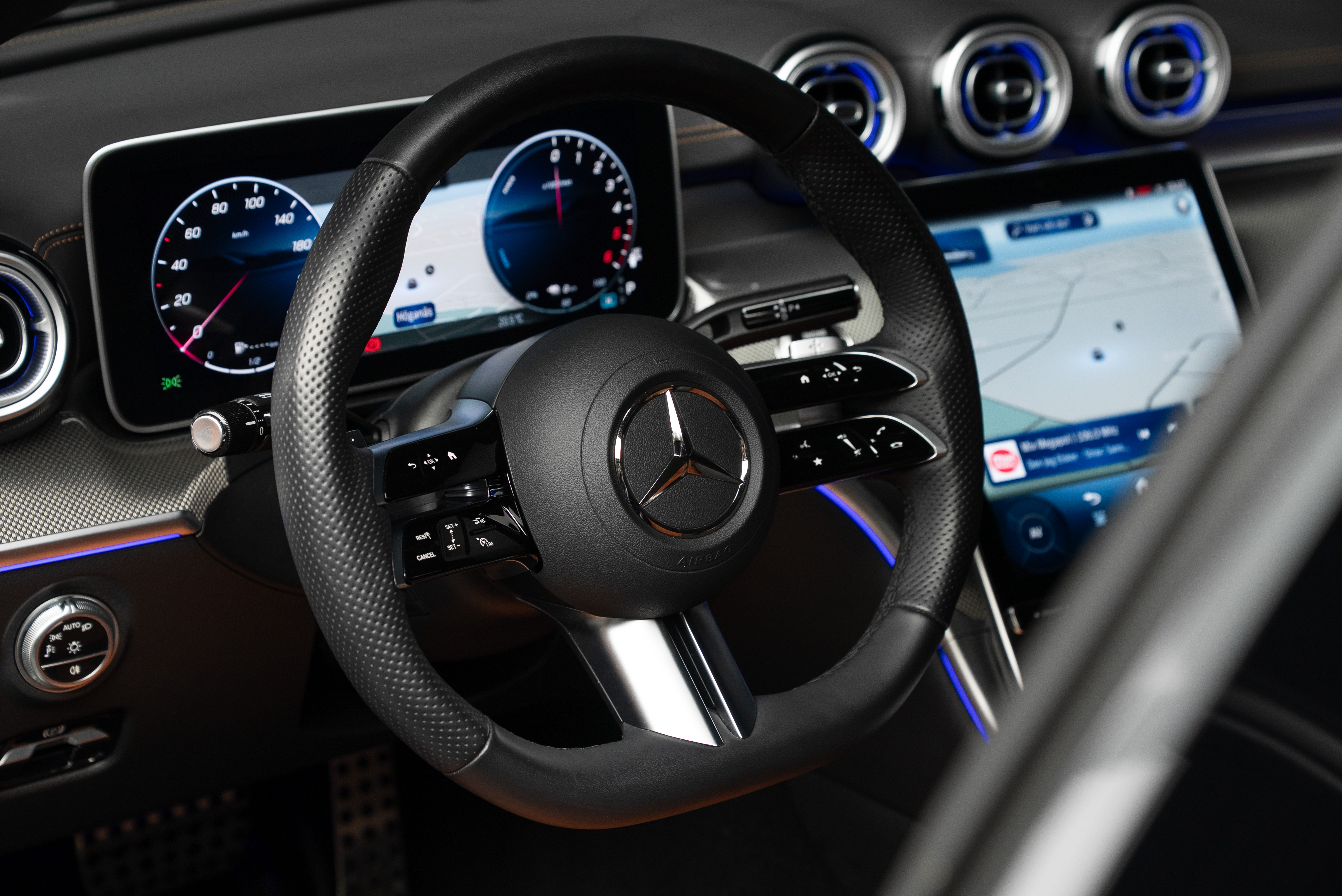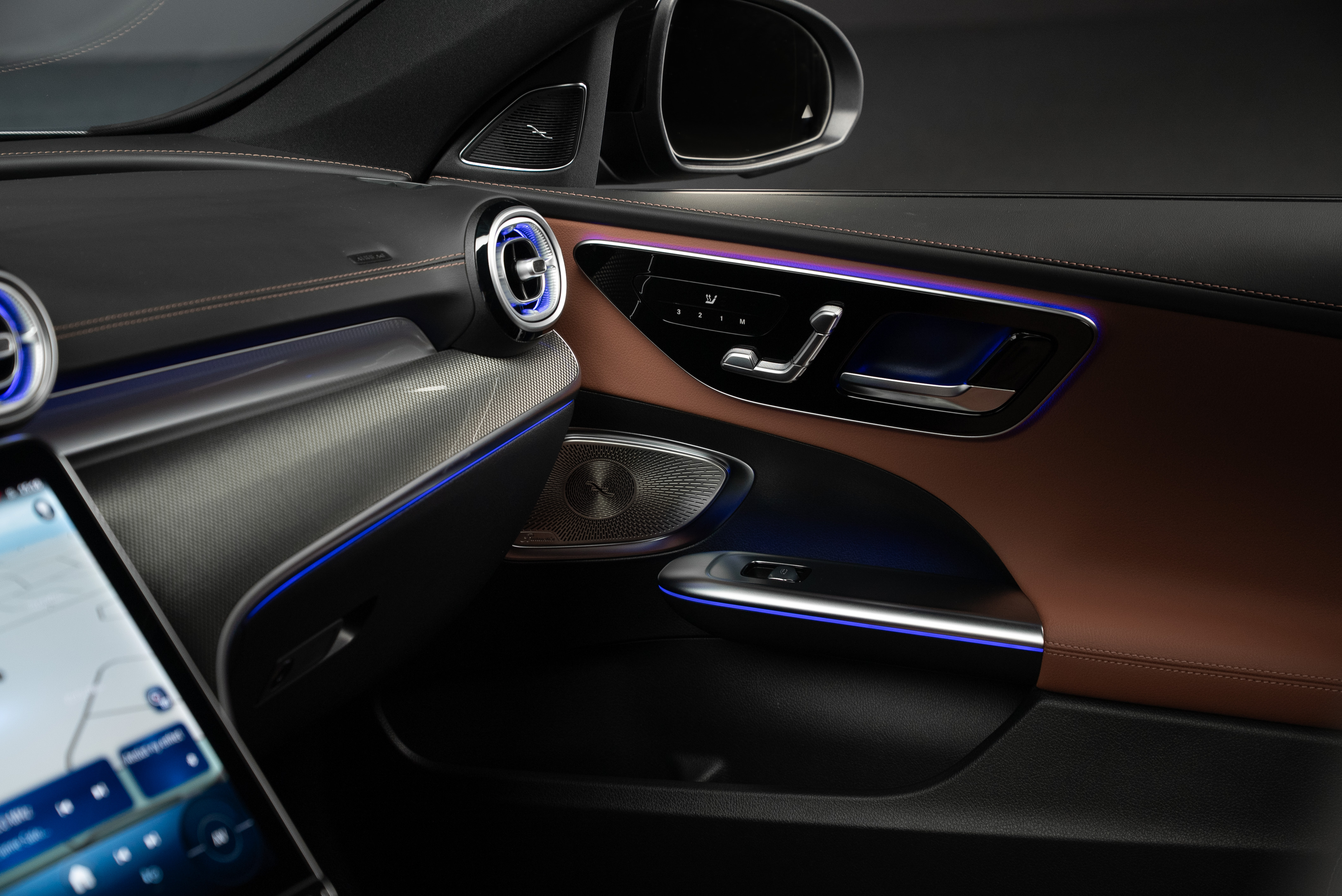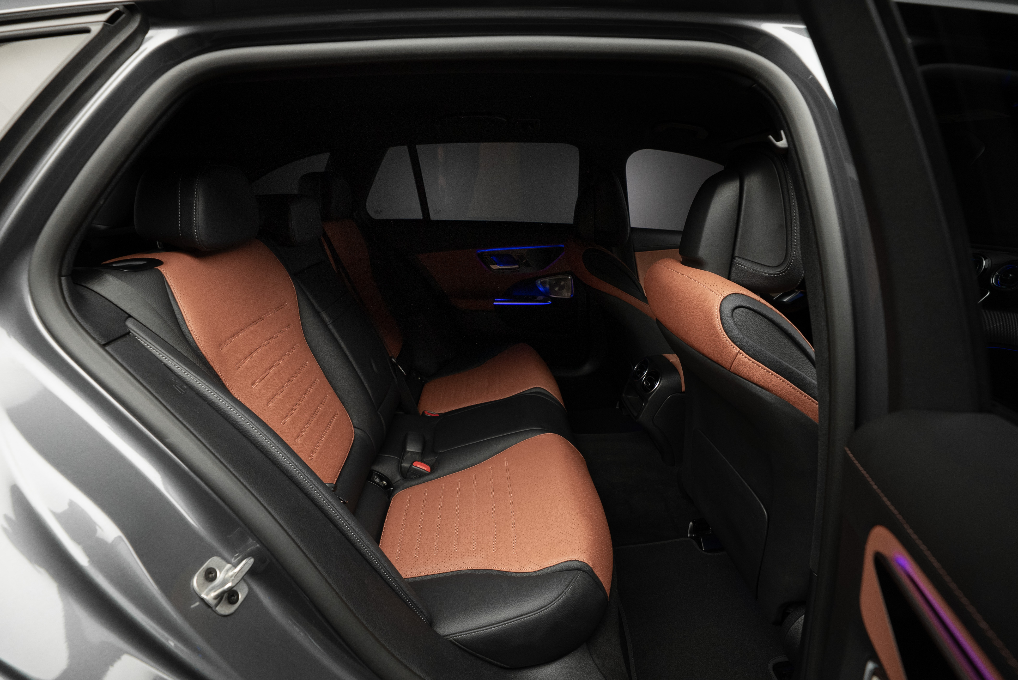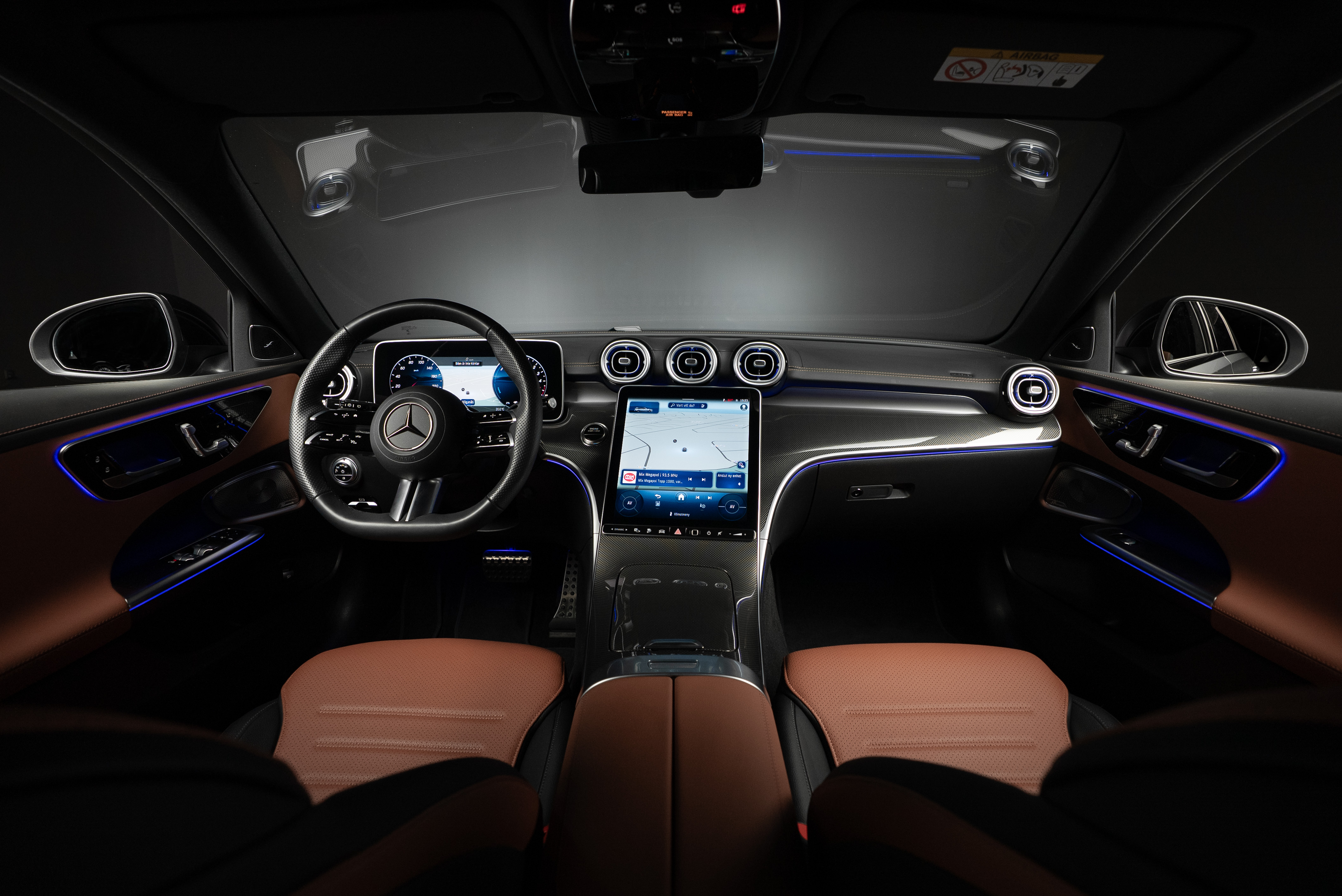 Leasebar Mercedes-Benz C 300 de Kombi ladd hybrid. Lackerad i Selenitgrå kombinerad med Sienabrun/svart.