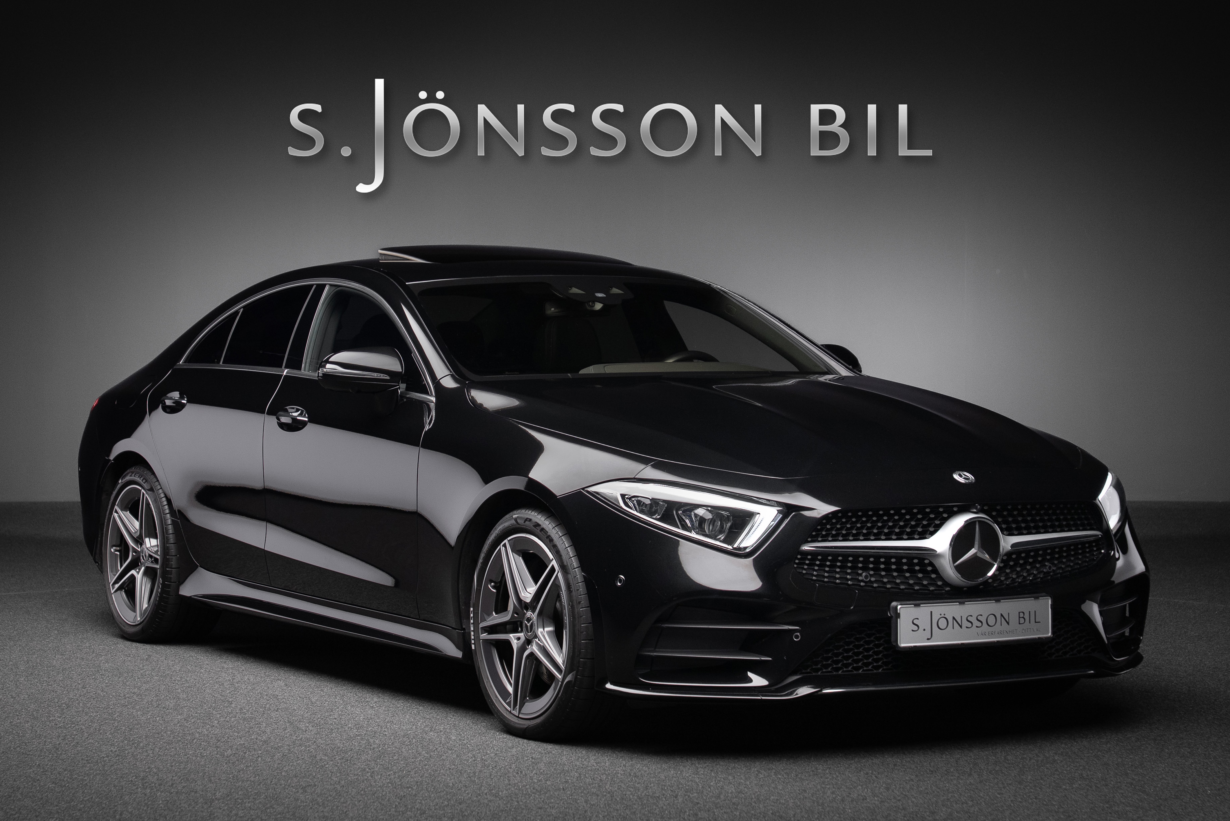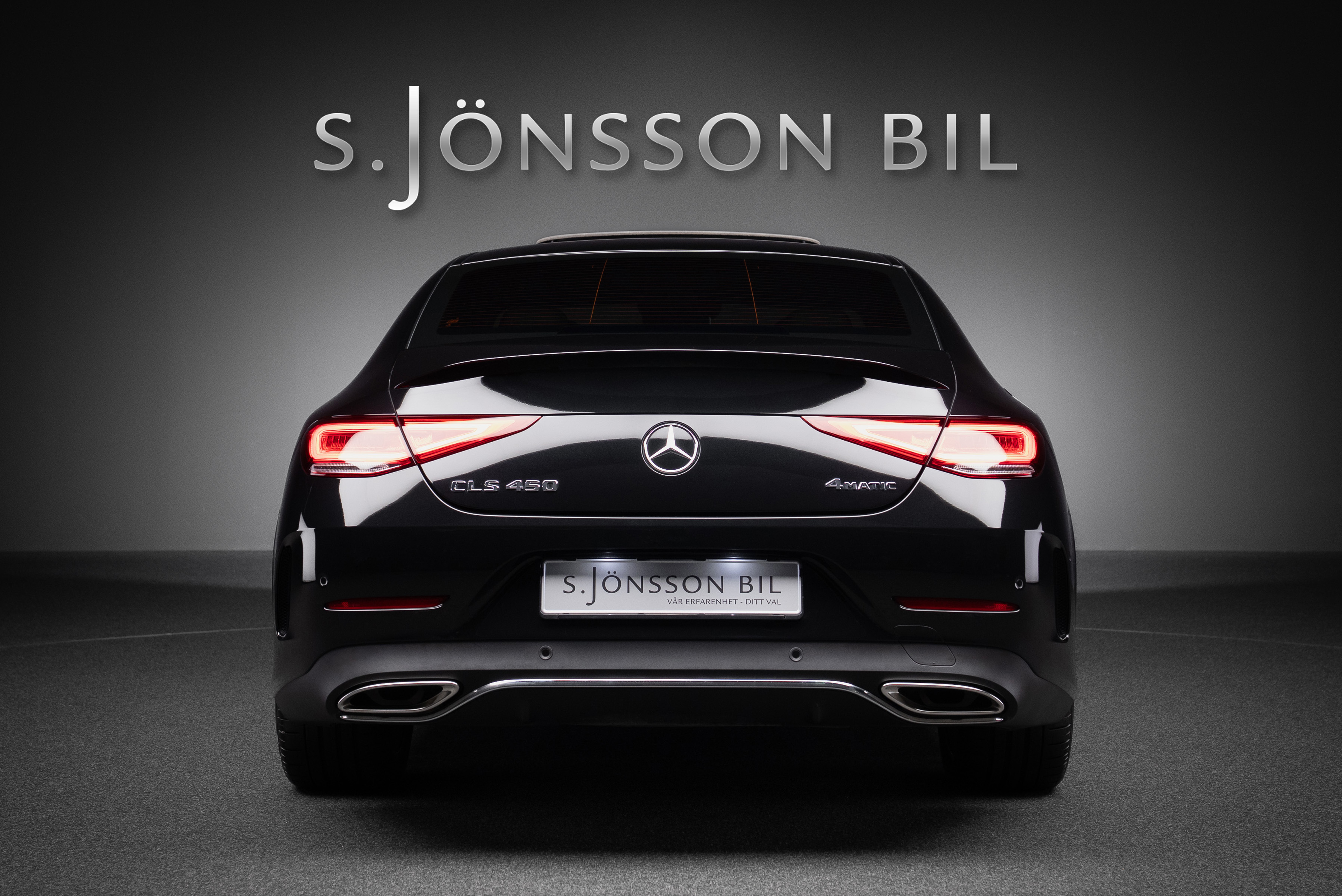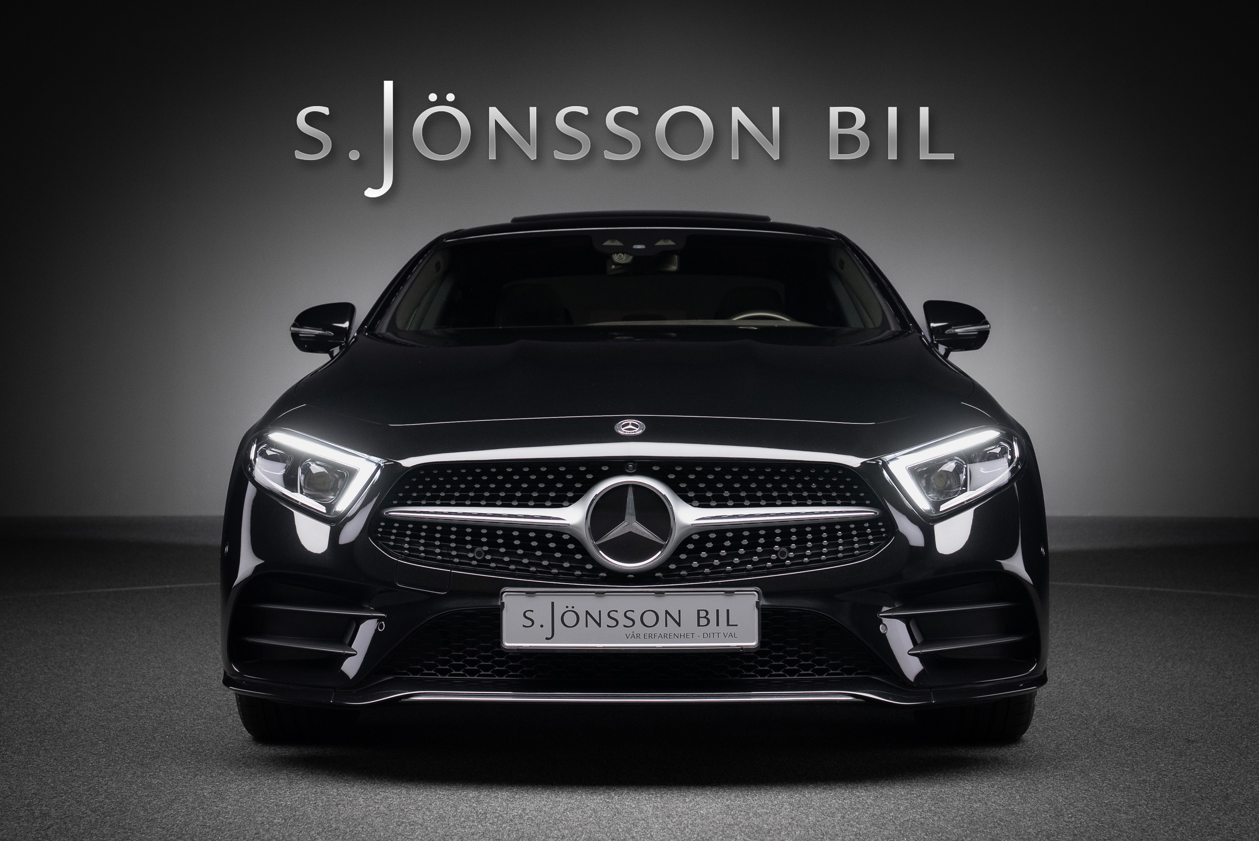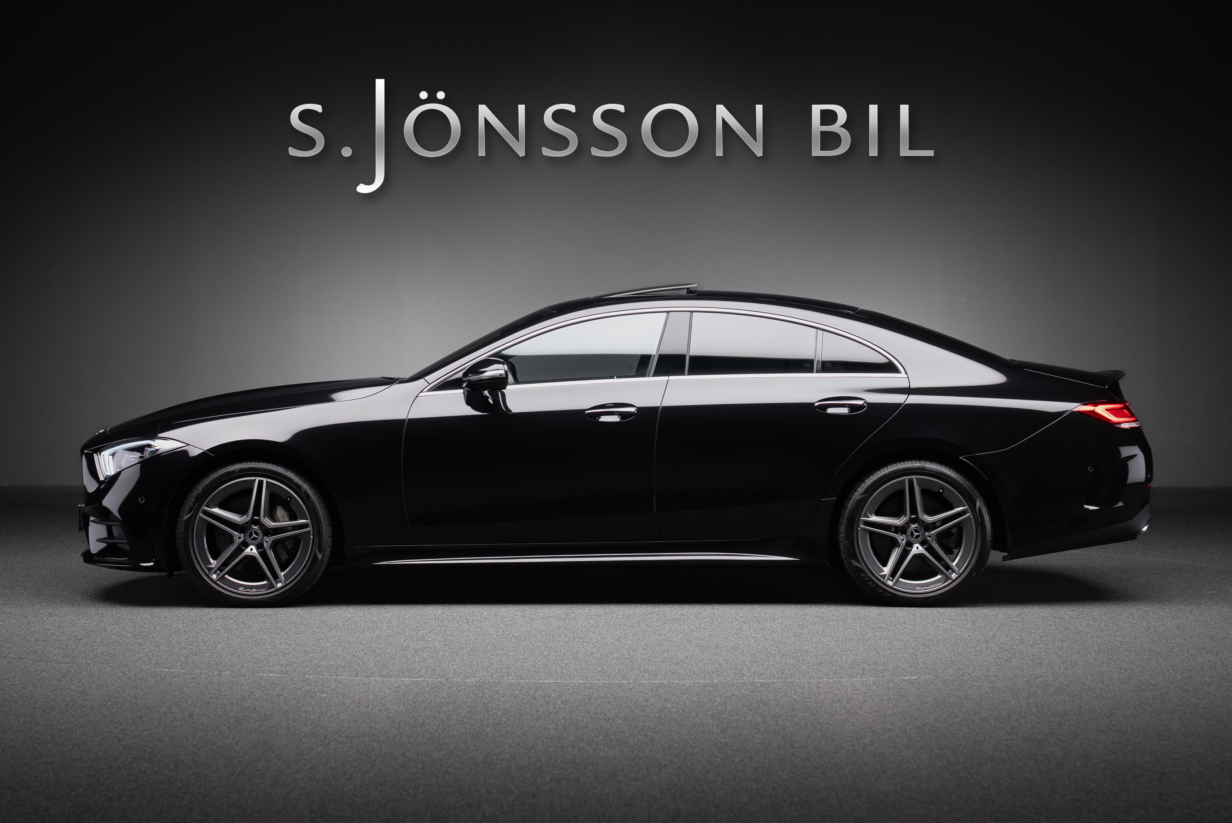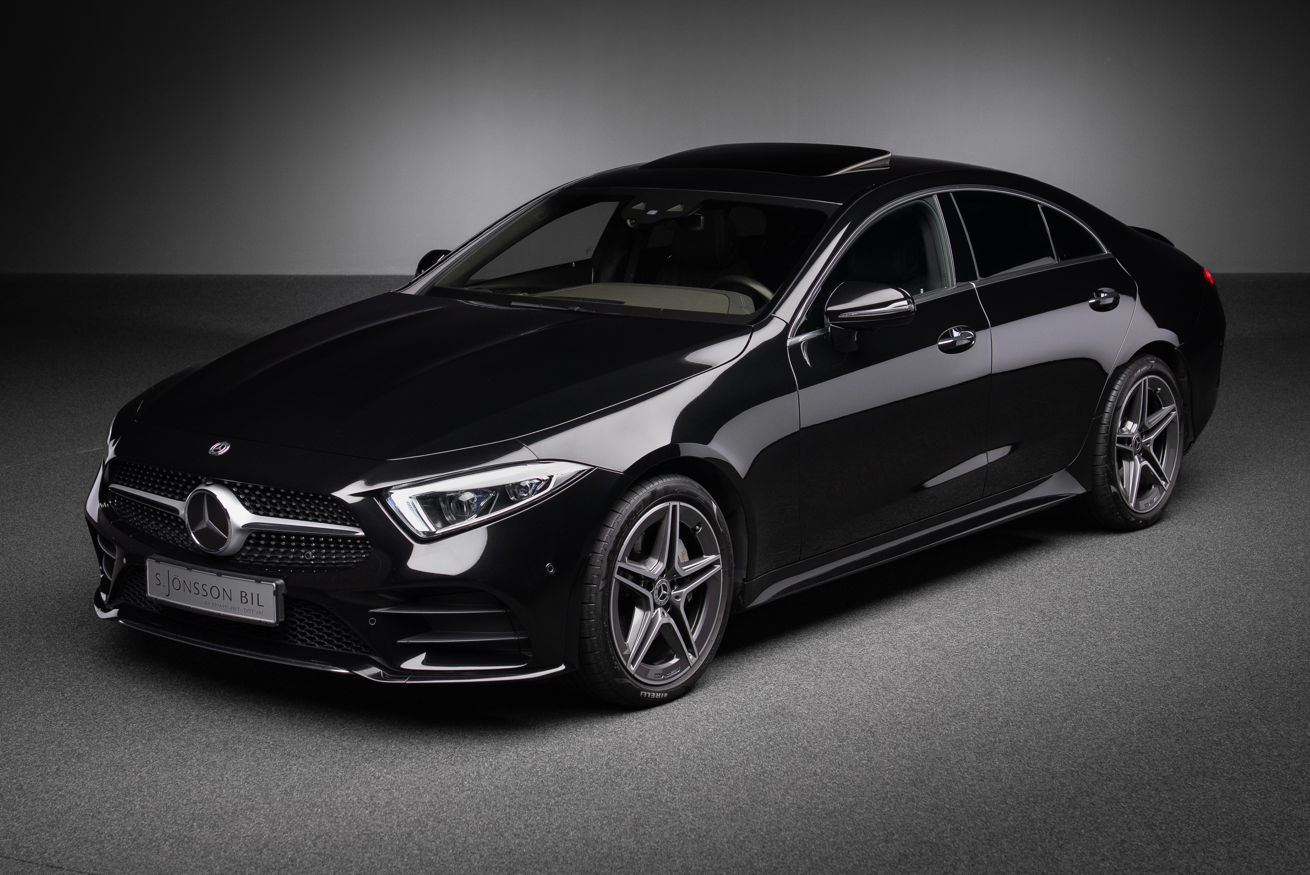 Mercedes-Benz CLS 450 4MATIC lackerad i Obsidian Black Metallic kombinerat med svart läderinteriör.
