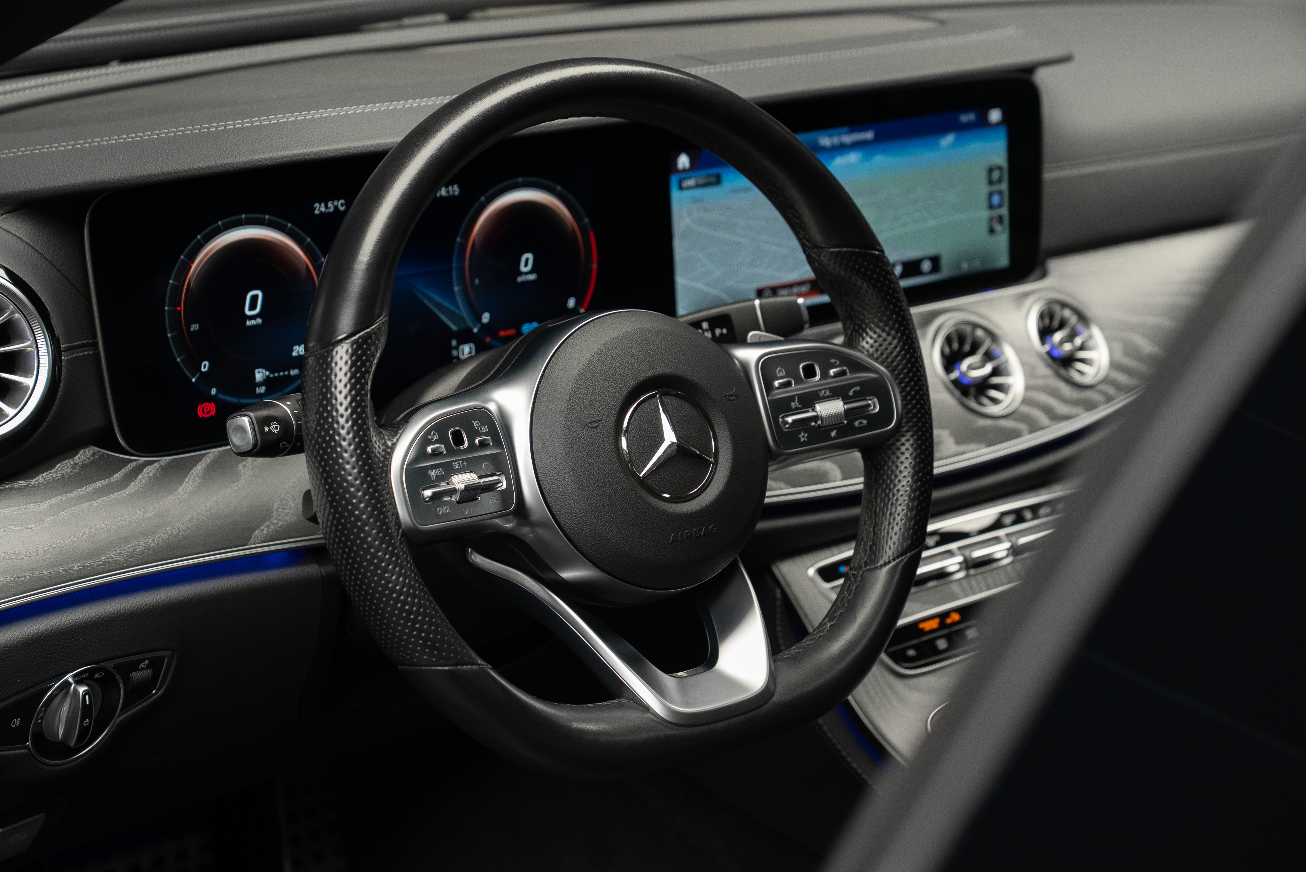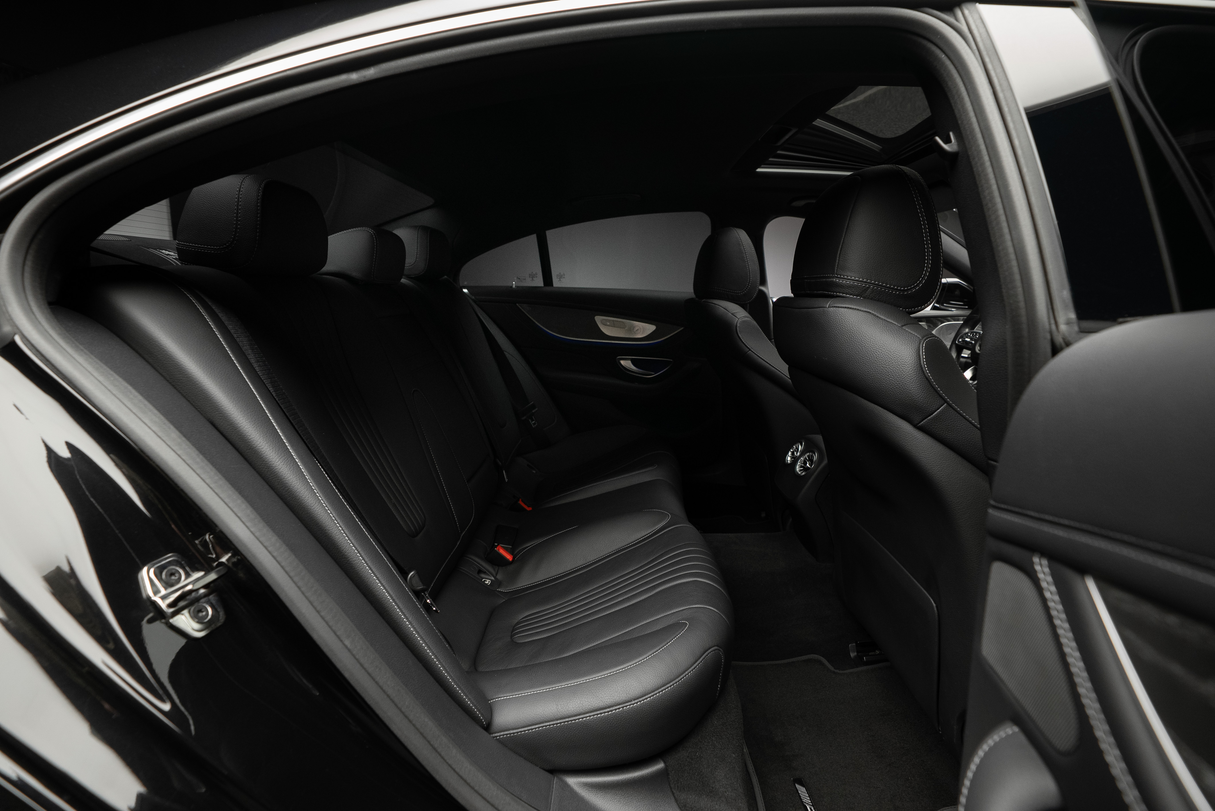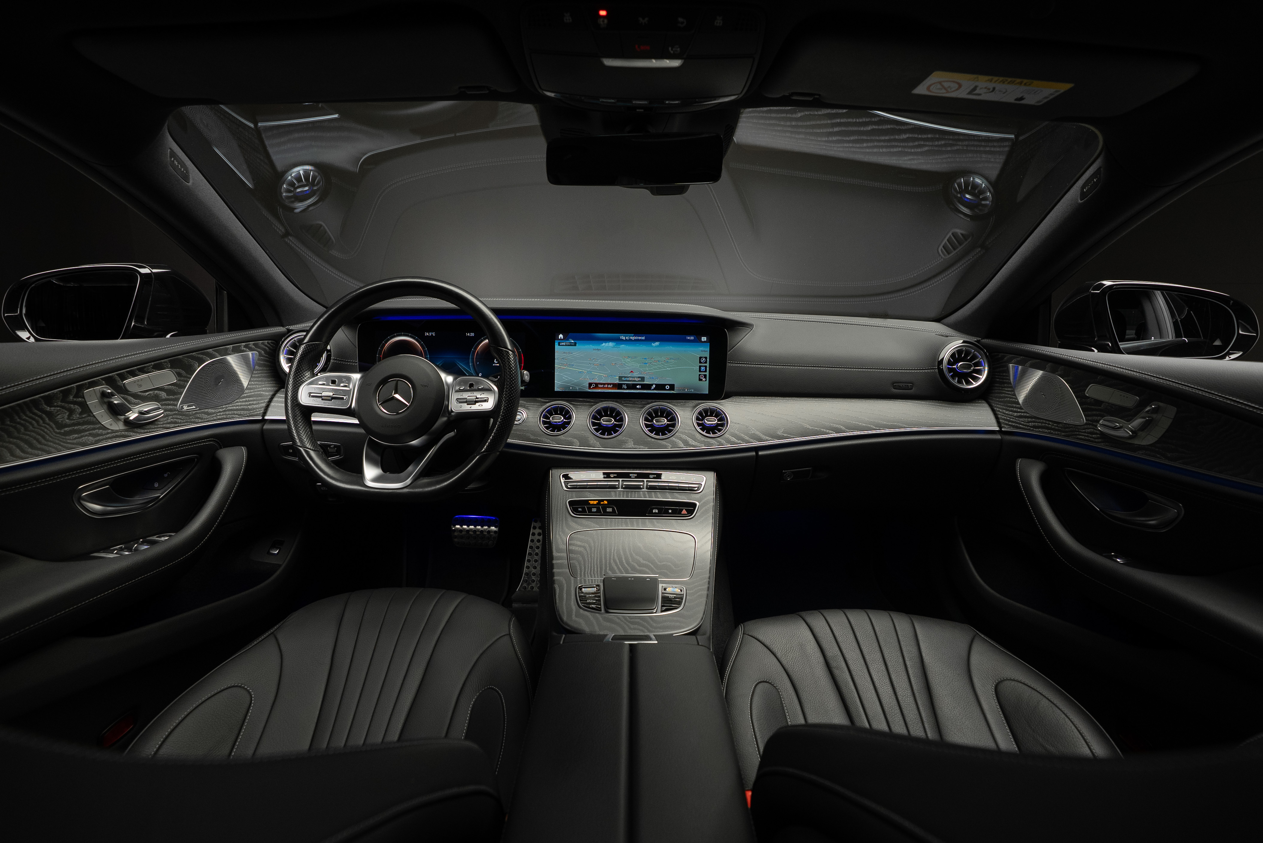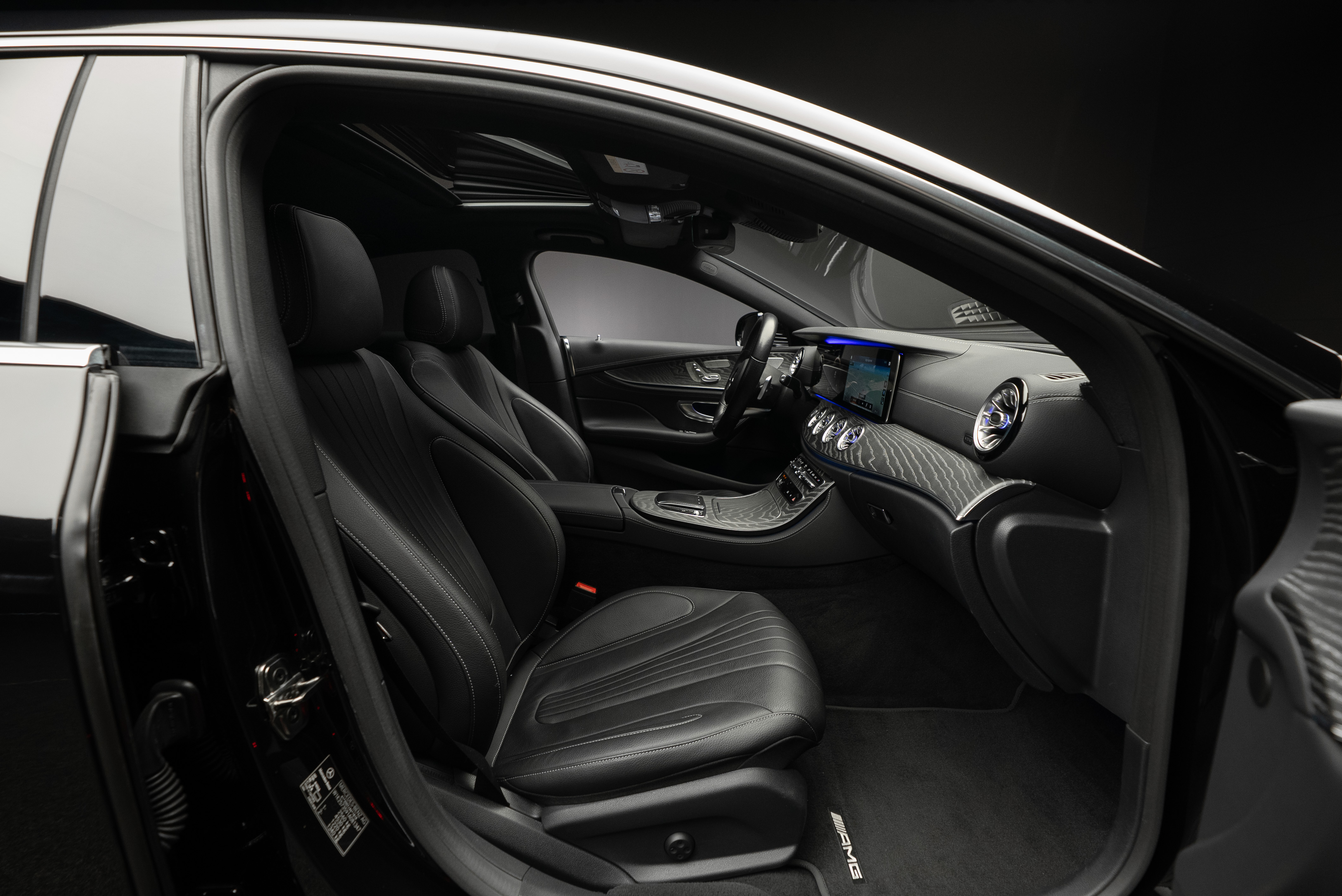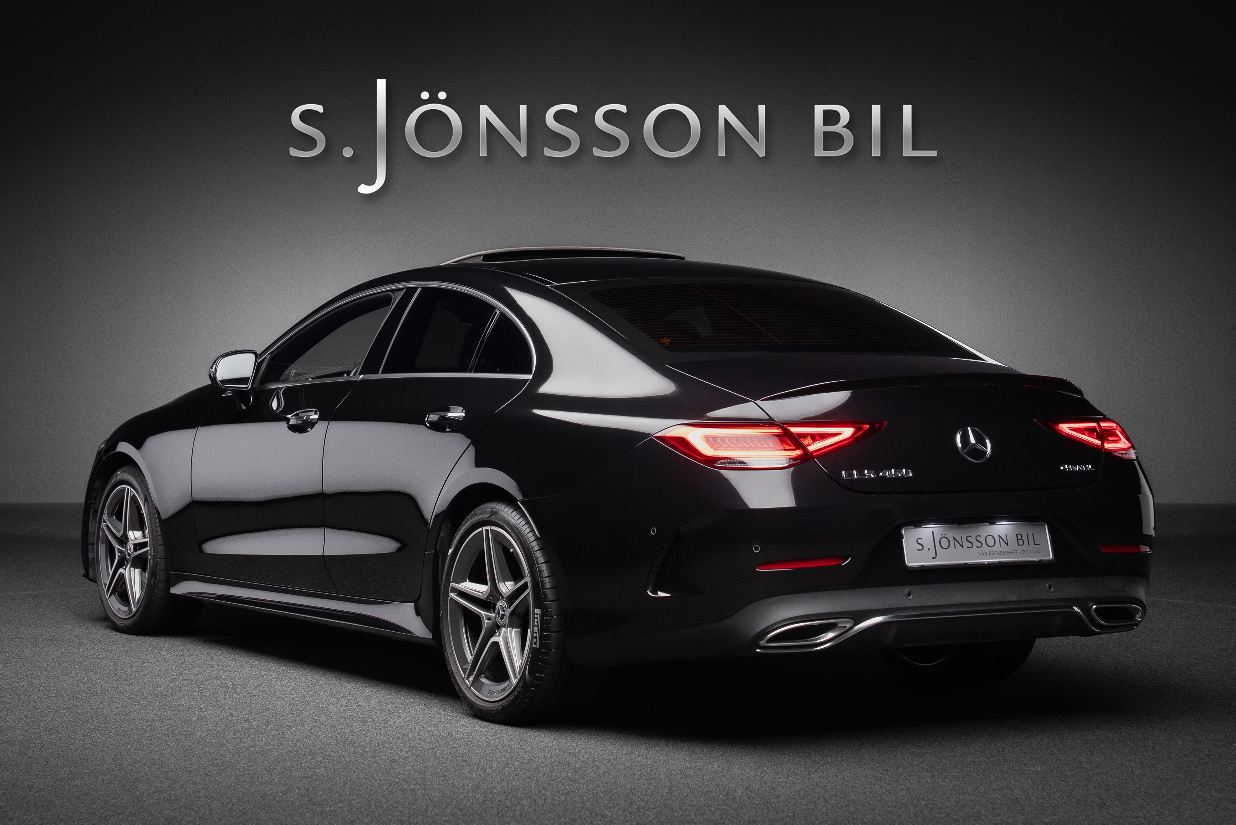 Mercedes-Benz CLS 450 4MATIC lackerad i Obsidian Black Metallic kombinerat med svart läderinteriör.