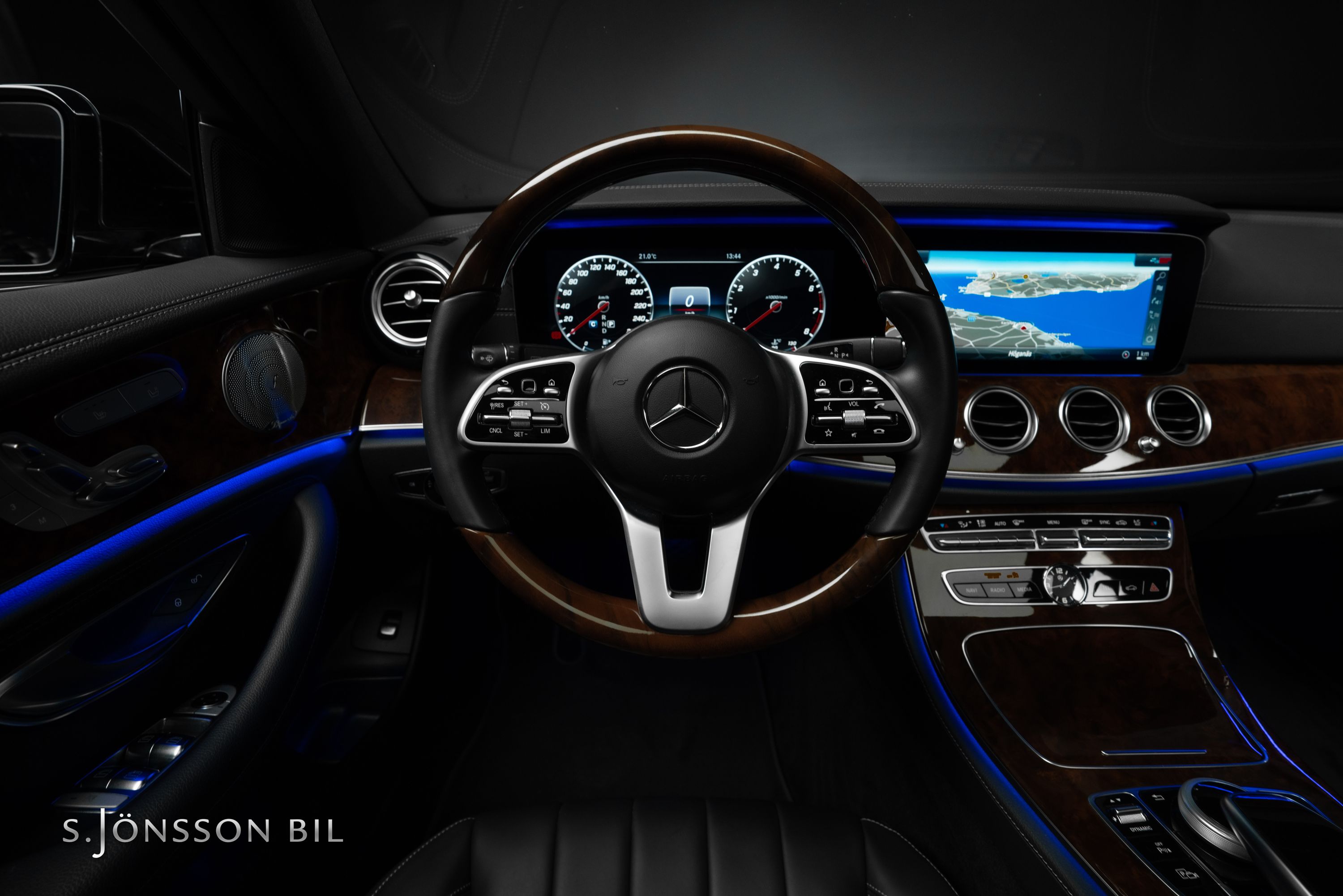 Mercedes-Benz E 450 Exclusive, lackerad i Obsidiansvart metallic med interiör i svart nappaläder (högre kvalitet än standard läder).