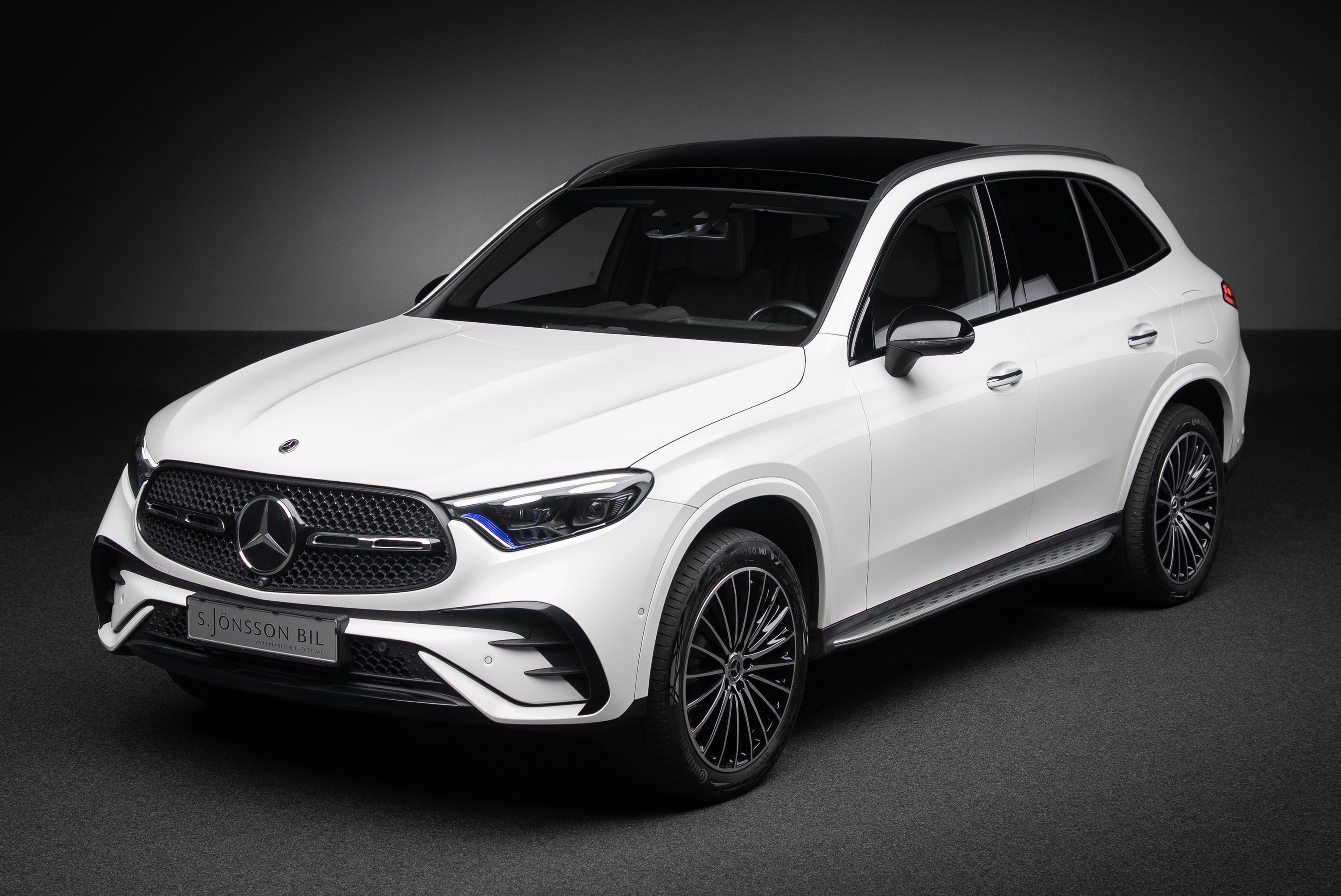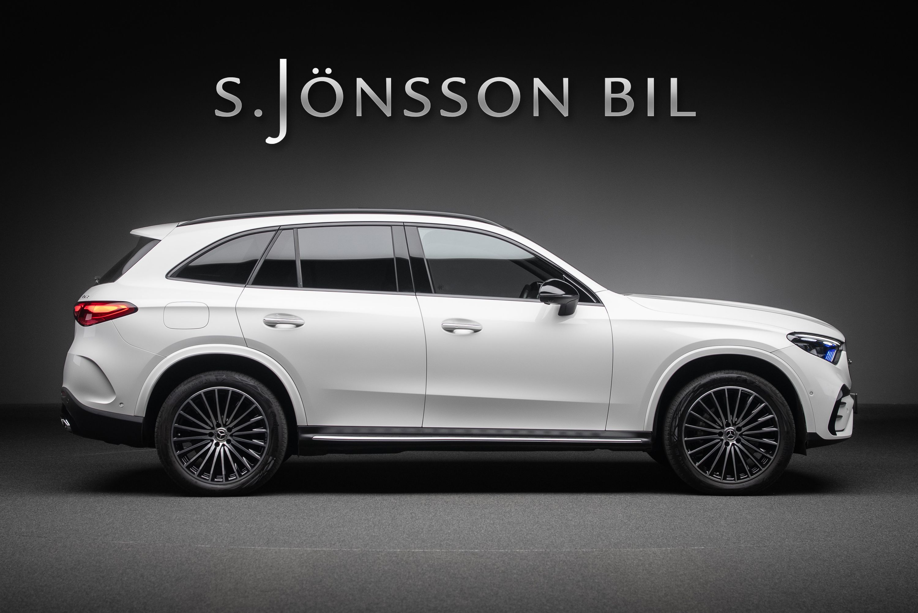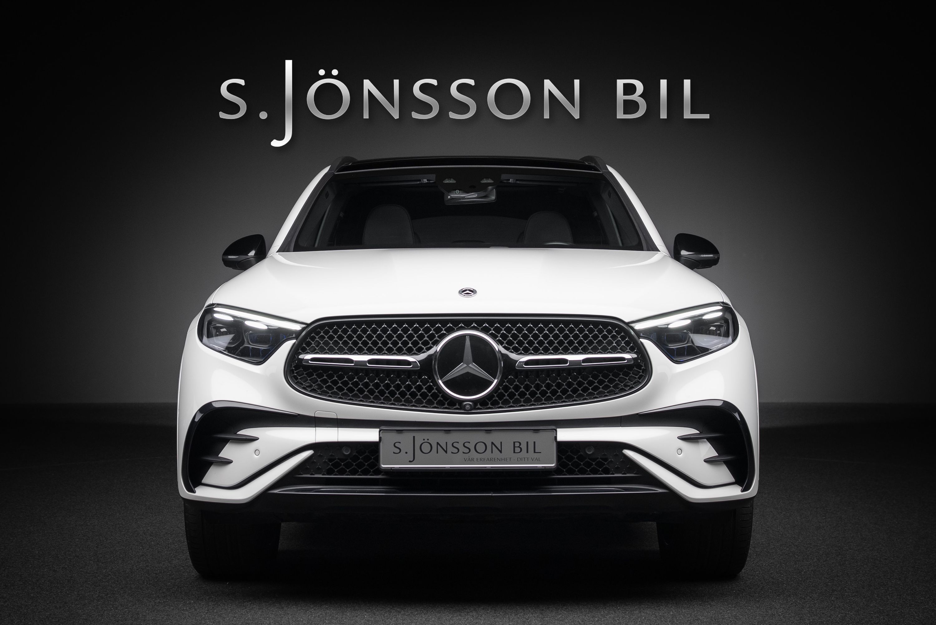Mercedes-Benz GLC 300e AMG 4MATIC laddhybrid lackerad i Polar vit kombinerat med svart läder samt alcantara interiör.