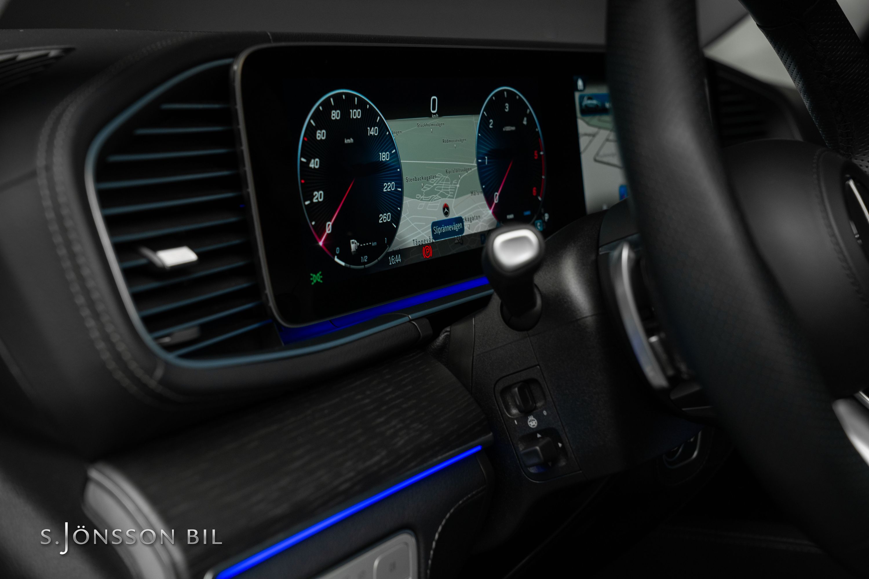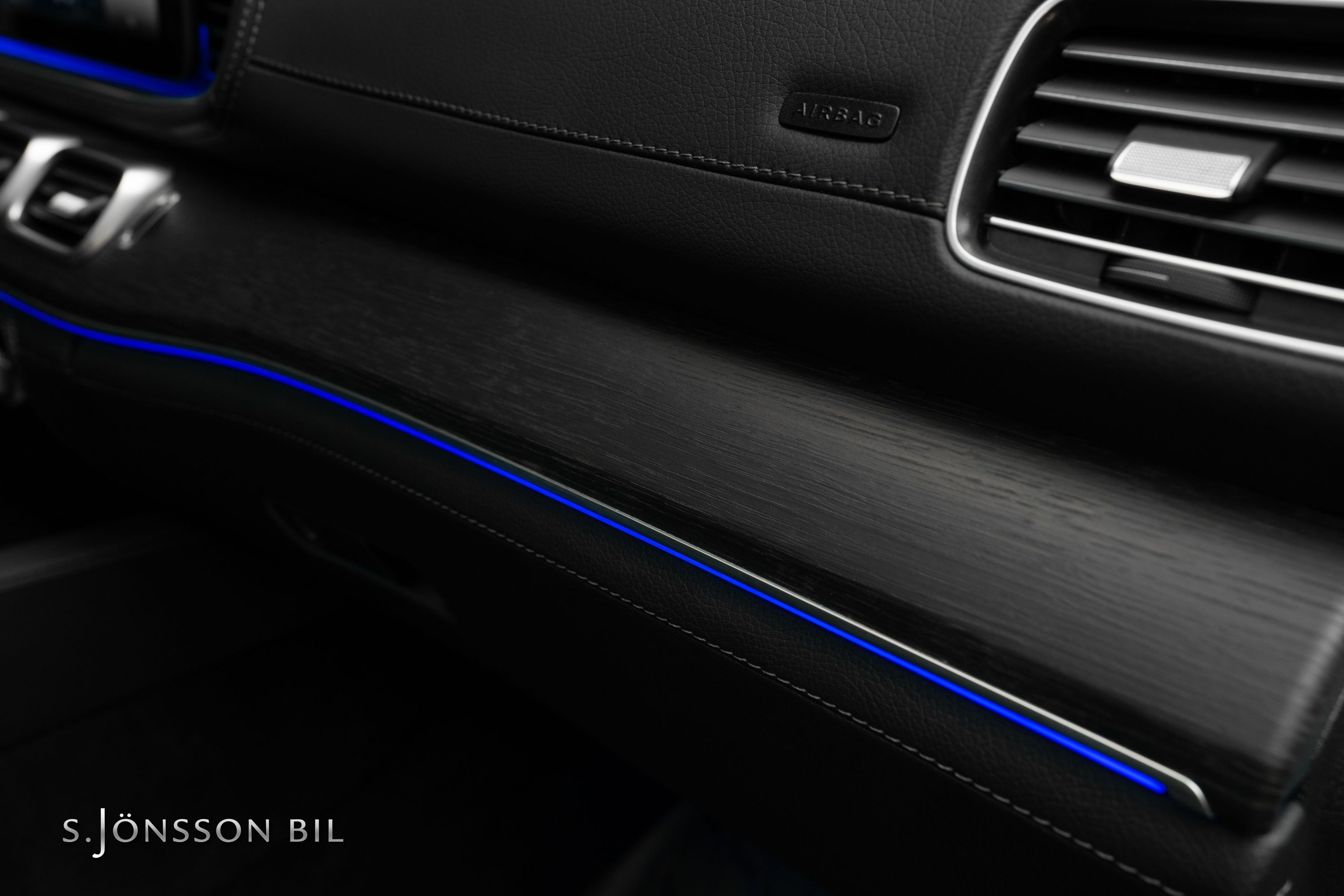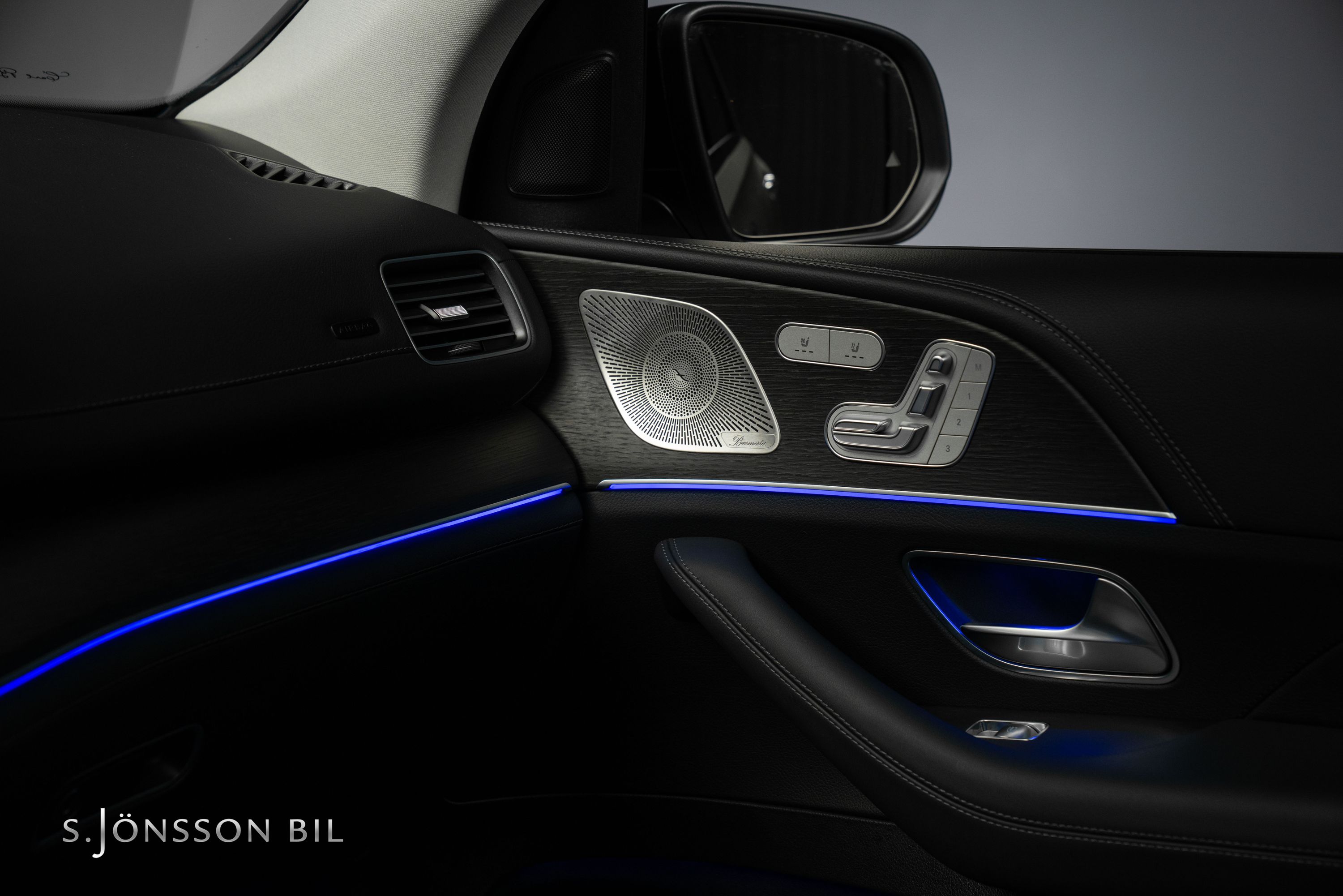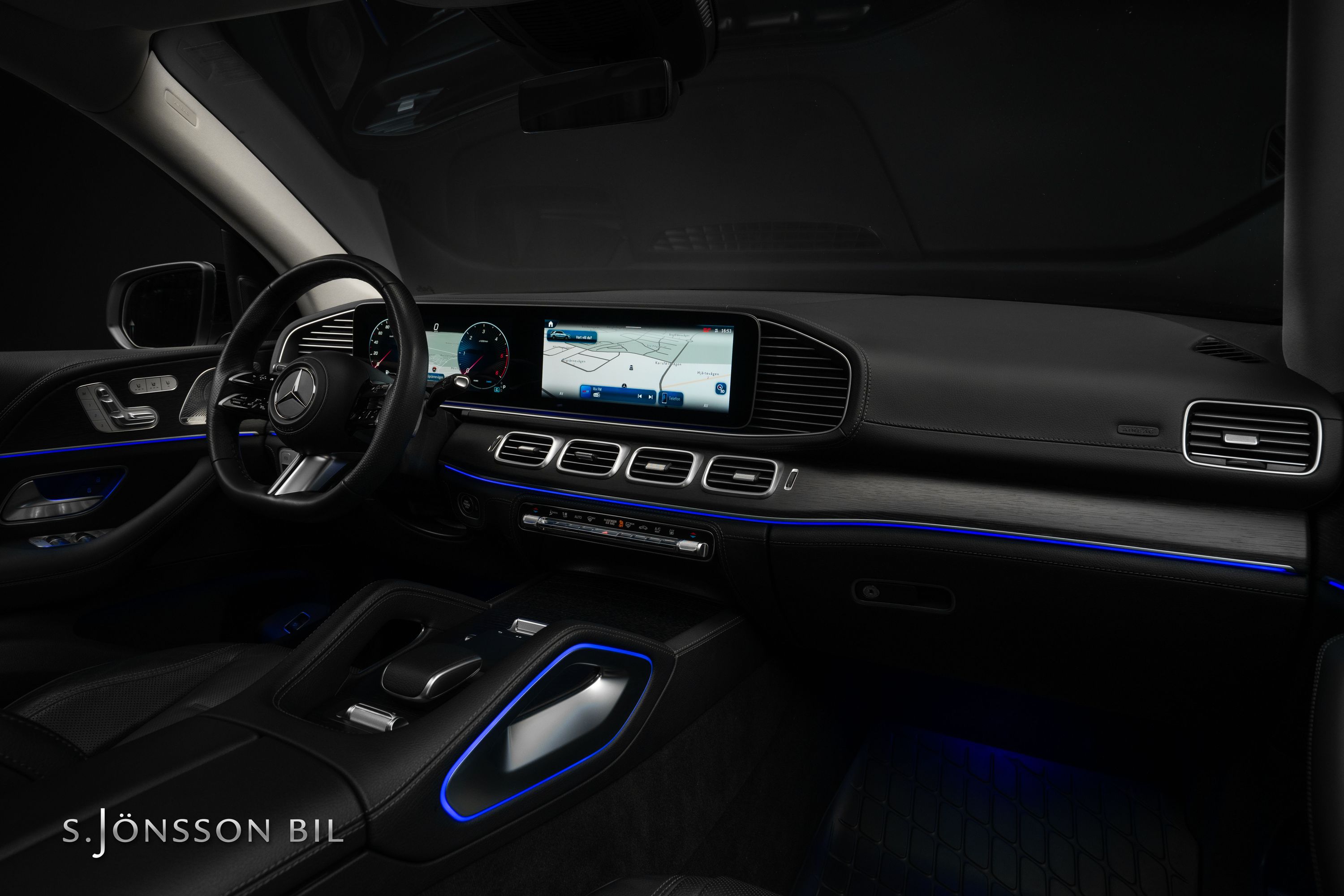 Mercedes-Benz GLE 450 d 4MATIC lackerad i Opalith White metallic. Inredning med svart läder och grå kontrastsömmar.