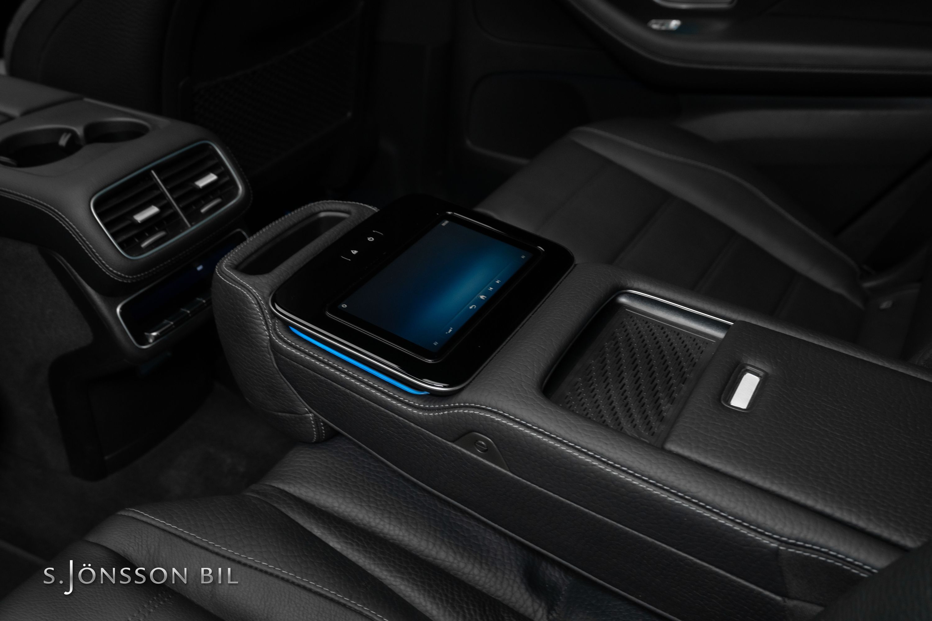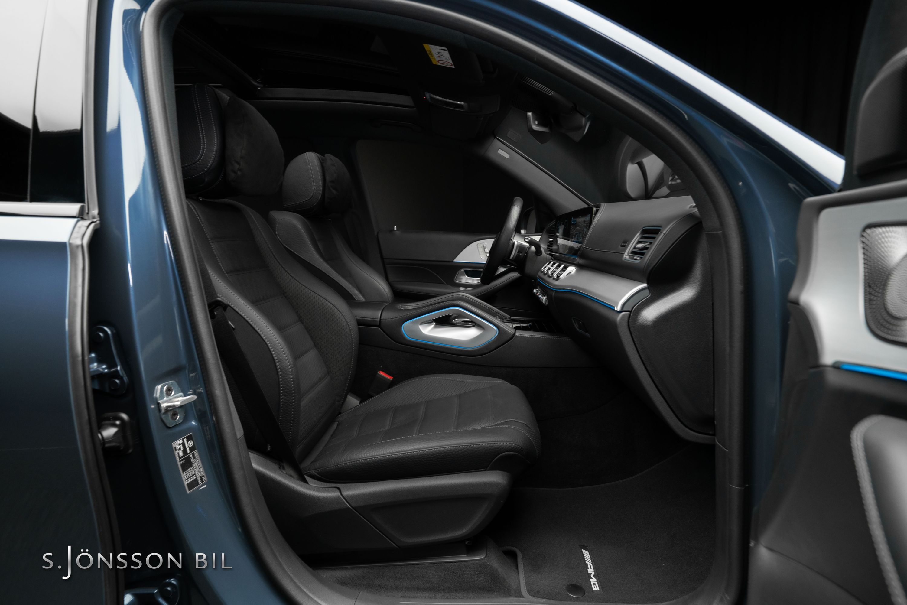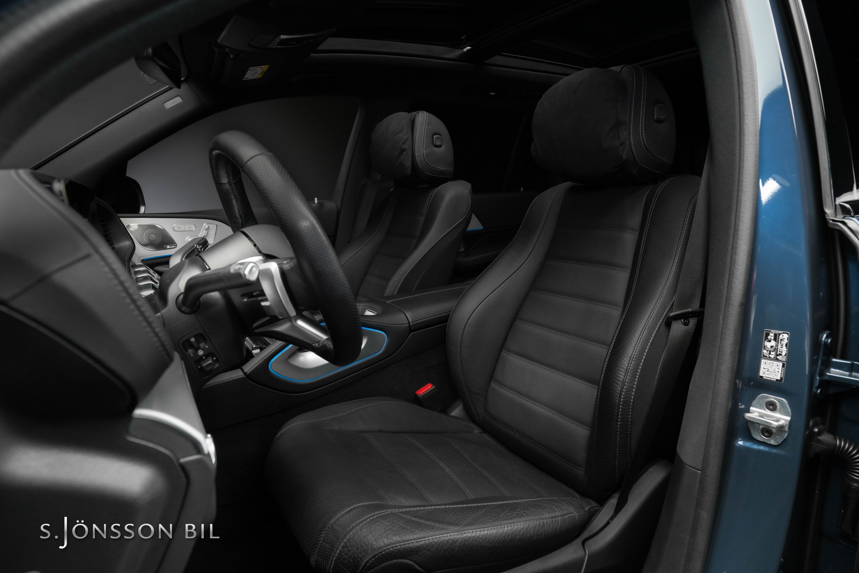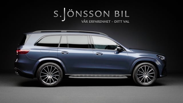 Mercedes-Benz GLS 450 d AMG 4MATIC Facelift, lackerad i Sodalite Blue Metallic med läderinteriör i svart. Under huven sitter en rak sexcylindrig dieselmotor som levererar 367 hk och 750 Nm. Bränsleförbrukningen är låga 0.88 liter/mil enligt WLTP, vid landsvägskörning 0.71 liter/mil.