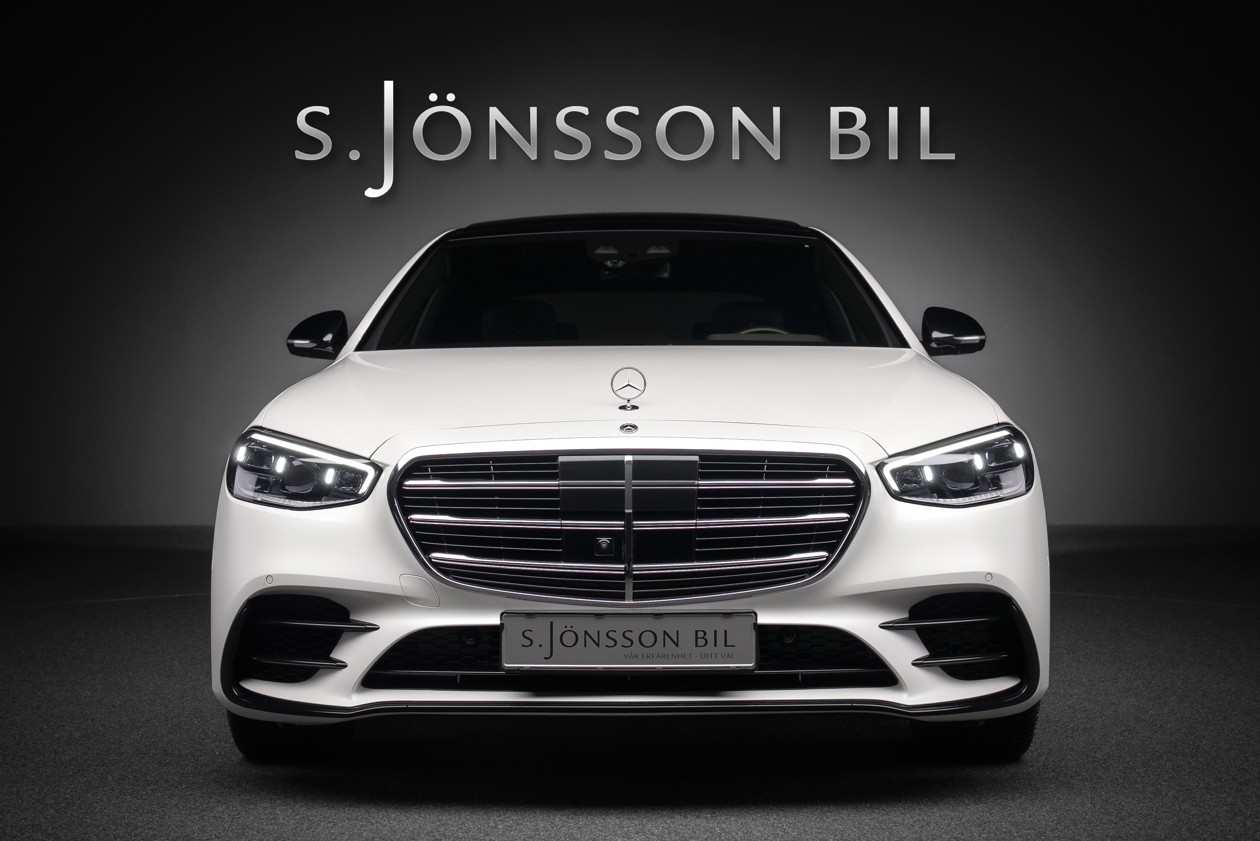 Mercedes-Benz S 580 Lång med den härliga V8-biturbo maskinen. Lackerad i exklusiva Manufakturfärgen Kashmirvit magno med inredning i utökat svart nappaläder.
