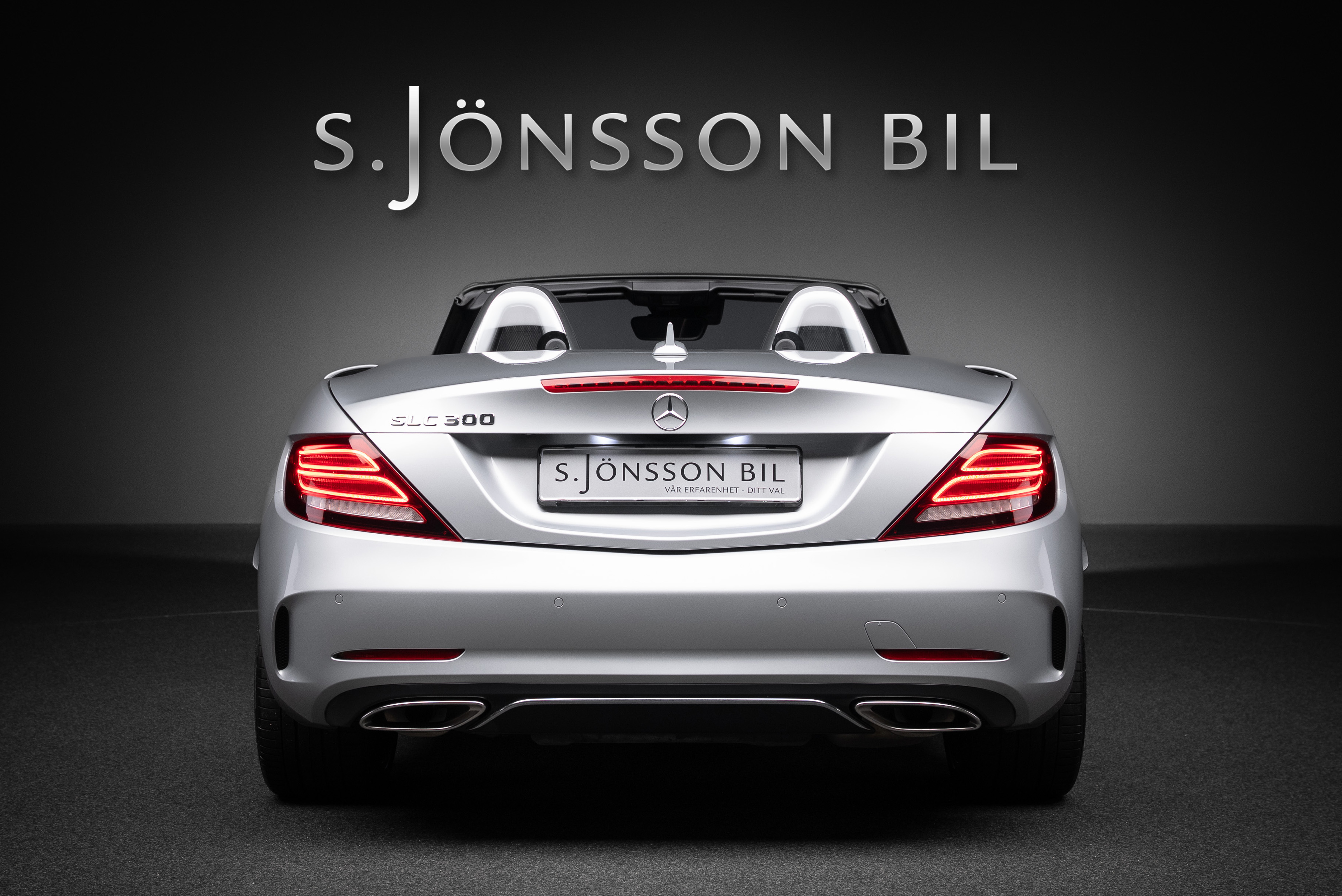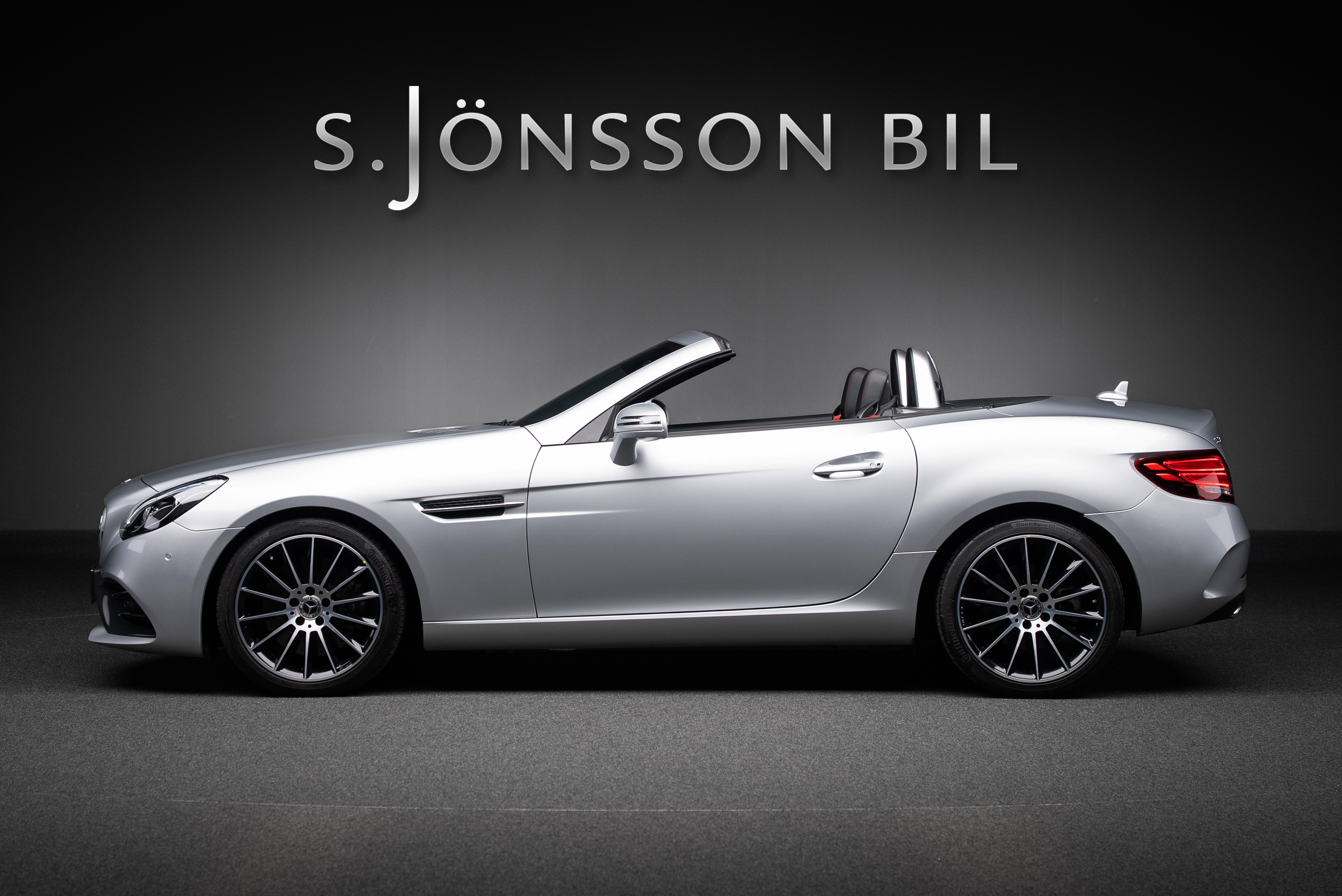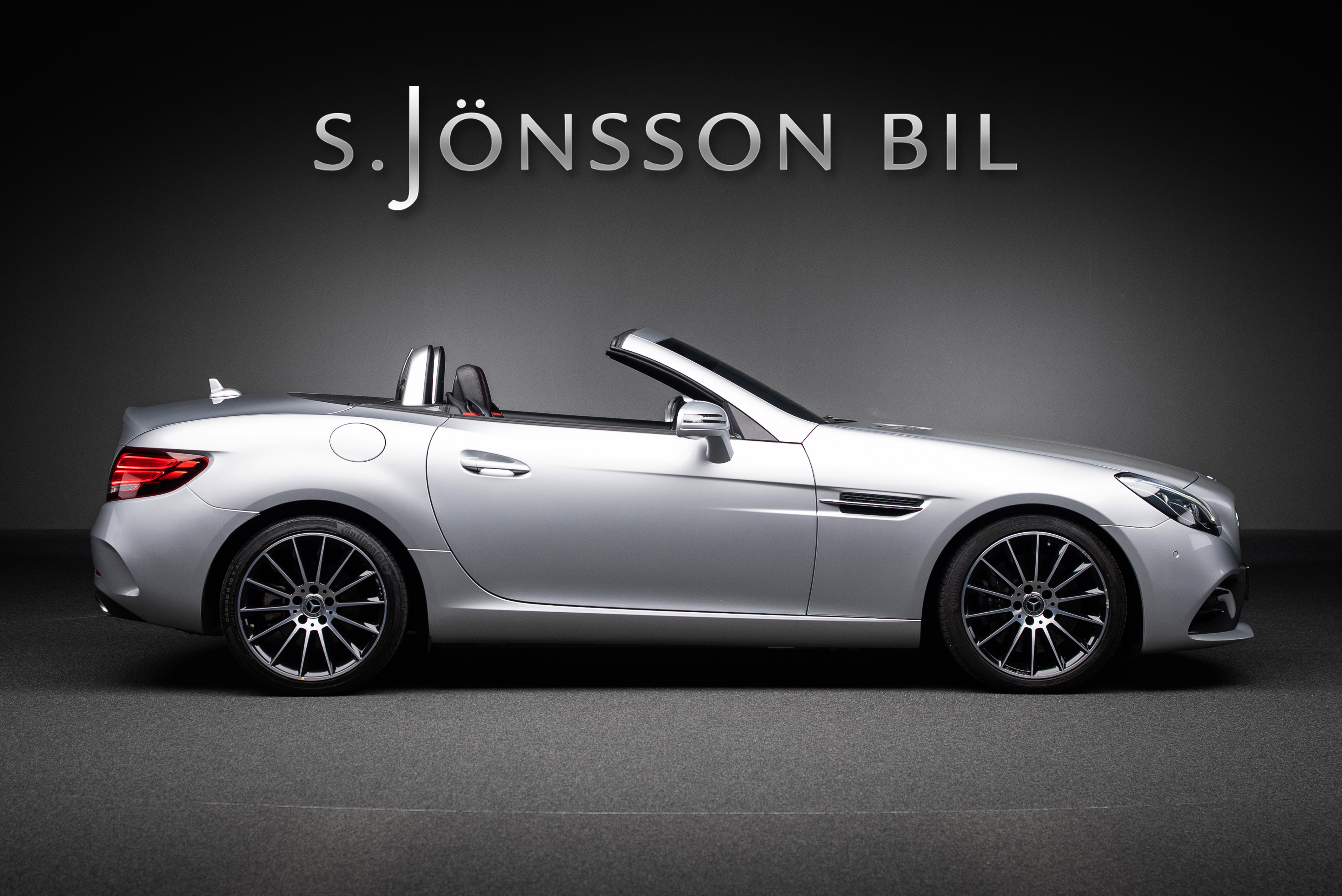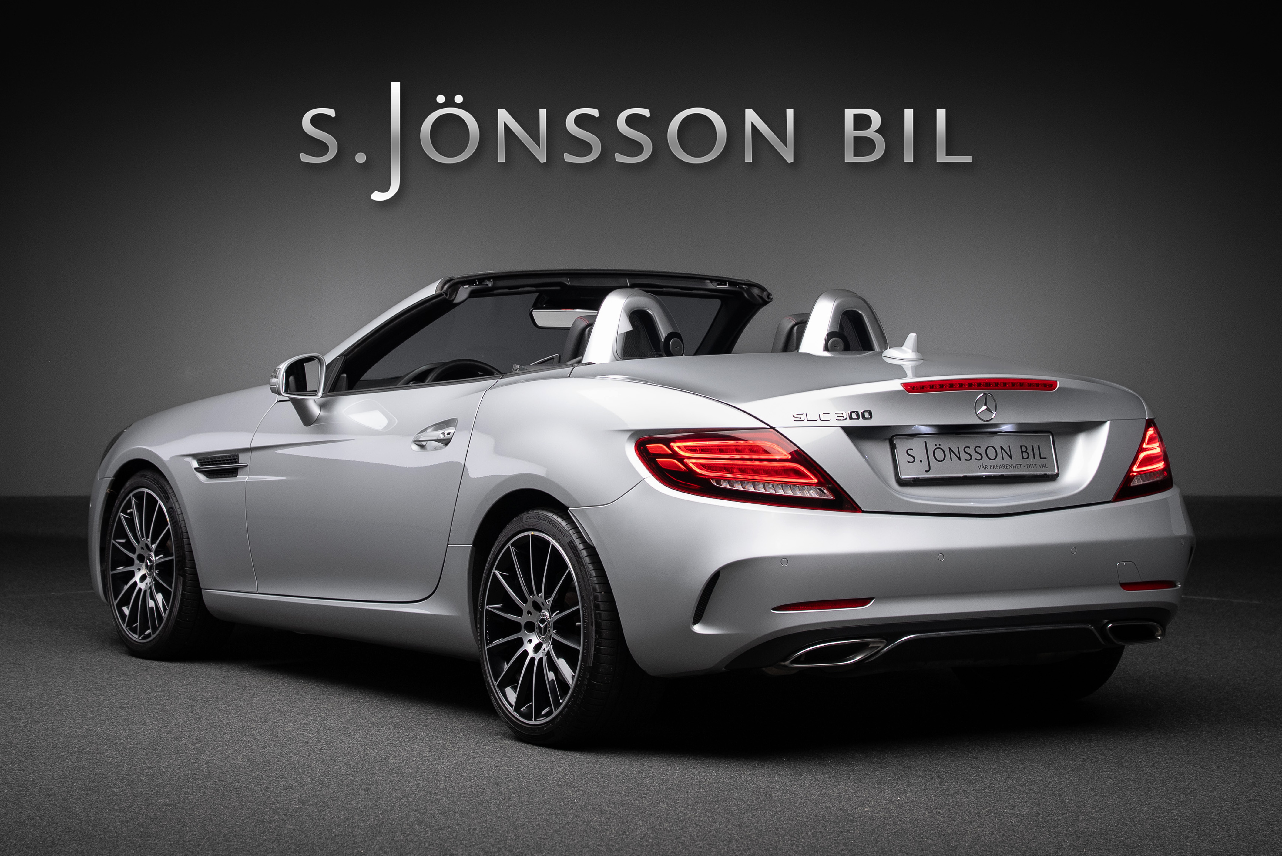 Mercedes-Benz SLC 300 Lackerad i den populära kulören iridium silver metallic med svart läder interiör och röda sömmar.