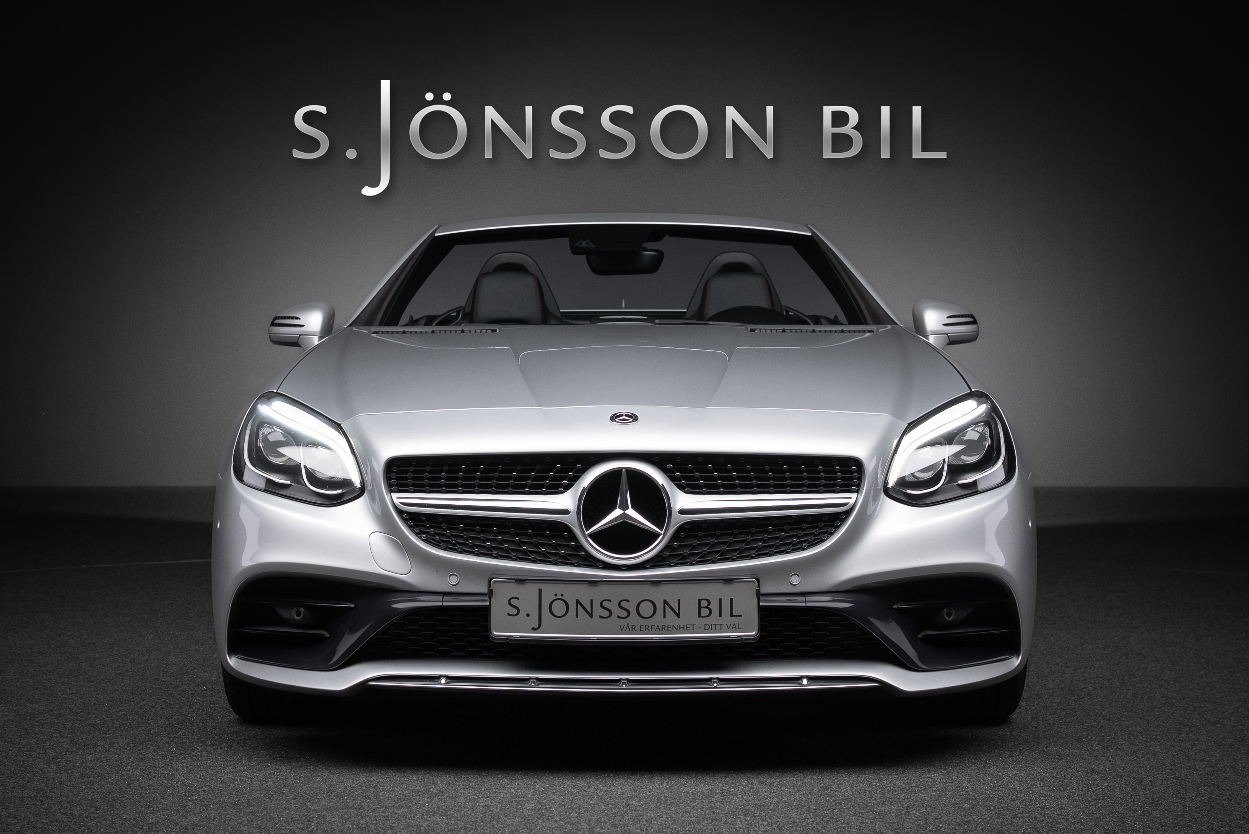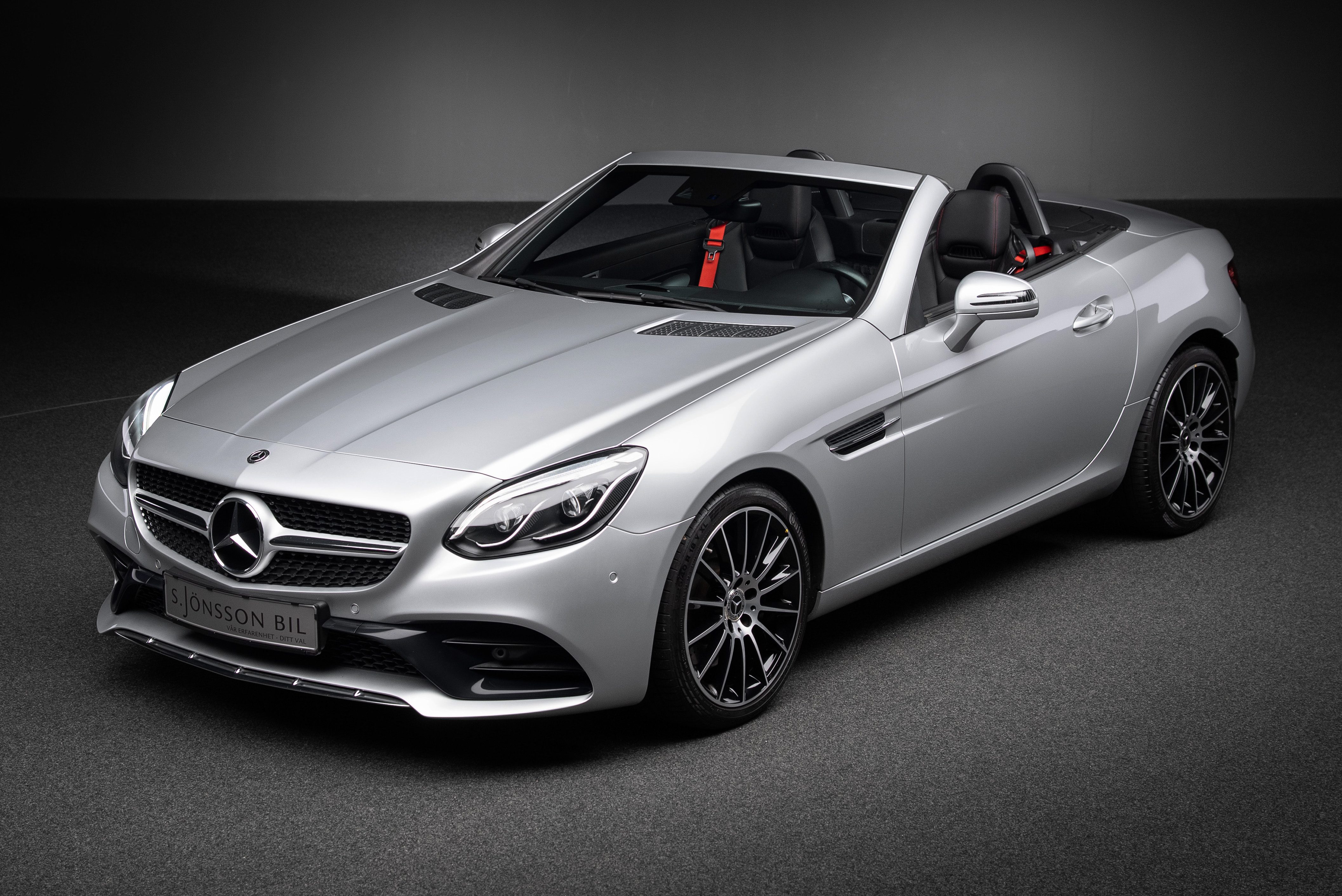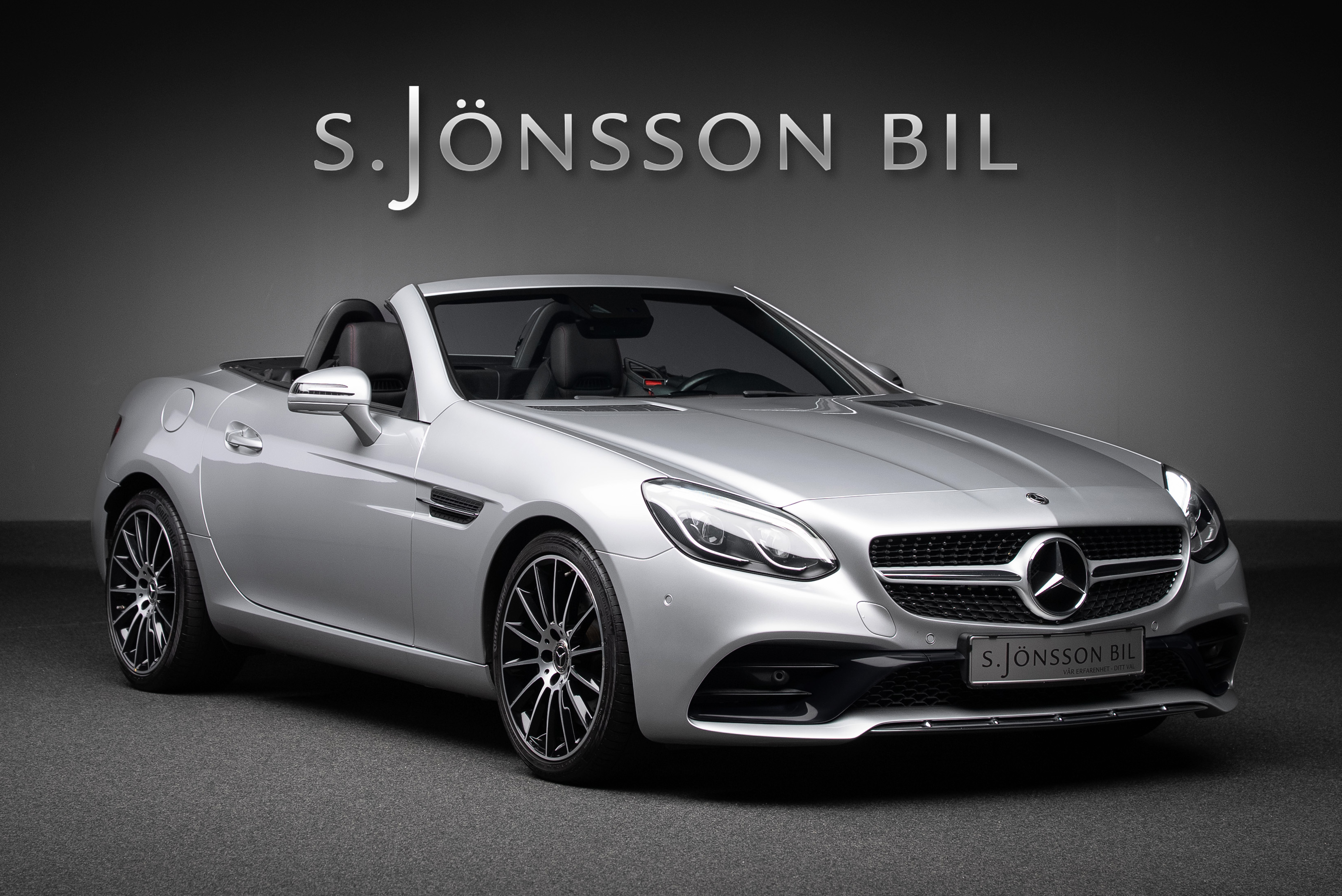 Mercedes-Benz SLC 300 Lackerad i den populära kulören iridium silver metallic med svart läder interiör och röda sömmar.