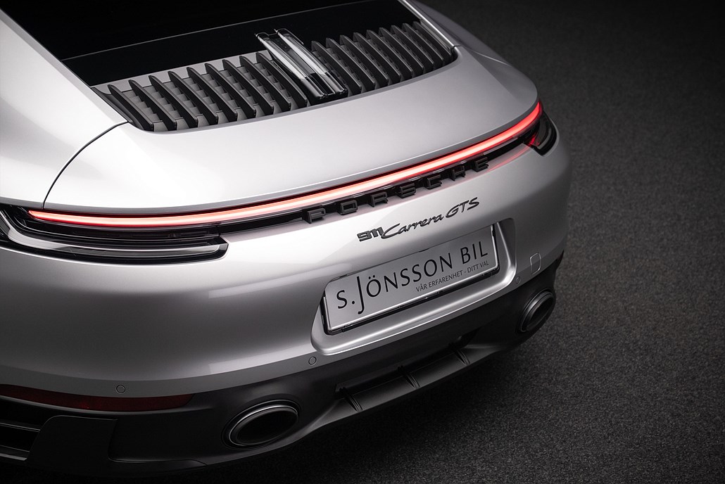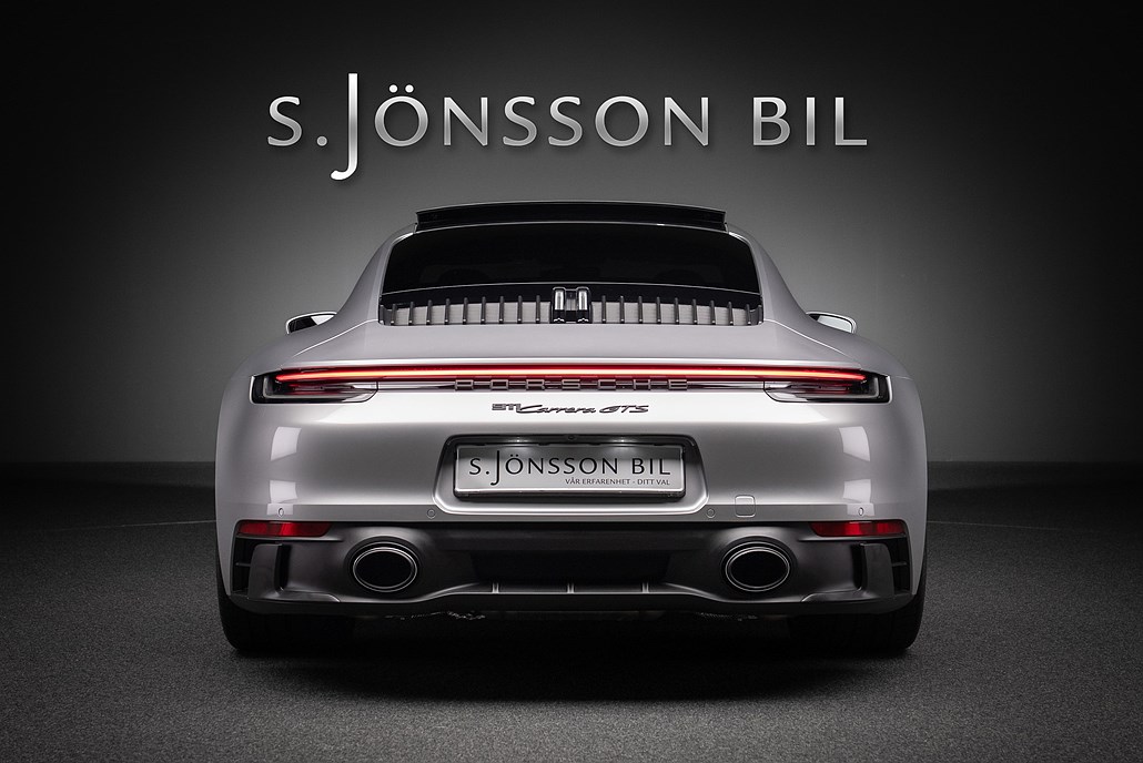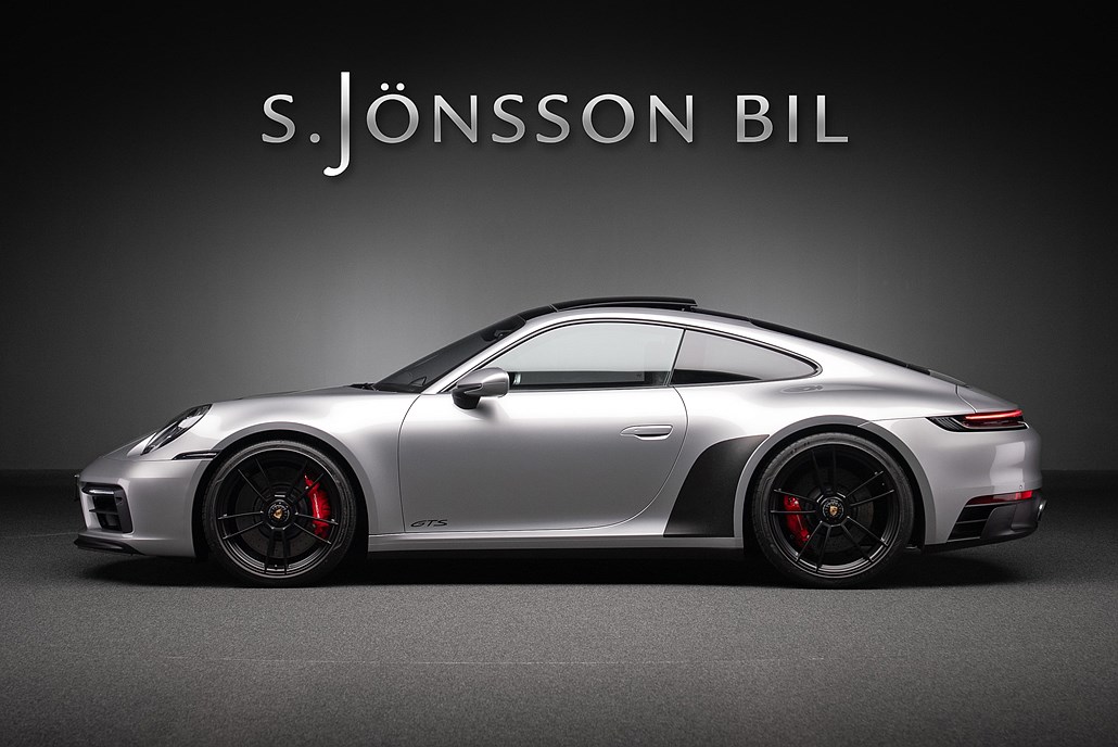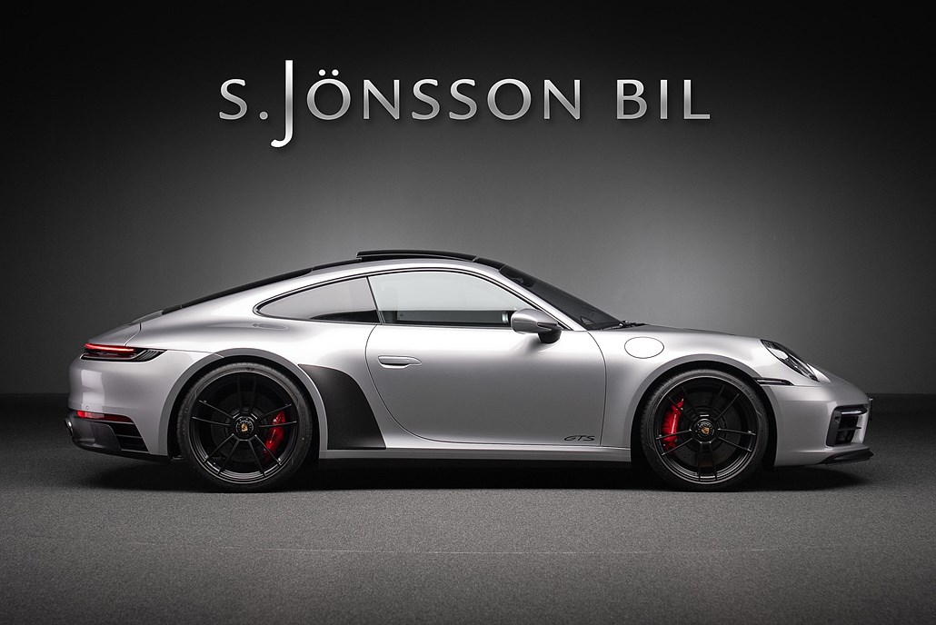 Porsche 992 Carrera GTS svensksåld med låga mil. Den kraftfulla boxersexan med dubbla turboaggregat ger 480 hästkrafter och imponerande prestanda.