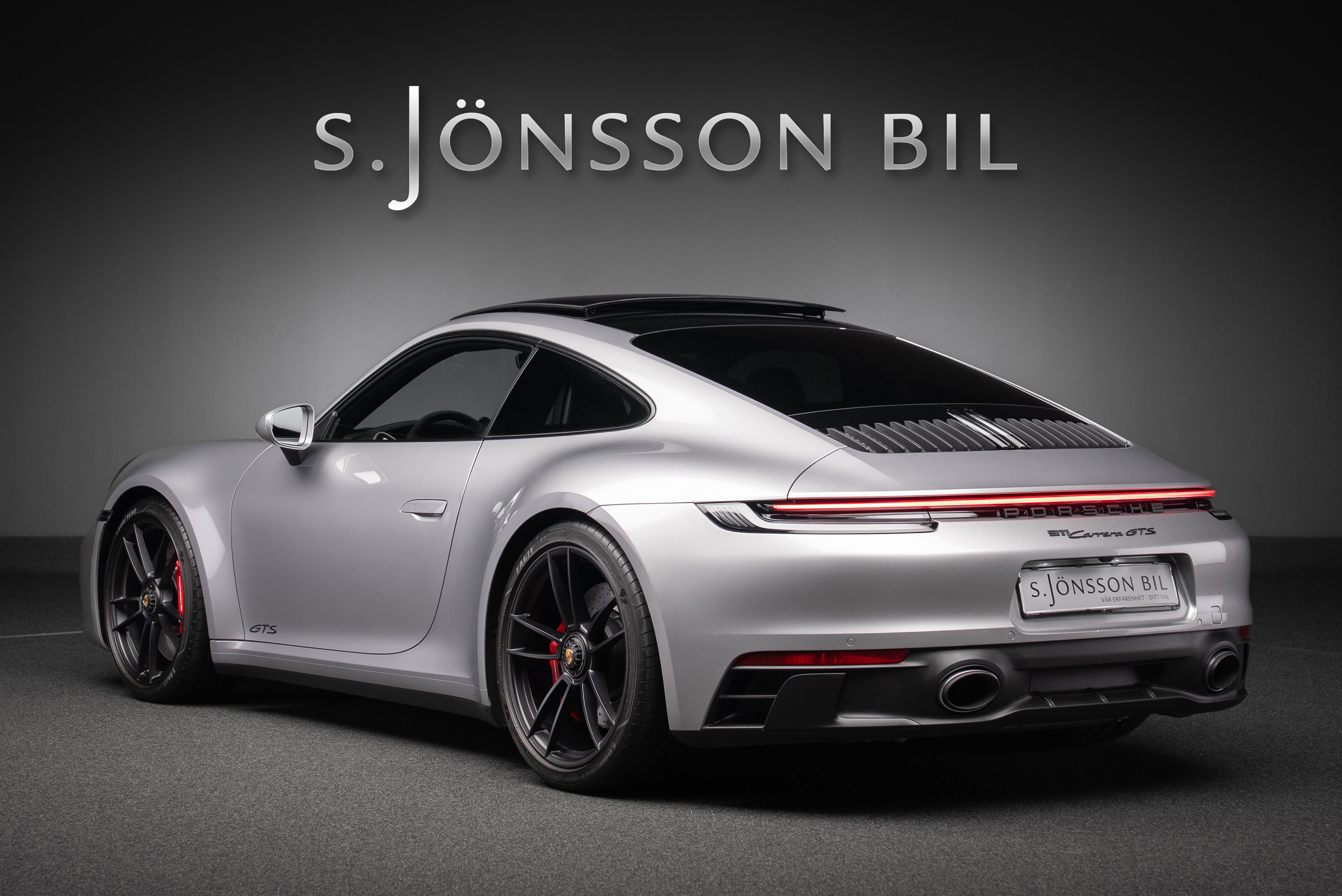 Porsche 992 Carrera GTS svensksåld med låga mil. Den kraftfulla boxersexan med dubbla turboaggregat ger 480 hästkrafter och imponerande prestanda.