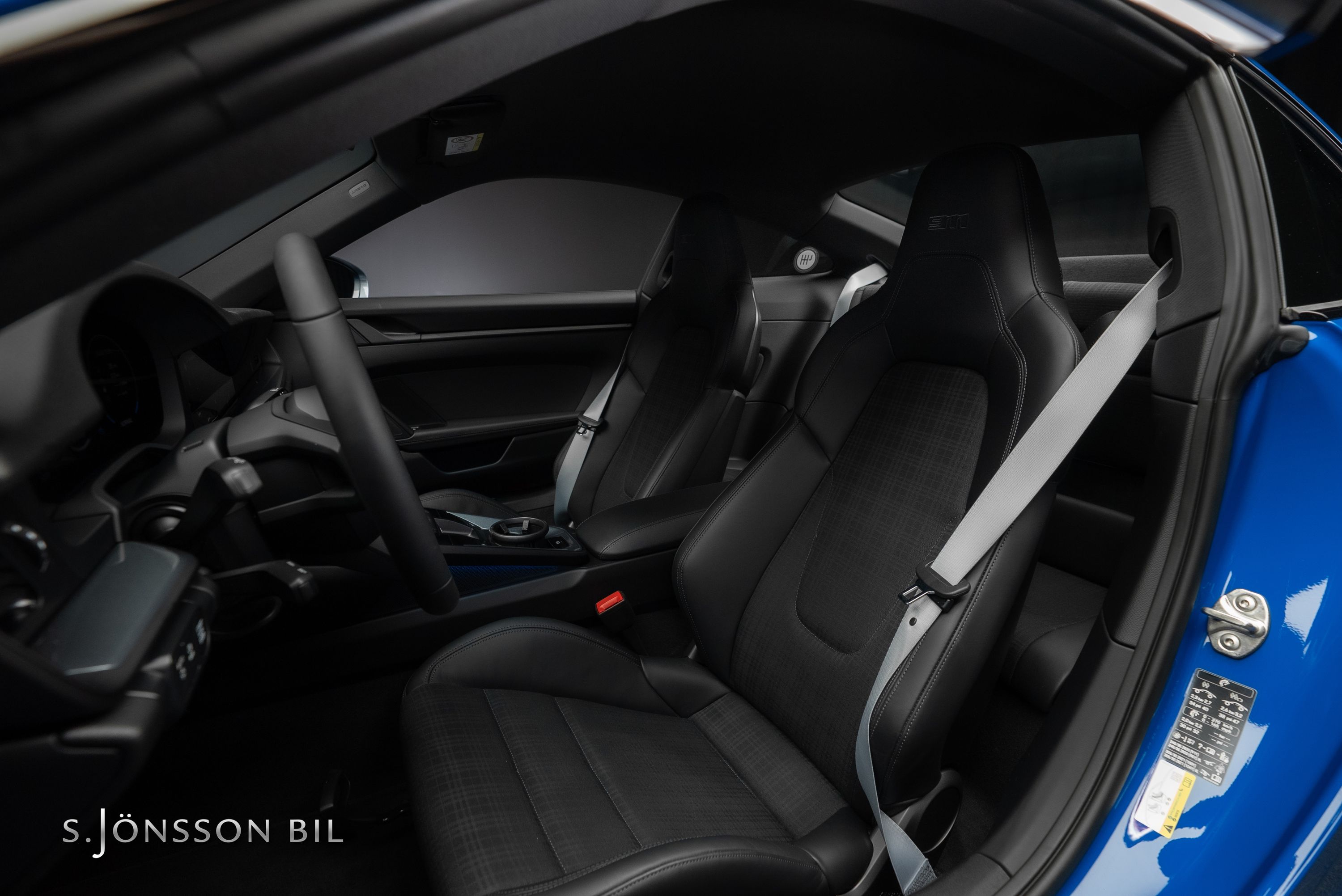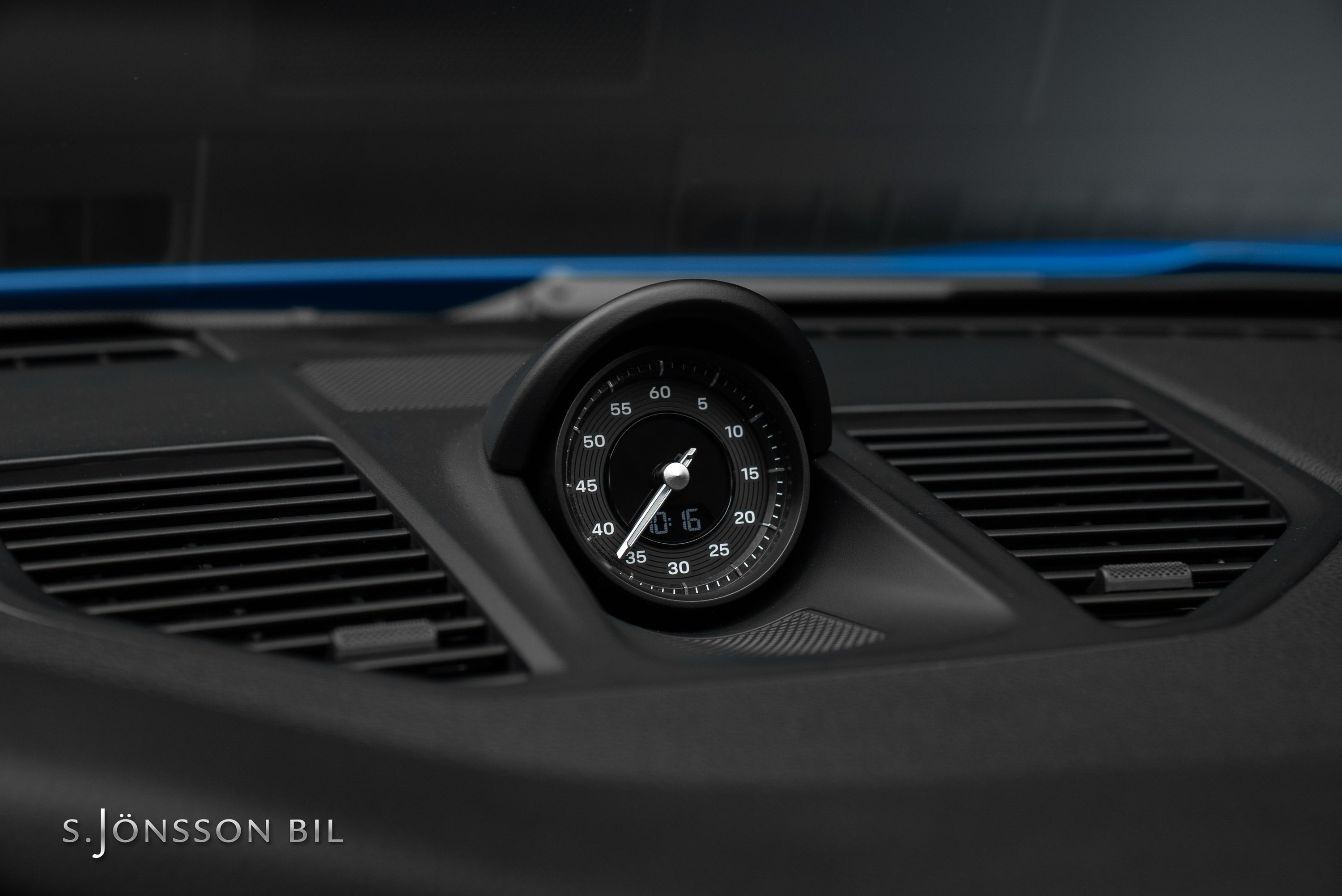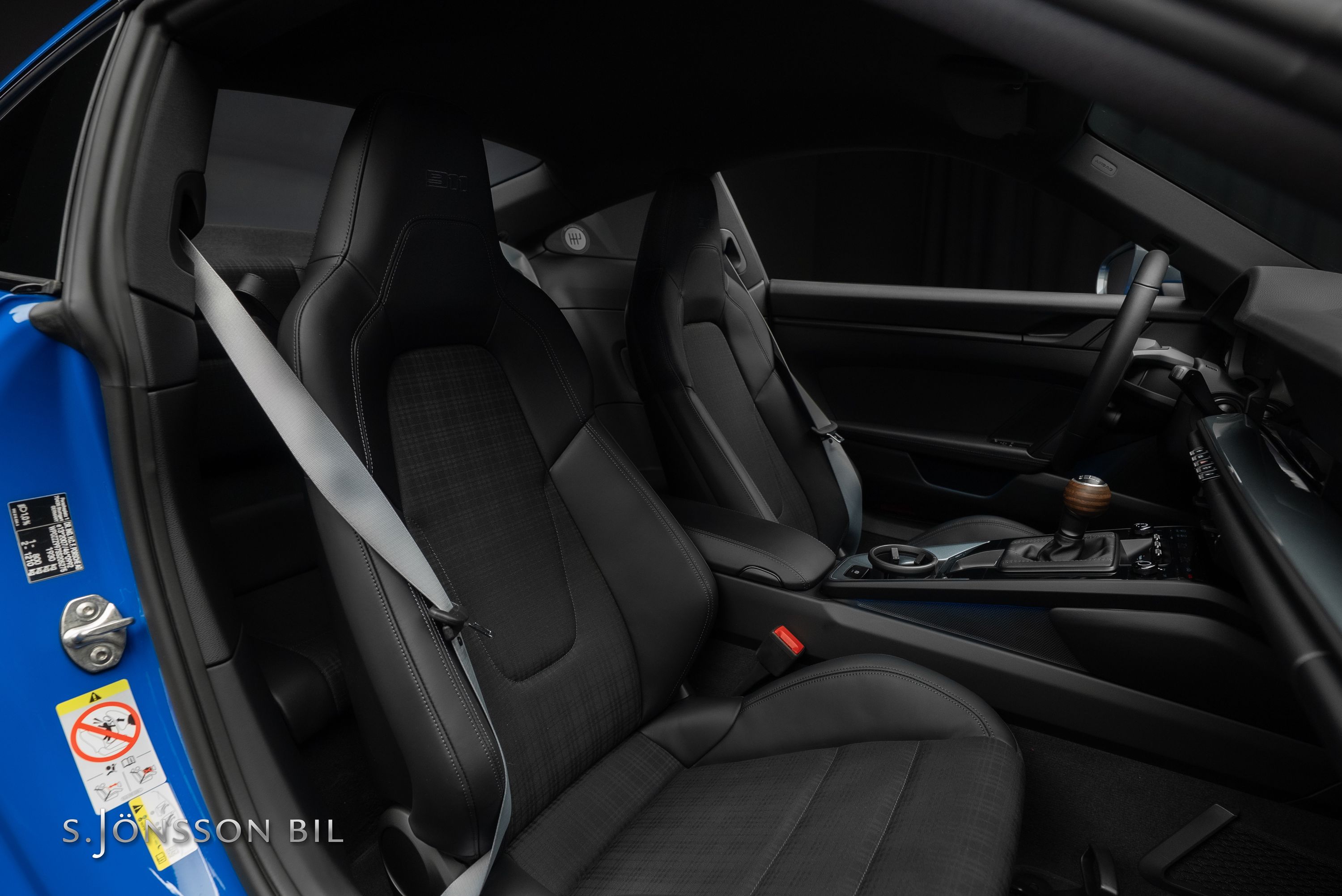Detta exemplar är lackerat i Lugano Blue kombinerat med interiör i läder och Sport-Tex.