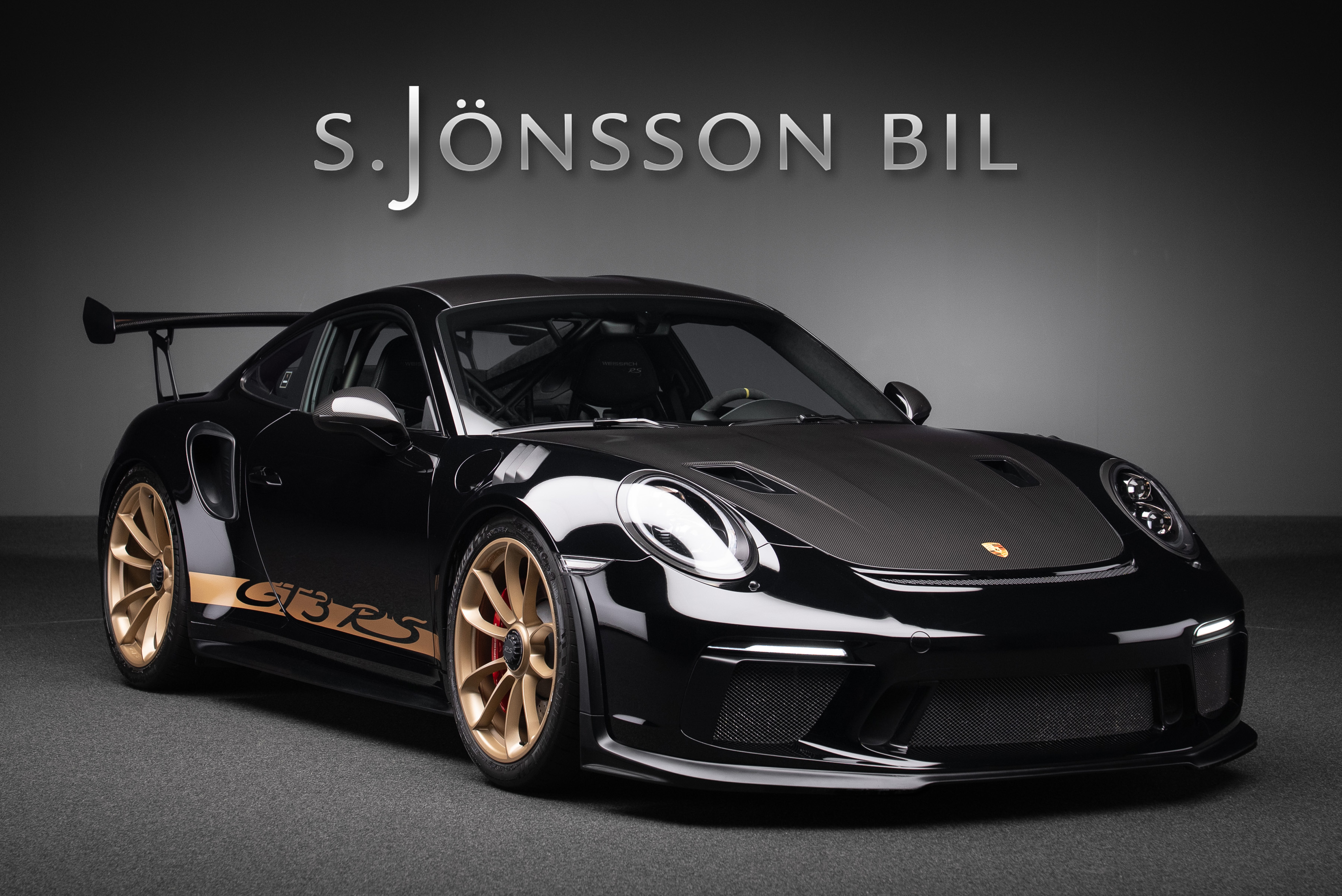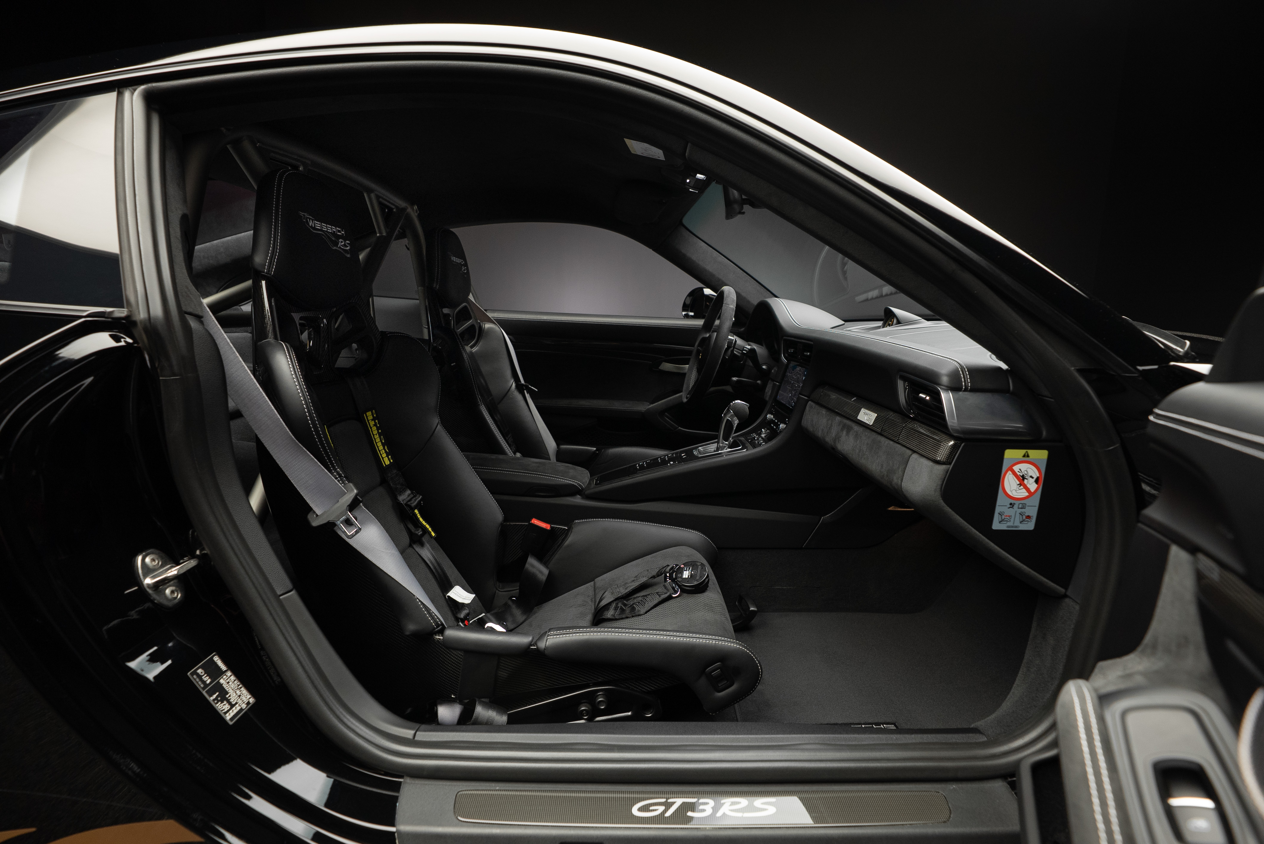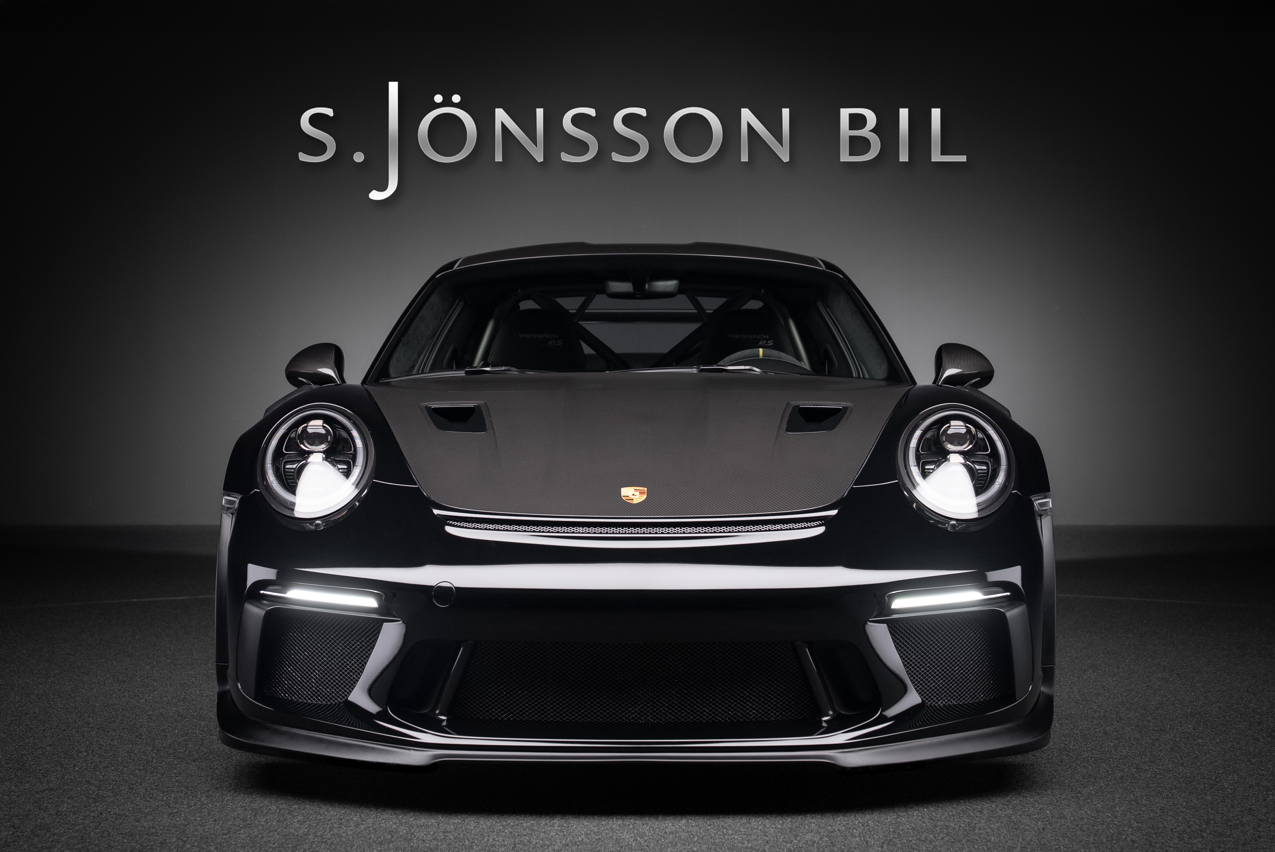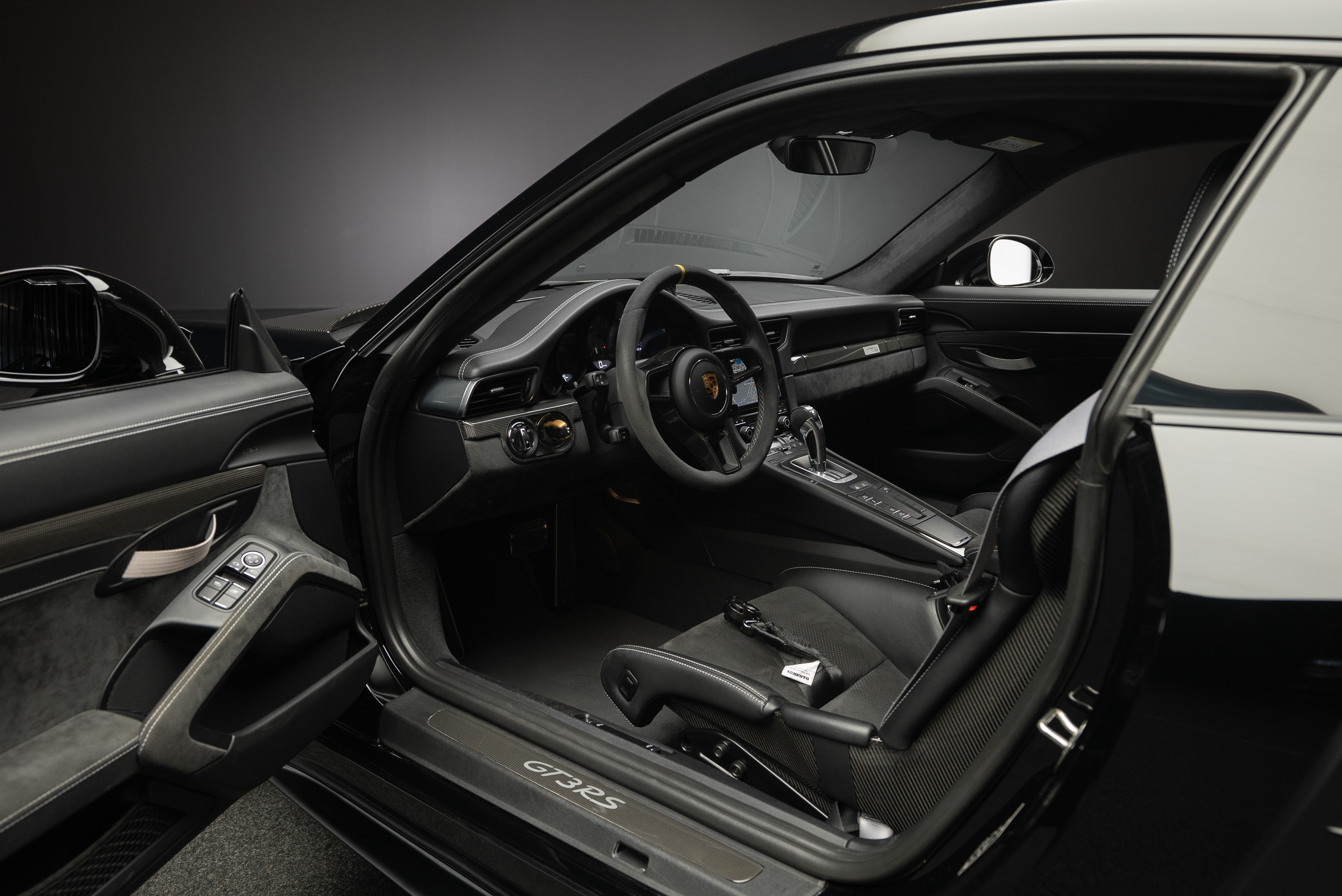 Porsche 991.2 GT3 RS med Manthey chassi. Lackerad i Svart med inredning i alcantara och utökat läder med ljusa kontrastsömmar.