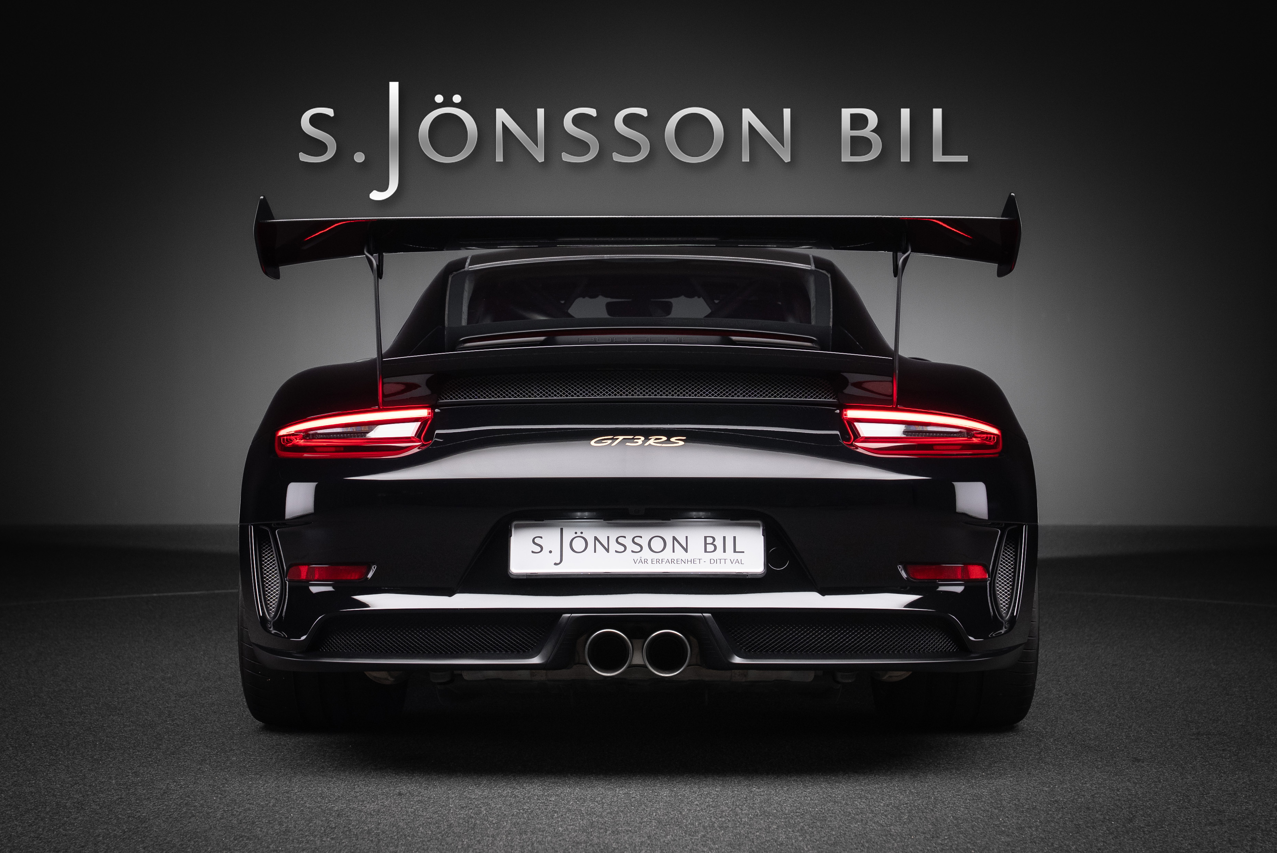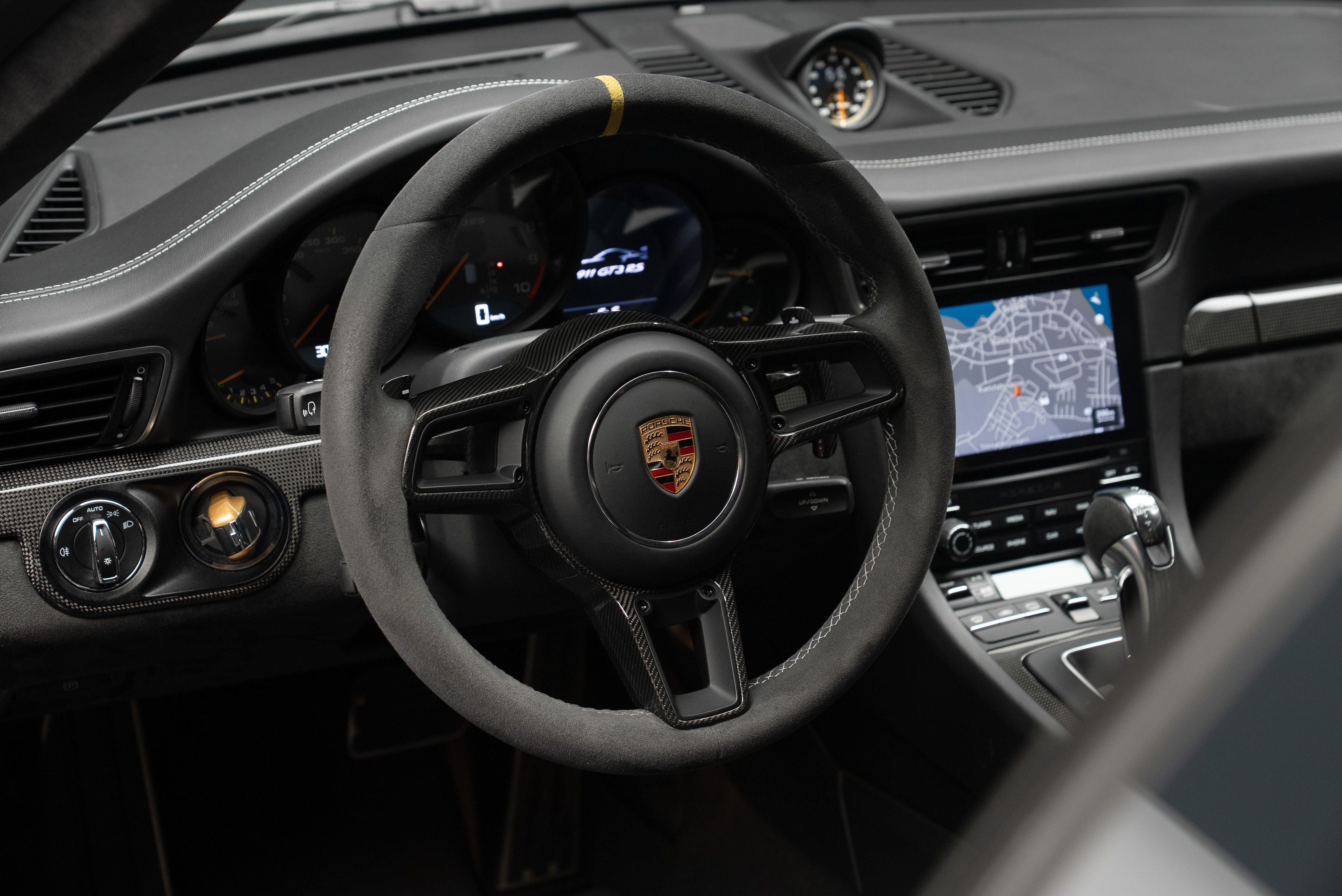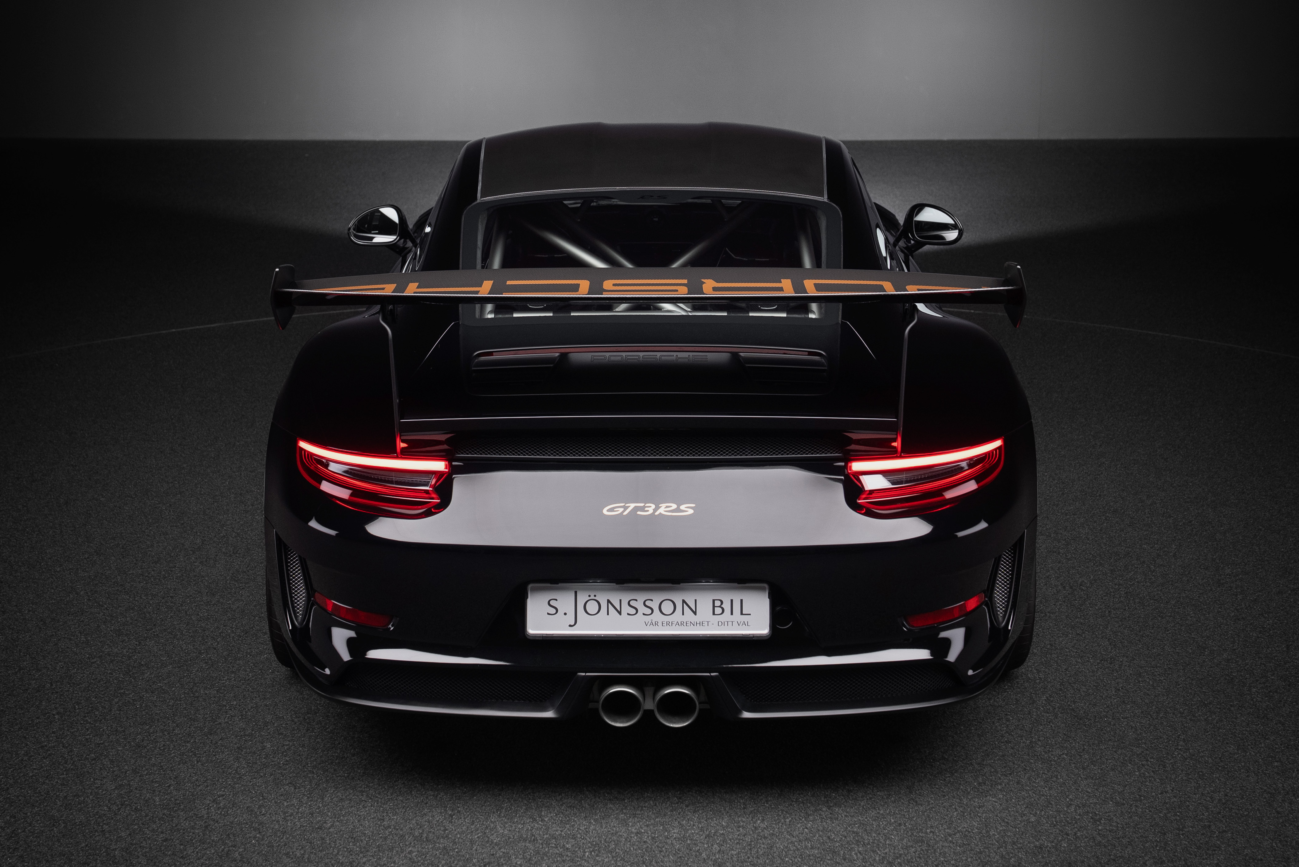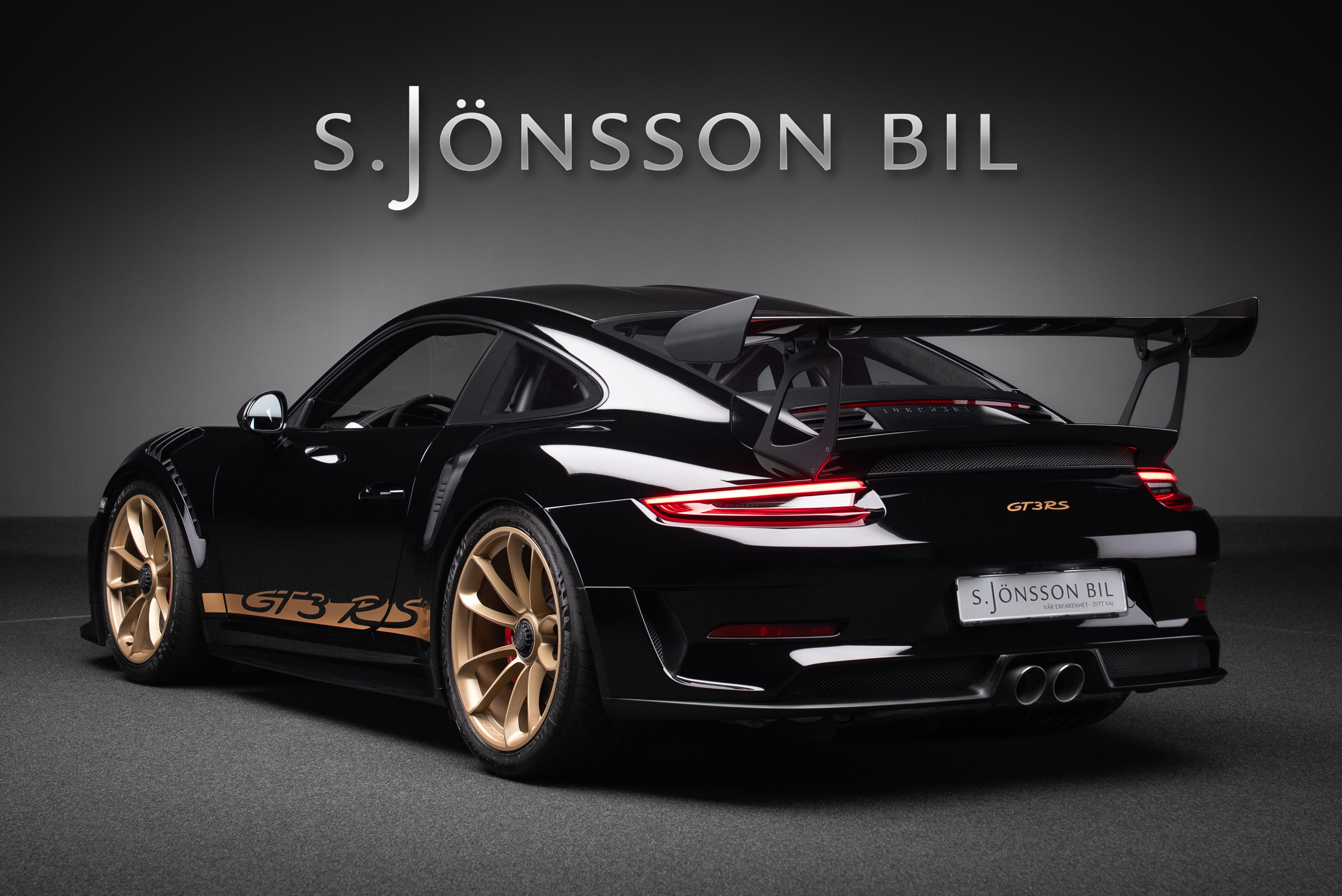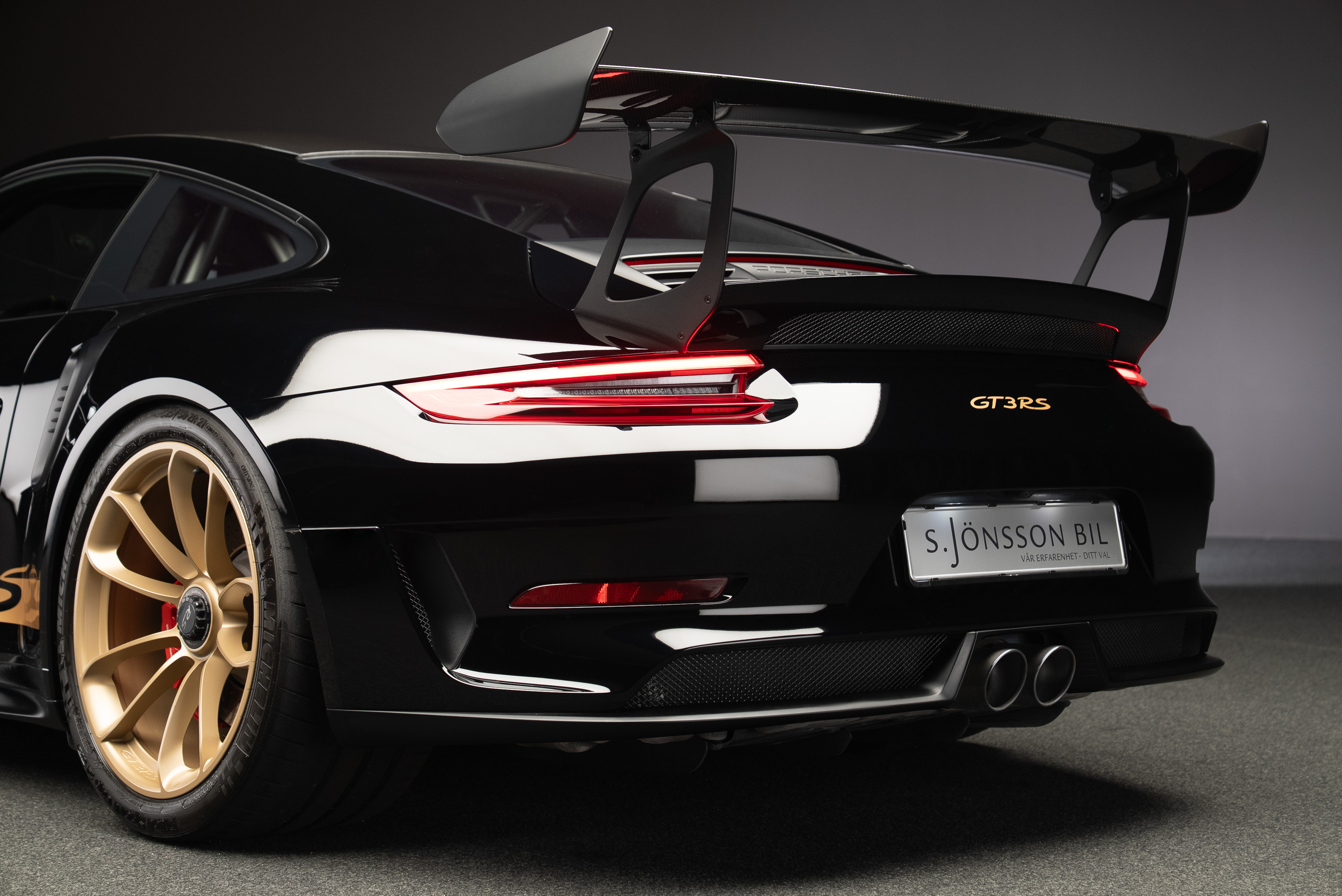 Porsche 991.2 GT3 RS med Manthey chassi. Lackerad i Svart med inredning i alcantara och utökat läder med ljusa kontrastsömmar.